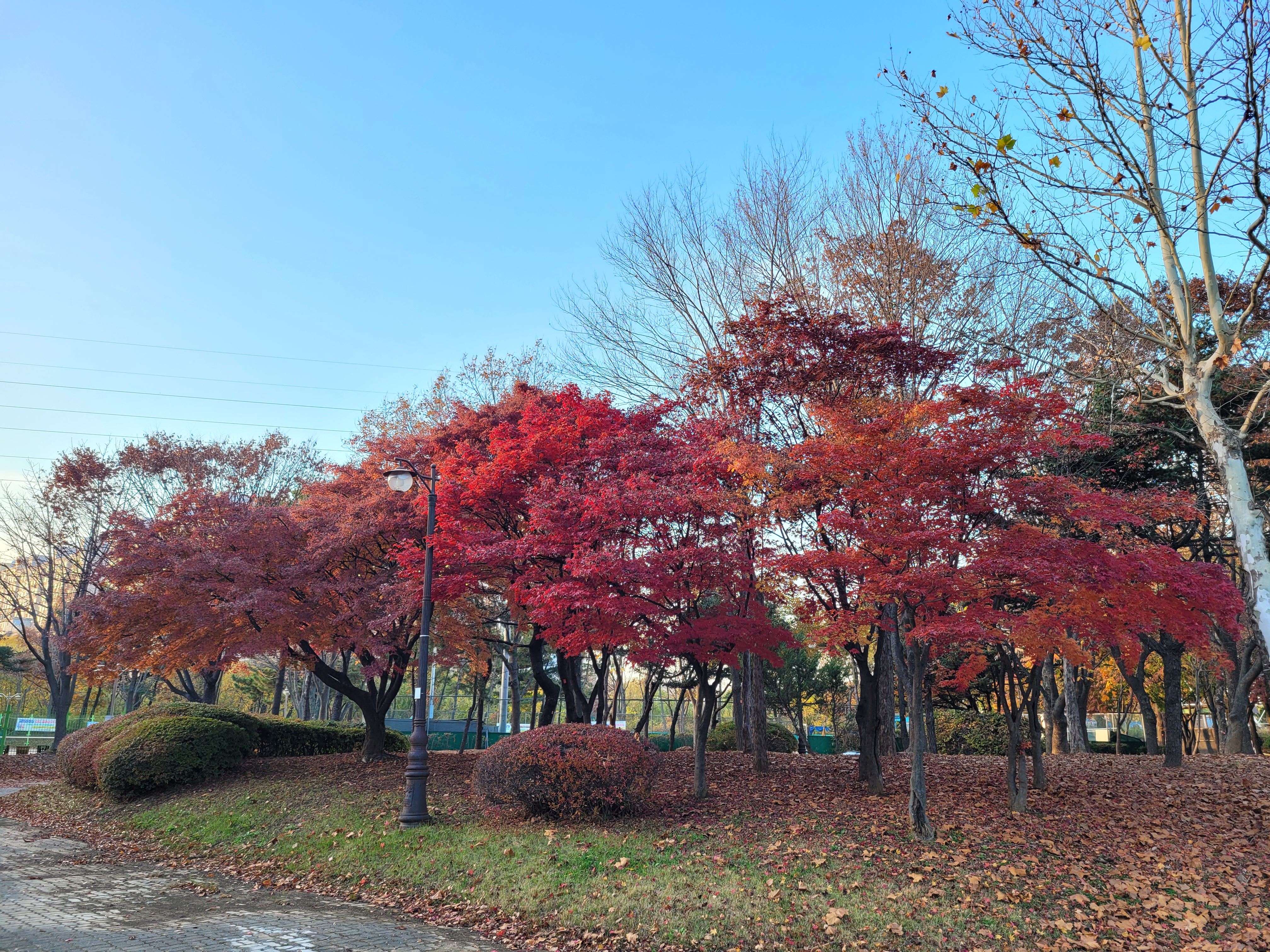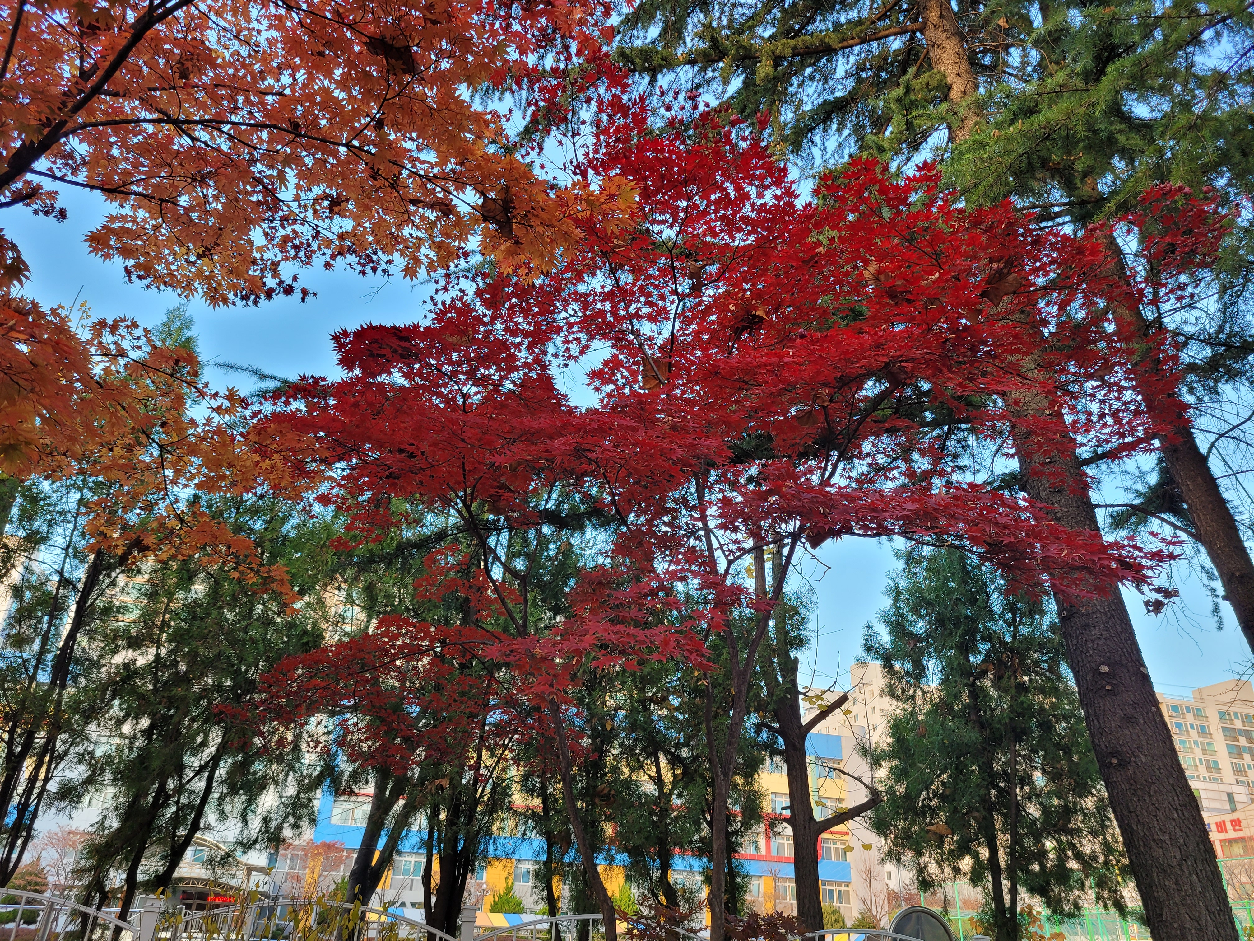 이들 공원에 막바지로 단풍들이 아름답게 핀 것을 구경하니 힐링되네요.