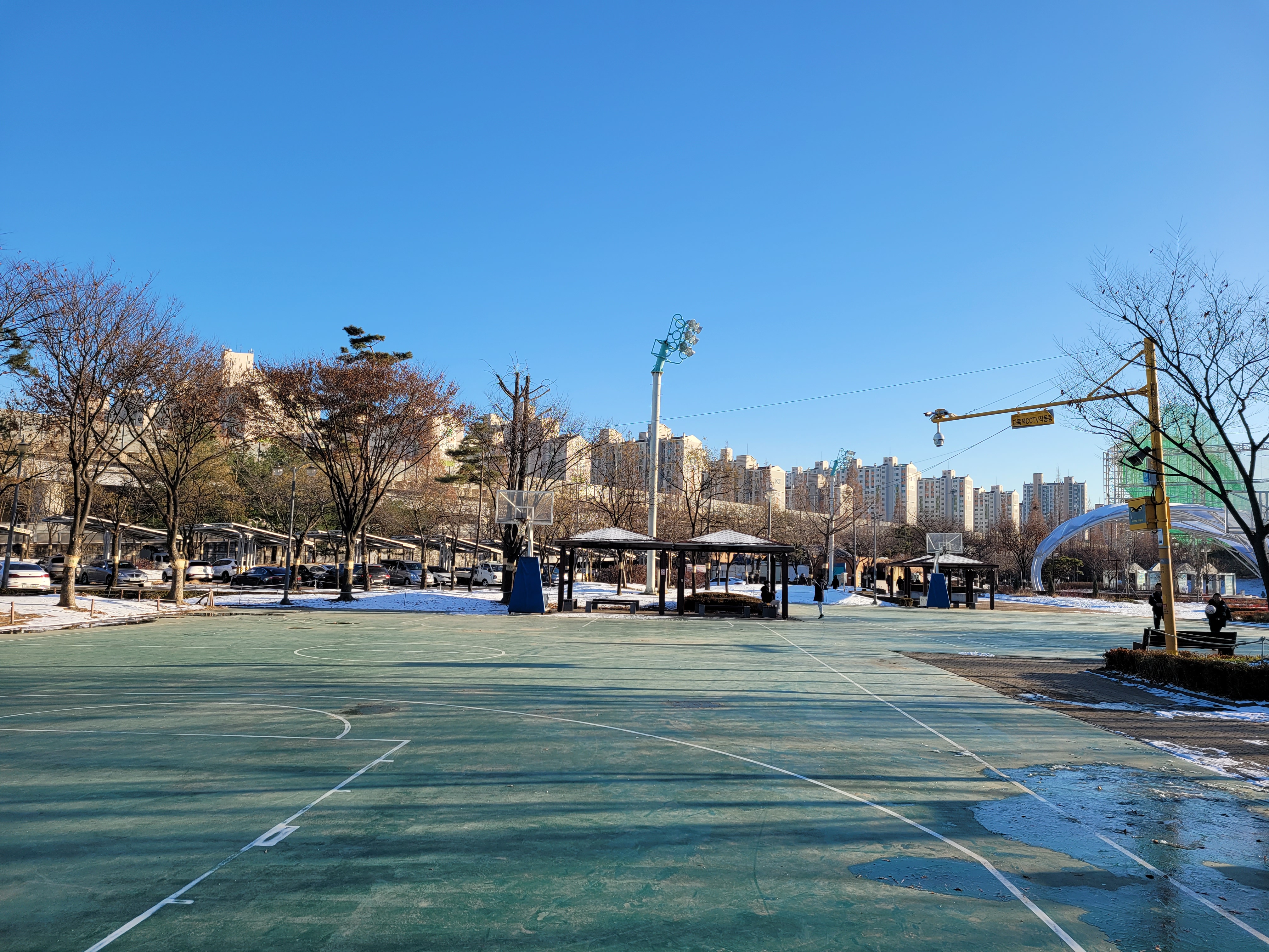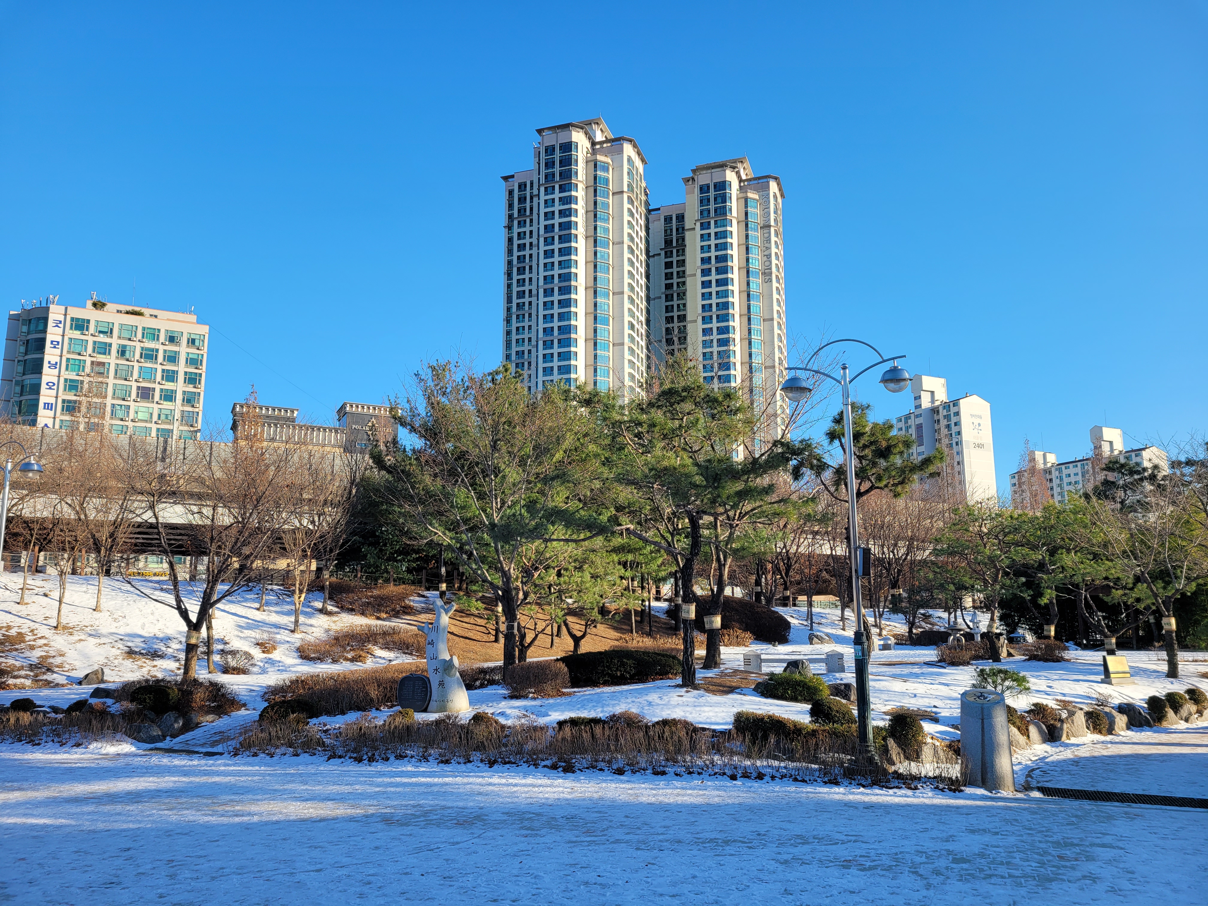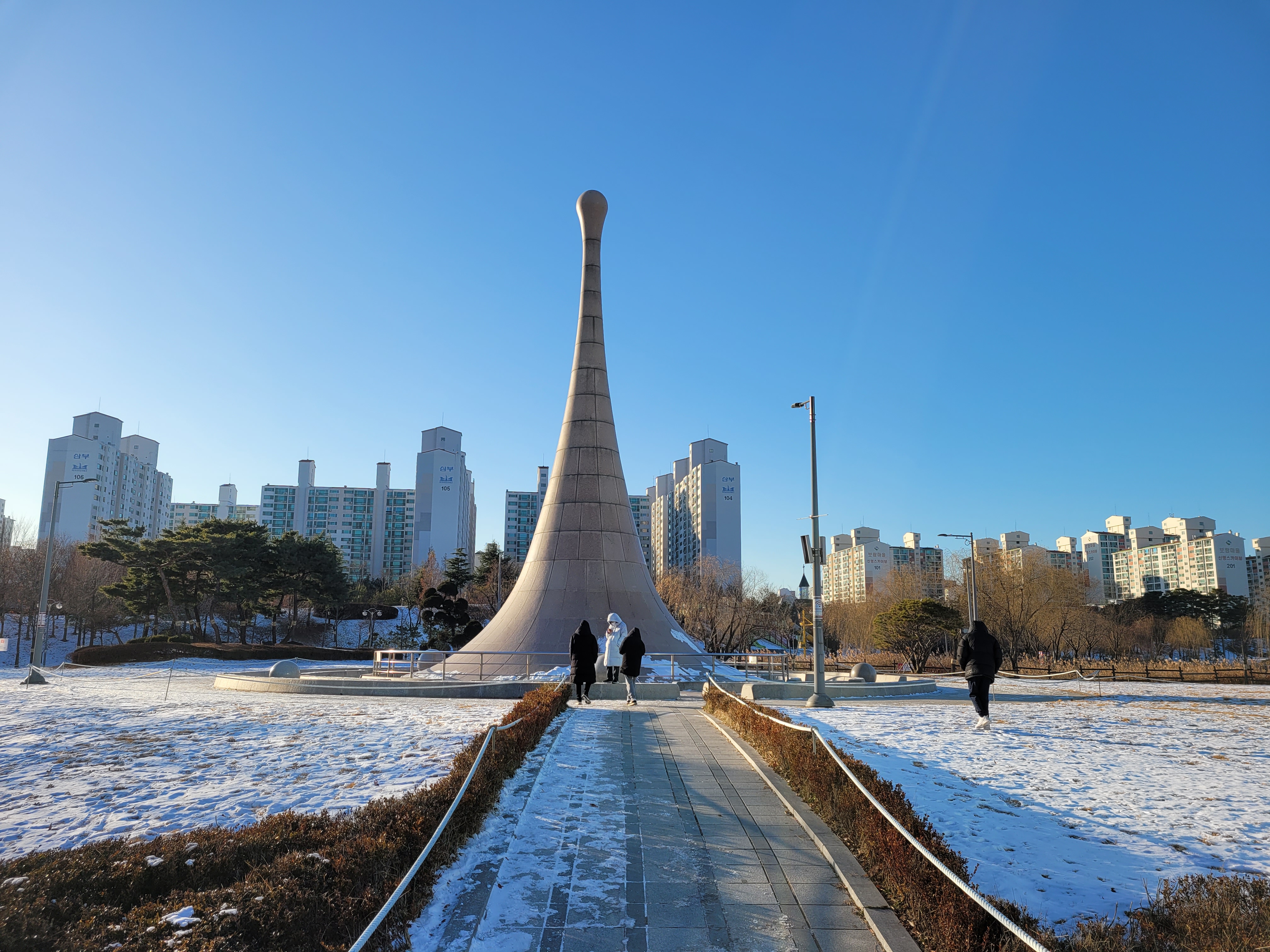 특히 호수공원 중앙에 있는 호수도 완전히 꽁꽁 얼어붙었고요.