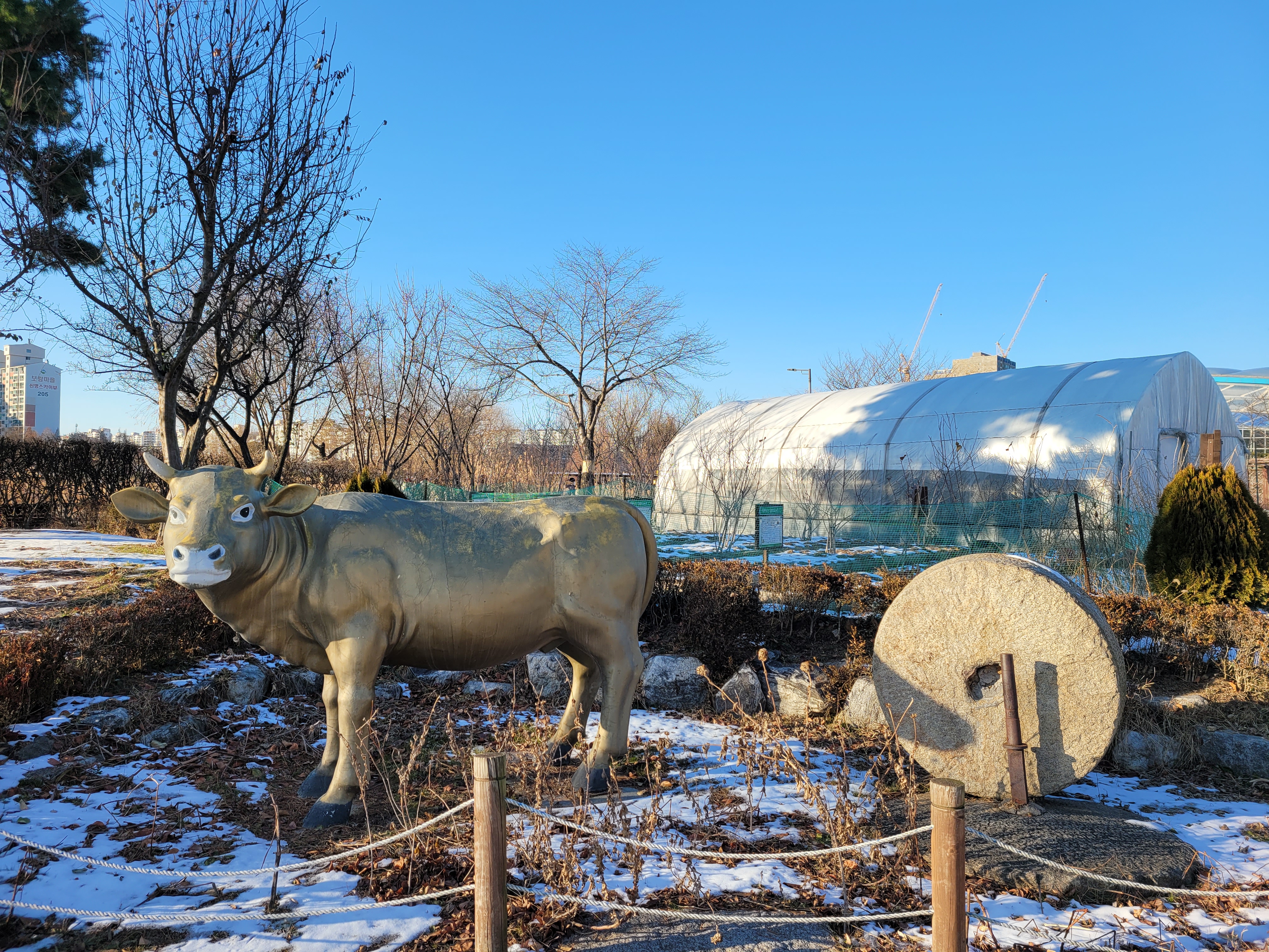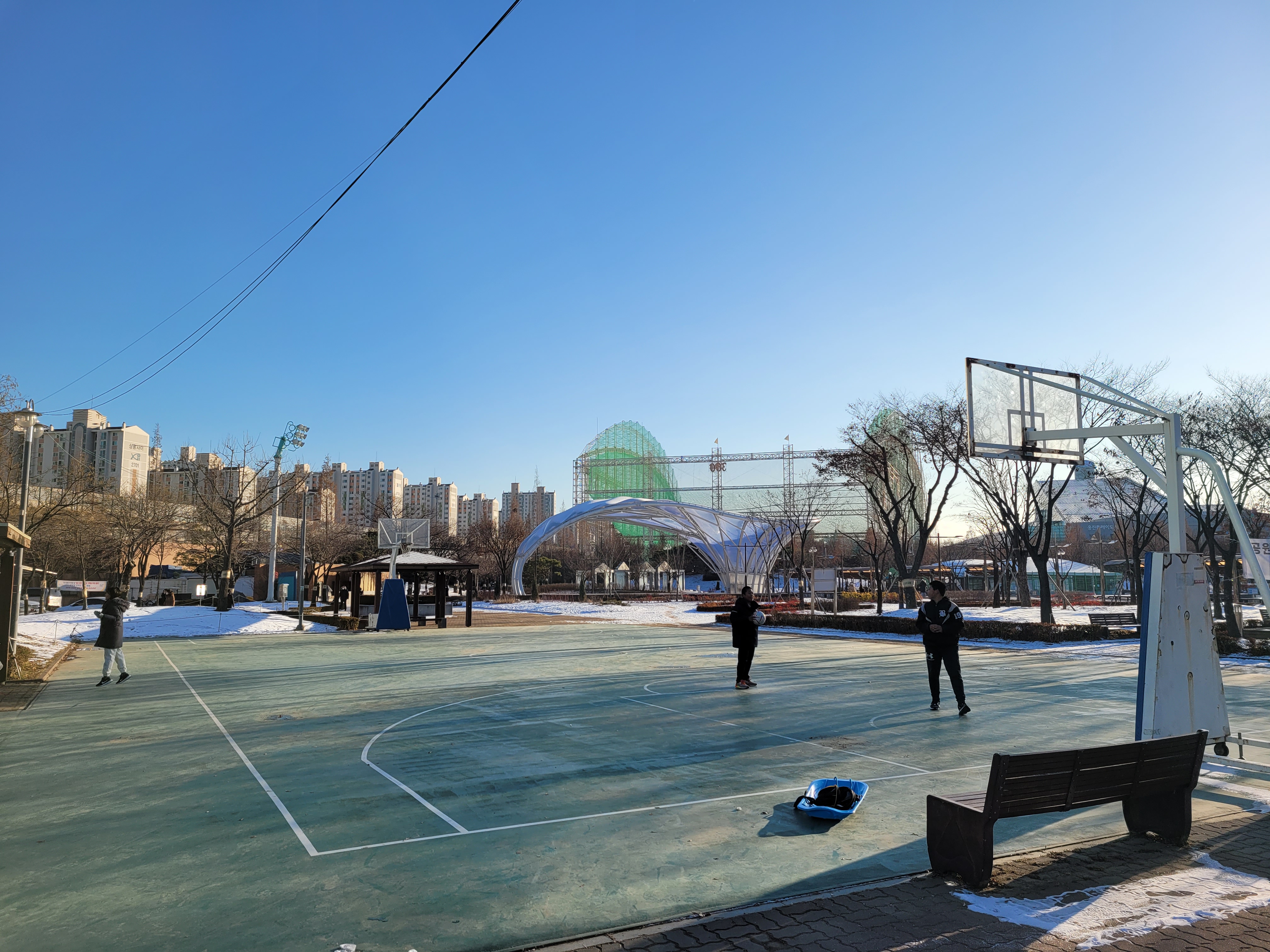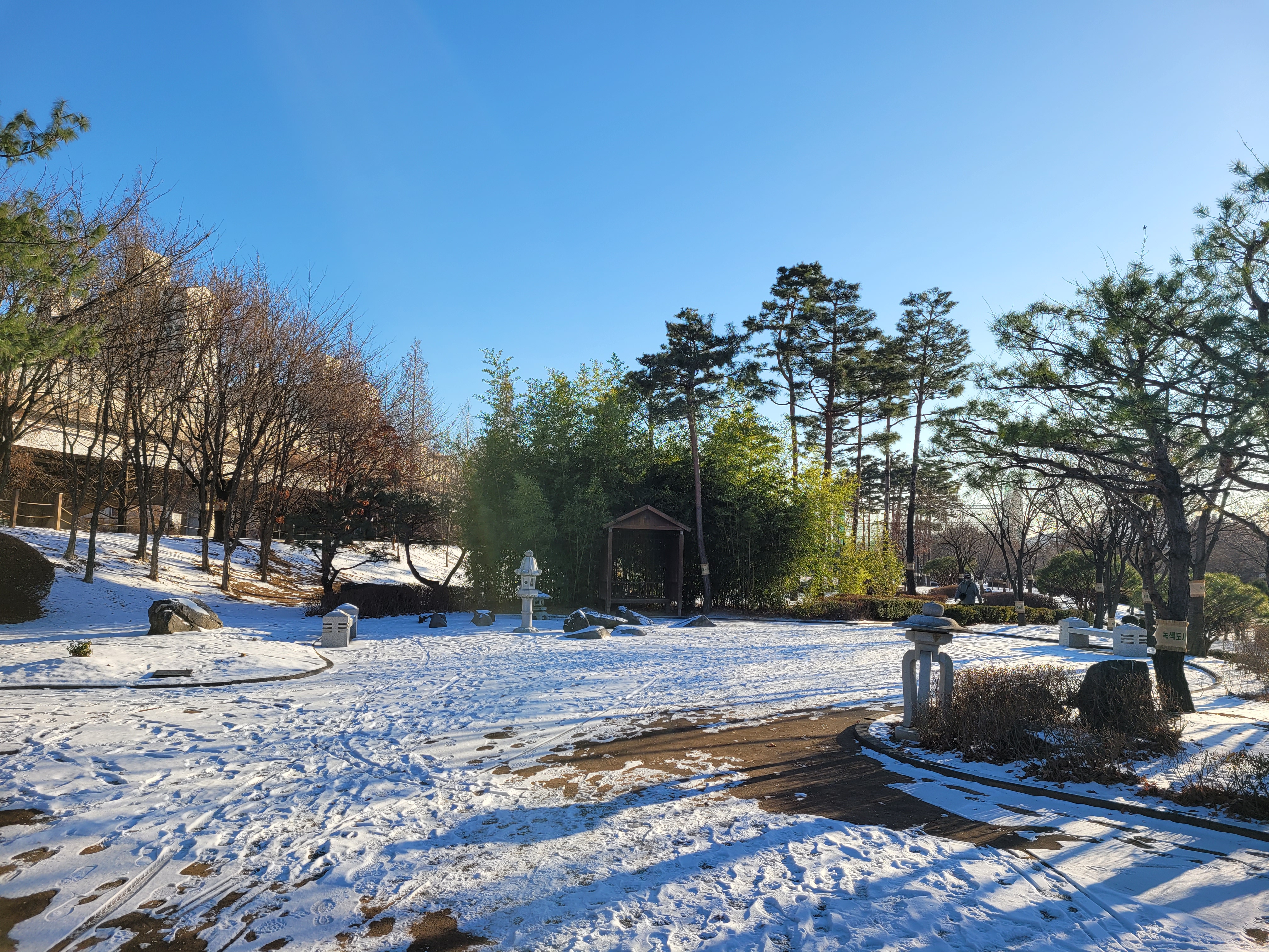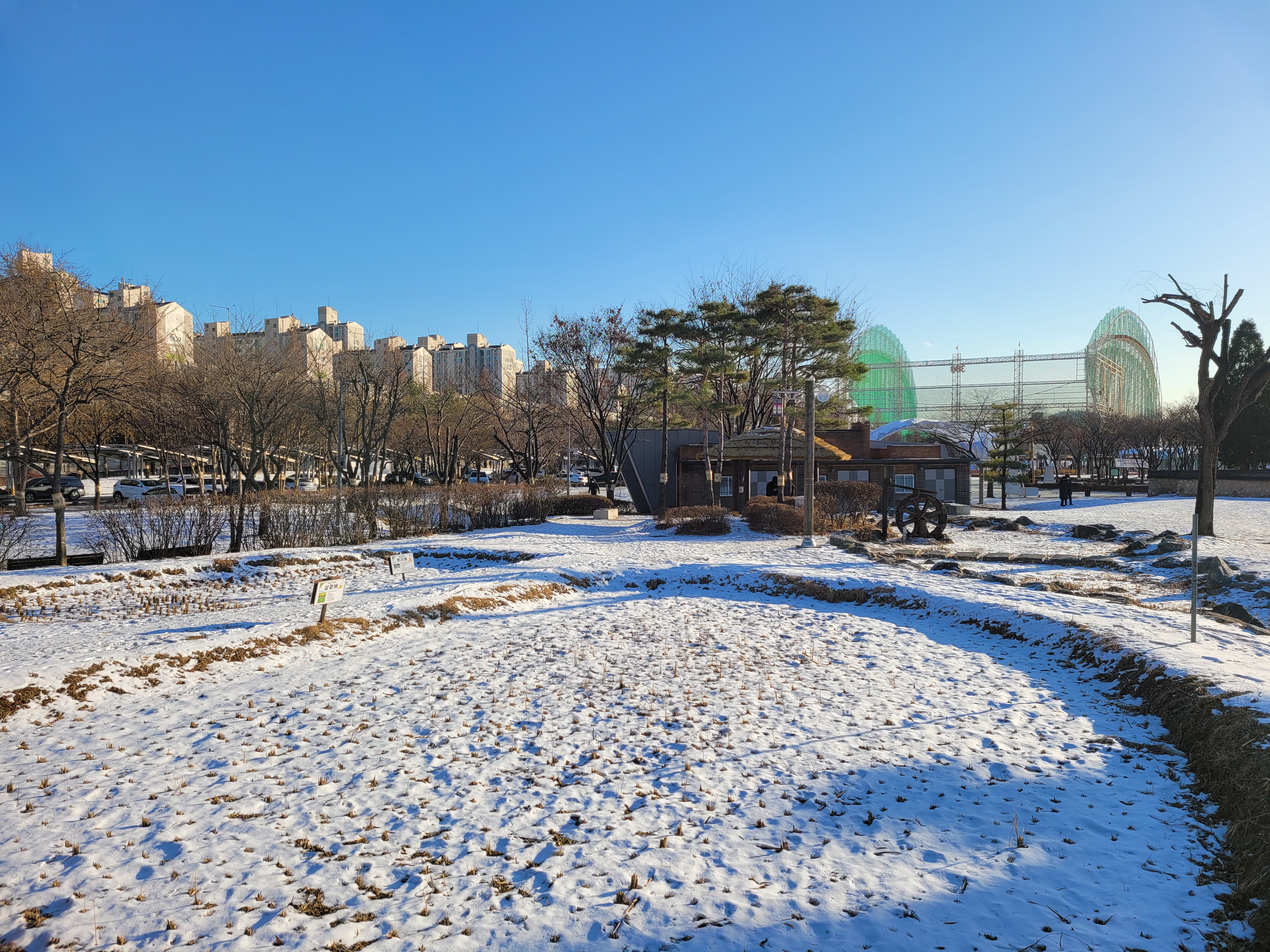 특히 호수공원 중앙에 있는 호수도 완전히 꽁꽁 얼어붙었고요.