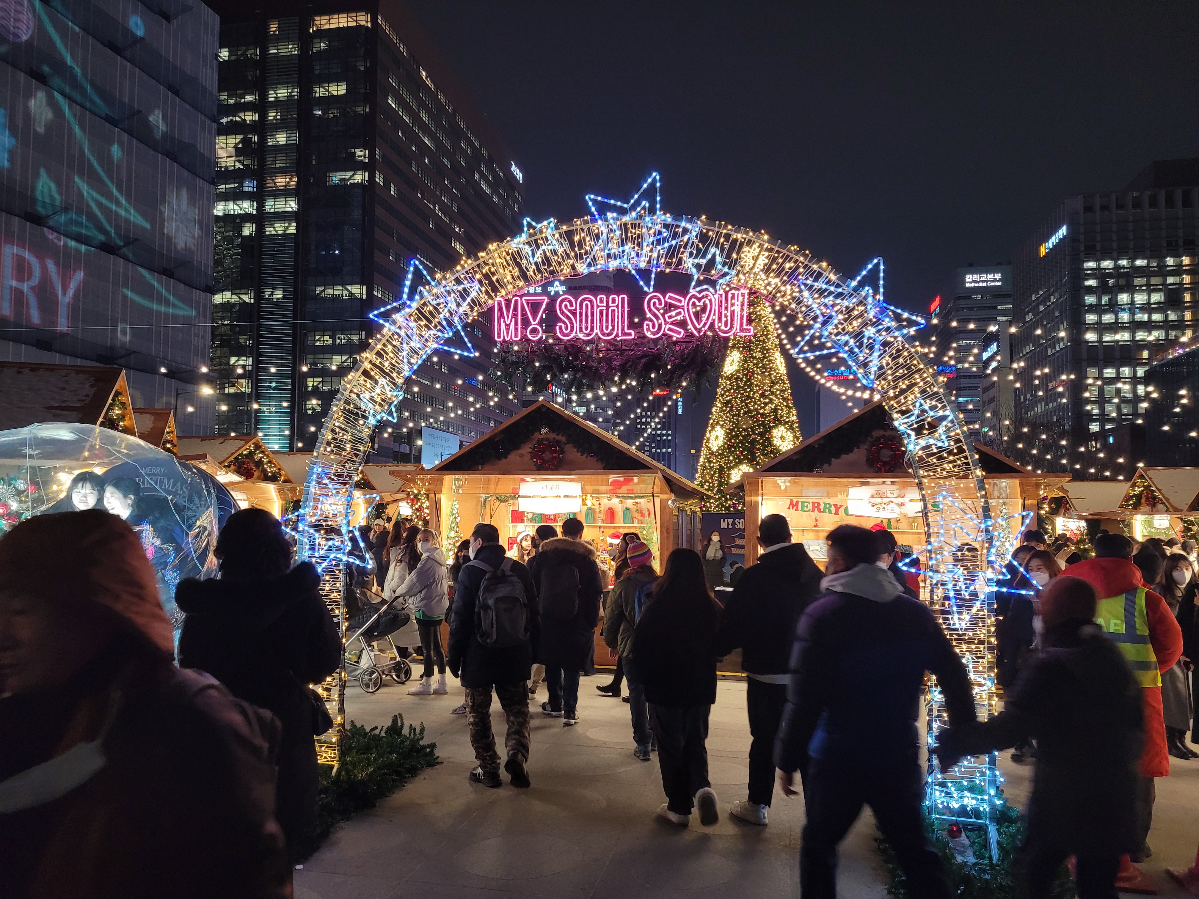 광화문광장 안에는 크리스마스 마켓도 열렸는데 사람들로 인산인해를 이루었네요.