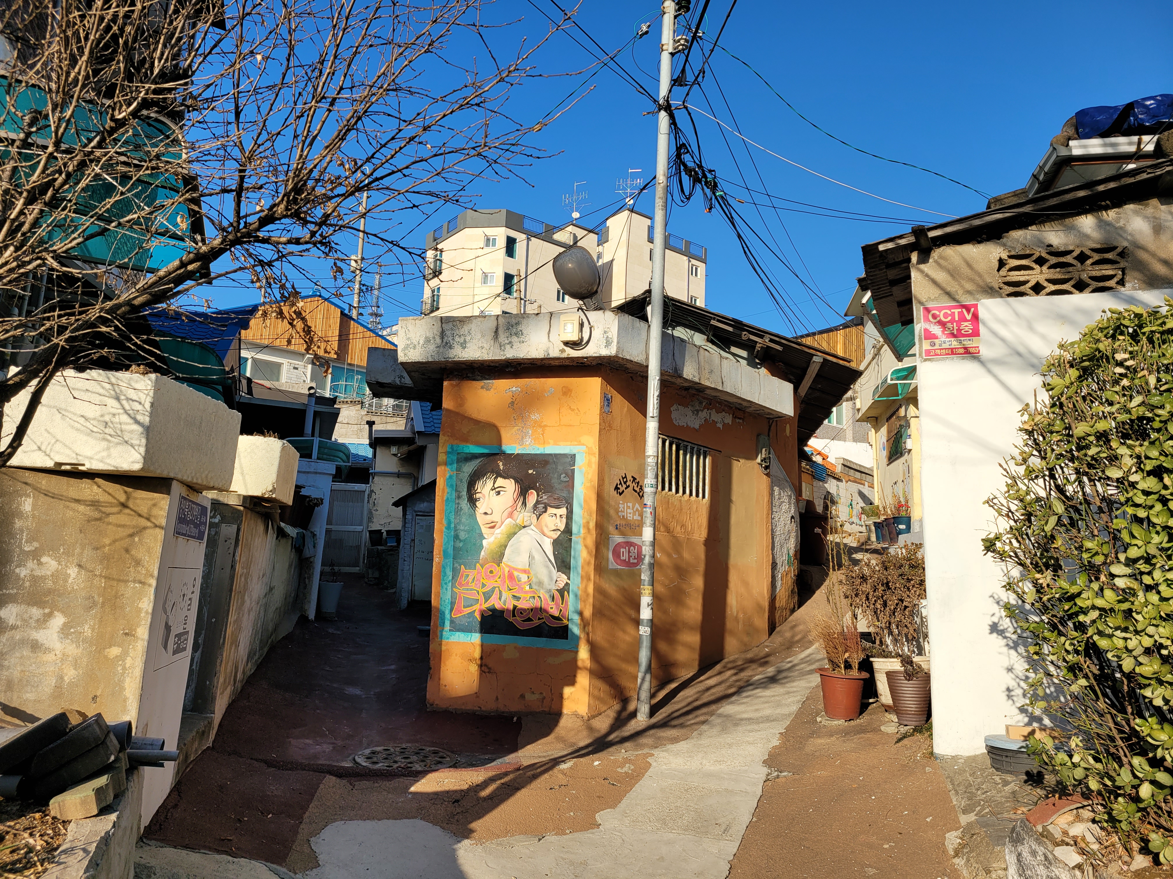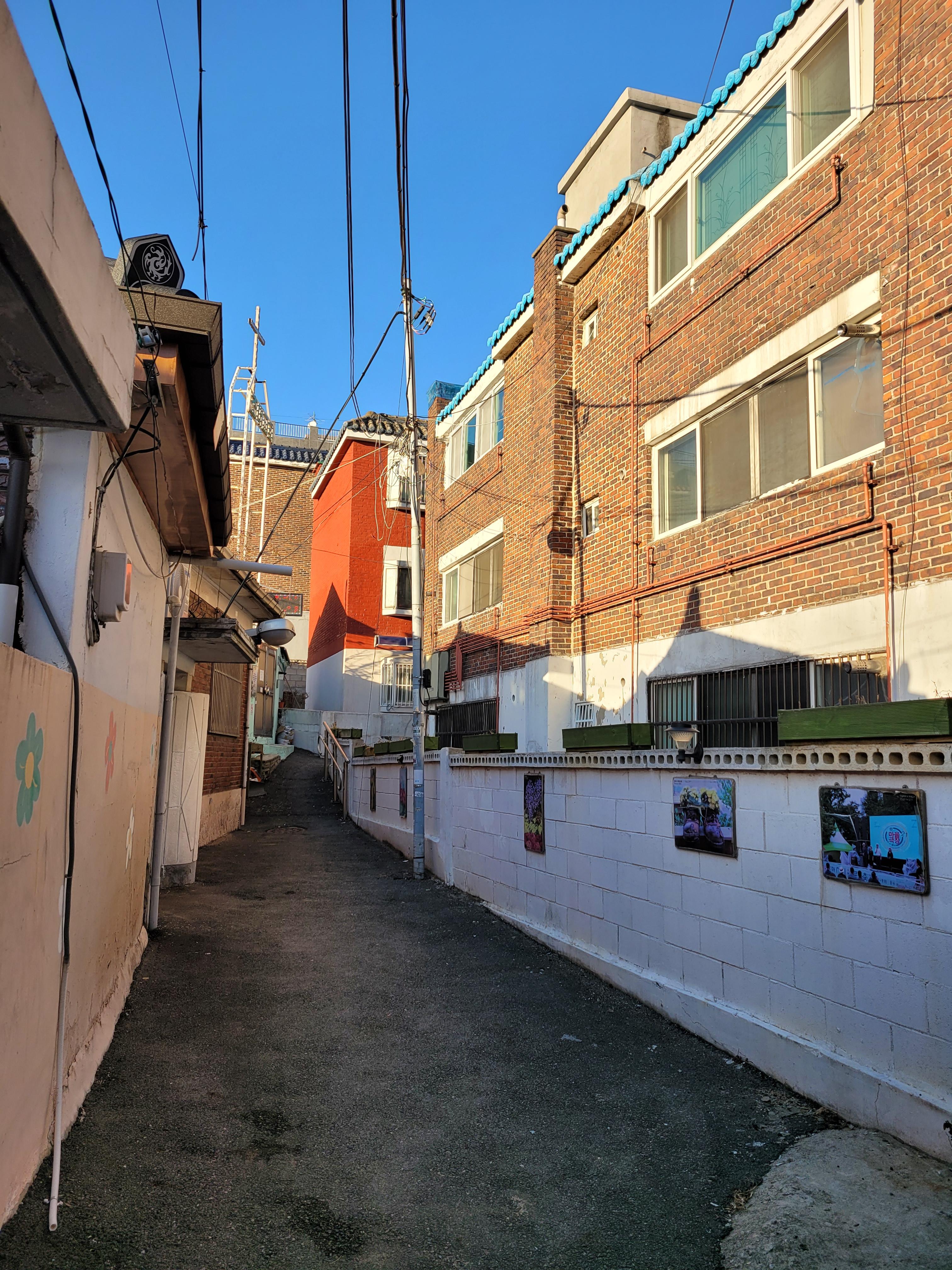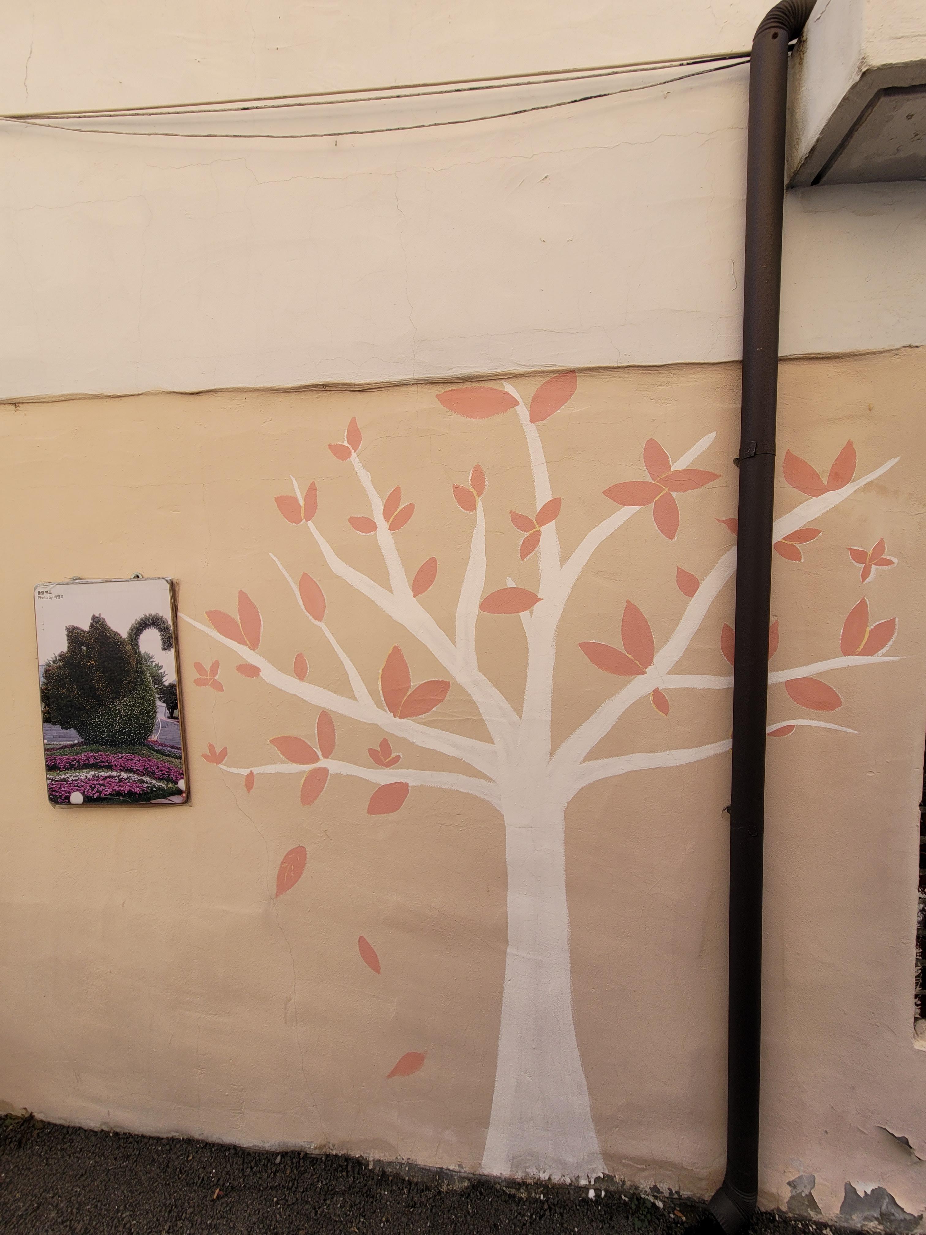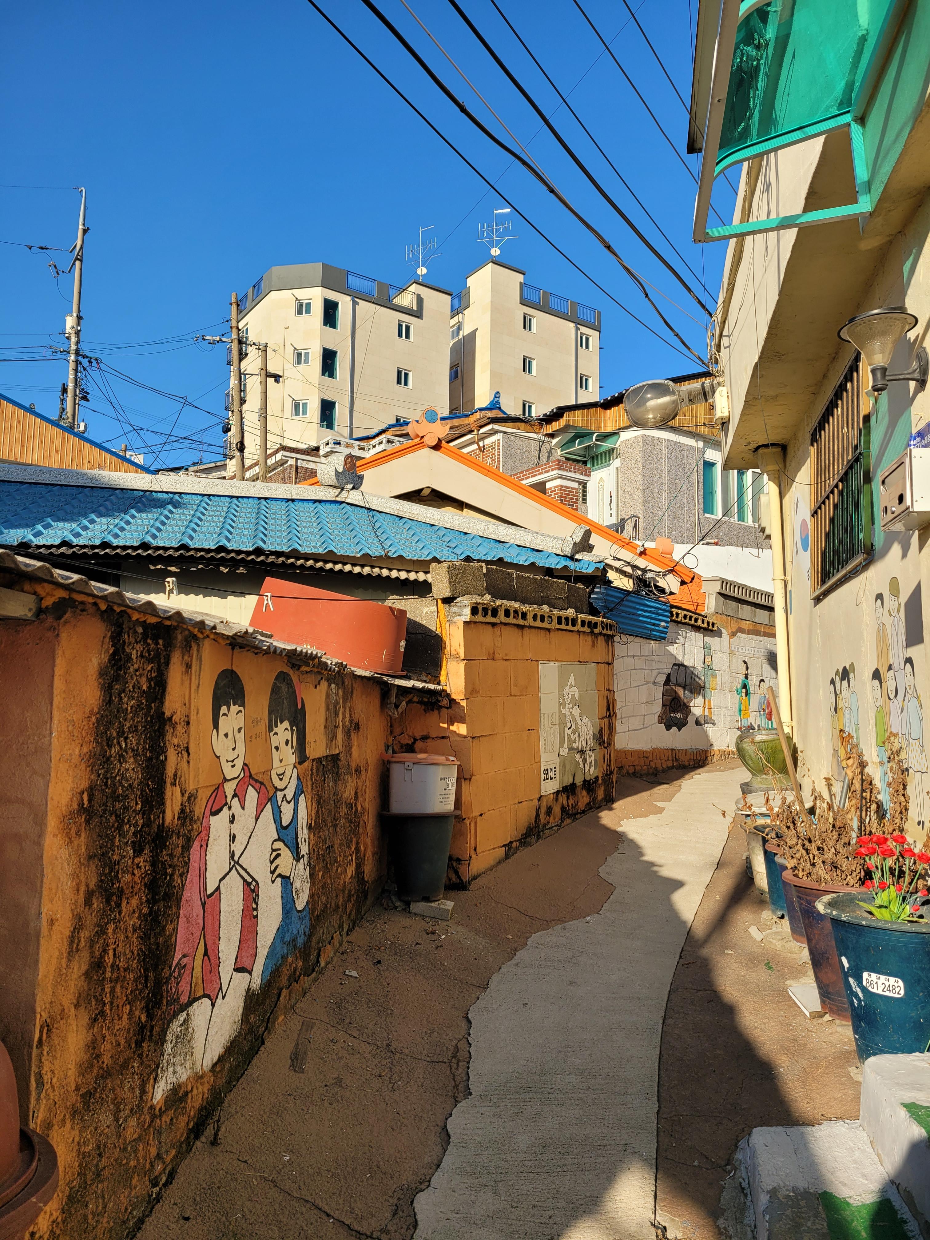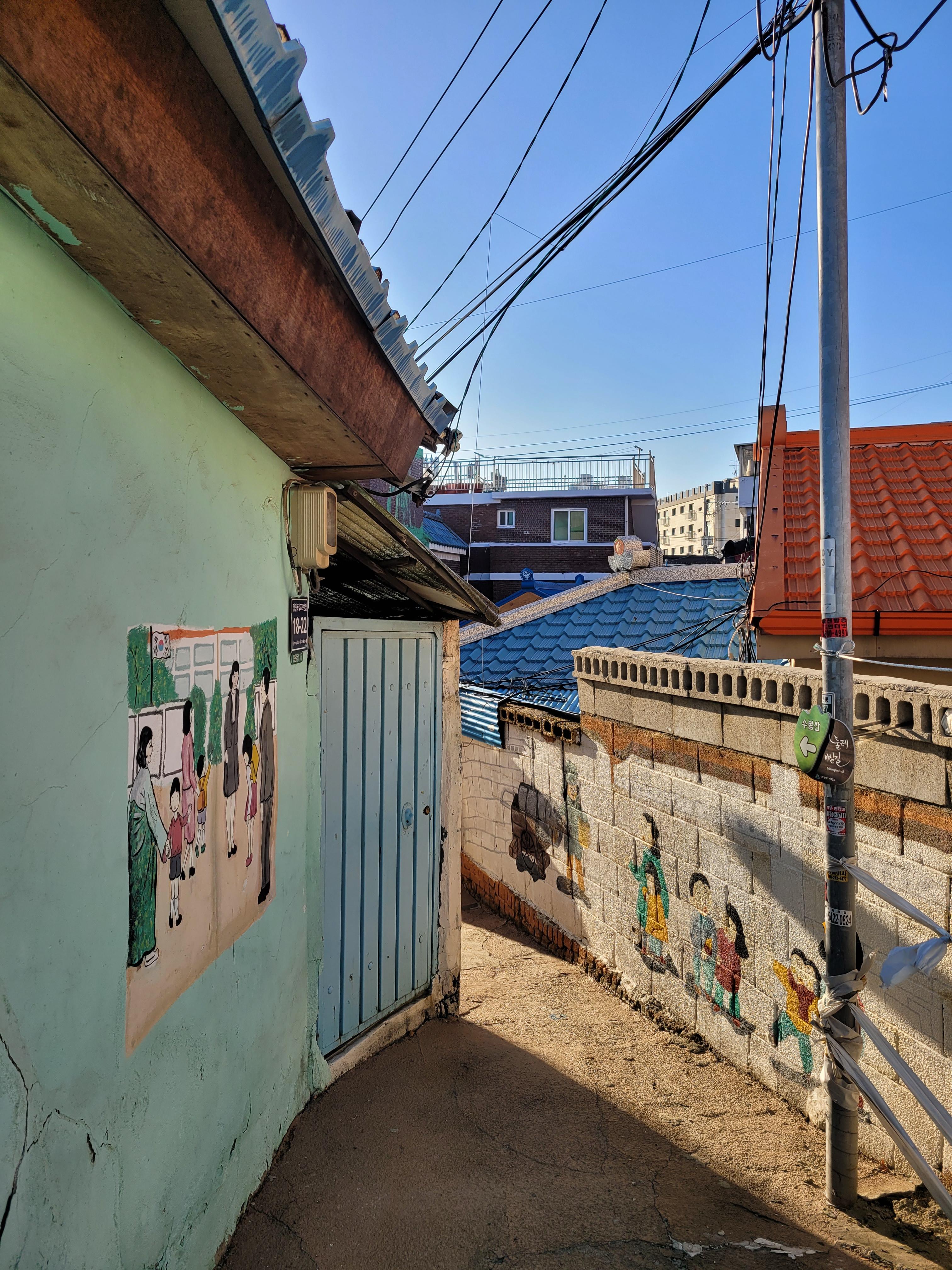 집이 1980년대 90년대 초반 수준으로 낡고 골목길이 비좁기는 했지만 집 담벼락 곳곳에 그려진