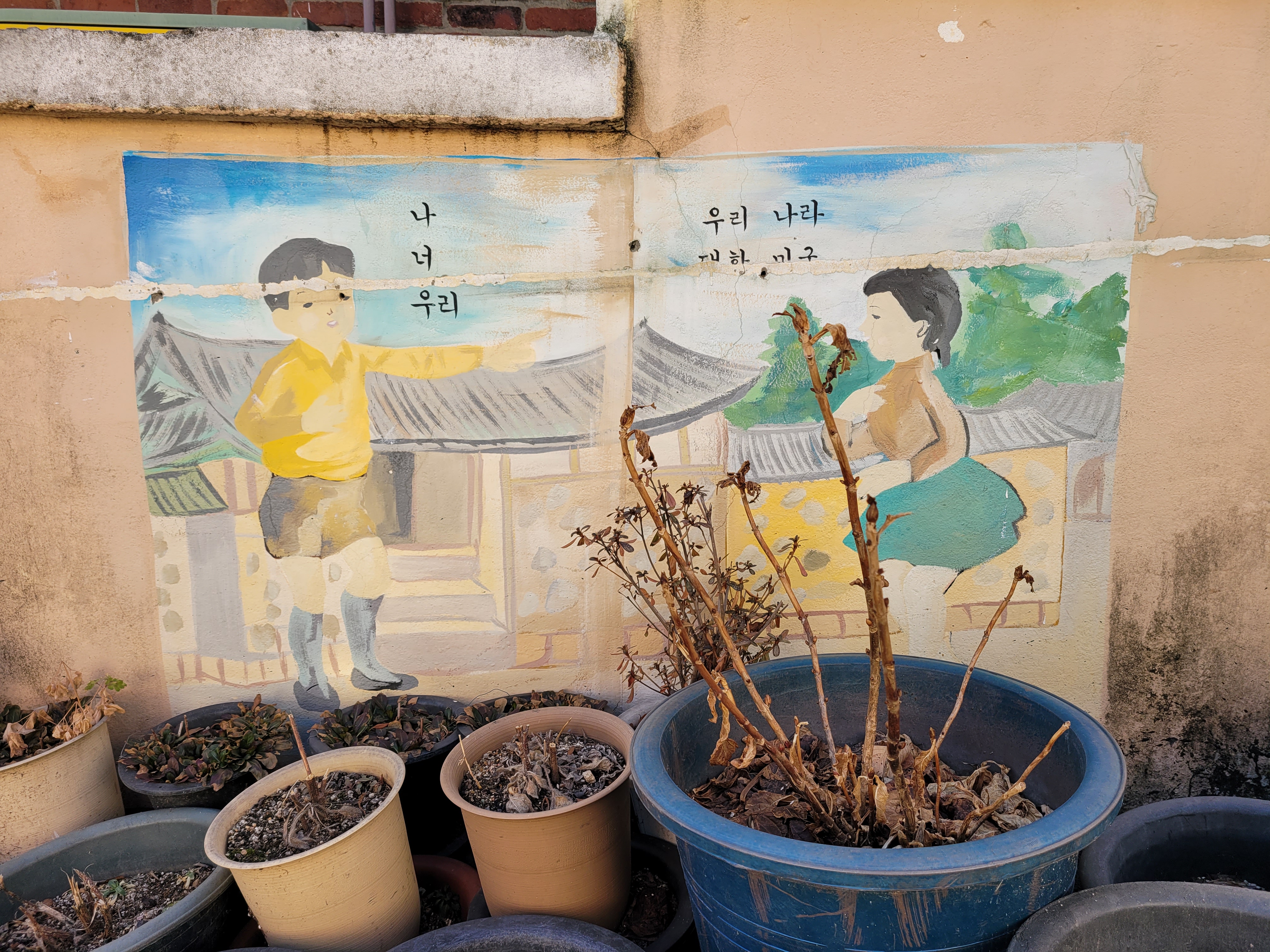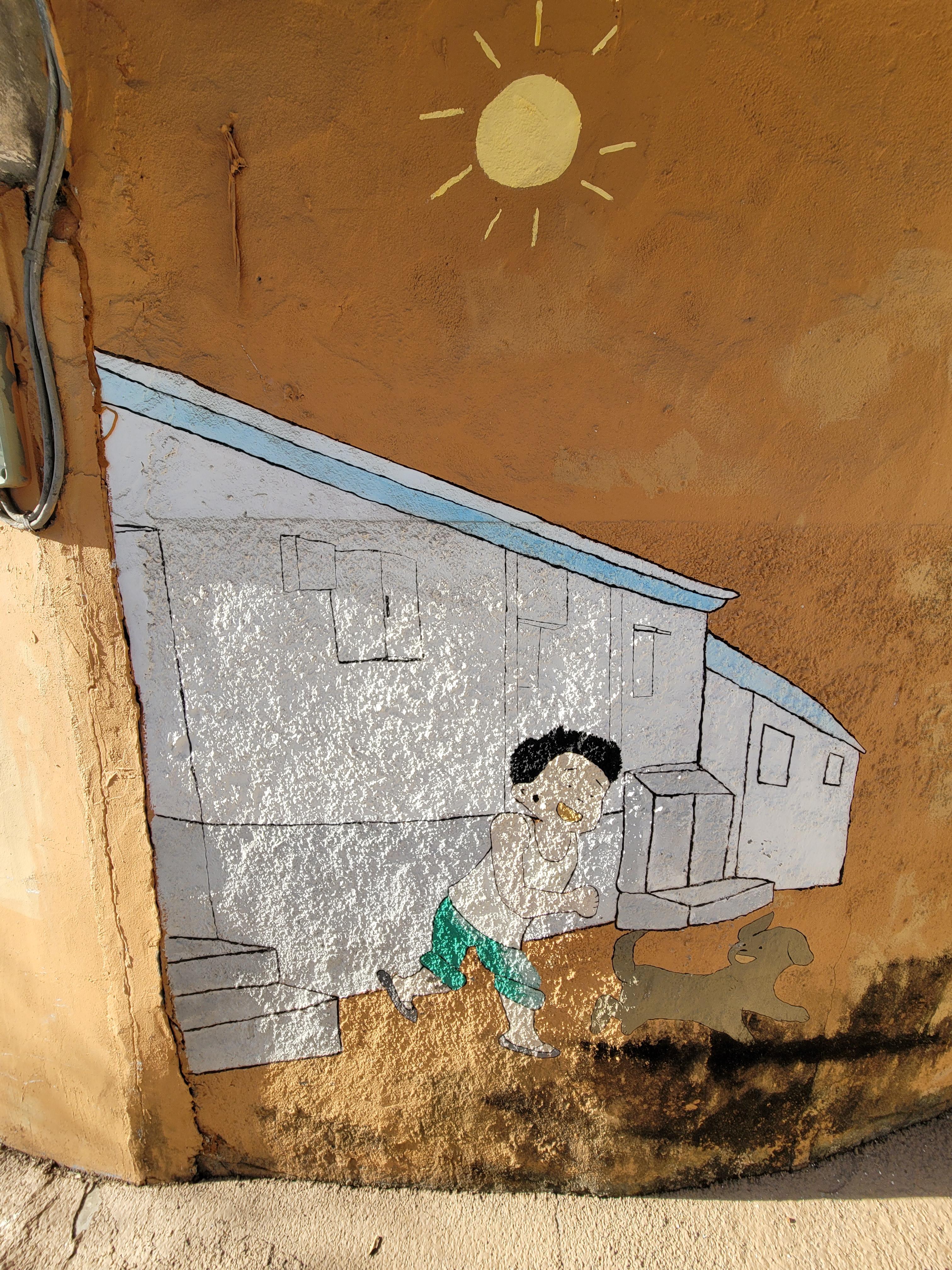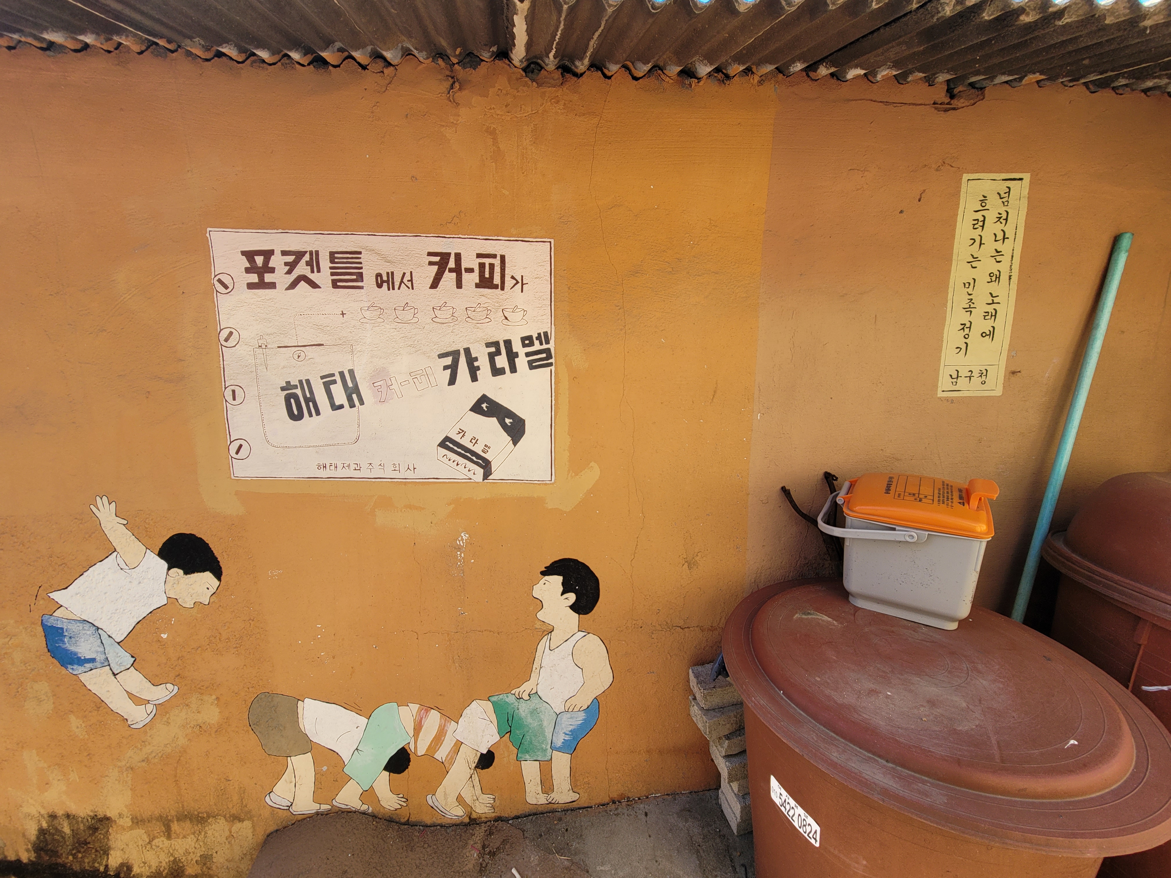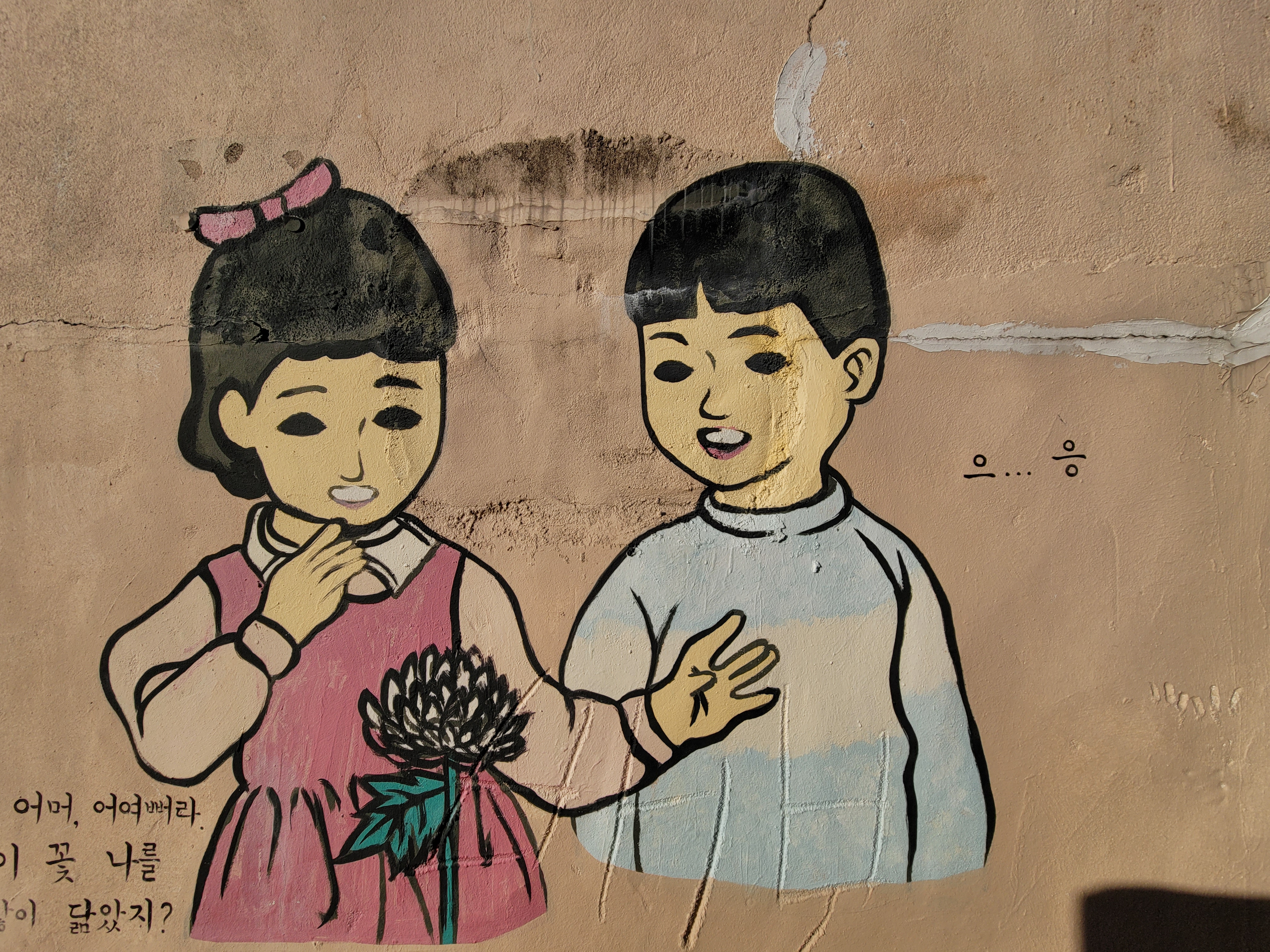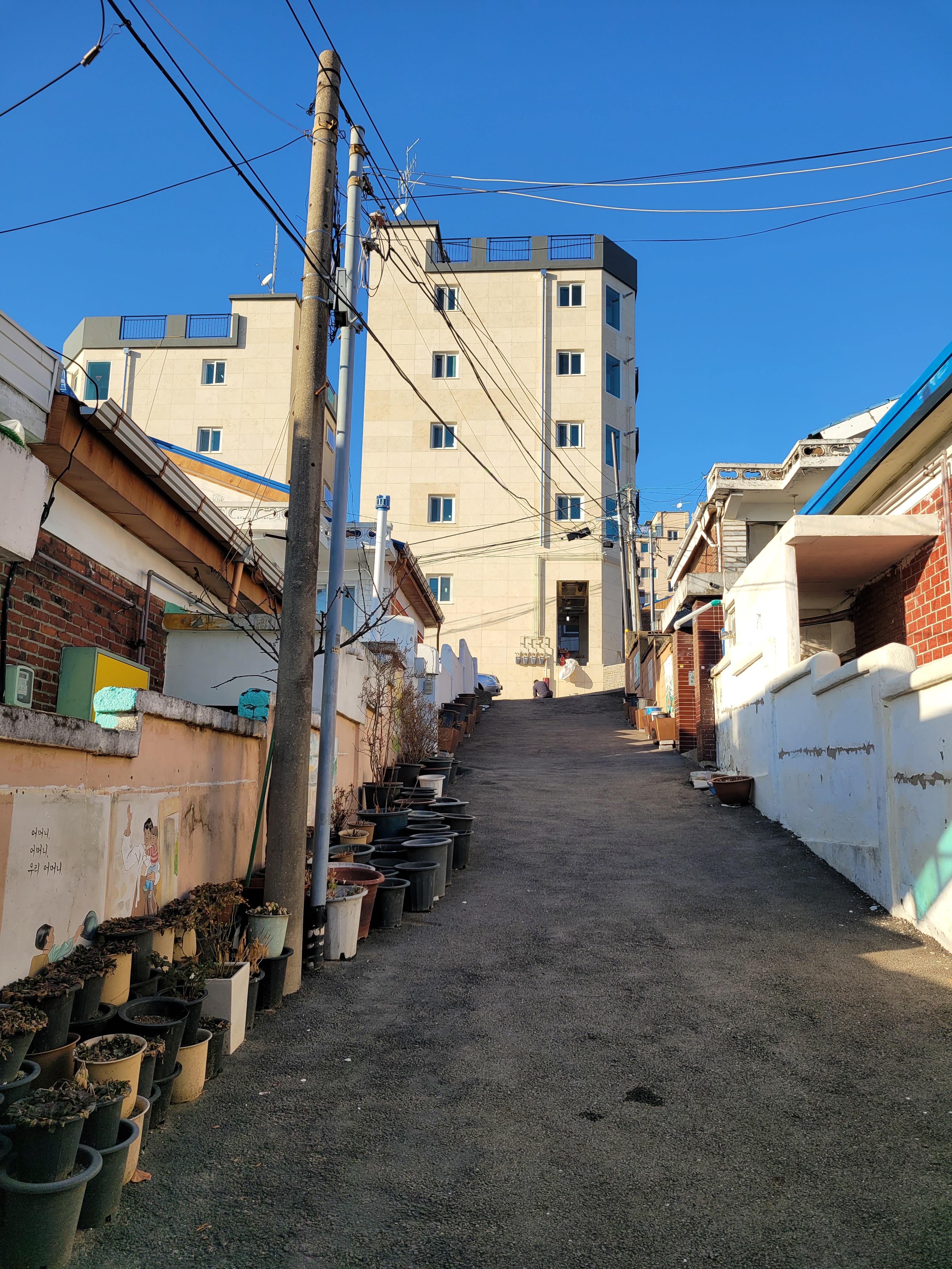 집이 1980년대 90년대 초반 수준으로 낡고 골목길이 비좁기는 했지만 집 담벼락 곳곳에 그려진