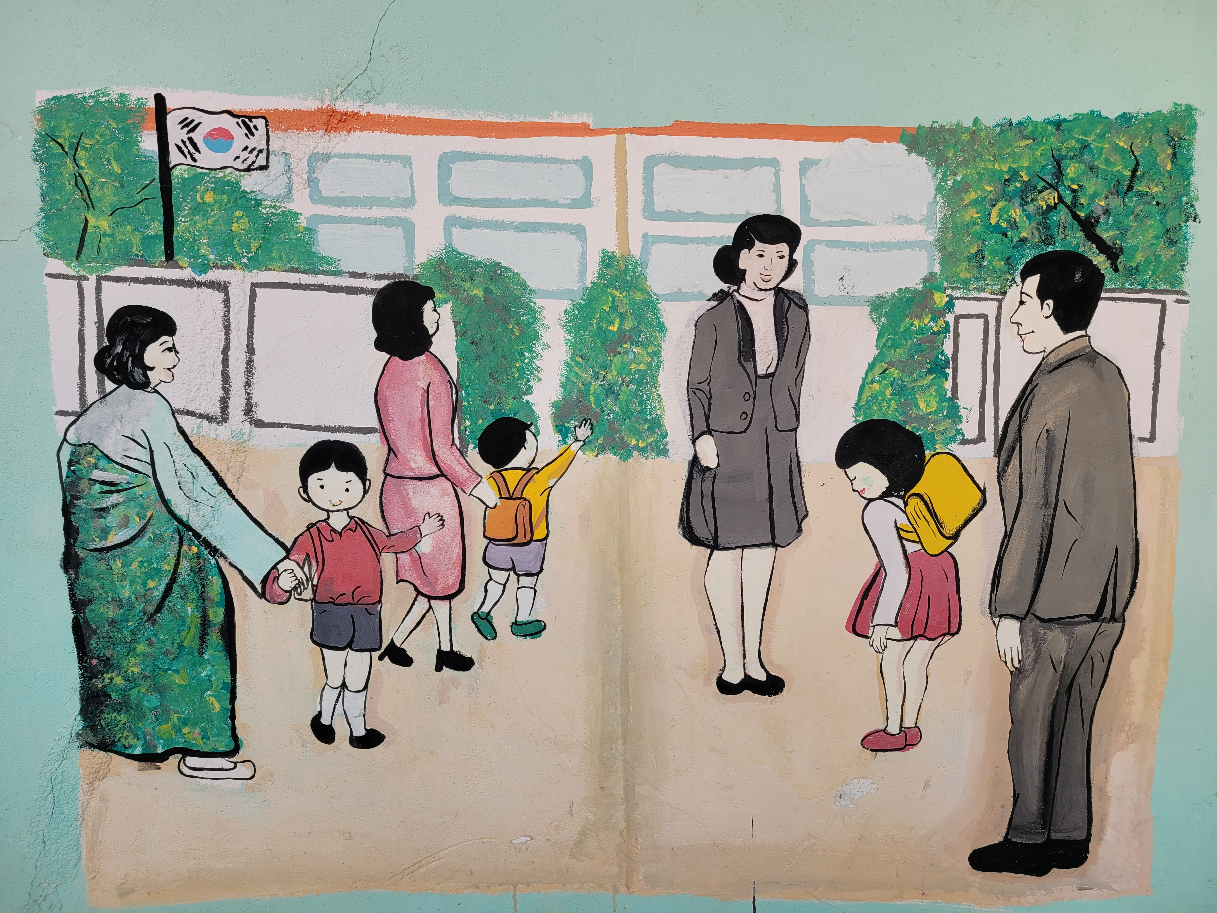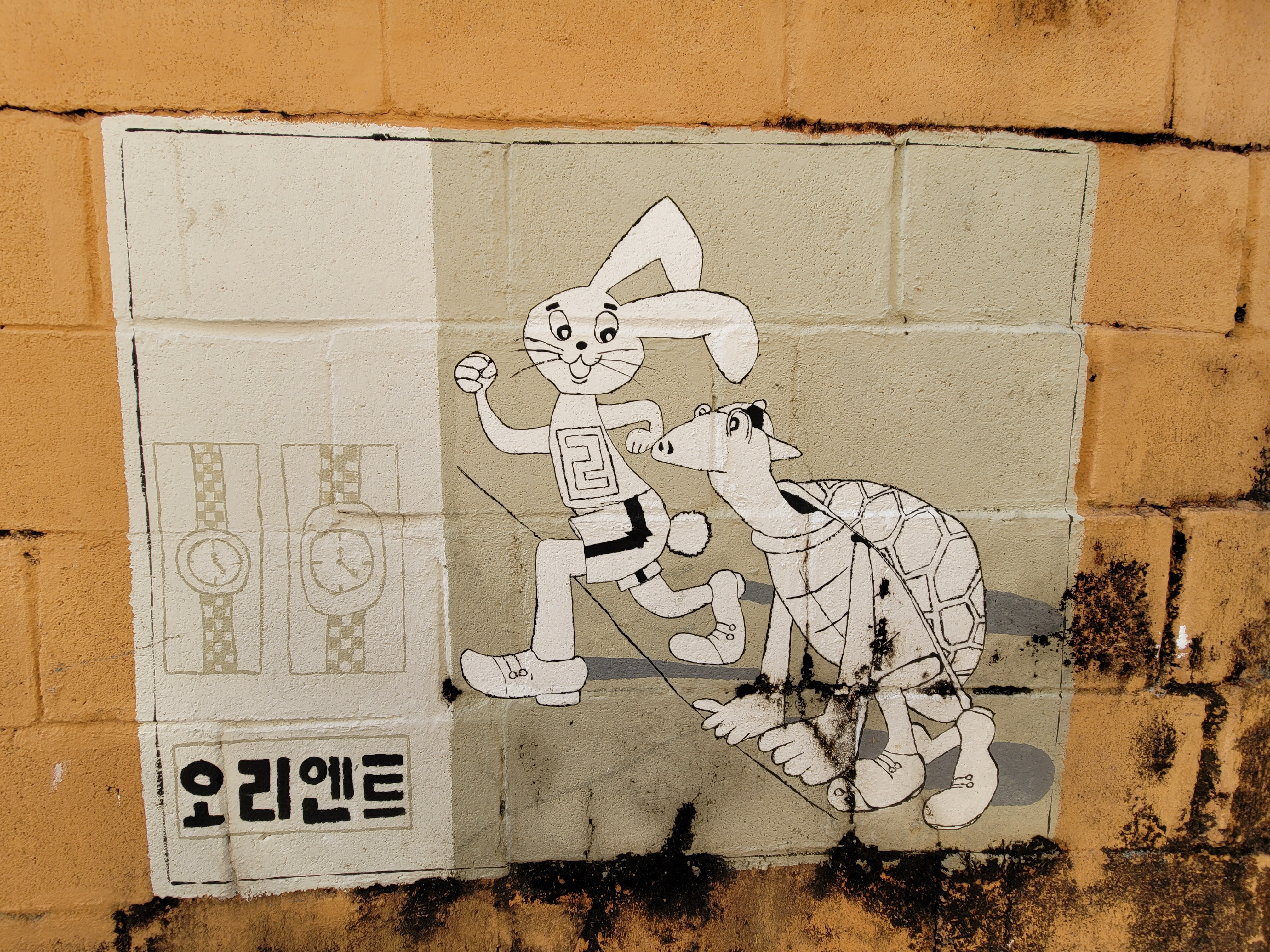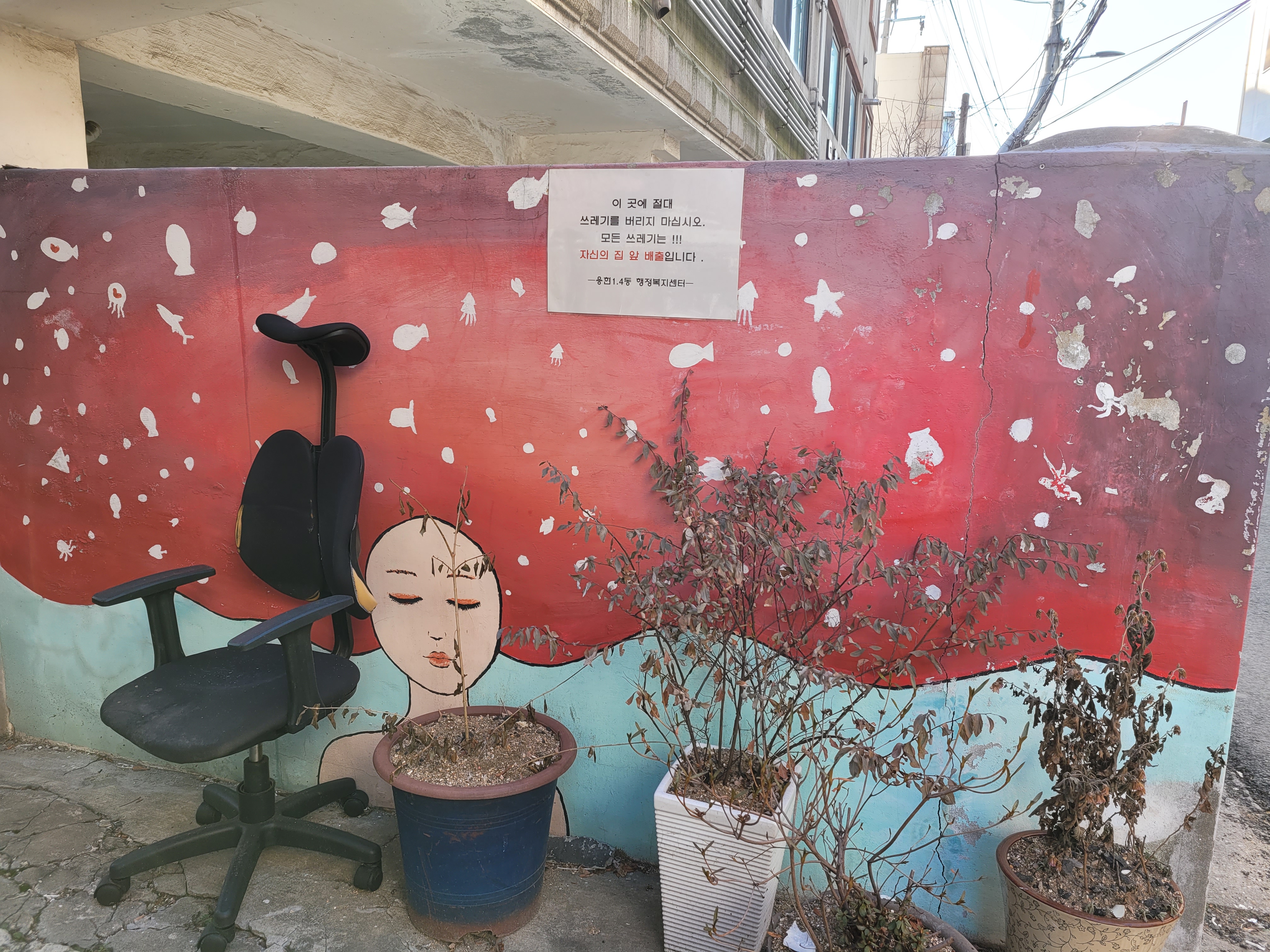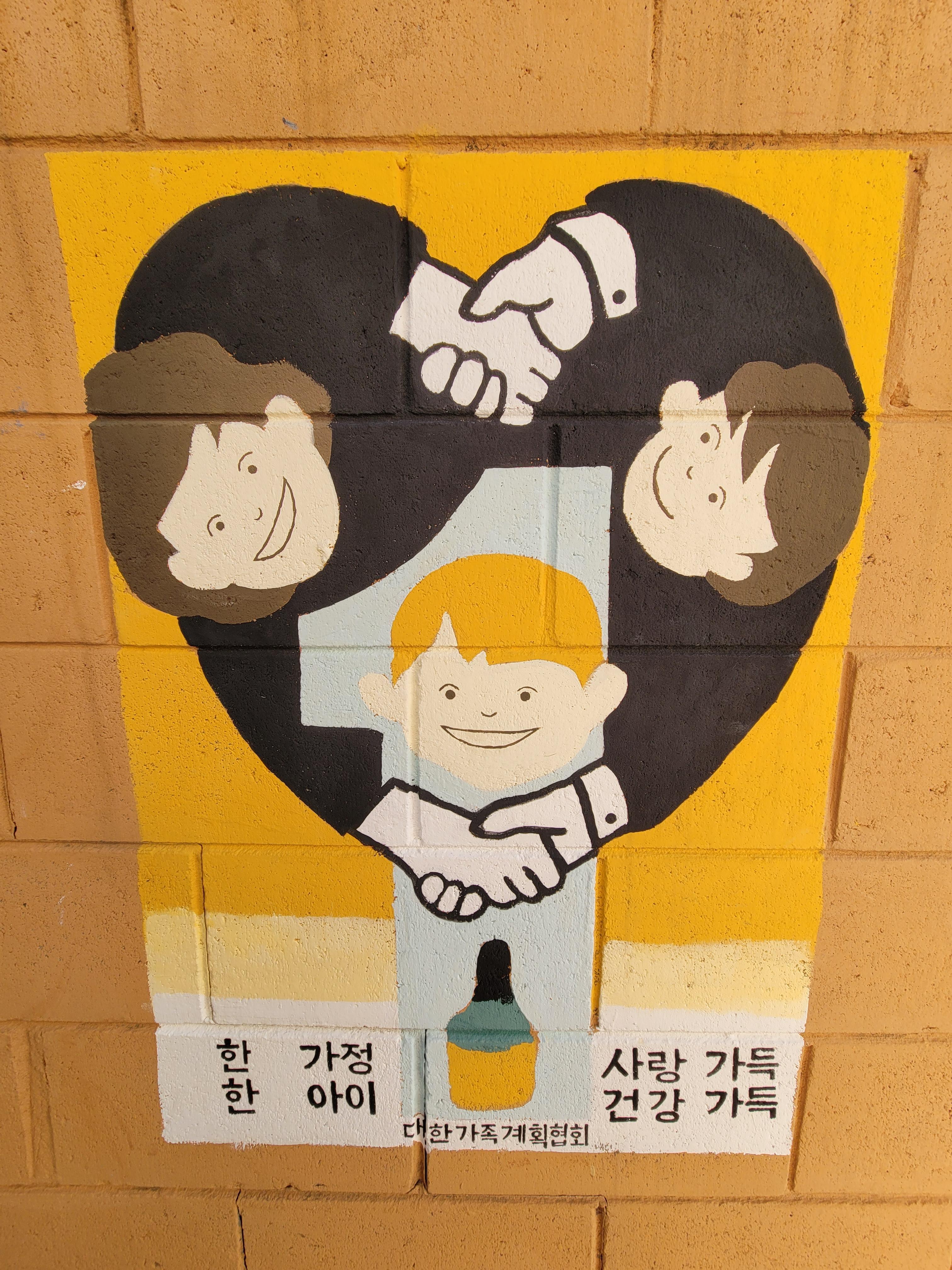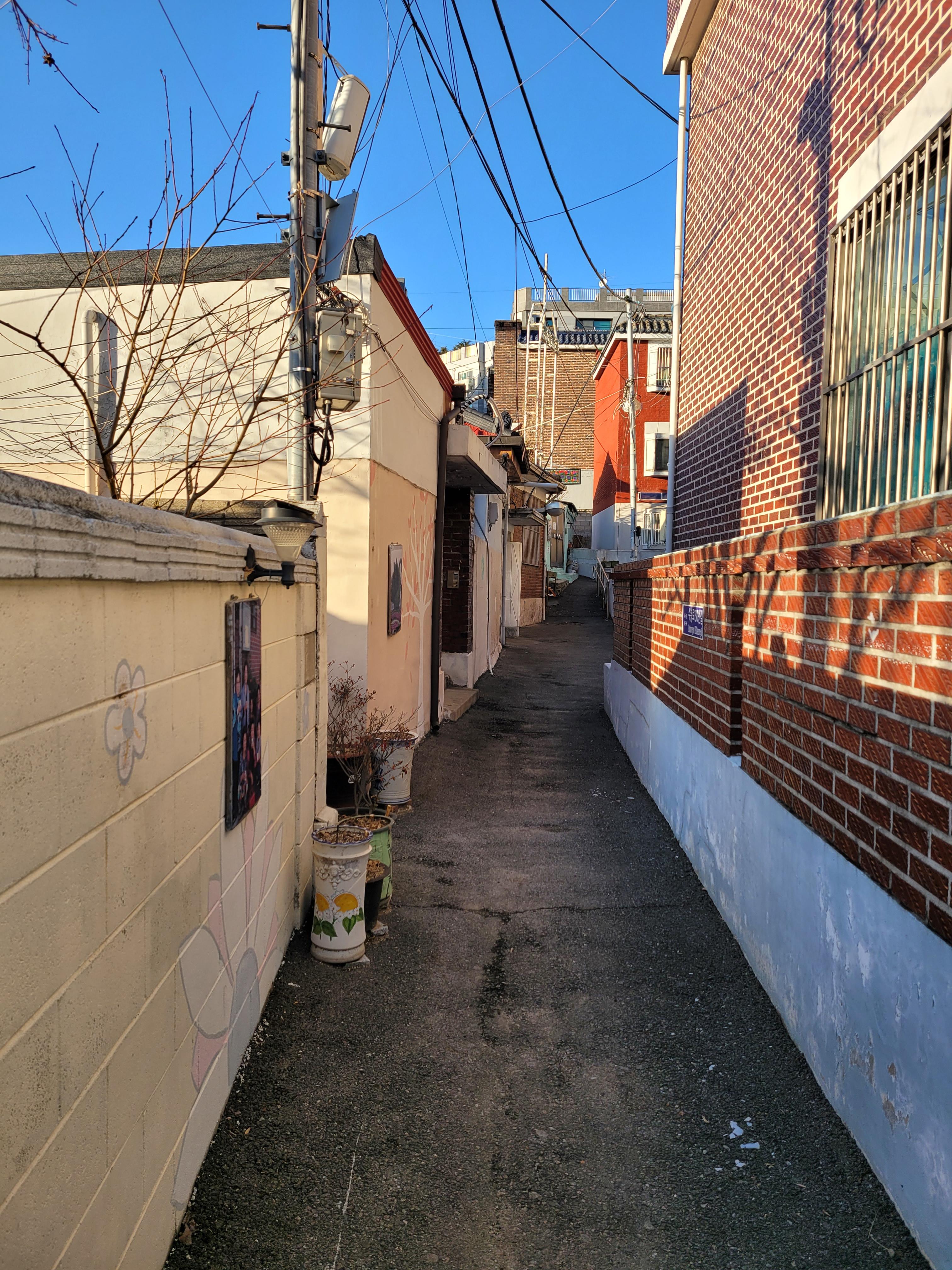 집이 1980년대 90년대 초반 수준으로 낡고 골목길이 비좁기는 했지만 집 담벼락 곳곳에 그려진