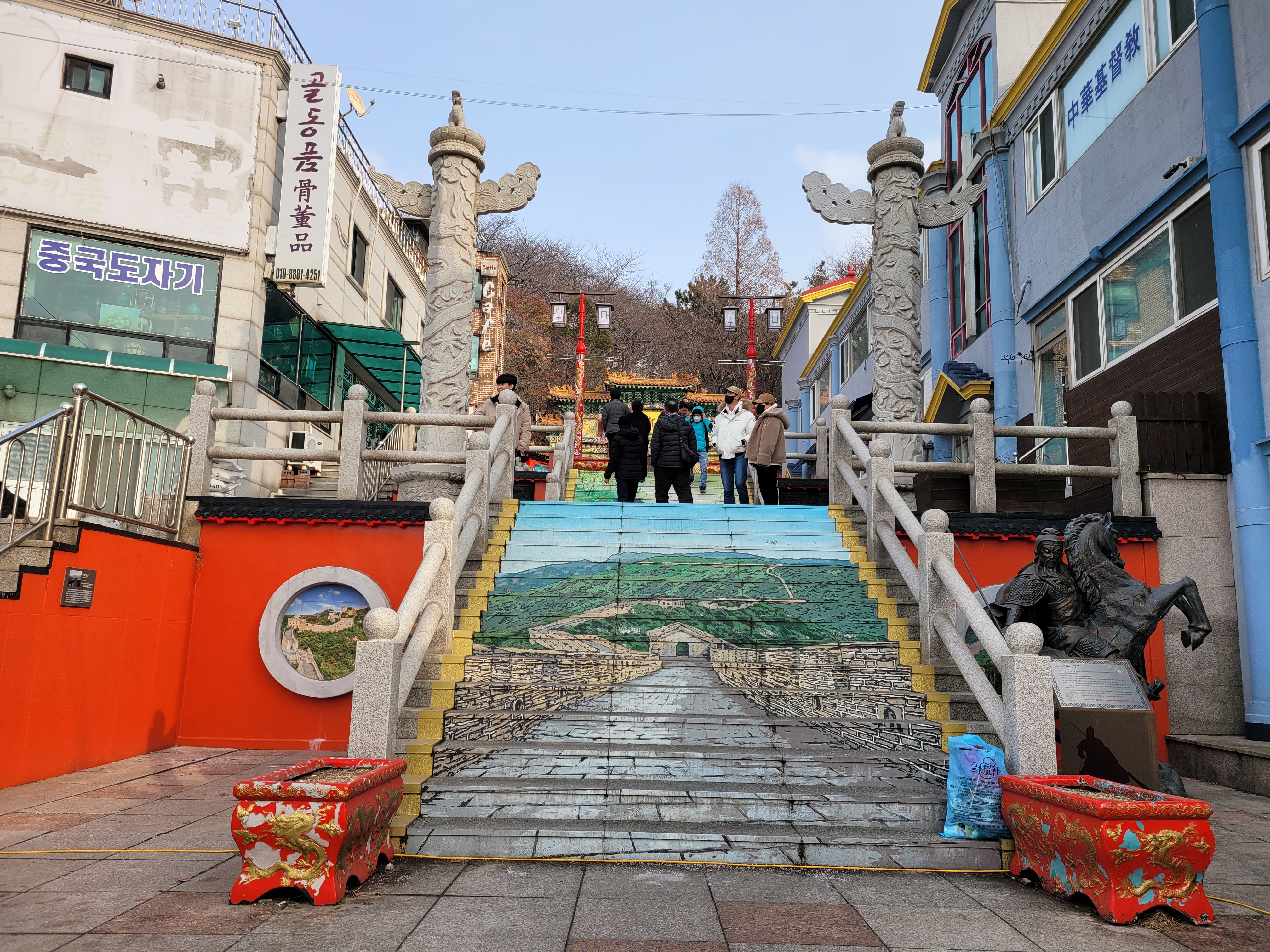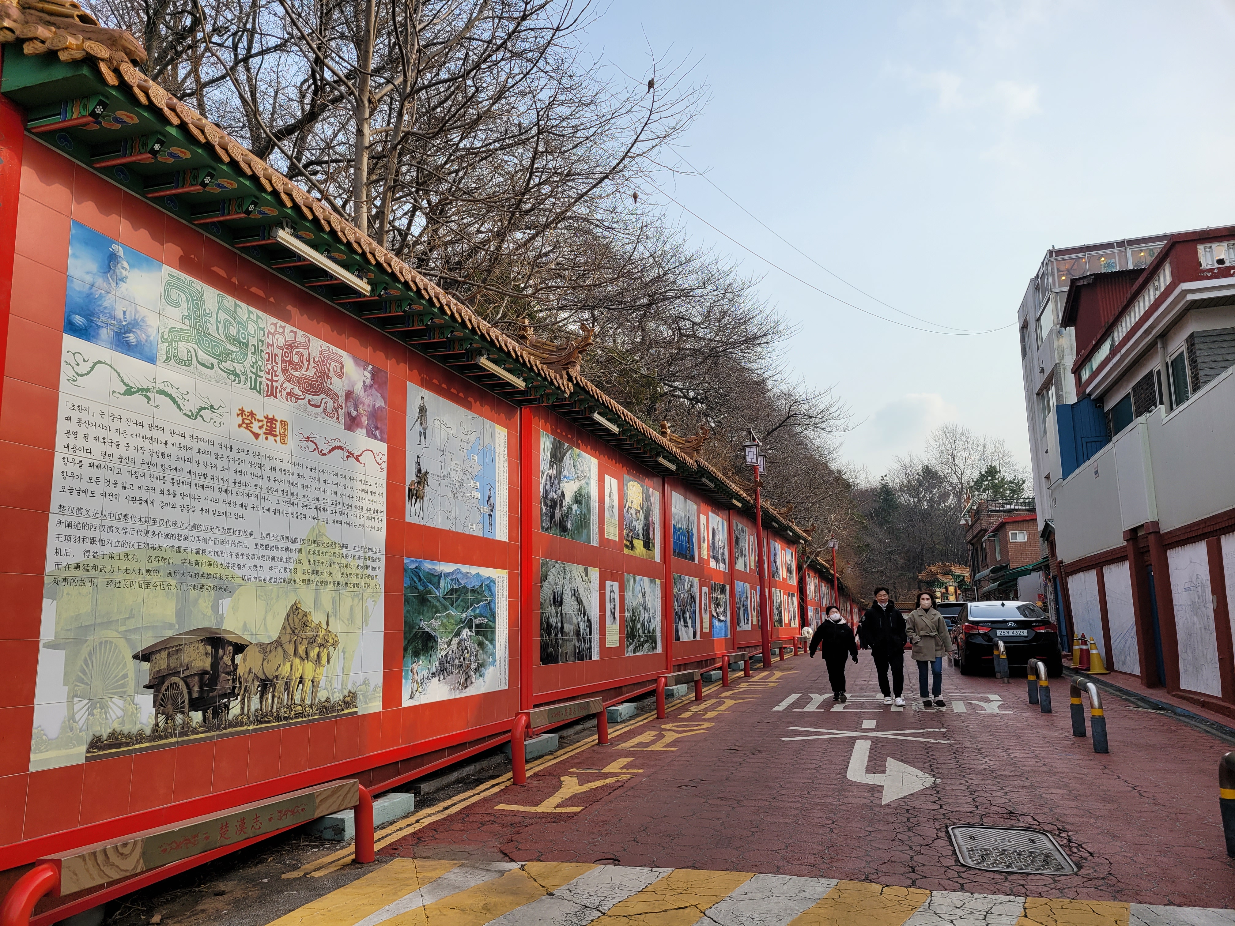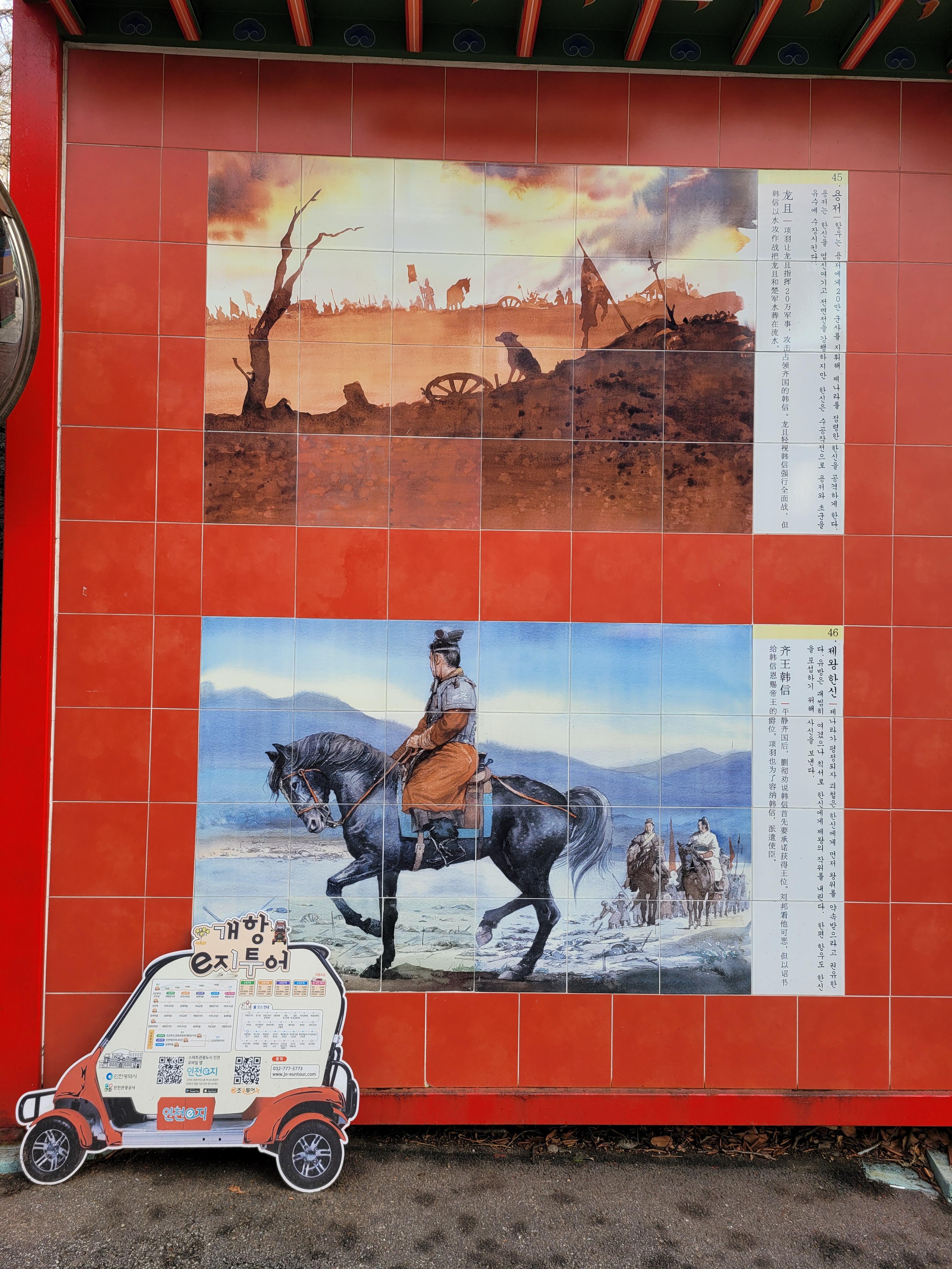 곳곳을 둘러보면서 초한지 삼국지 벽화 구경도 하고 짜장면 양꼬치 만두 등 파는 곳들도