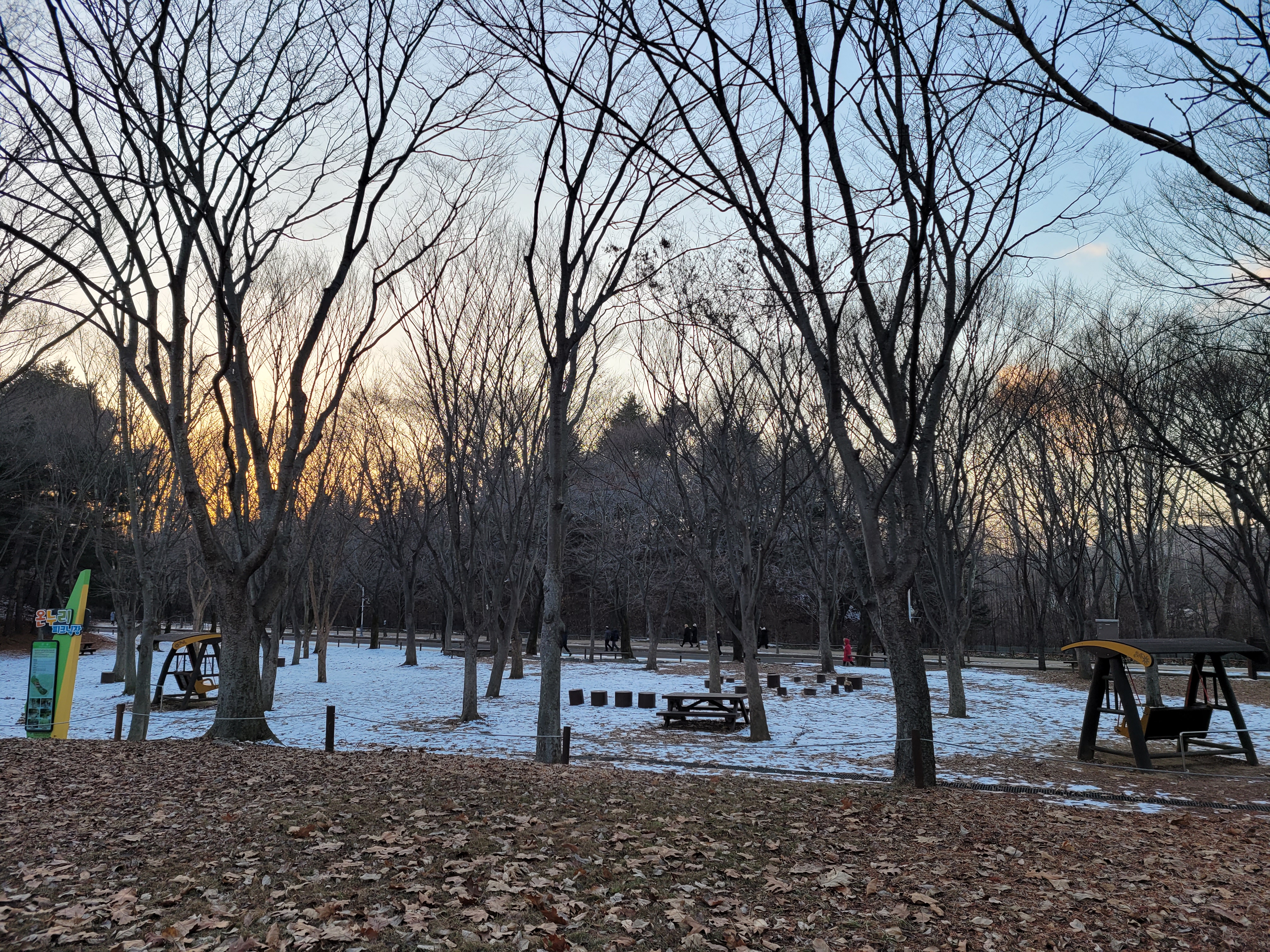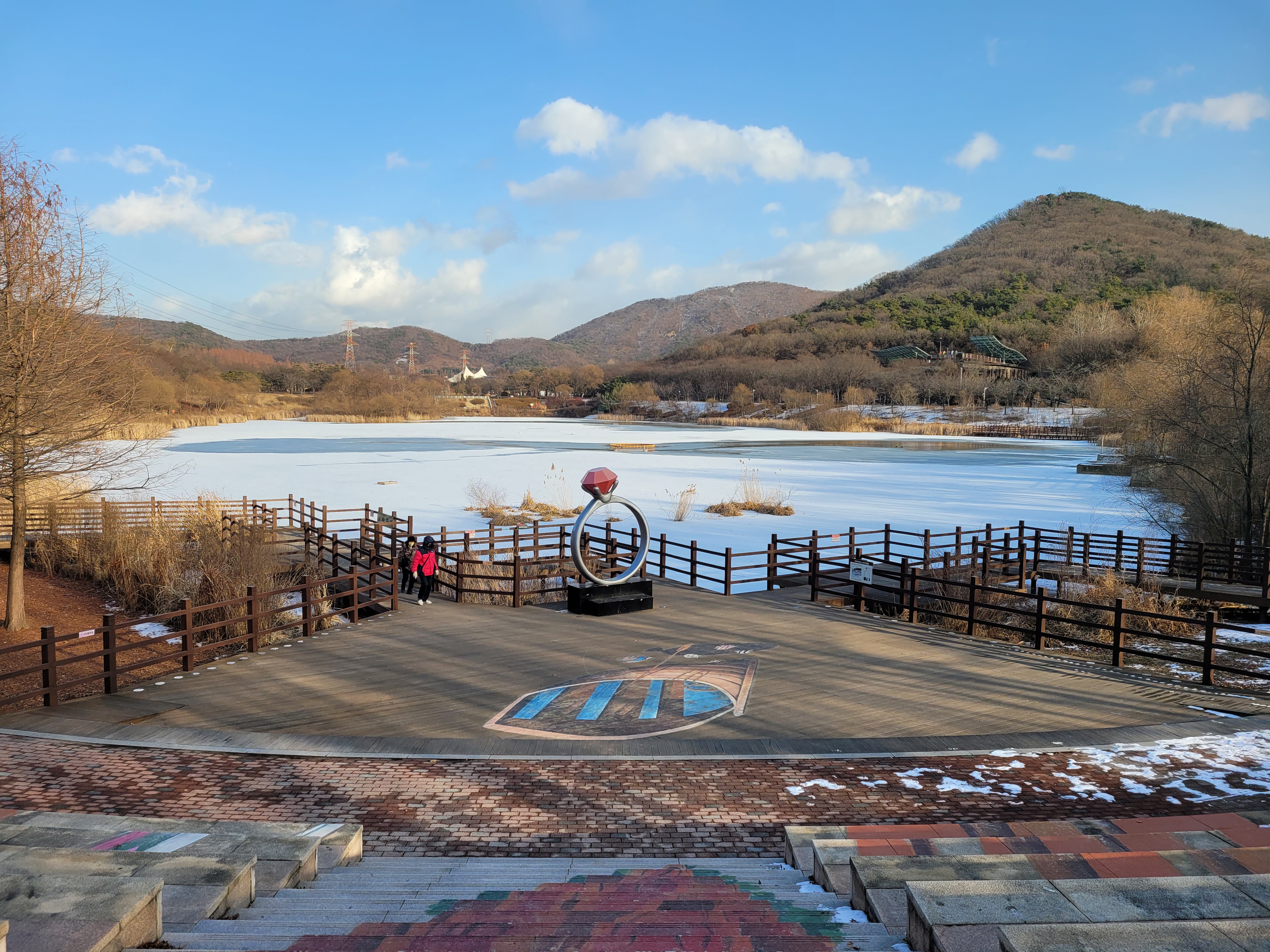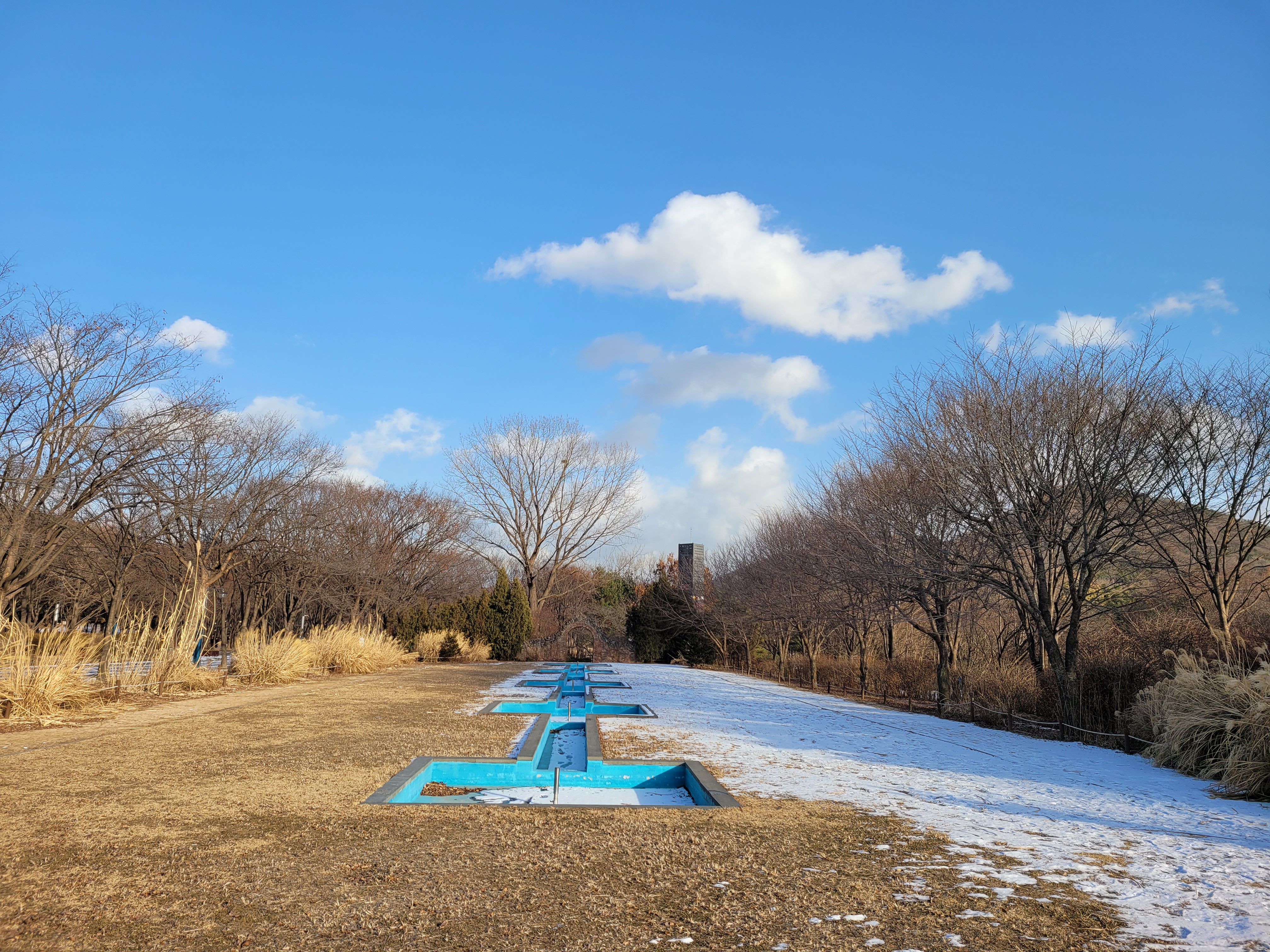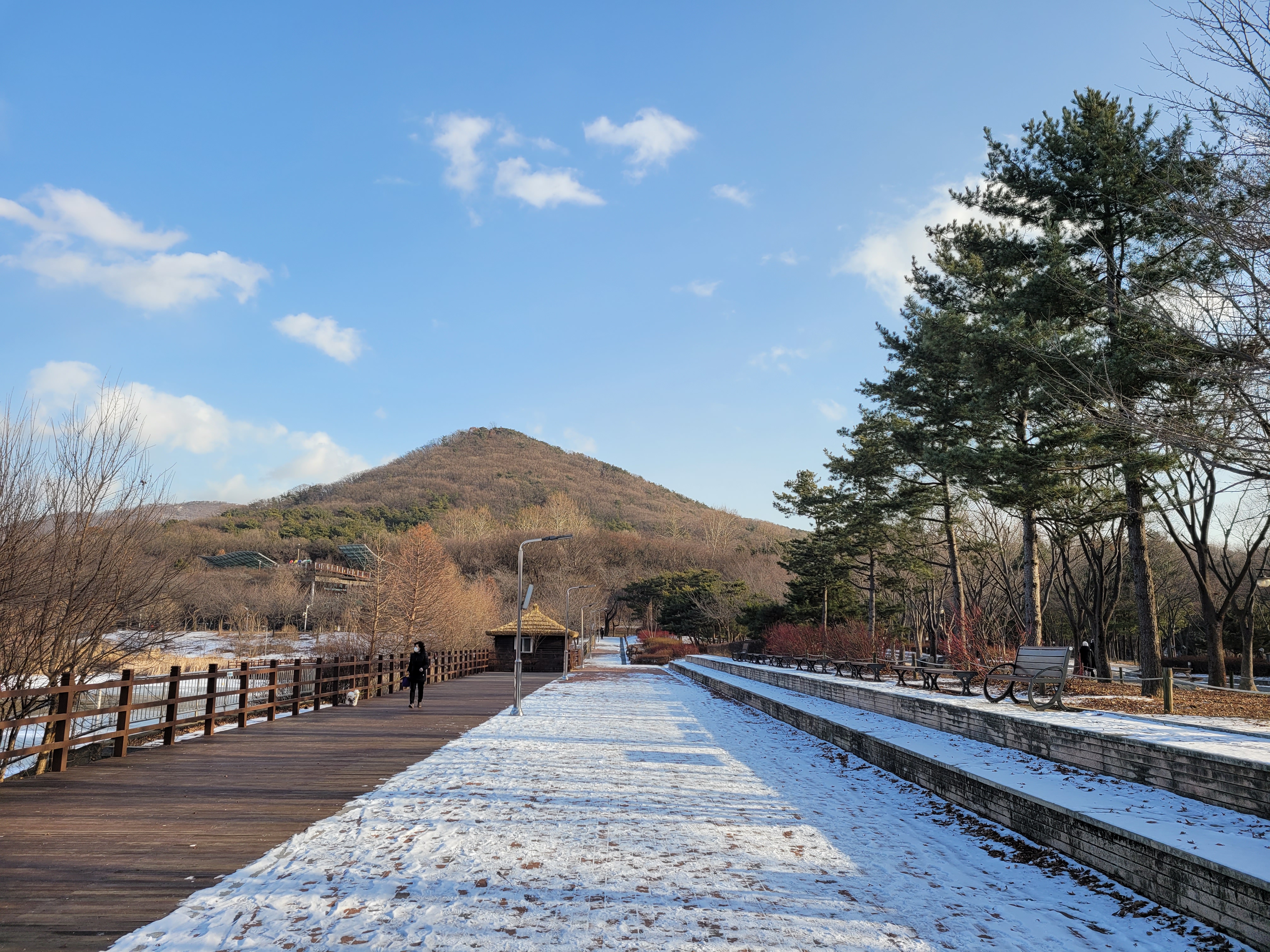 며칠 전에 폭설이 내렸던 눈이 아직 공원 곳곳에 쌓여있는 모습을 보니 겨울이 실감나네요.