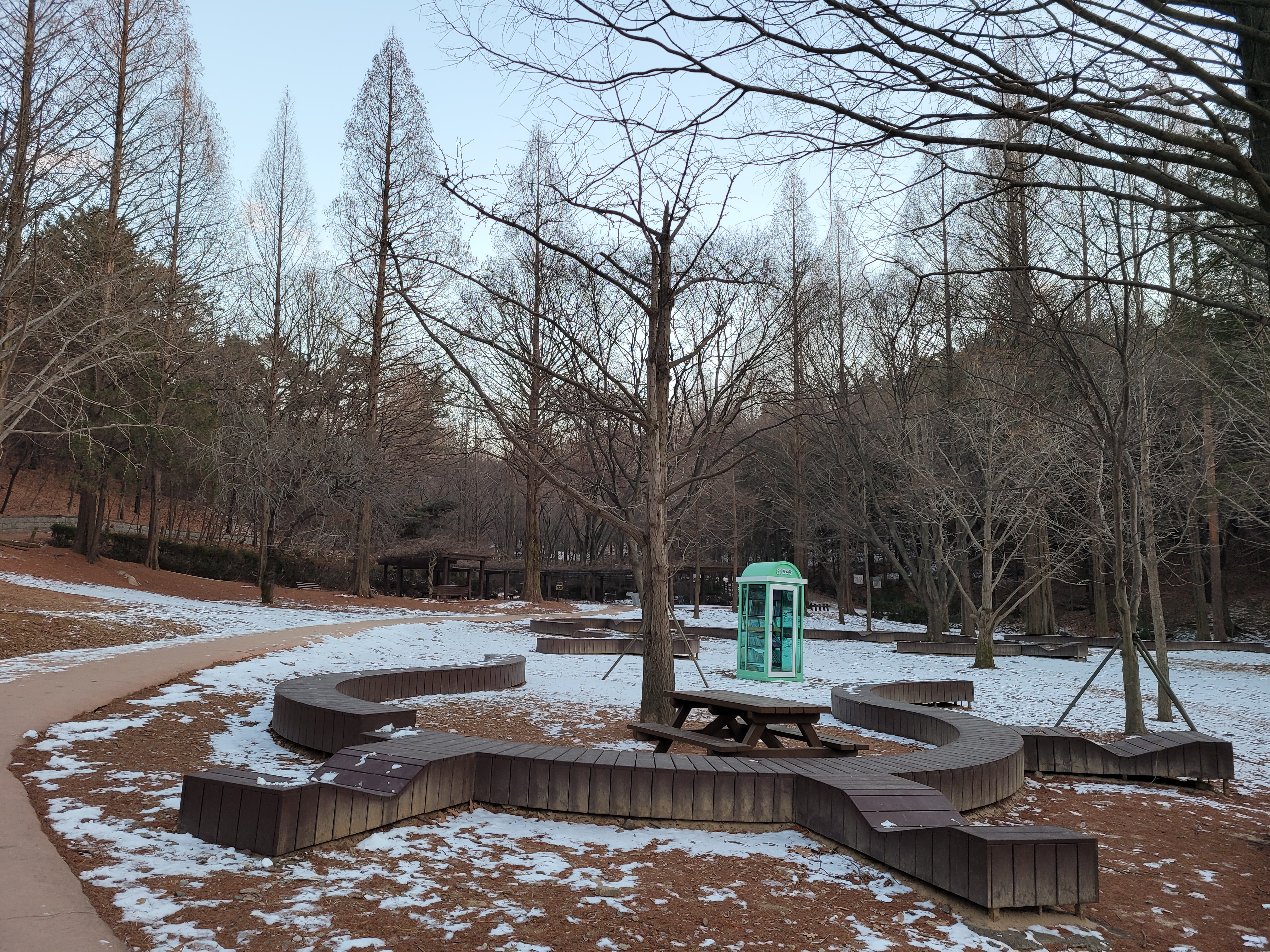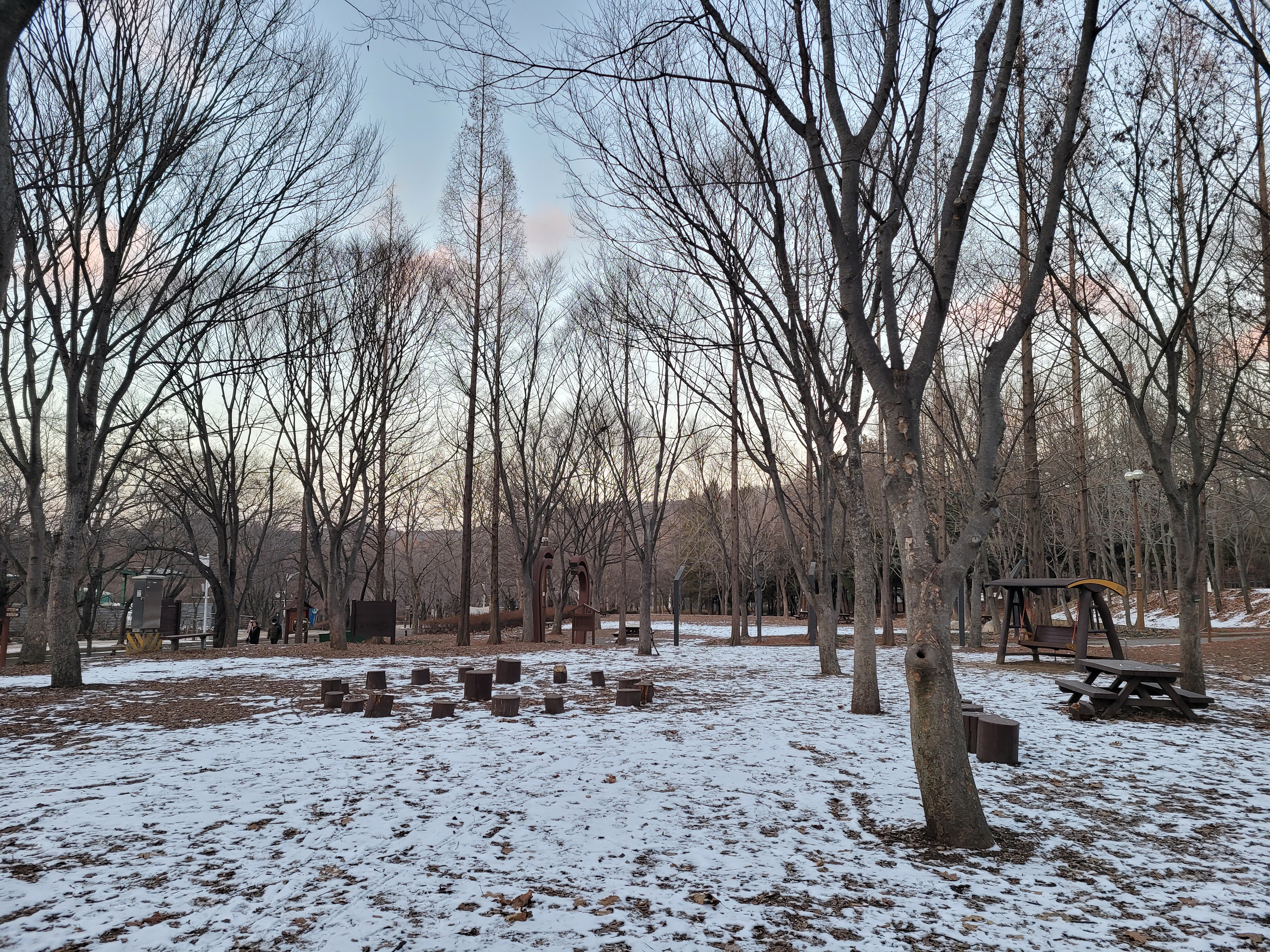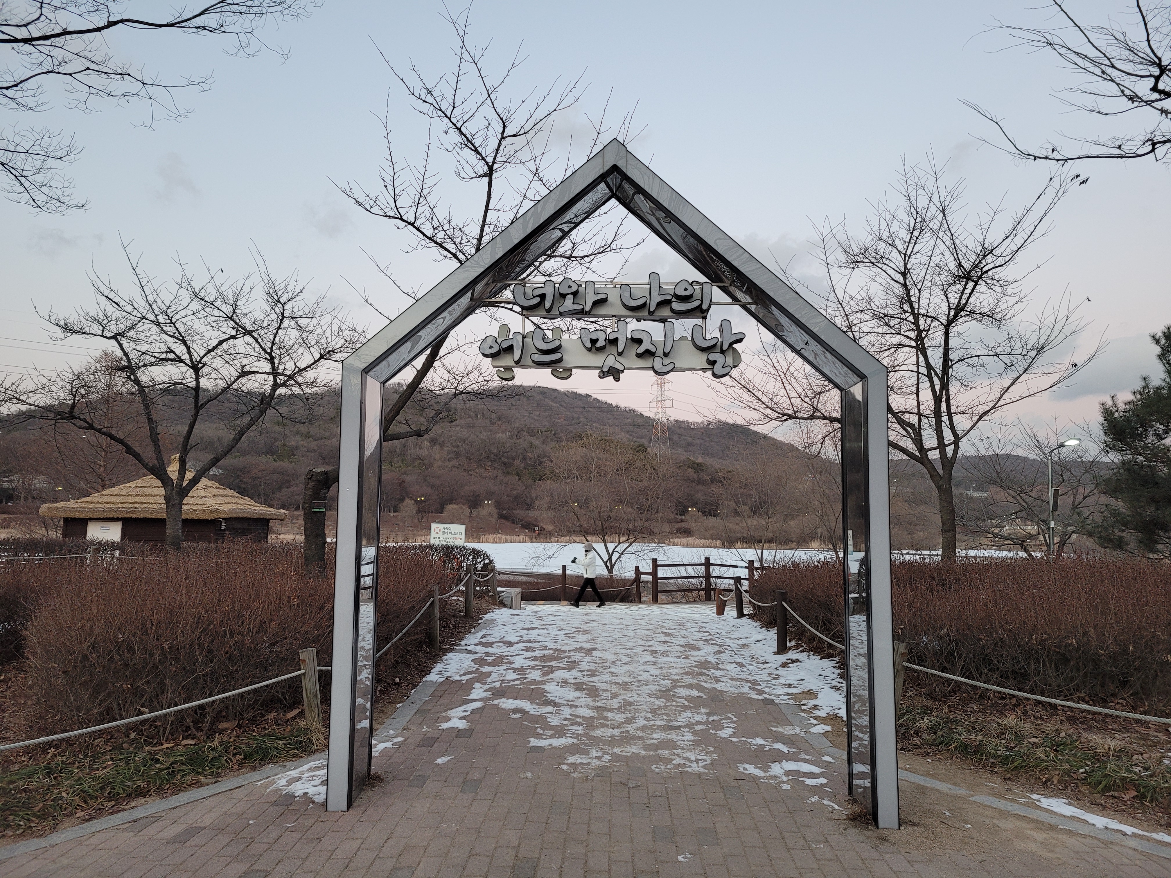 며칠 전에 폭설이 내렸던 눈이 아직 공원 곳곳에 쌓여있는 모습을 보니 겨울이 실감나네요.