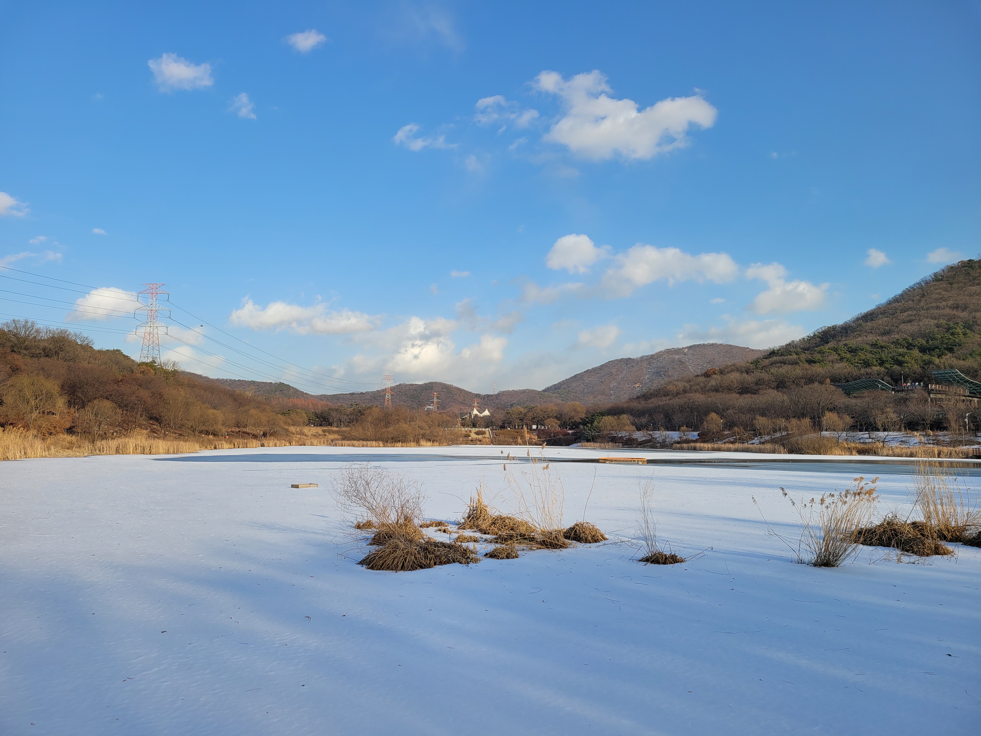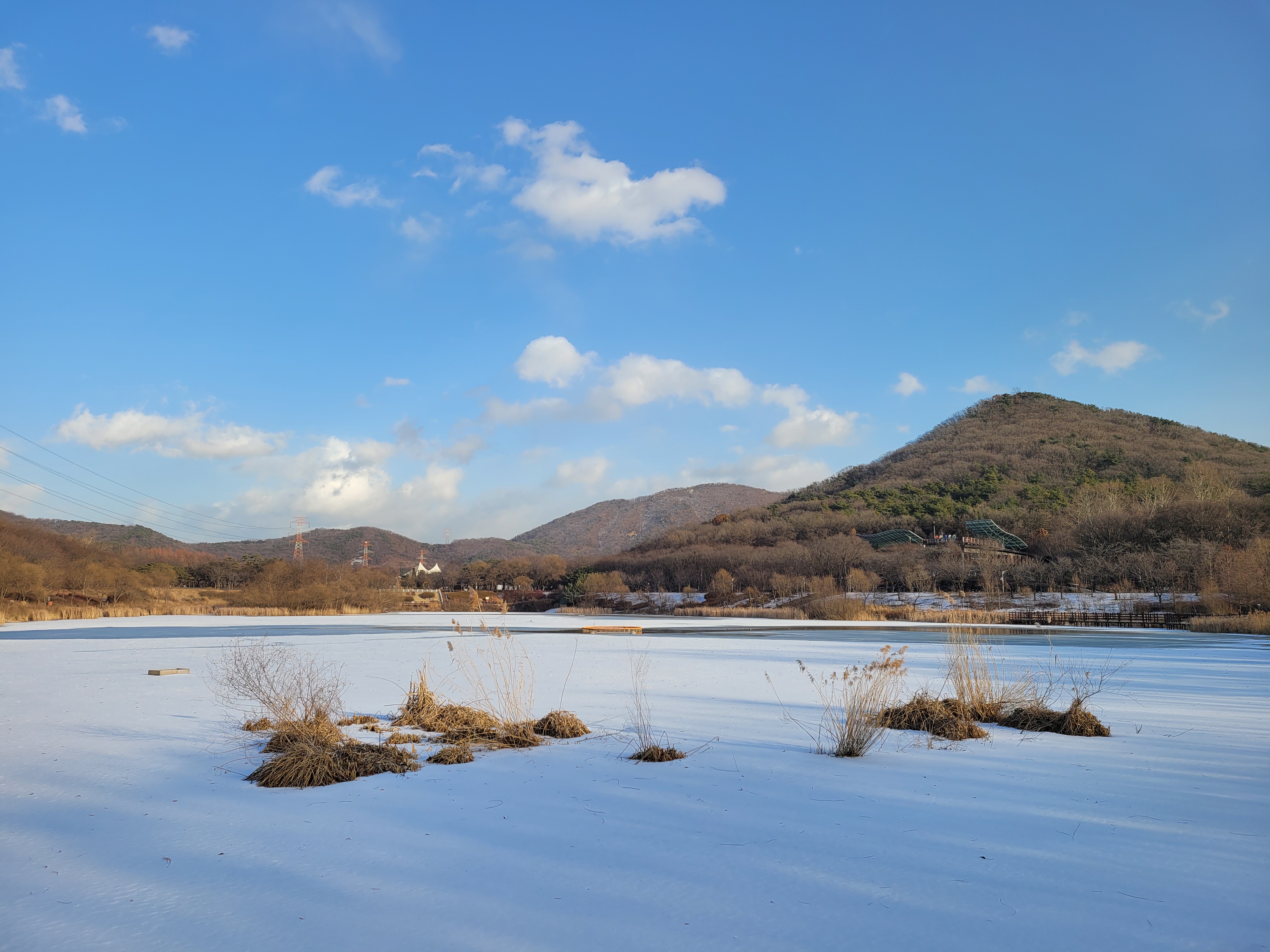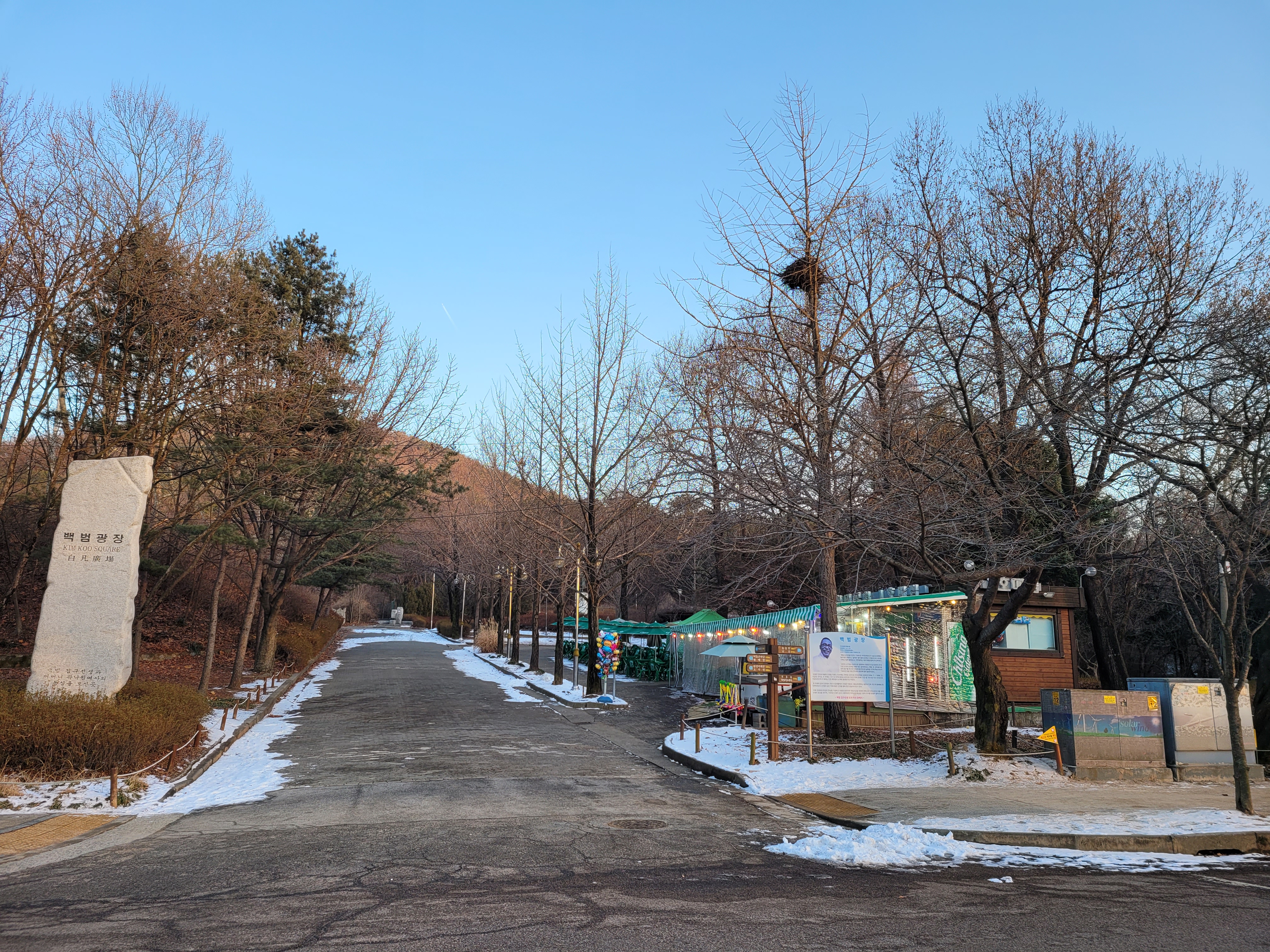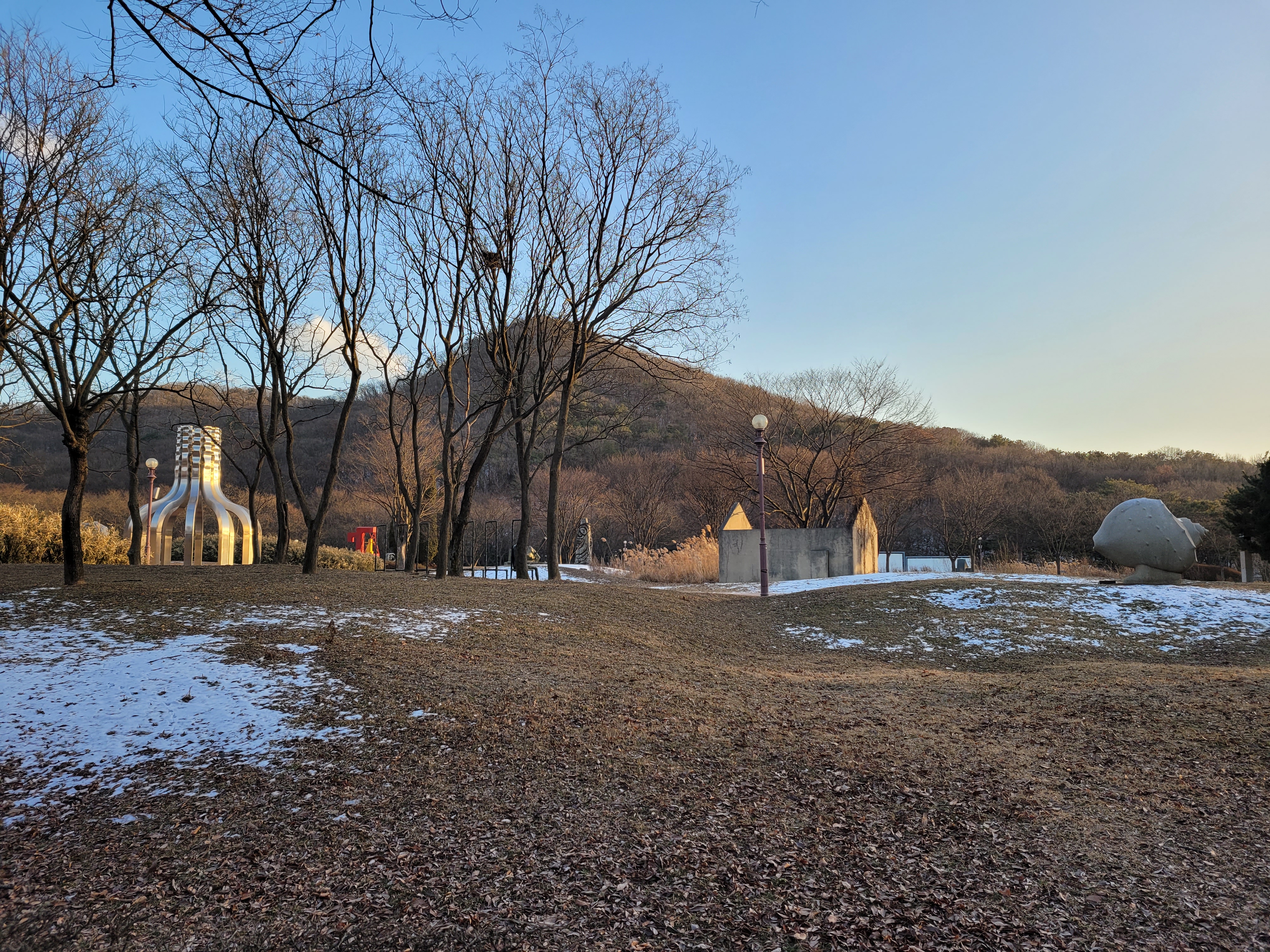 며칠 전에 폭설이 내렸던 눈이 아직 공원 곳곳에 쌓여있는 모습을 보니 겨울이 실감나네요.