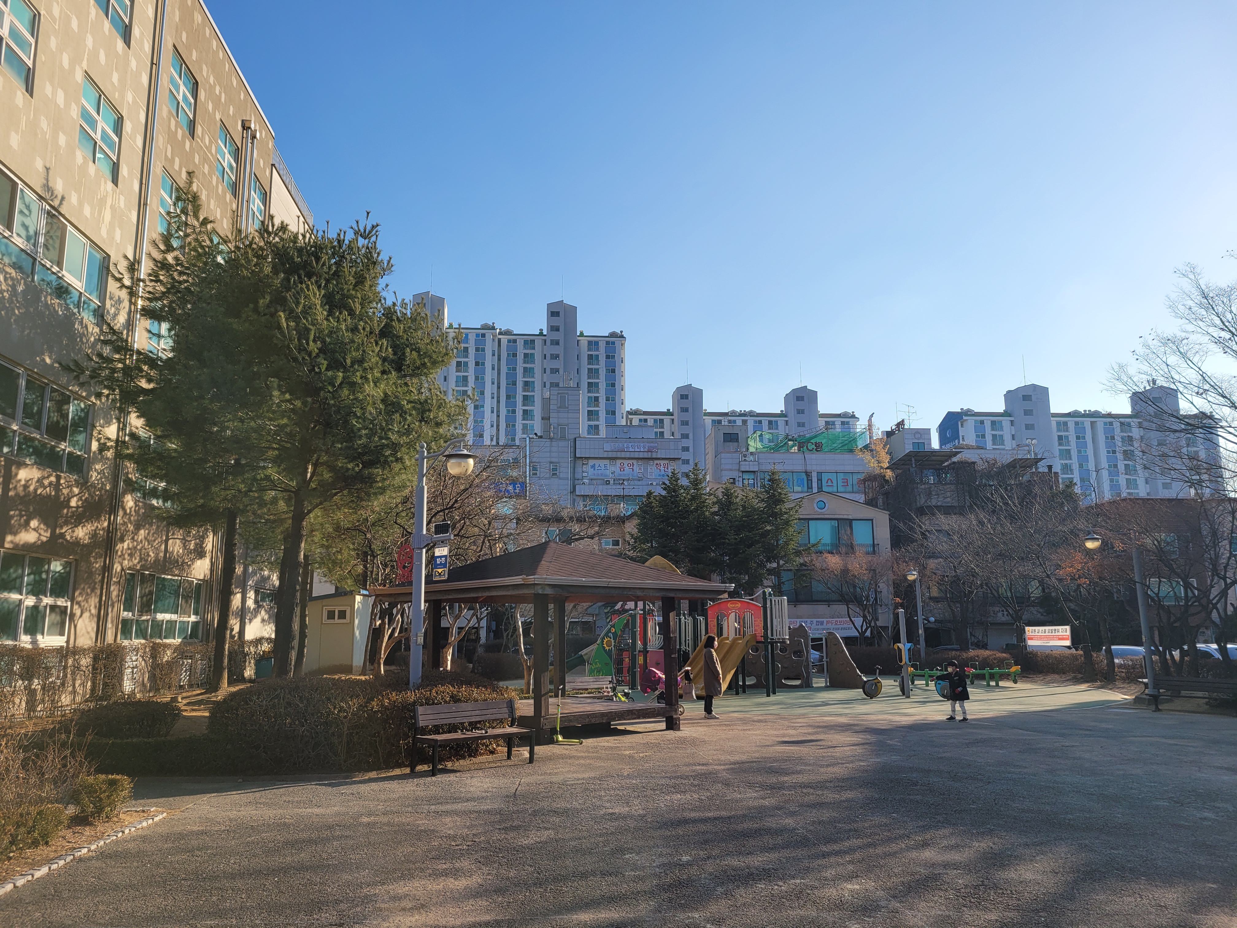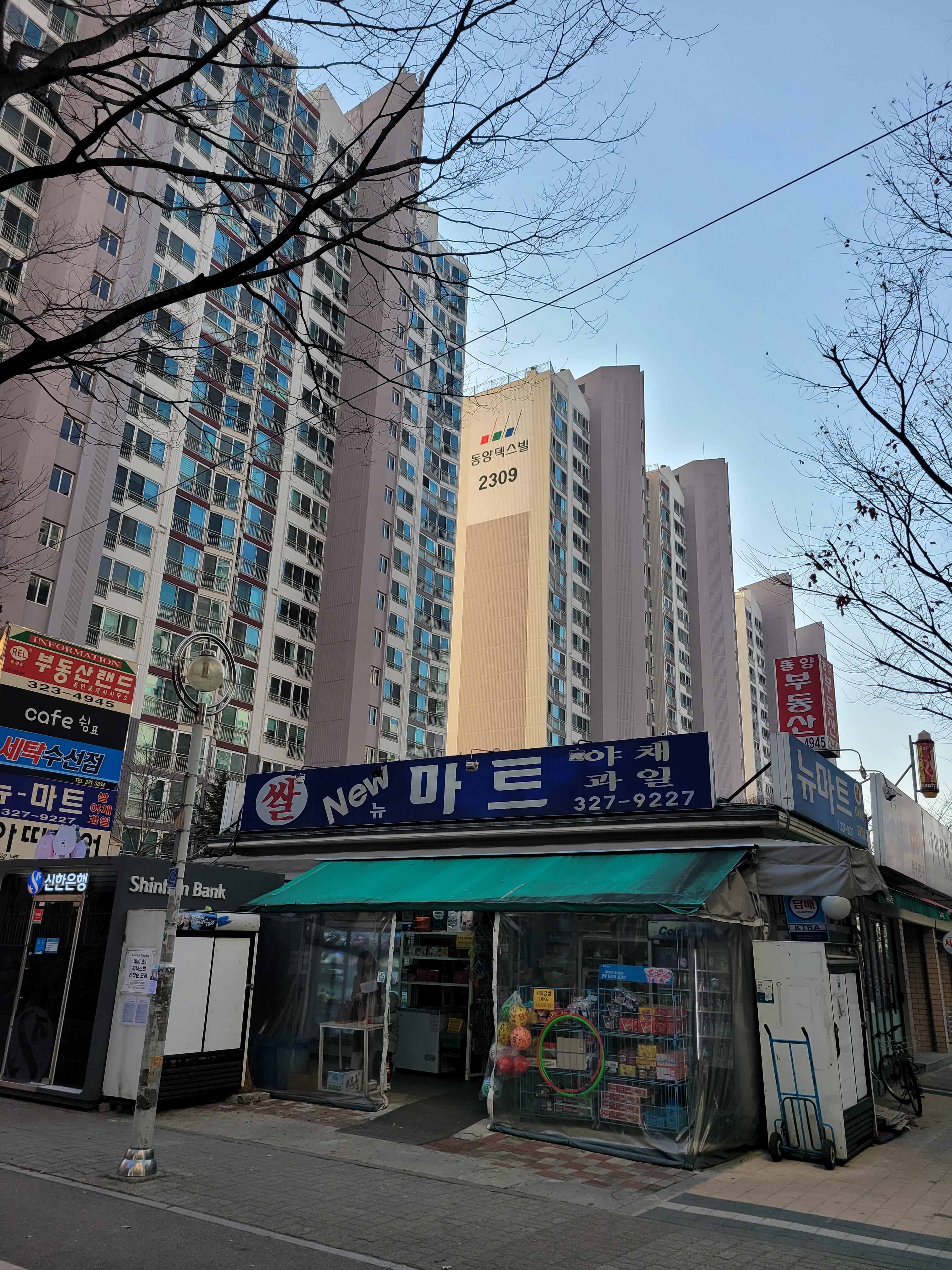 상동 호수마을 앞쪽은 상동역과 가까운 번화가에 뒷쪽은 굴포천 생태길이