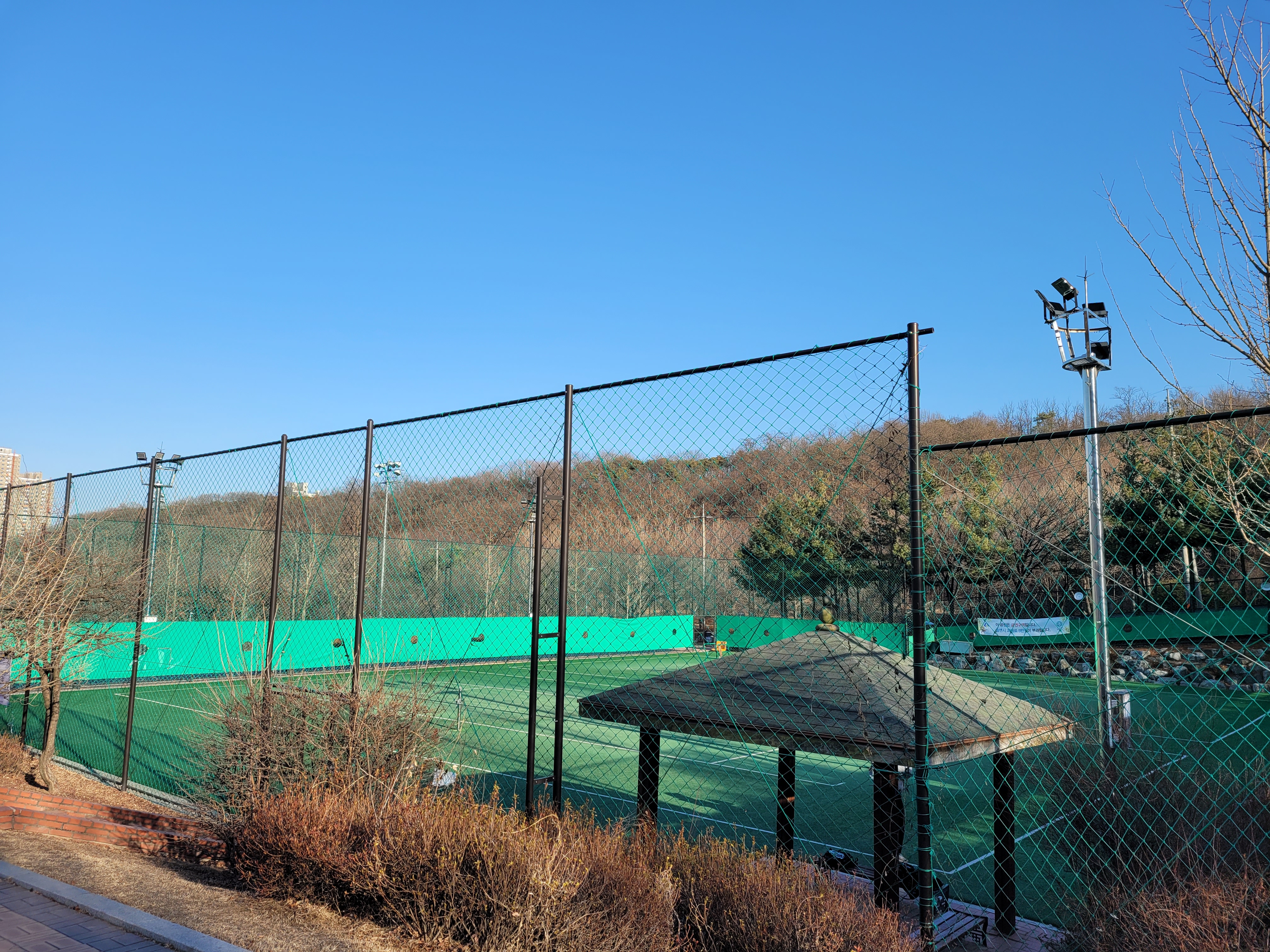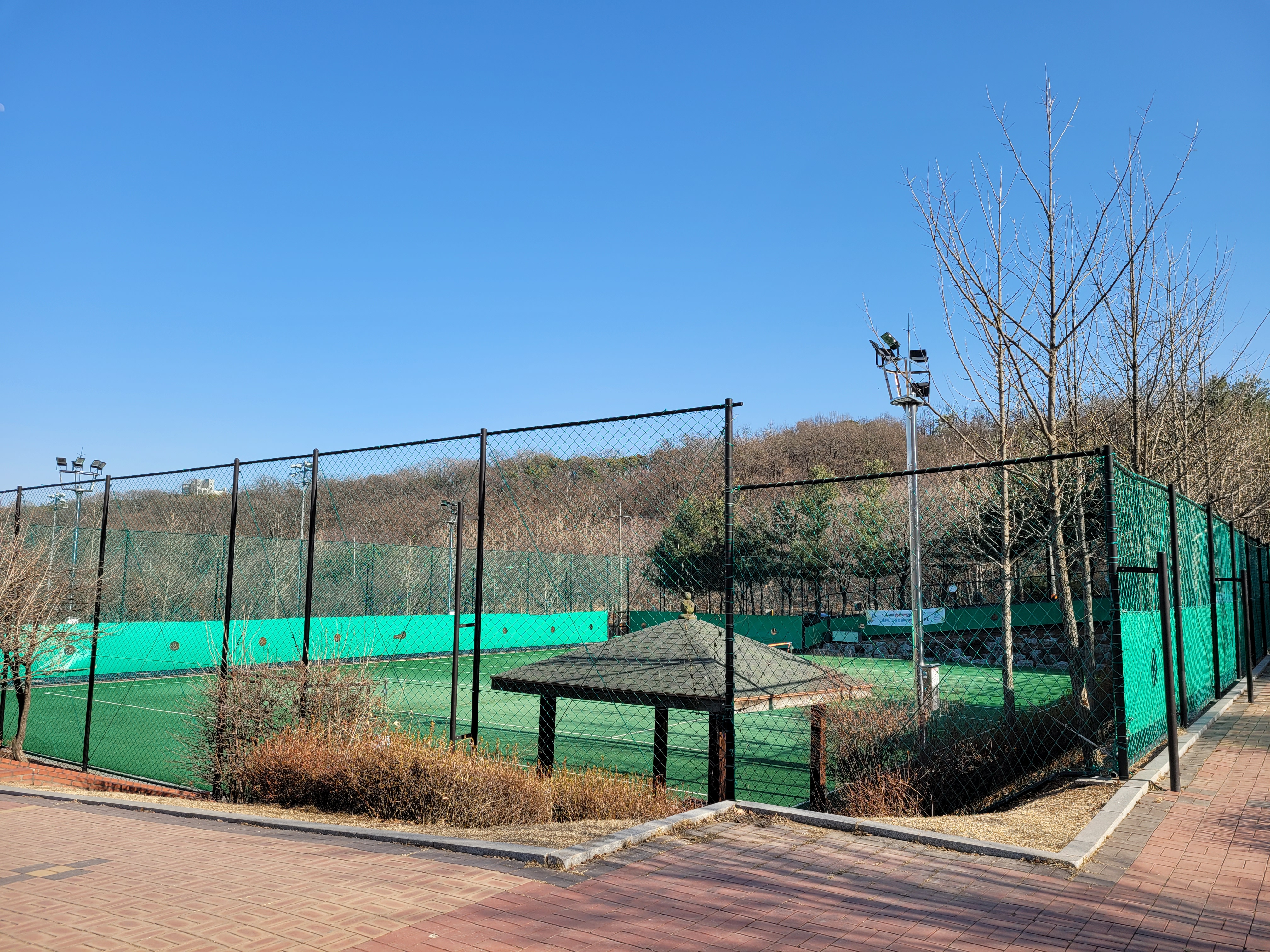 체육공원도 한바퀴 둘러봤는데 테니스 연습하는 사람들이 있었더군요.