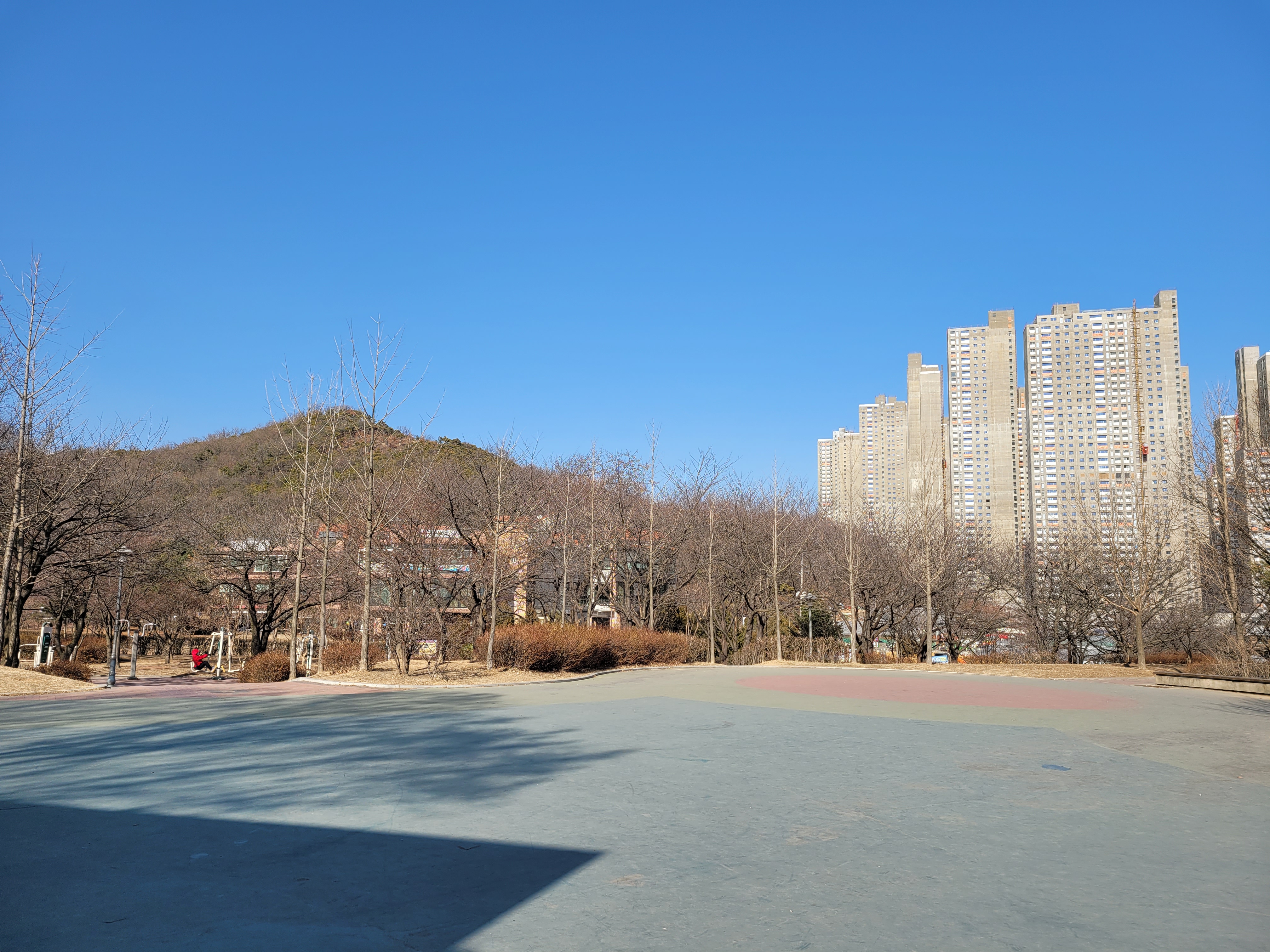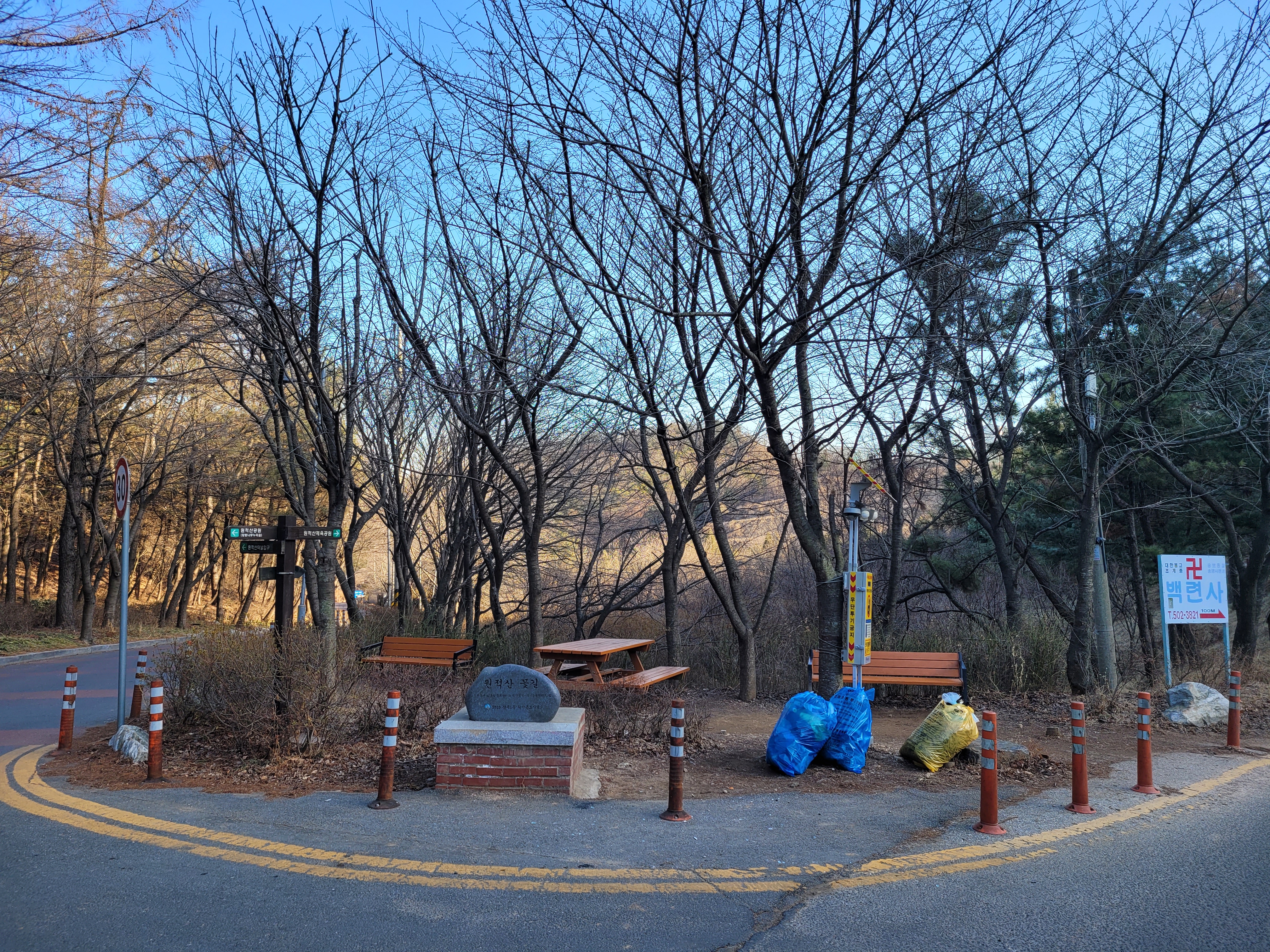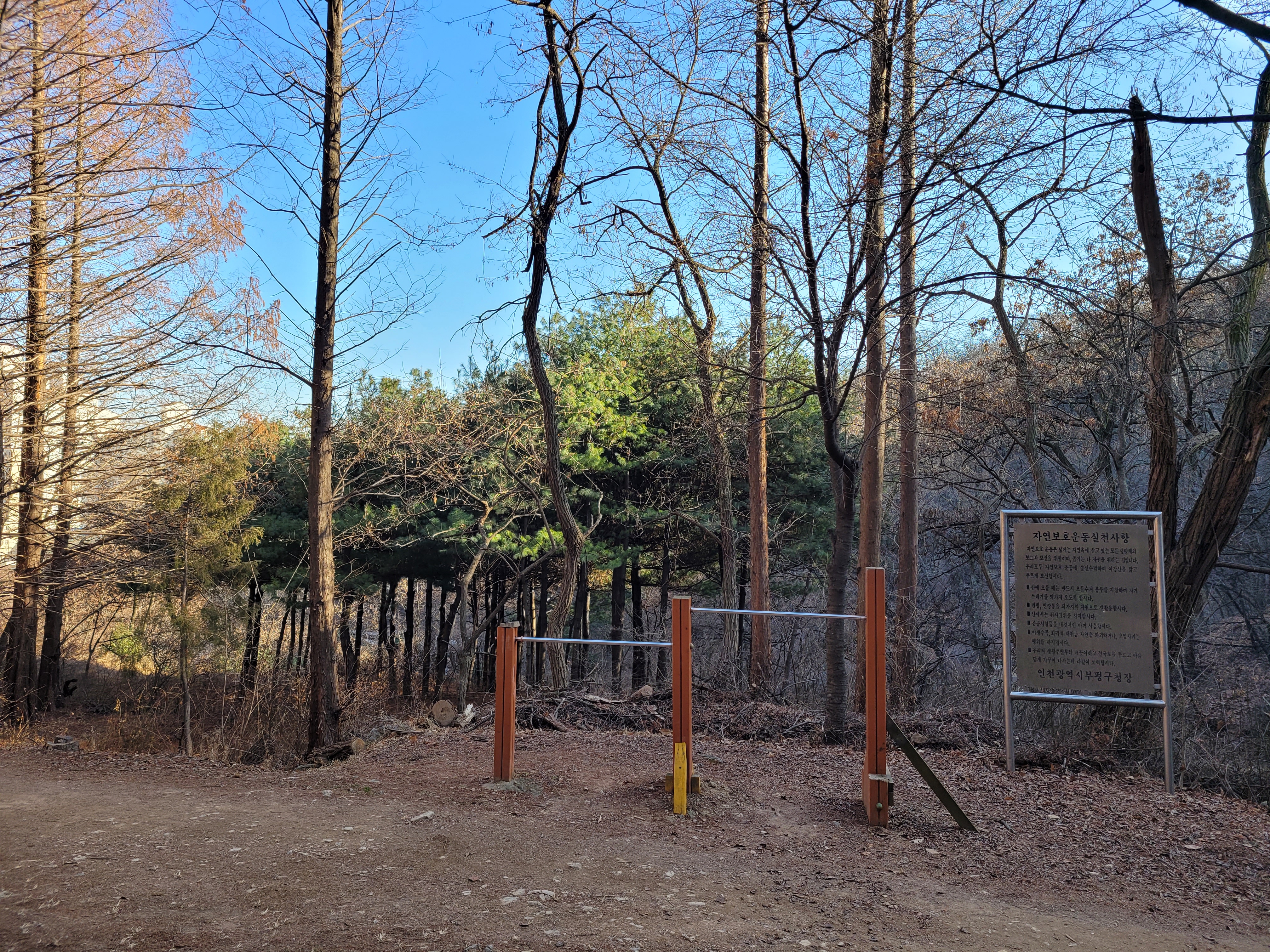 조심해서 내려와야했네요. 하산을 하니까 근처에 원적산 체육공원이 나타나서 원적산