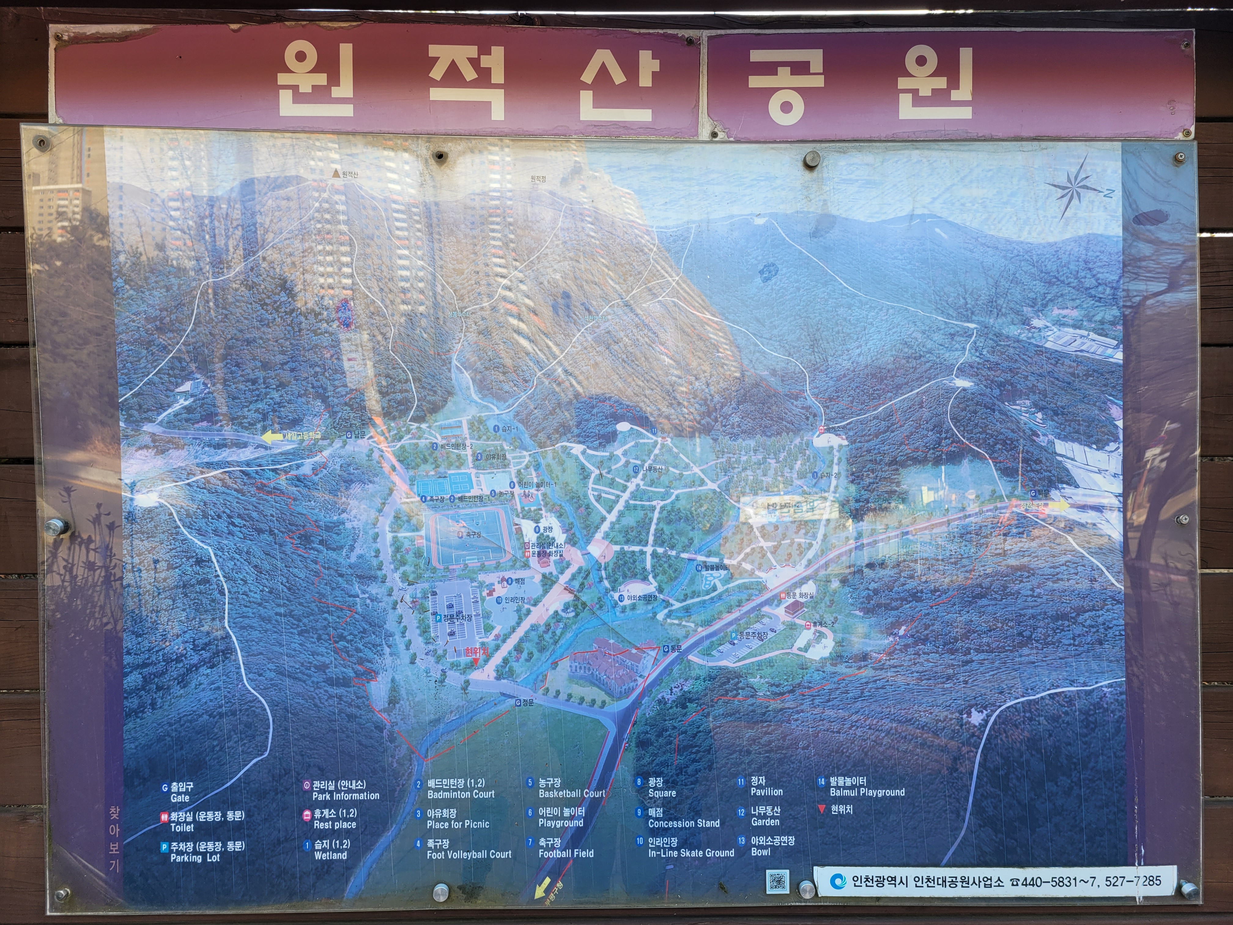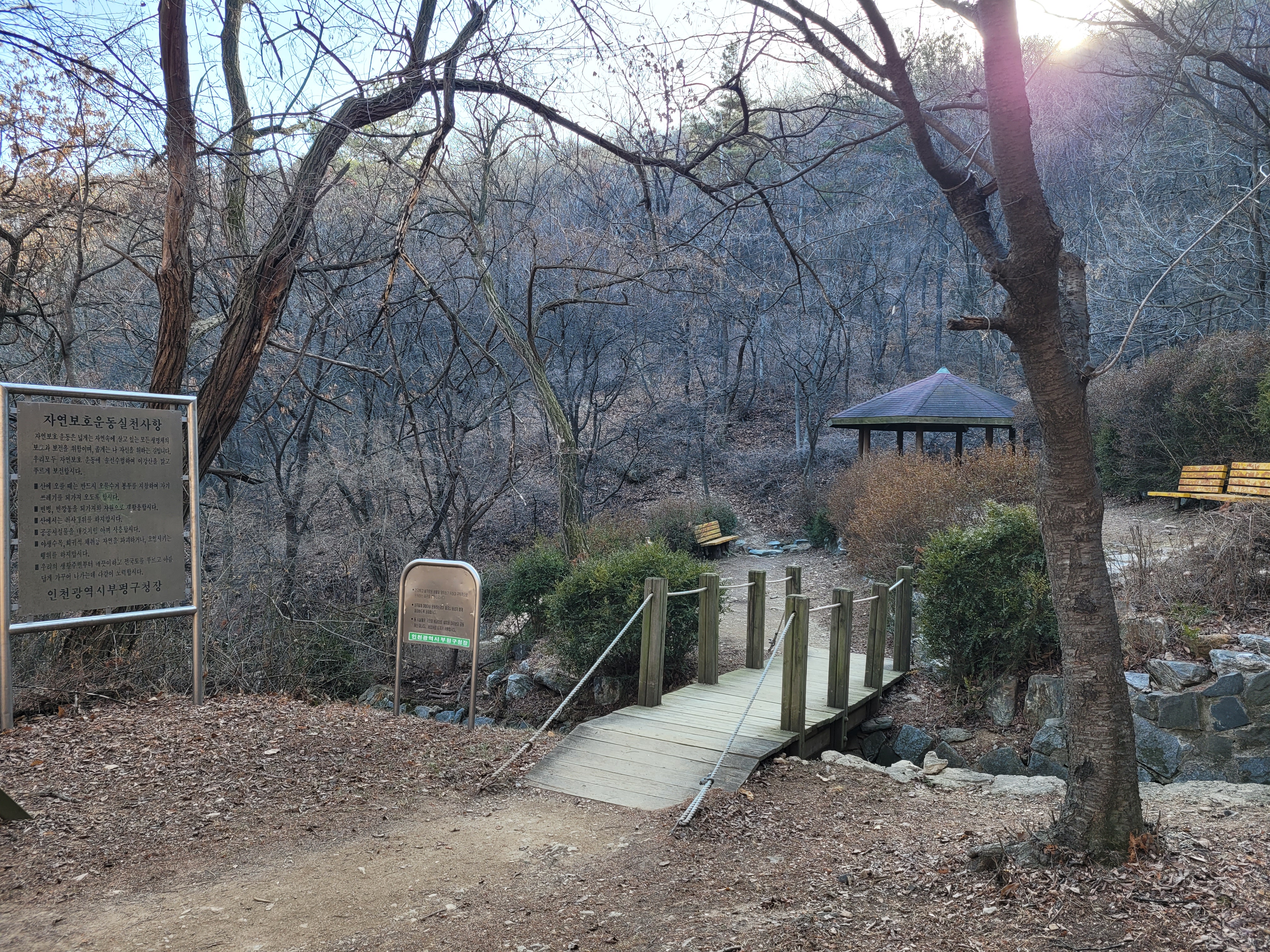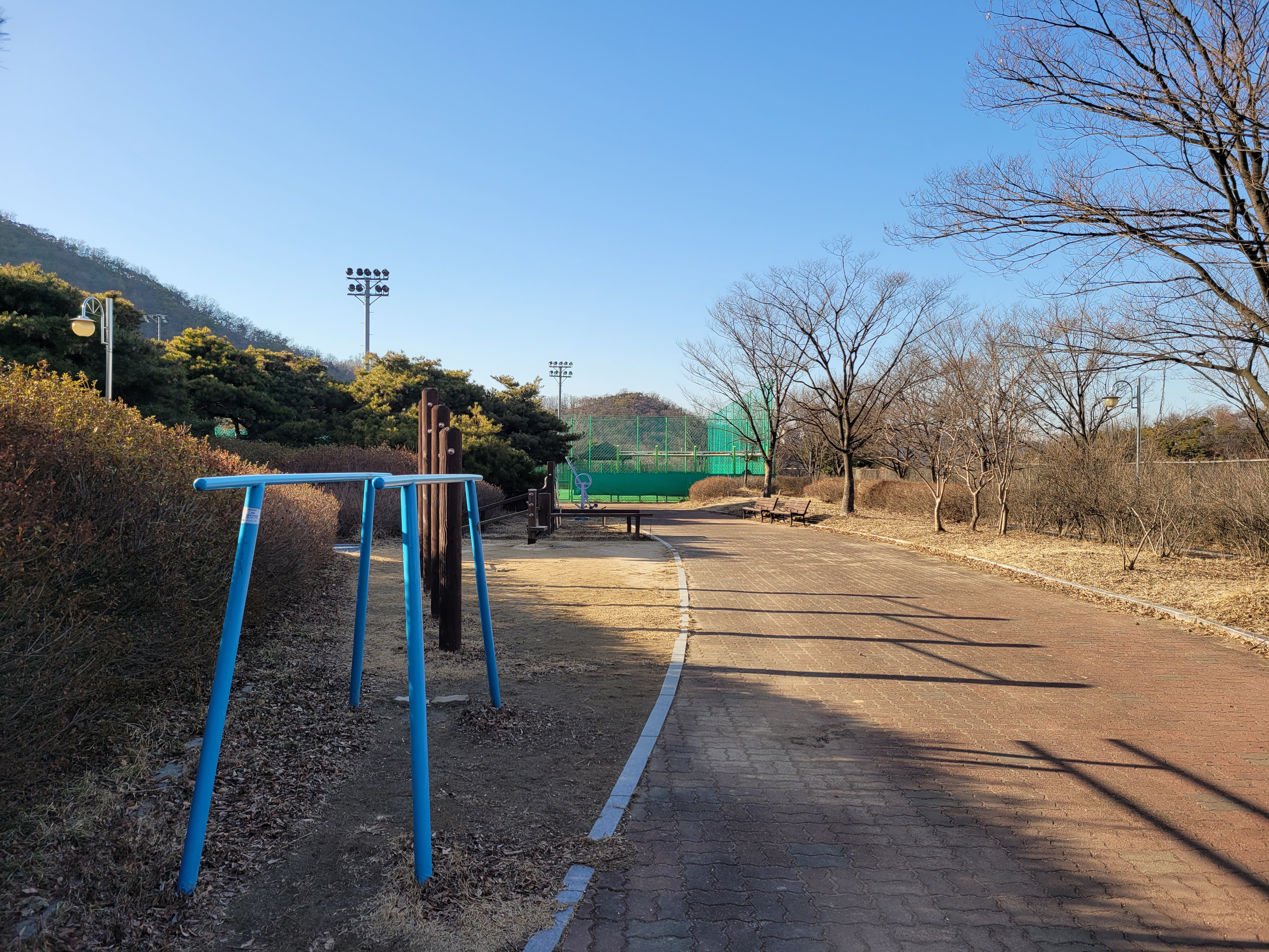 조심해서 내려와야했네요. 하산을 하니까 근처에 원적산 체육공원이 나타나서 원적산