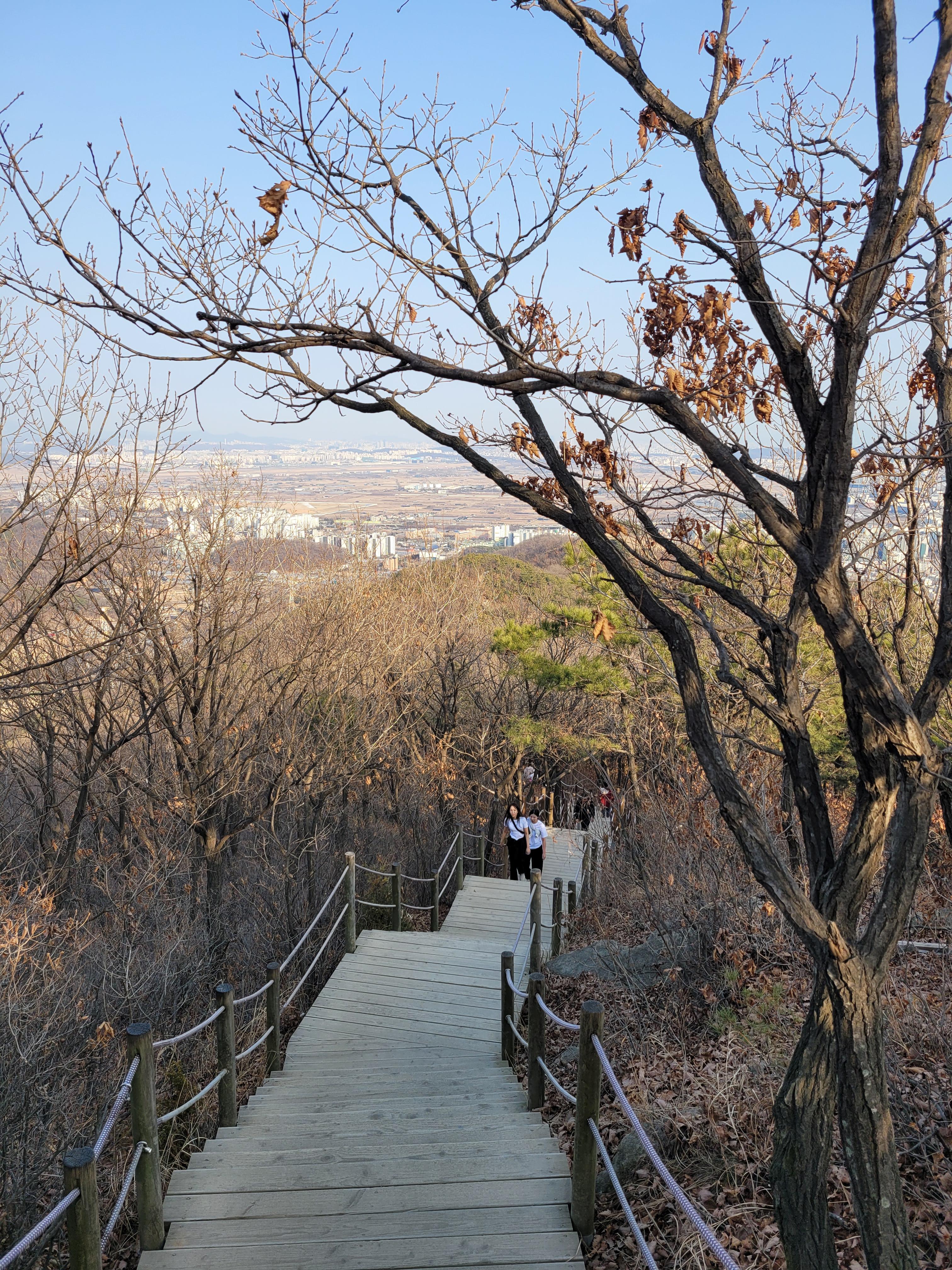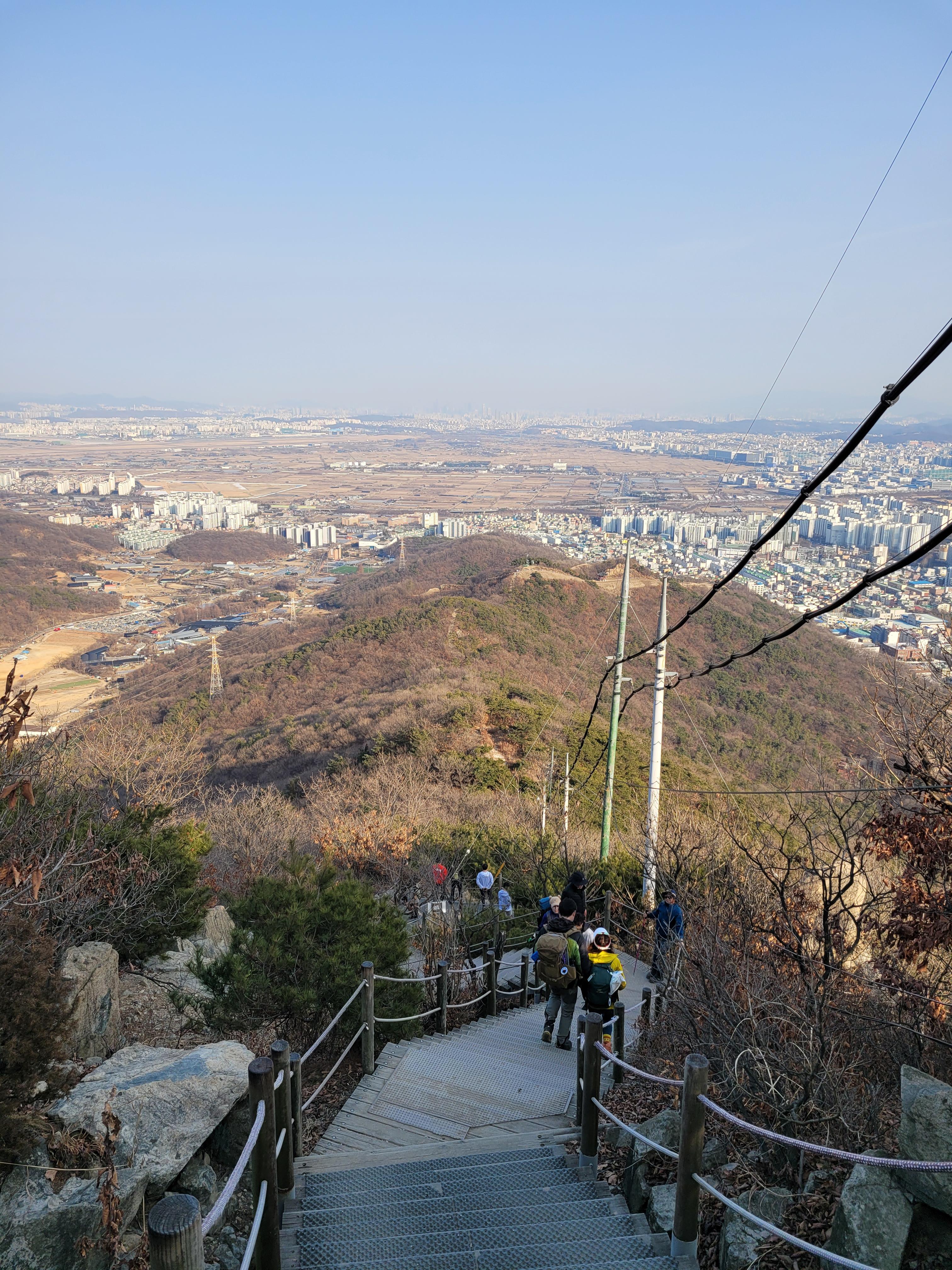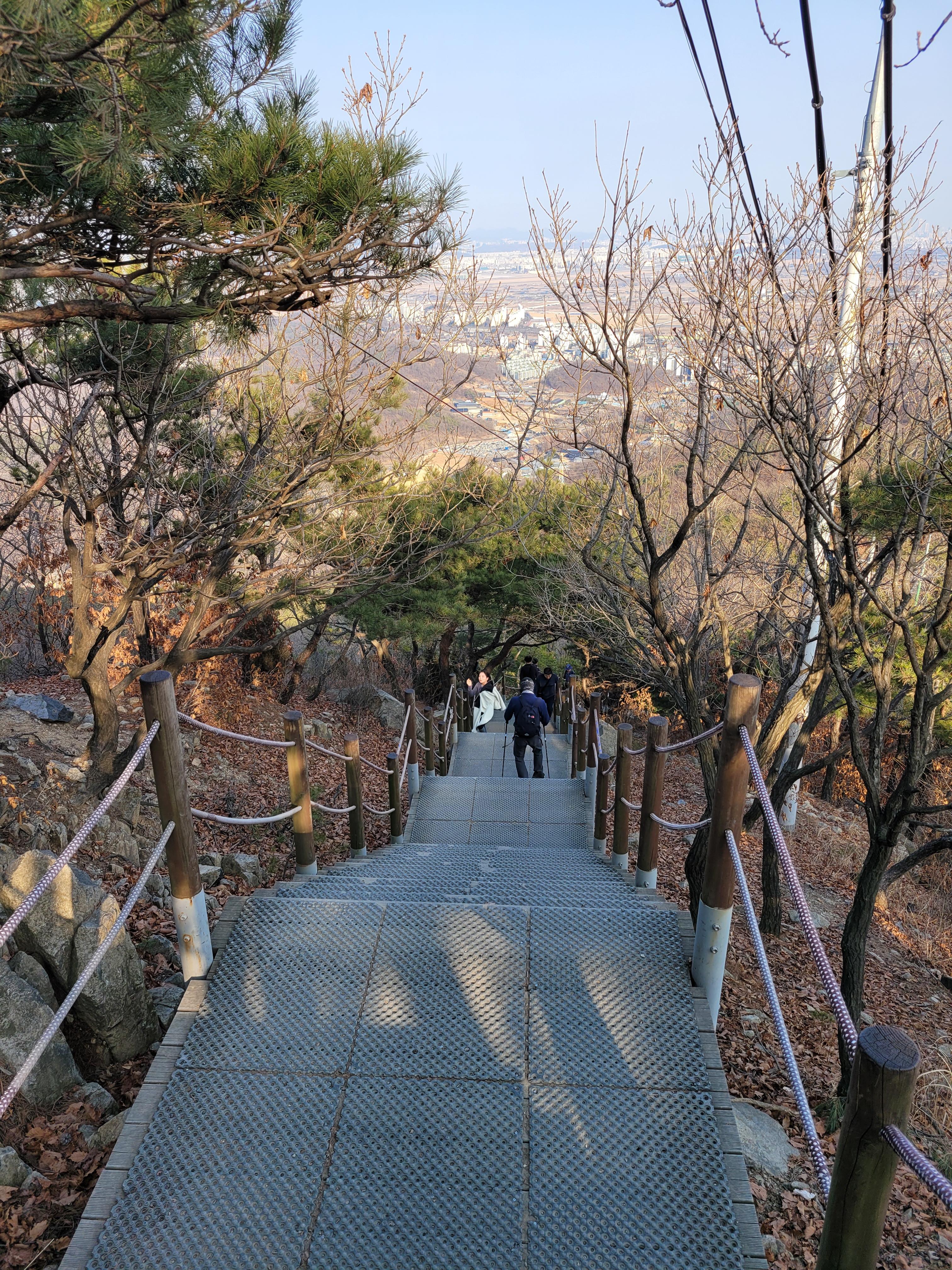 계양산 정상을 밟은 뒤에 계양산성 쪽으로 하산을 시작했는데 계단으로 이루어진 길이