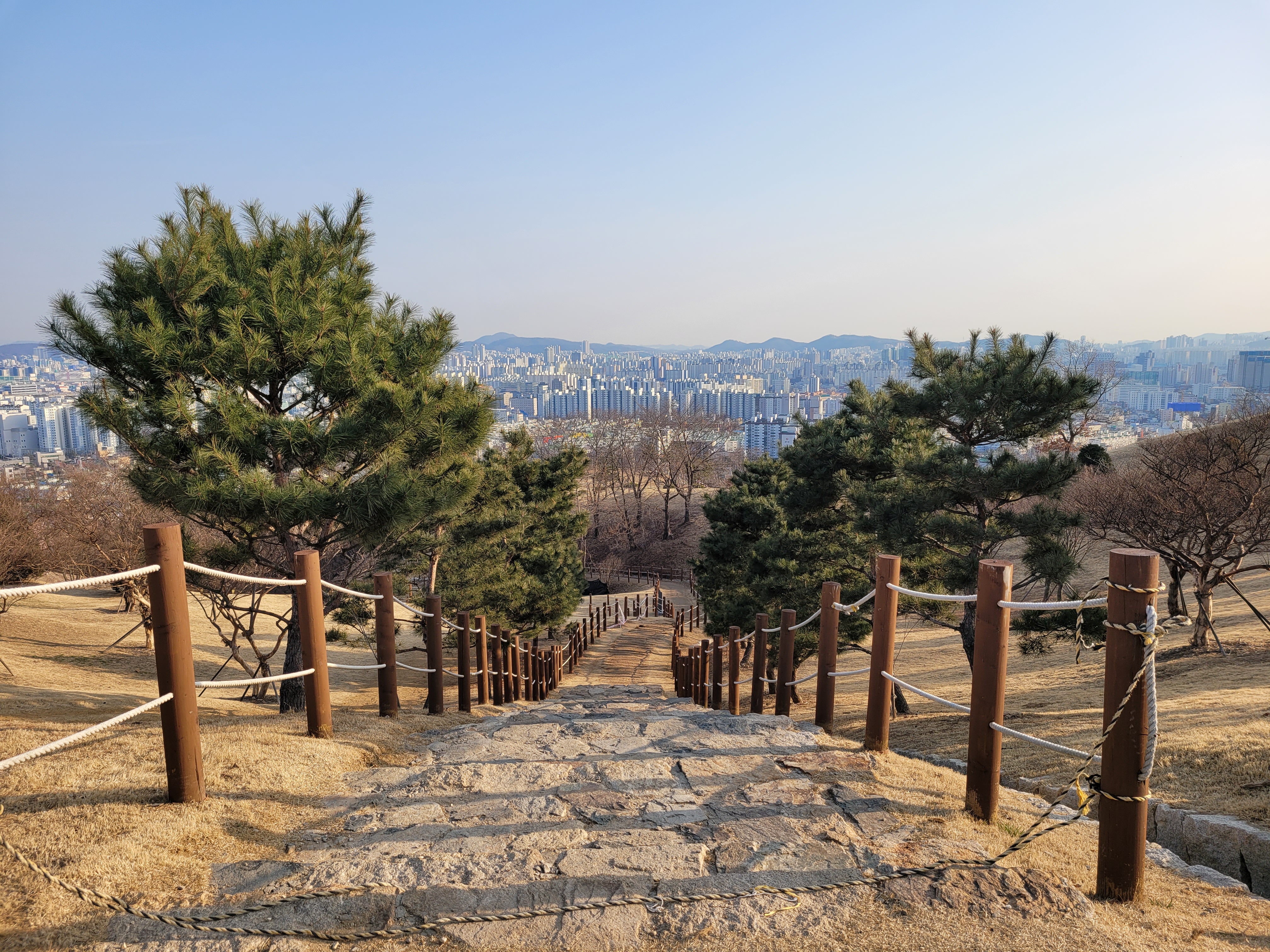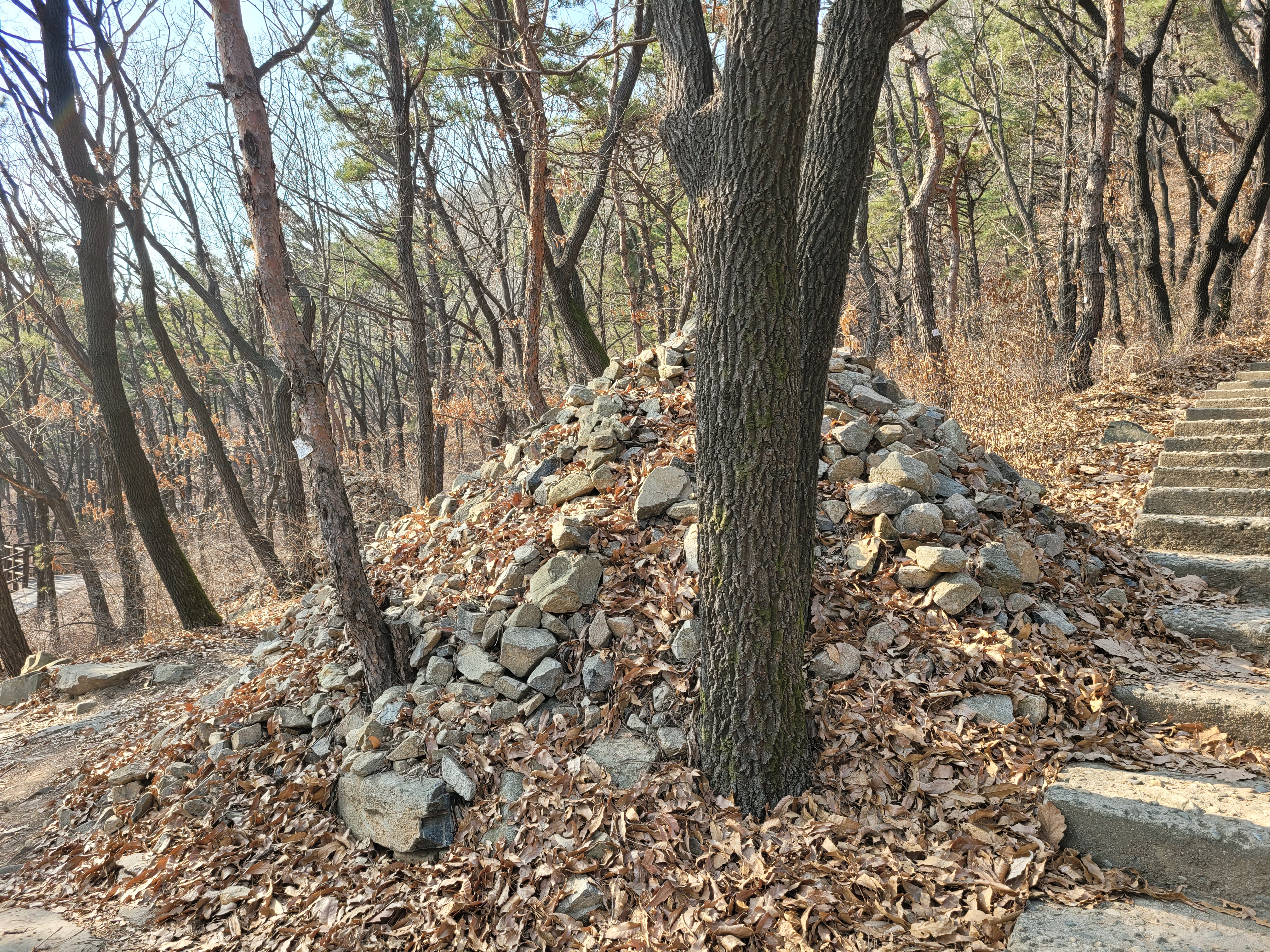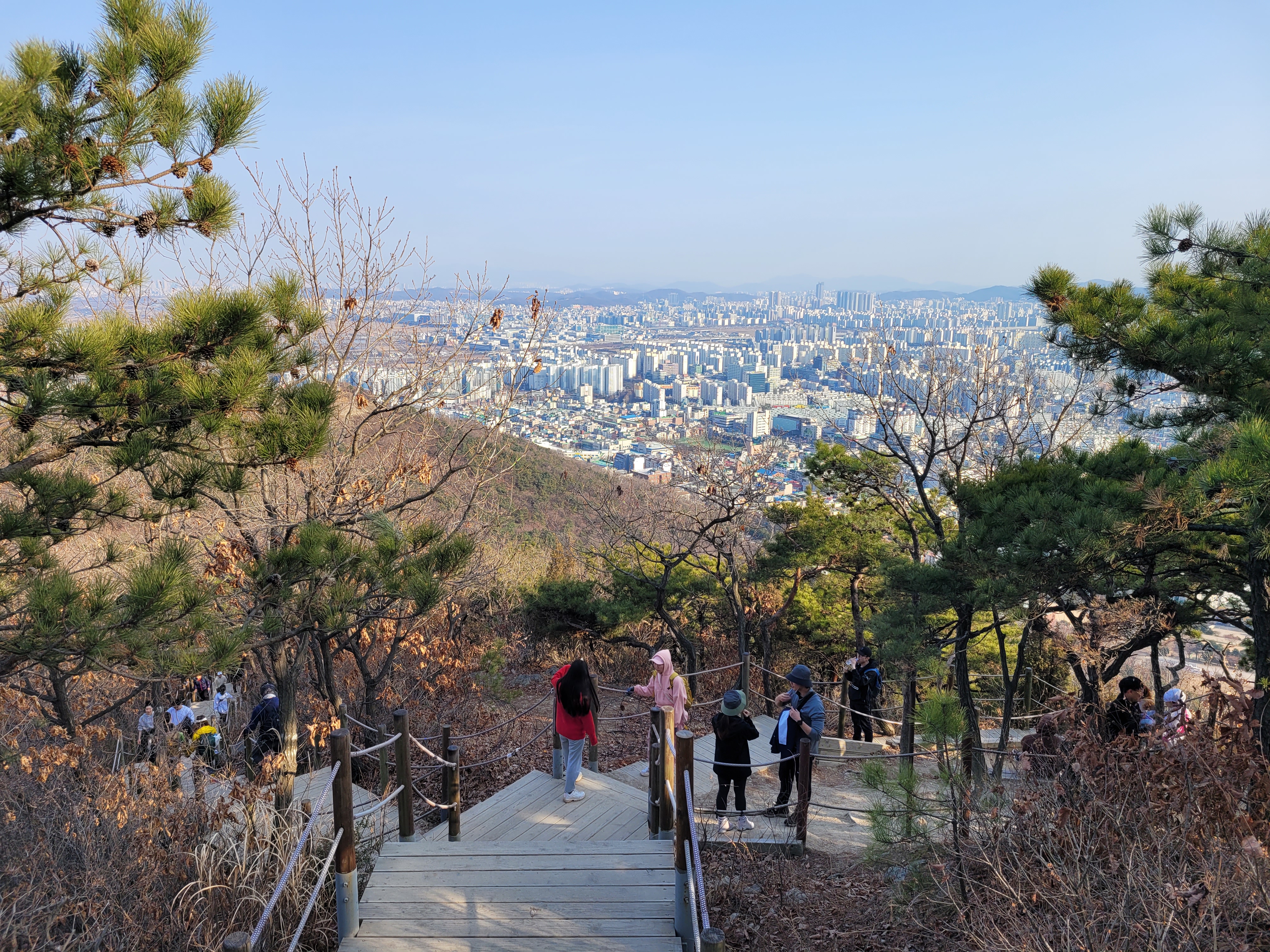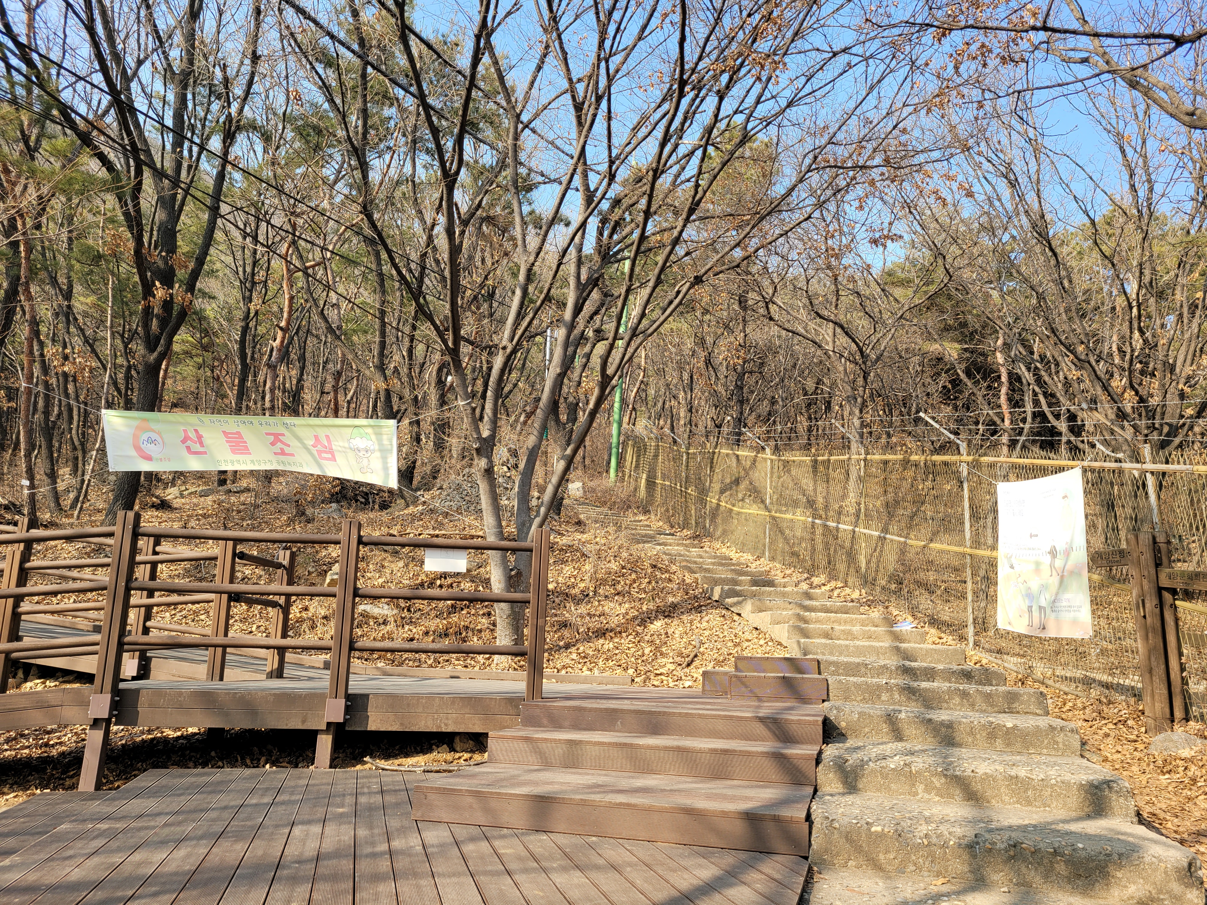 계양산 정상을 밟은 뒤에 계양산성 쪽으로 하산을 시작했는데 계단으로 이루어진 길이
