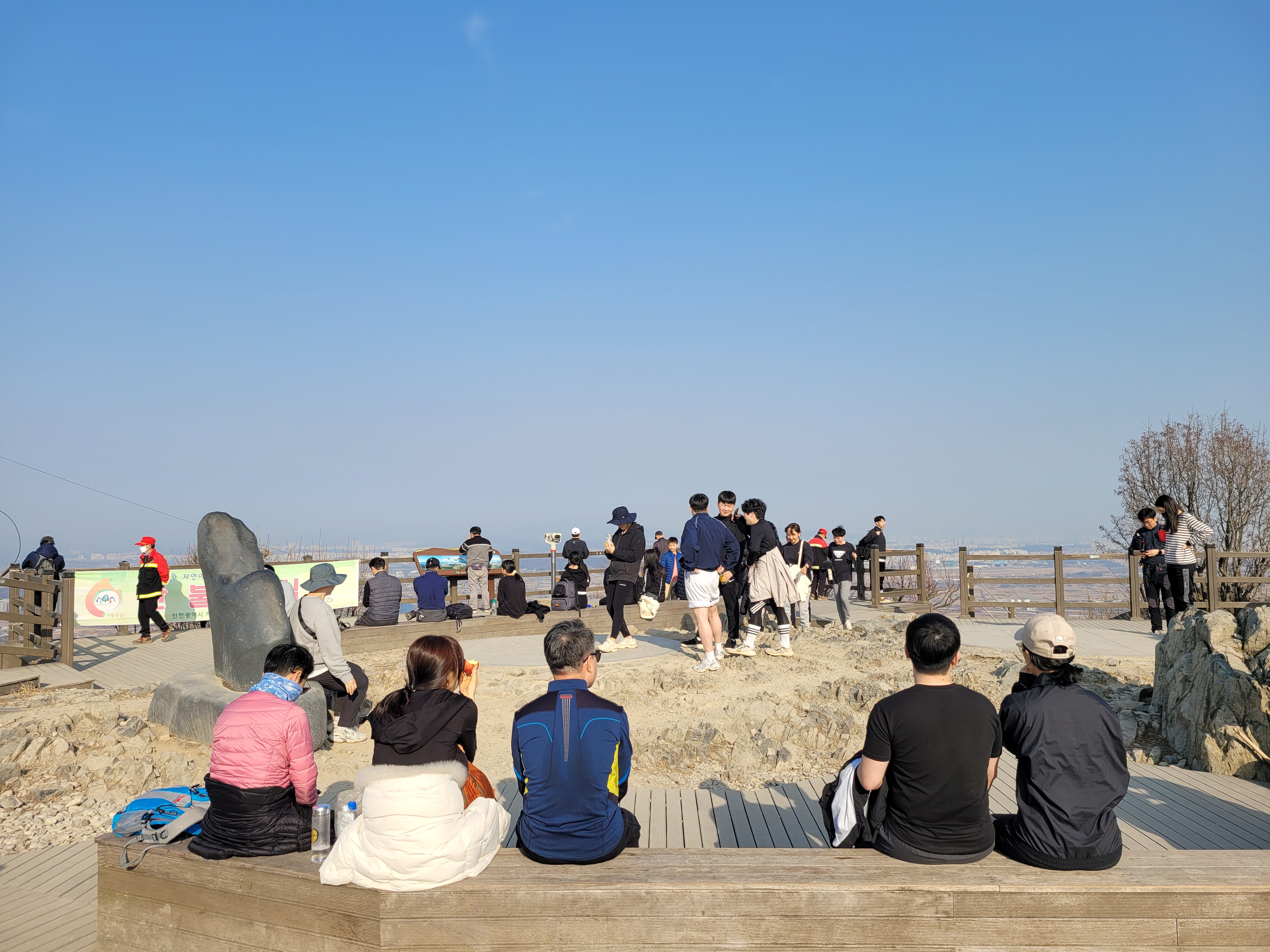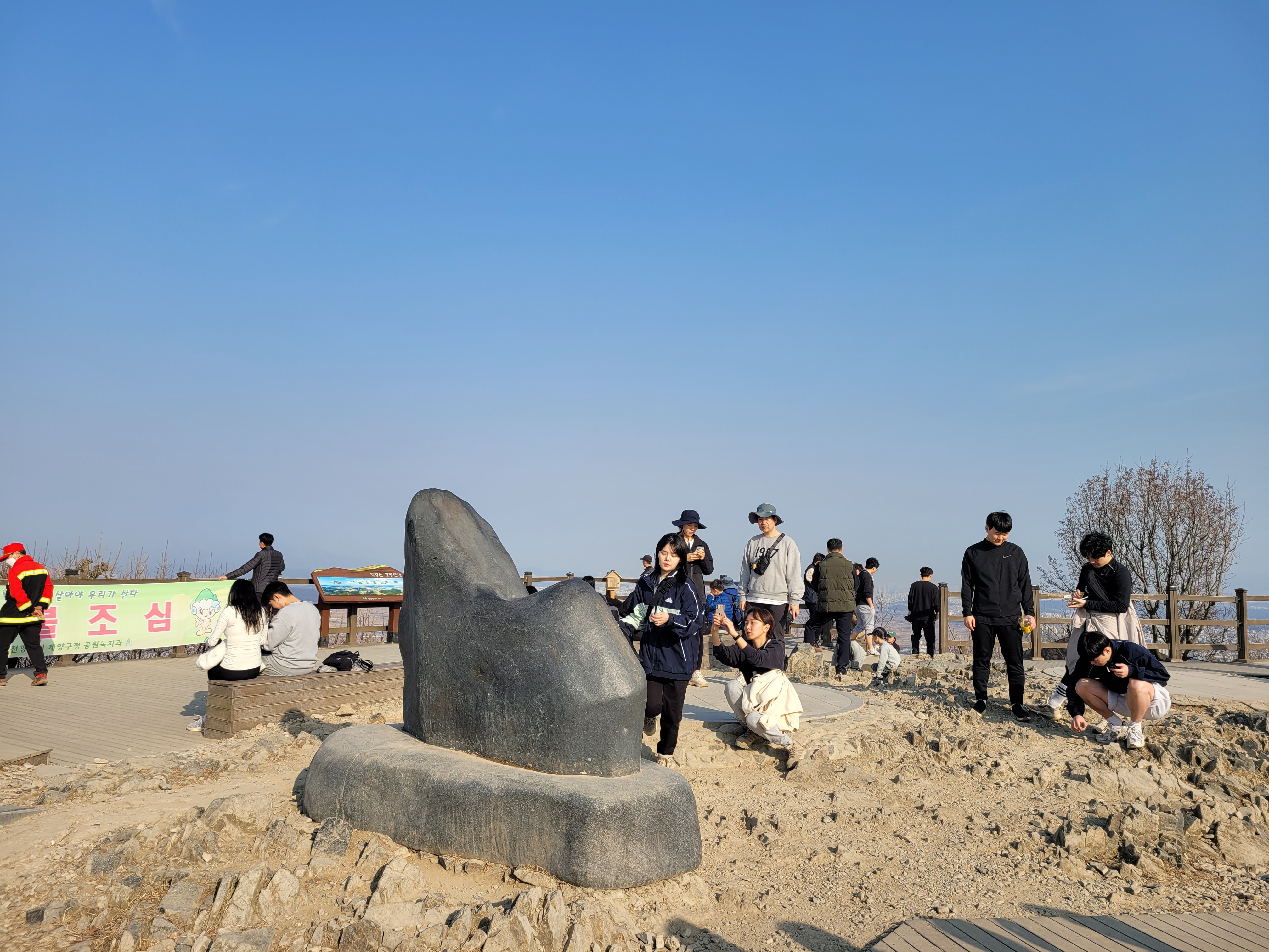 올라오니까 정상에 많은 사람들이 모여있었더라고요. 산행 하면서 이렇게 많은 사람들이