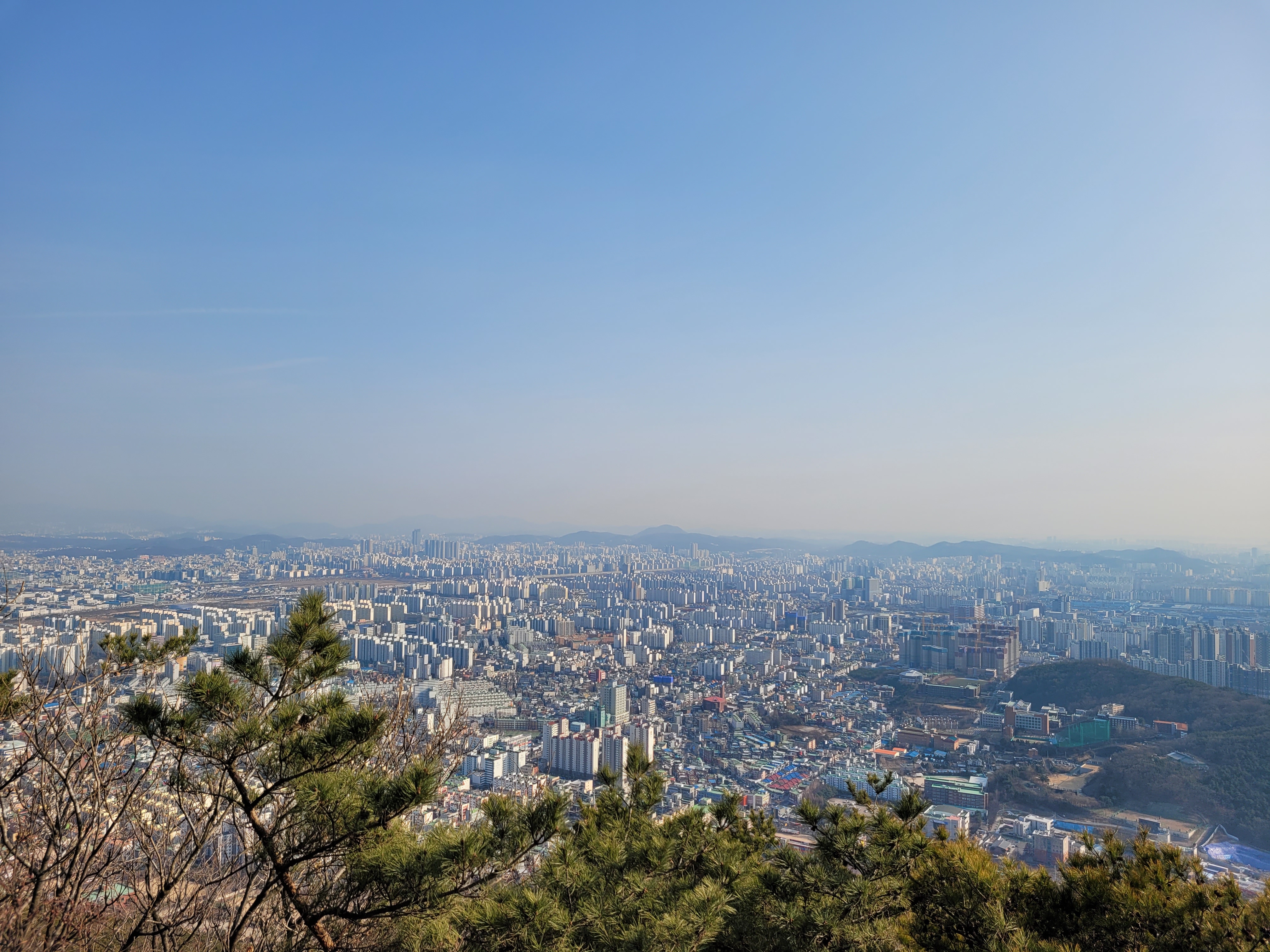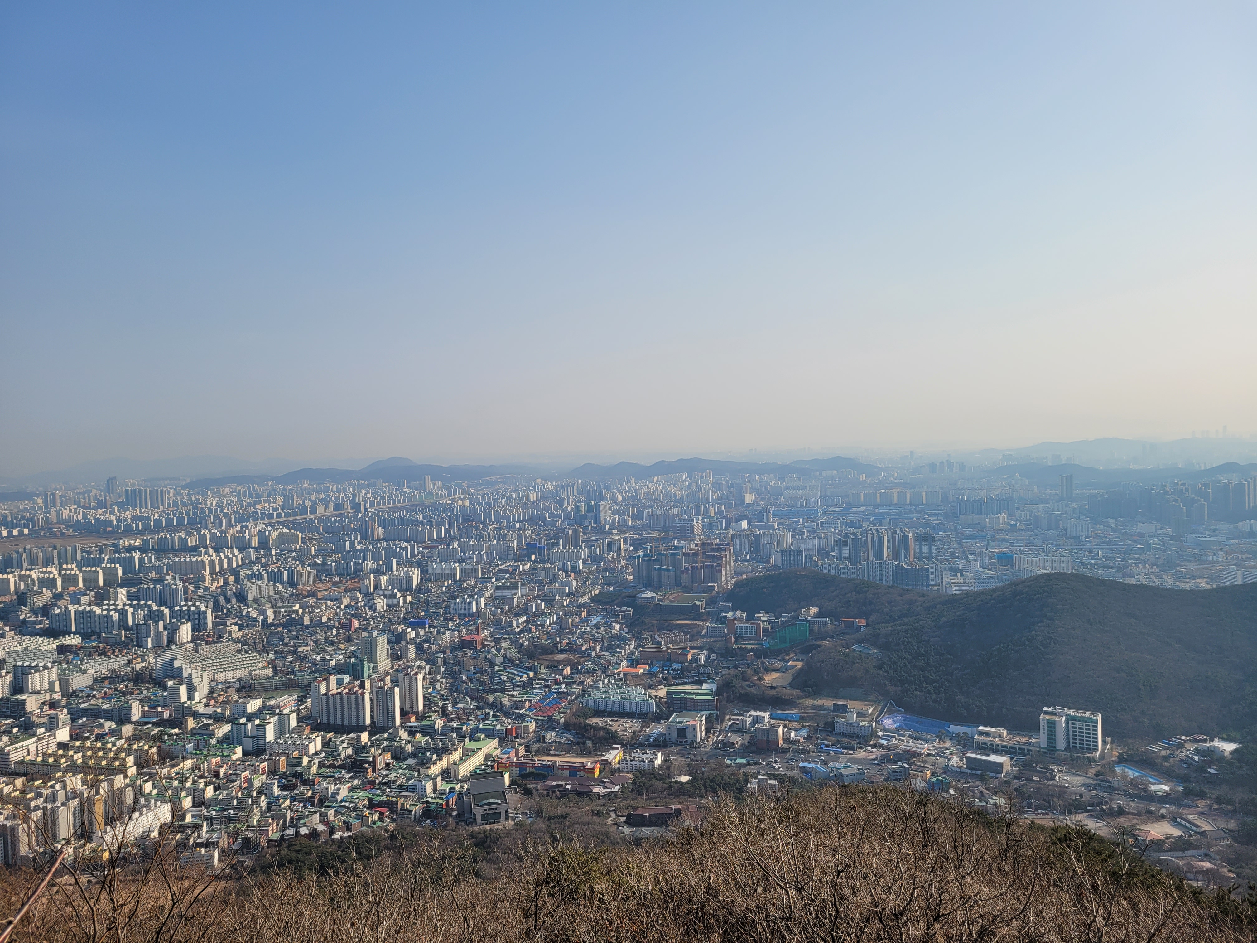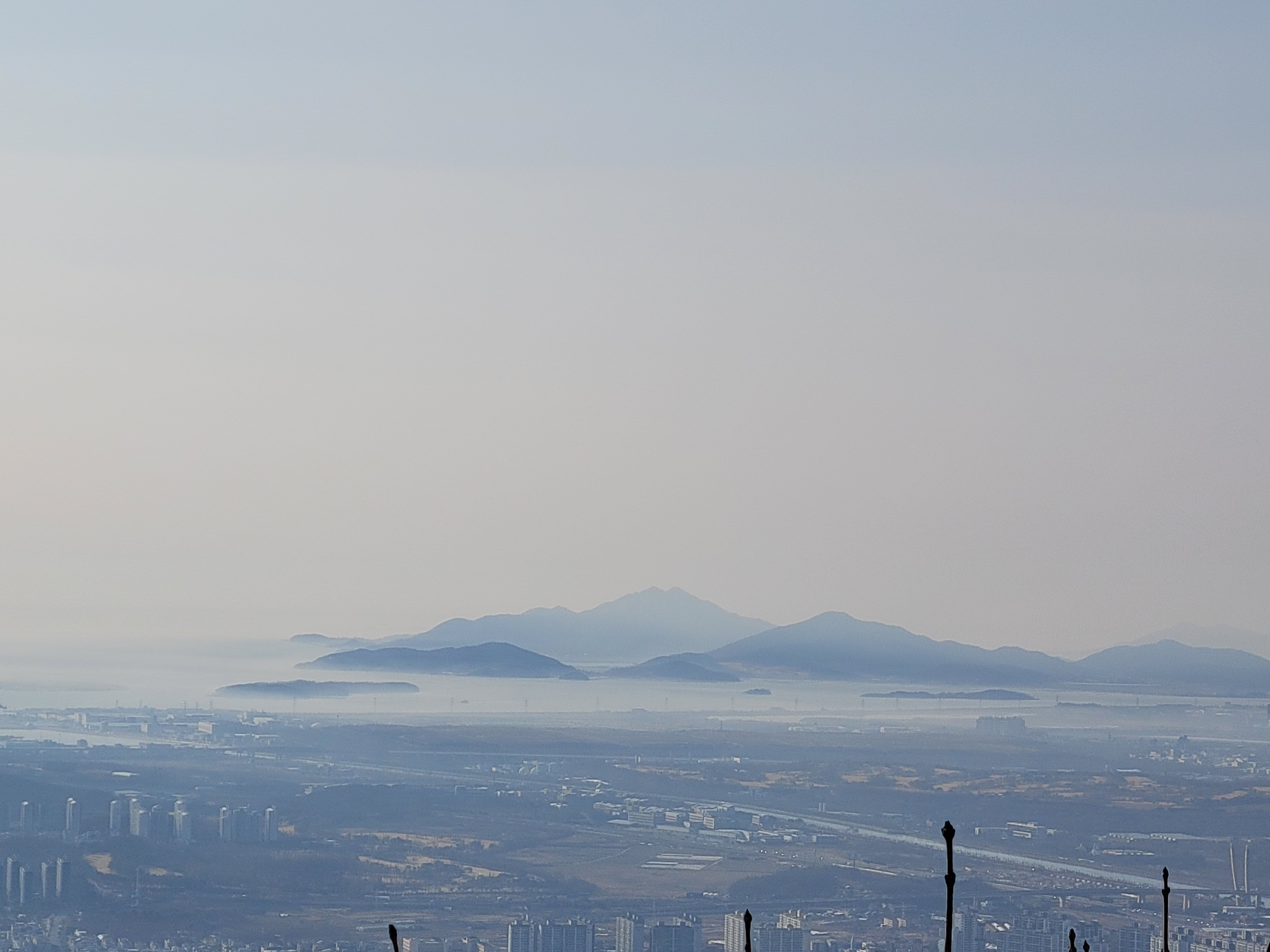 너무 끼어서 좀 흐리기는 했지만 그래도 인천시내 해안까지 훤히 보였더라고요.