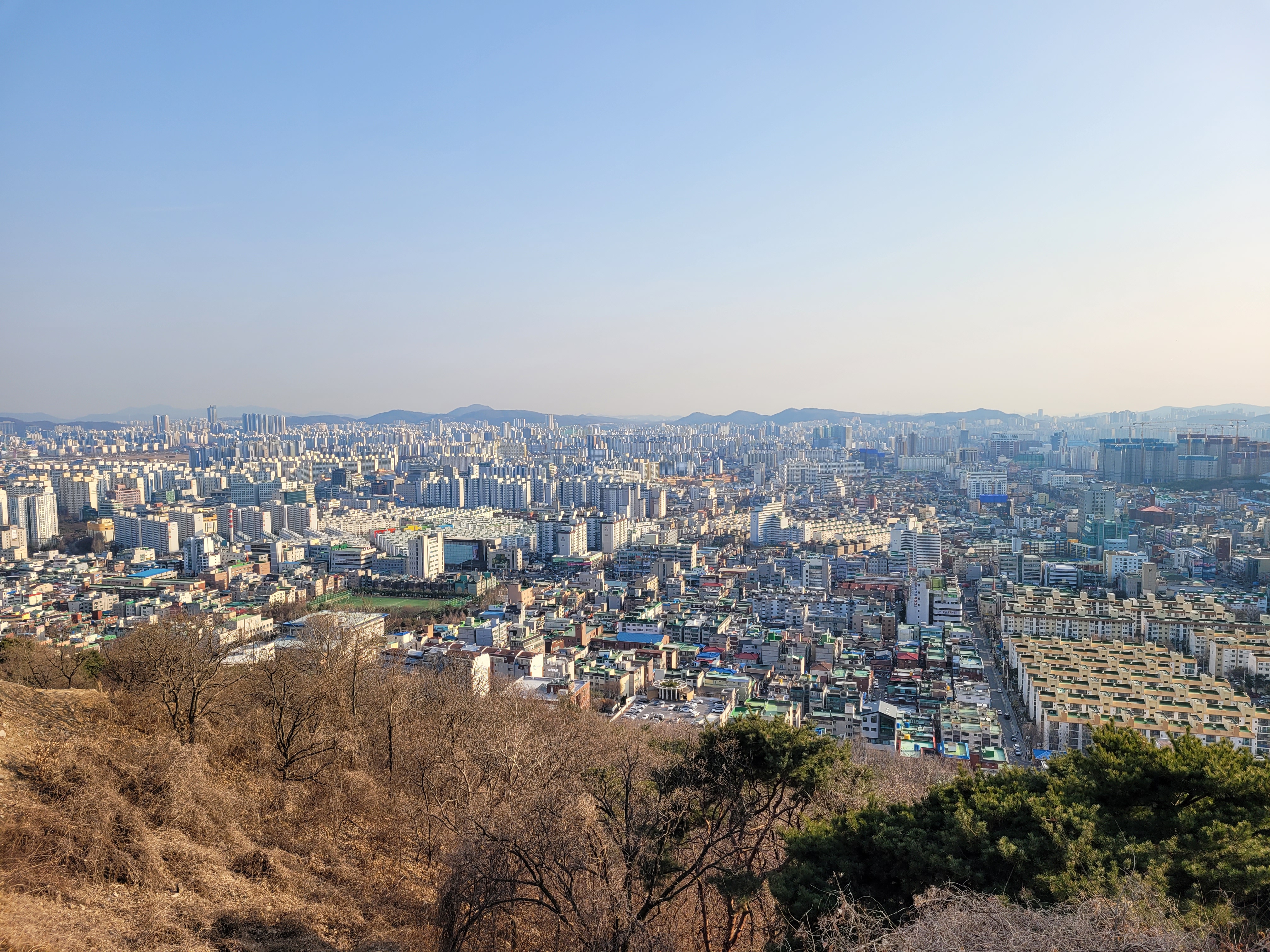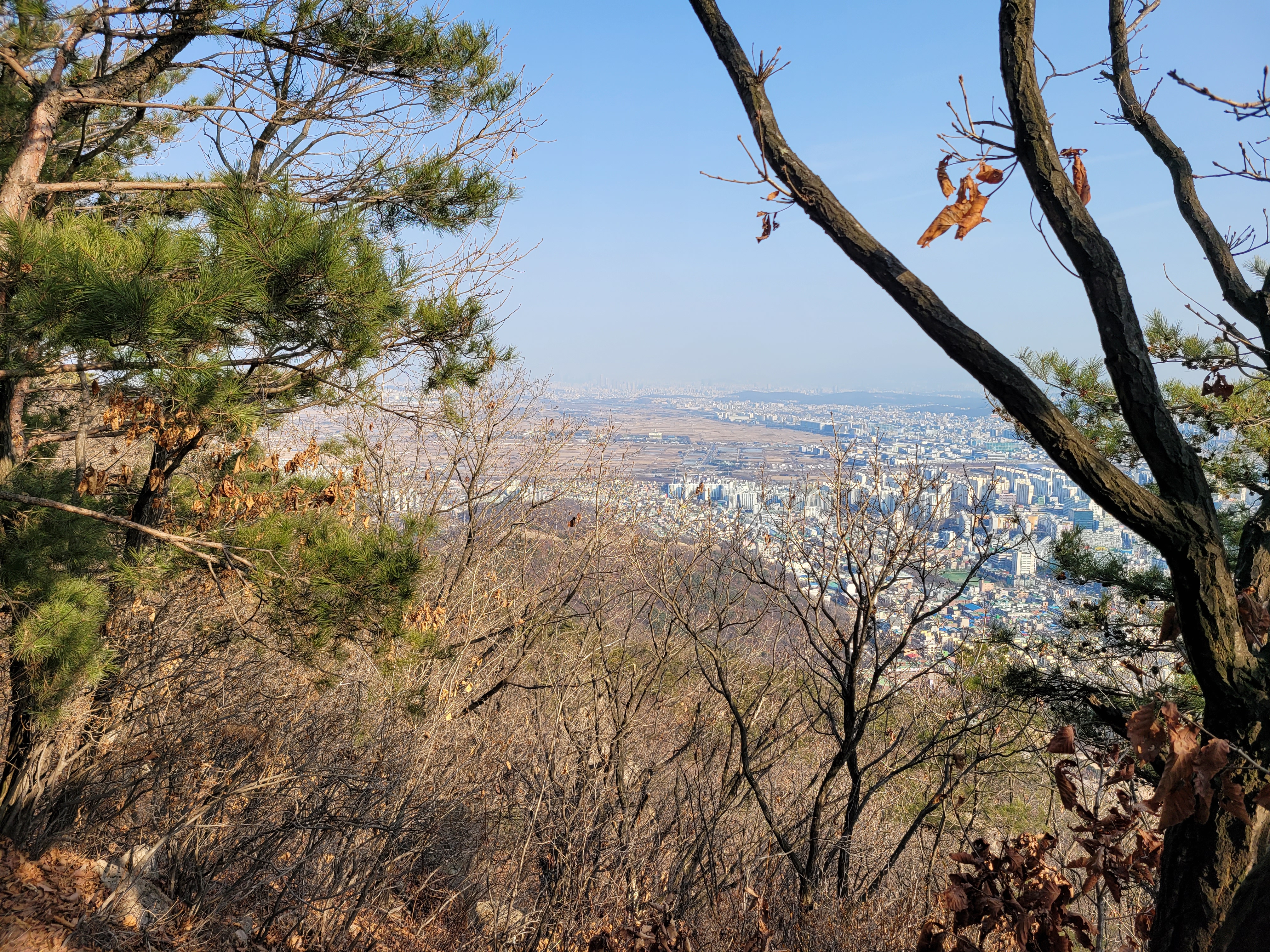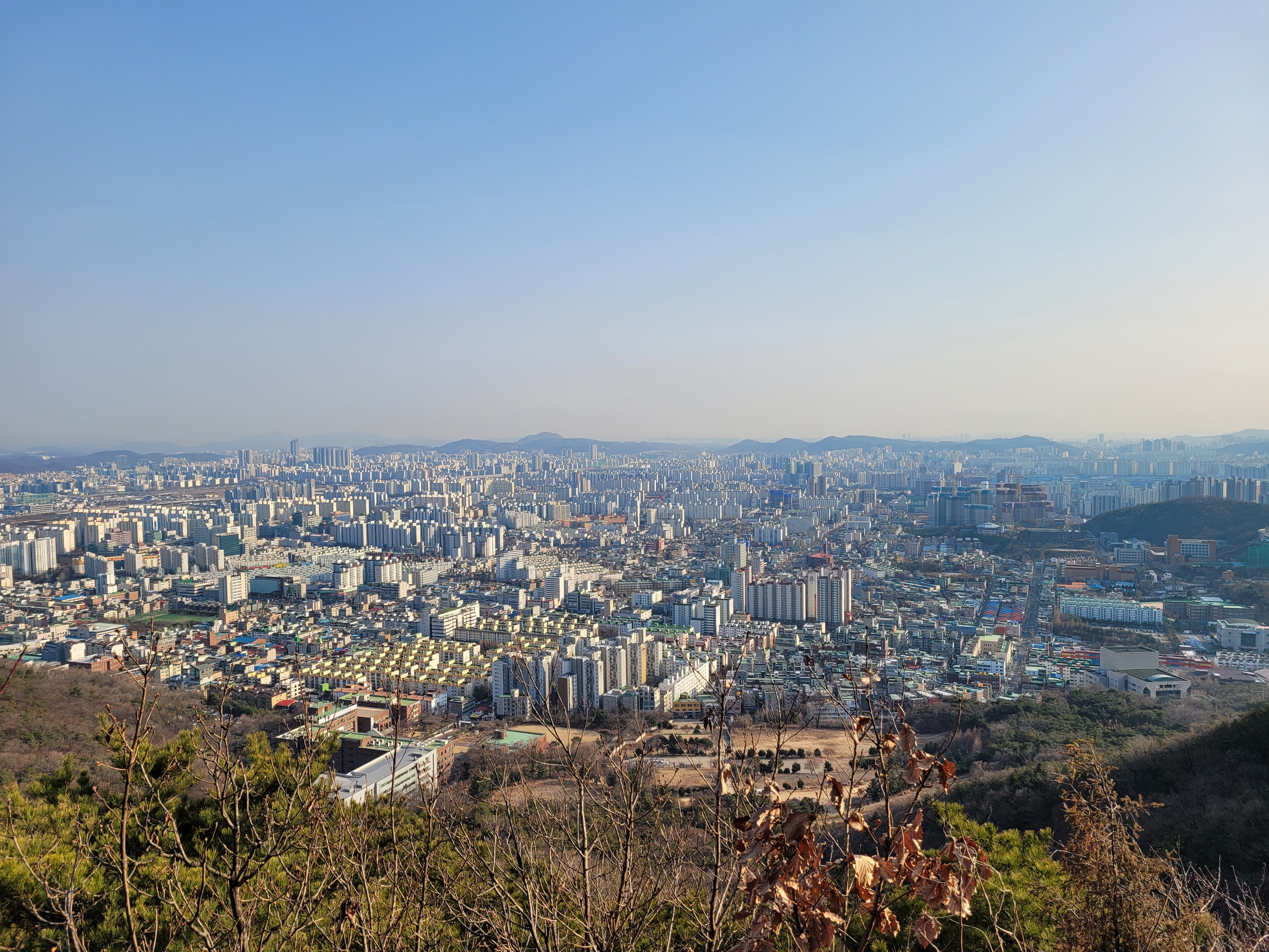 너무 끼어서 좀 흐리기는 했지만 그래도 인천시내 해안까지 훤히 보였더라고요.