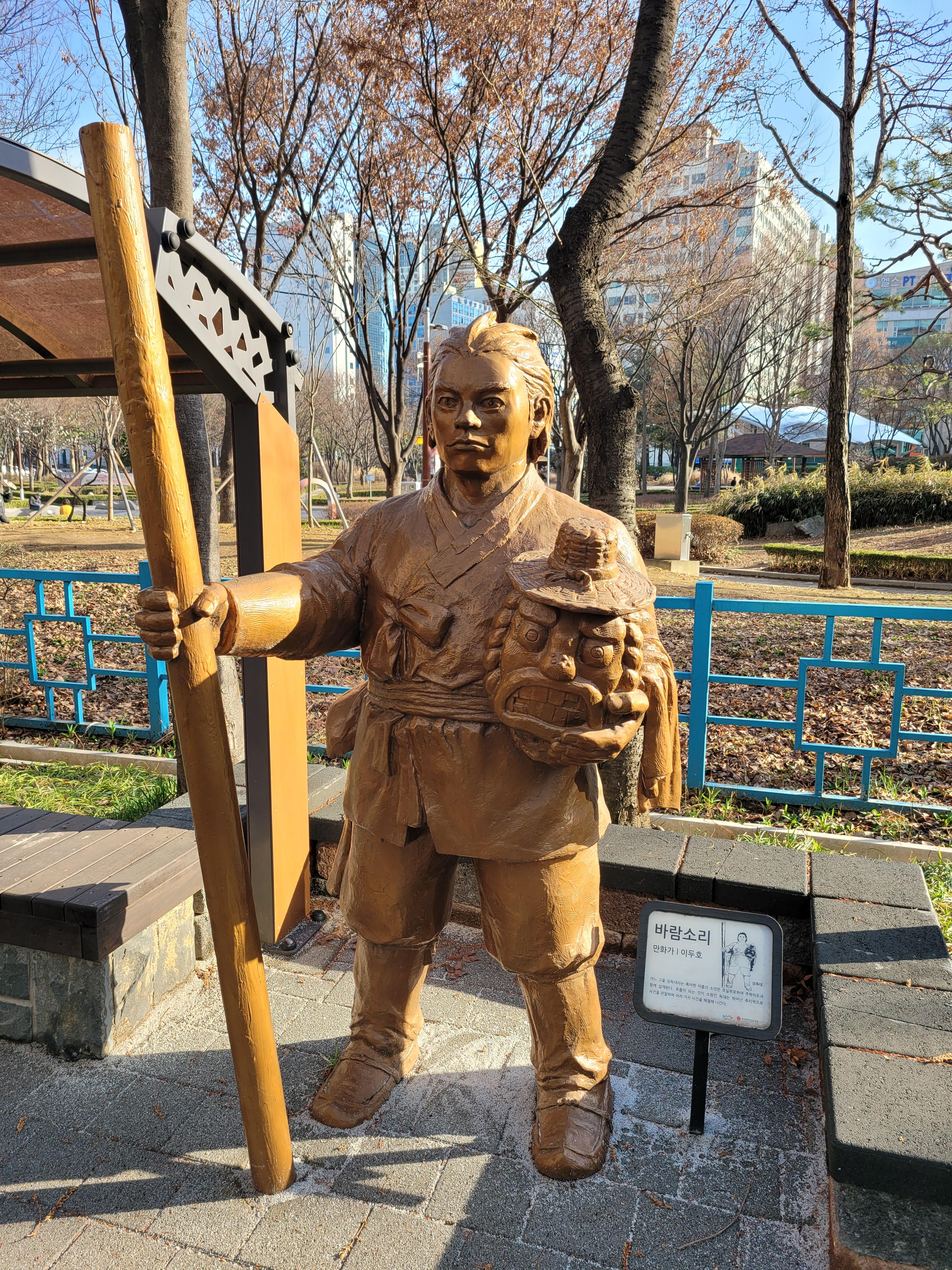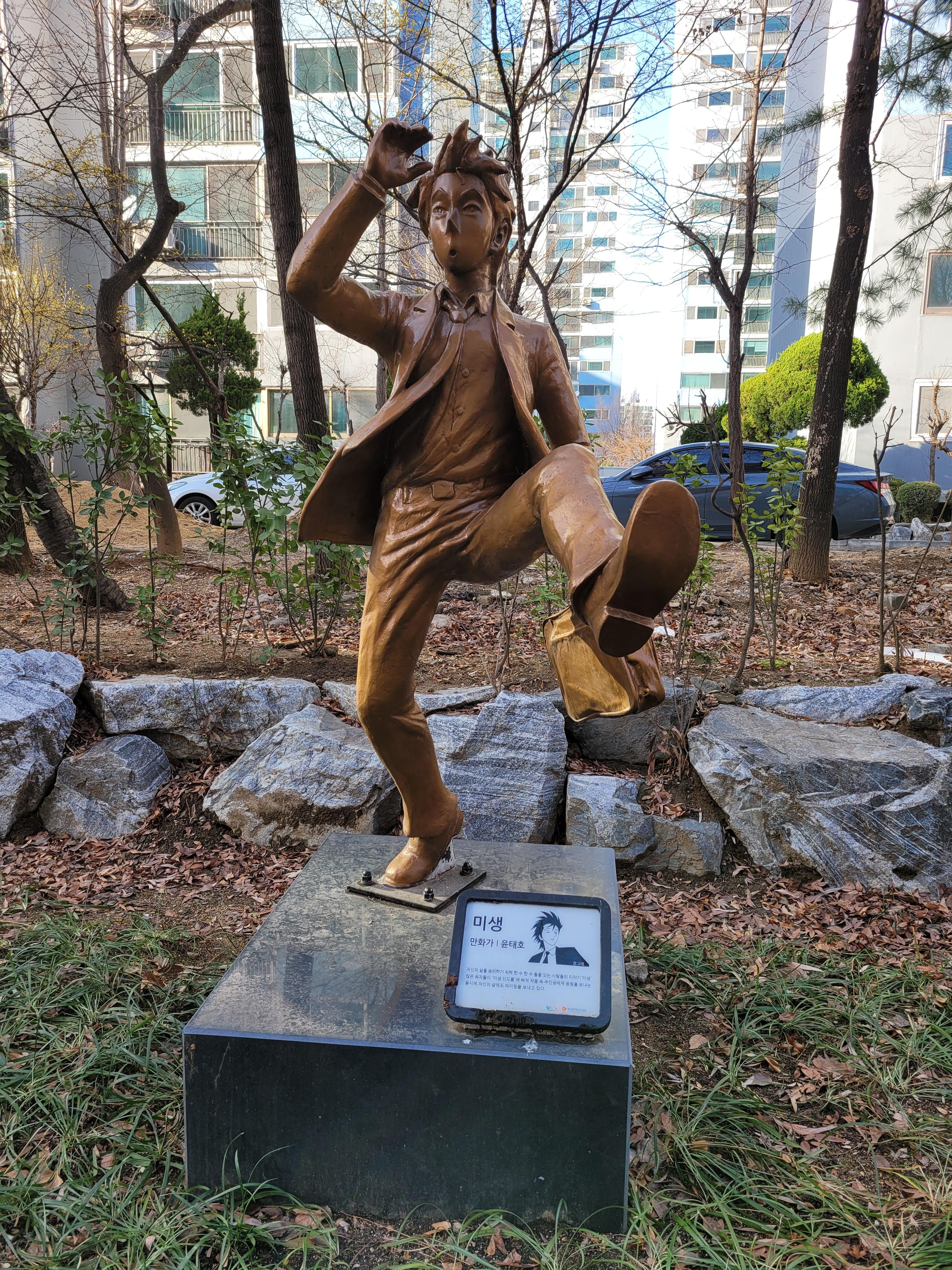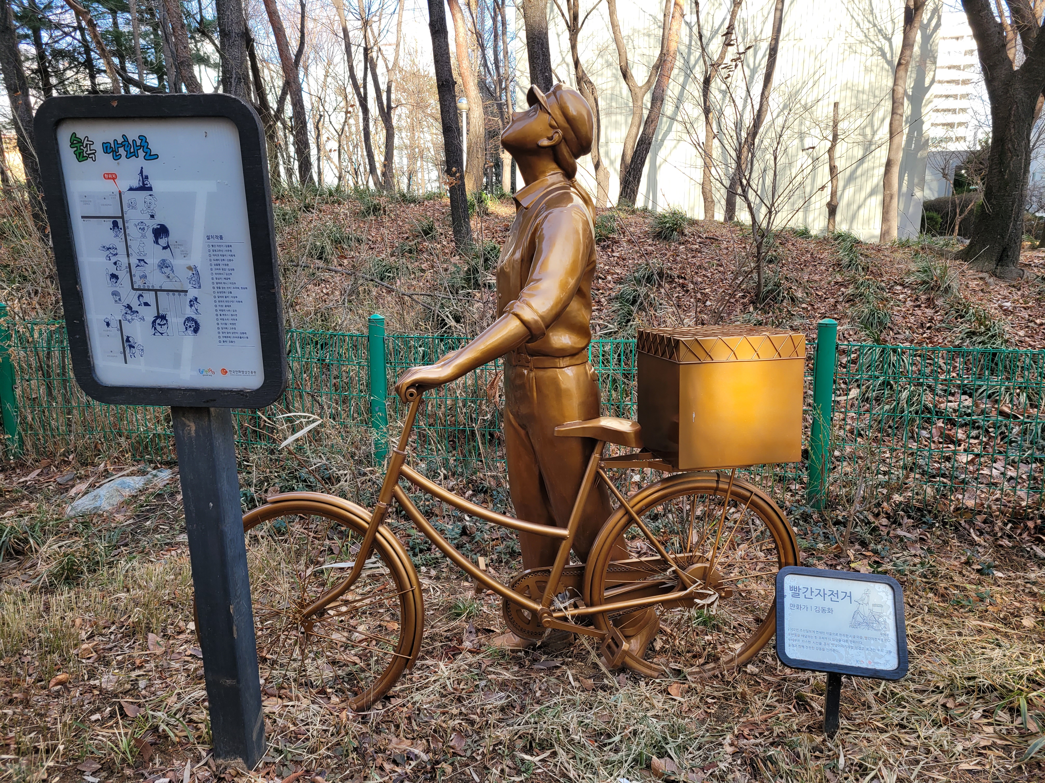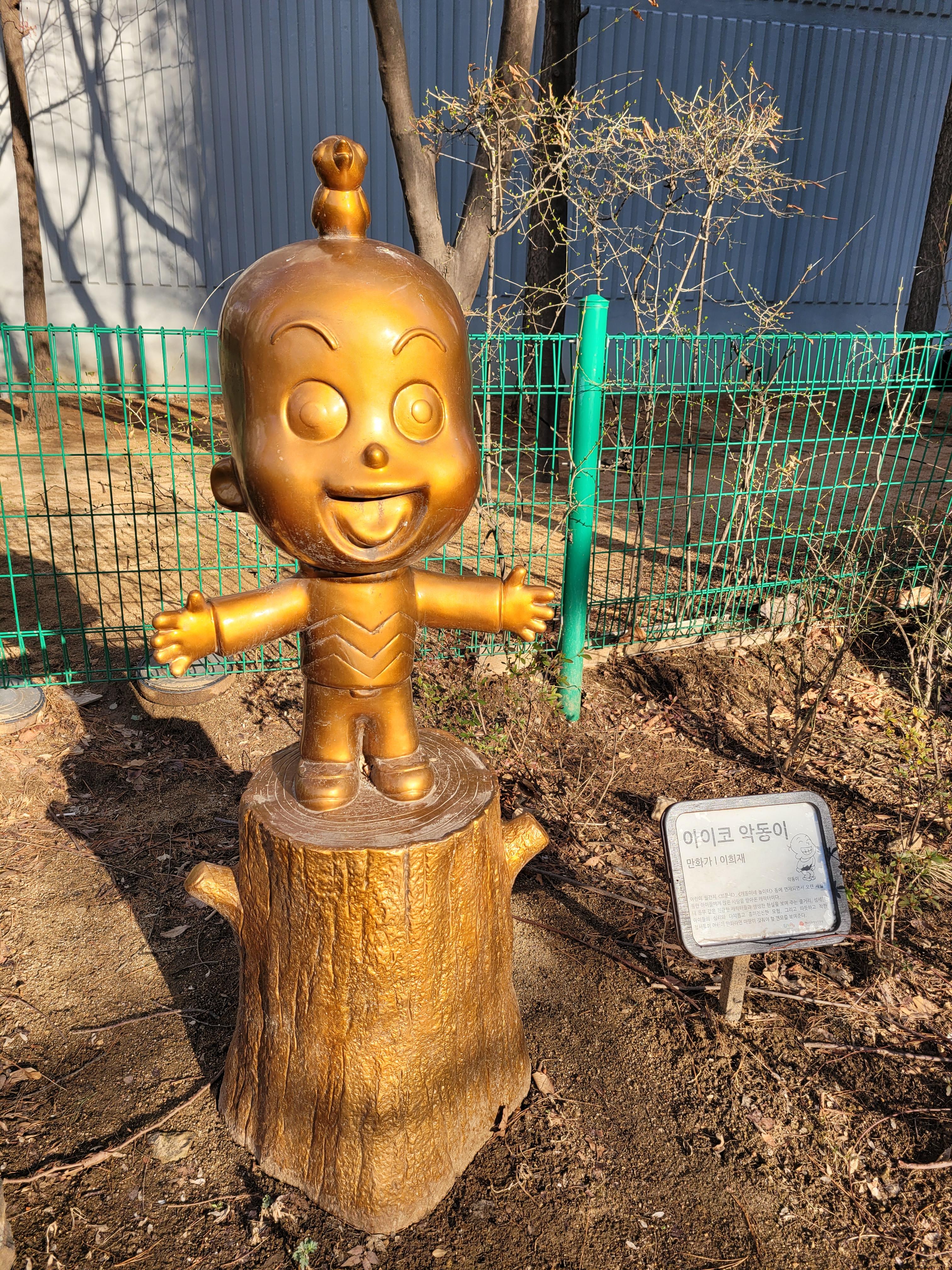 상동 숲속만화로에는 우리나라의 예전에 인기있었던 만화 동상들이 차례대로 전시되어