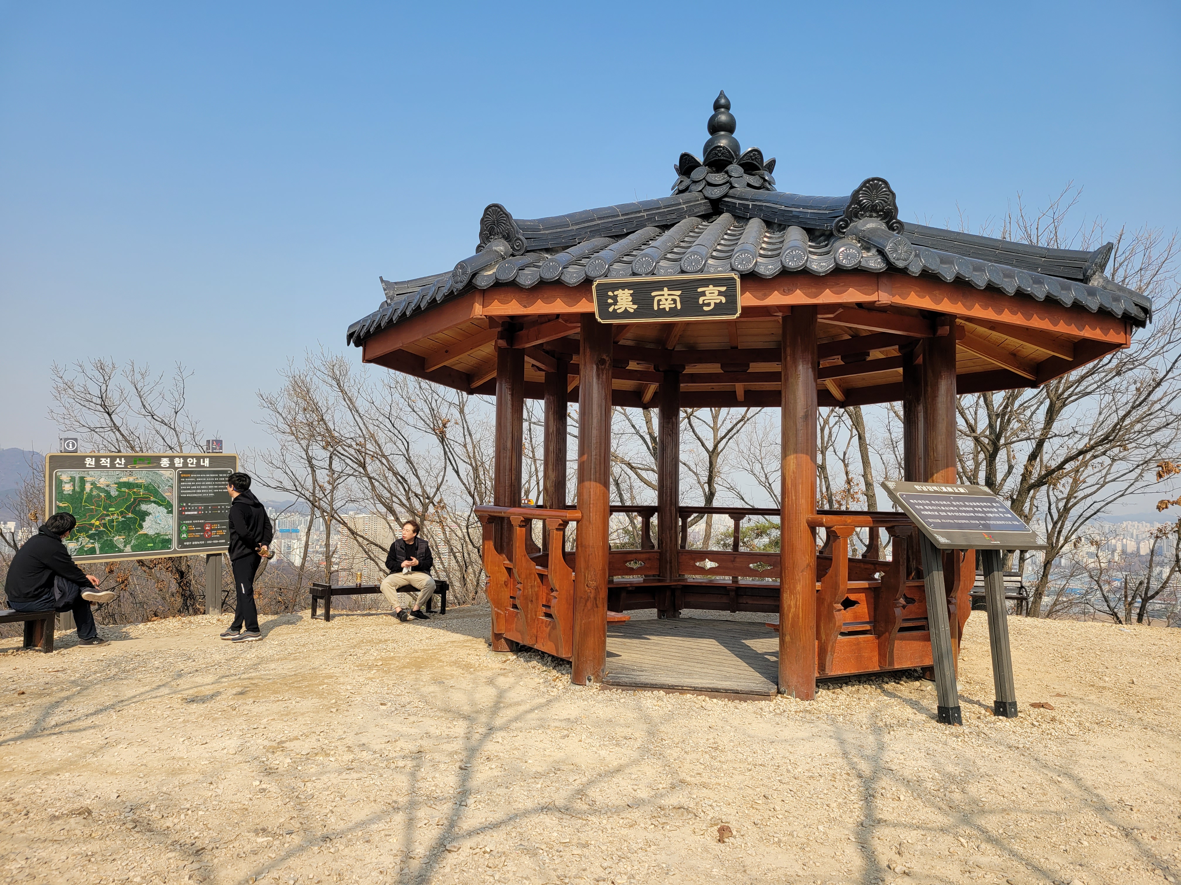 원적산 정상과 원적정을 지나서 원적산공원으로 하산을 한 뒤에 원적산공원 곳곳을