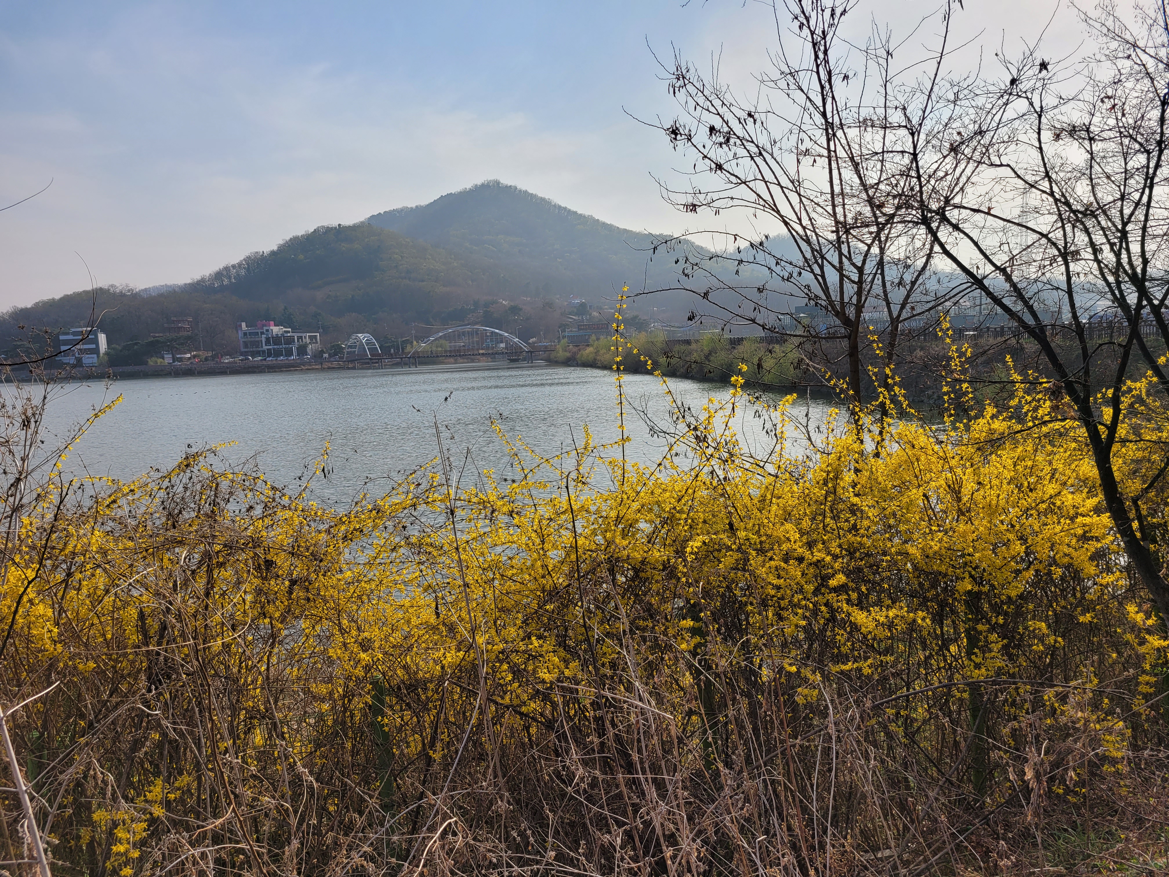 그래도 물왕호수 둘레길을 둘러보면서 물왕호수와 곳곳에 핀 개나리 벚꽃들이