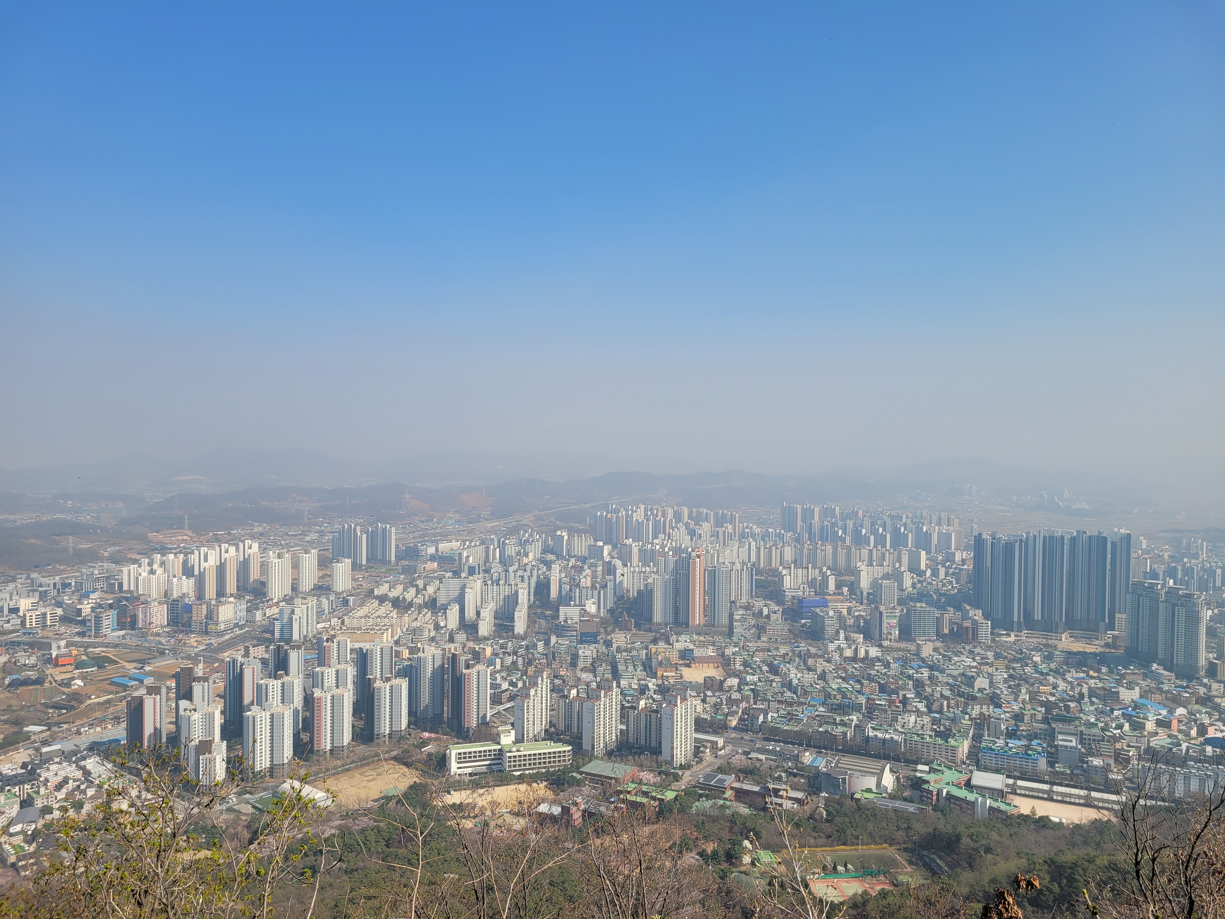 소래산 정상에서 보는 하늘이 너무 뿌옇다는 거였지만요. 그래도 시흥시내는 물론 서울시까지