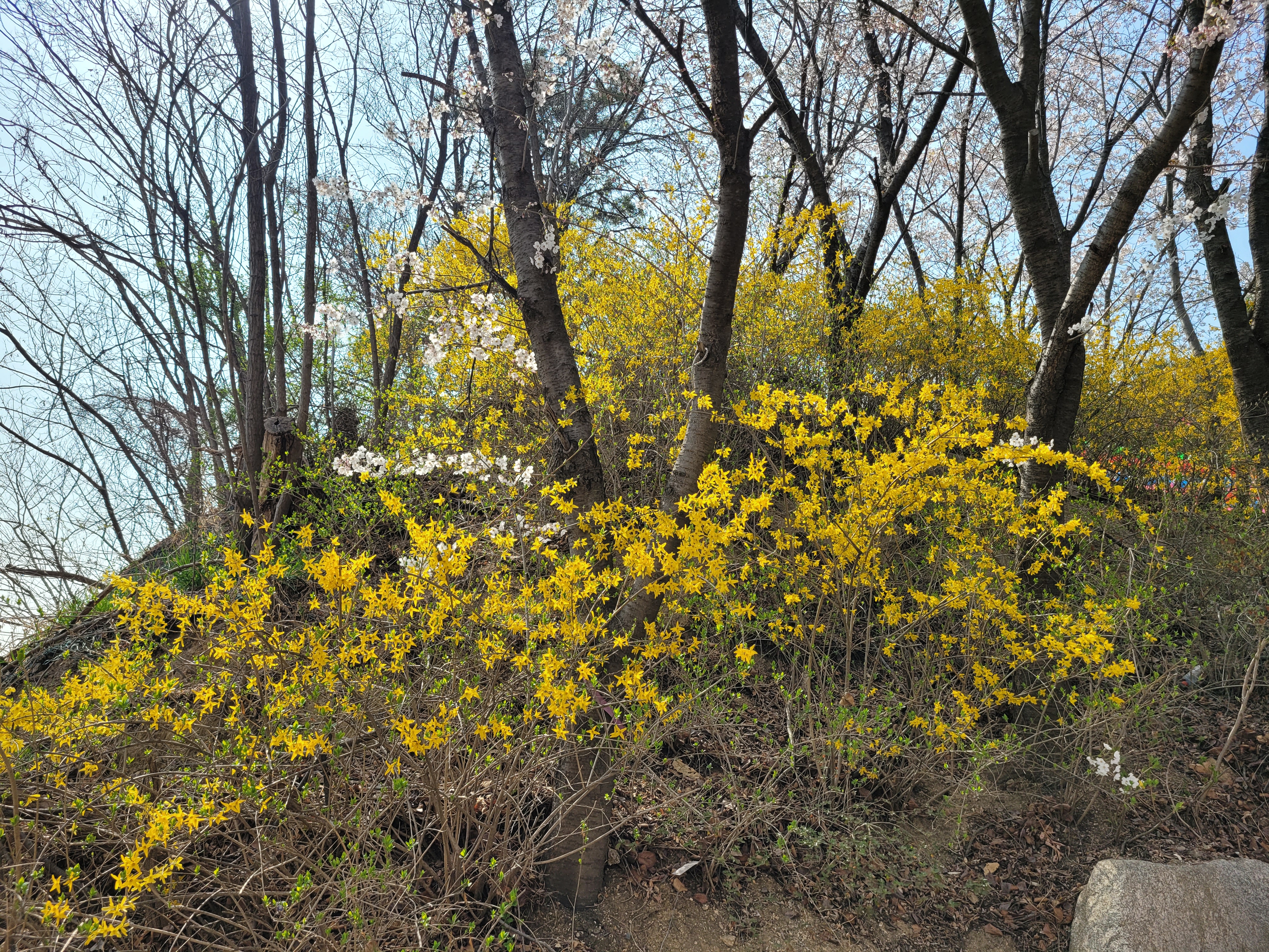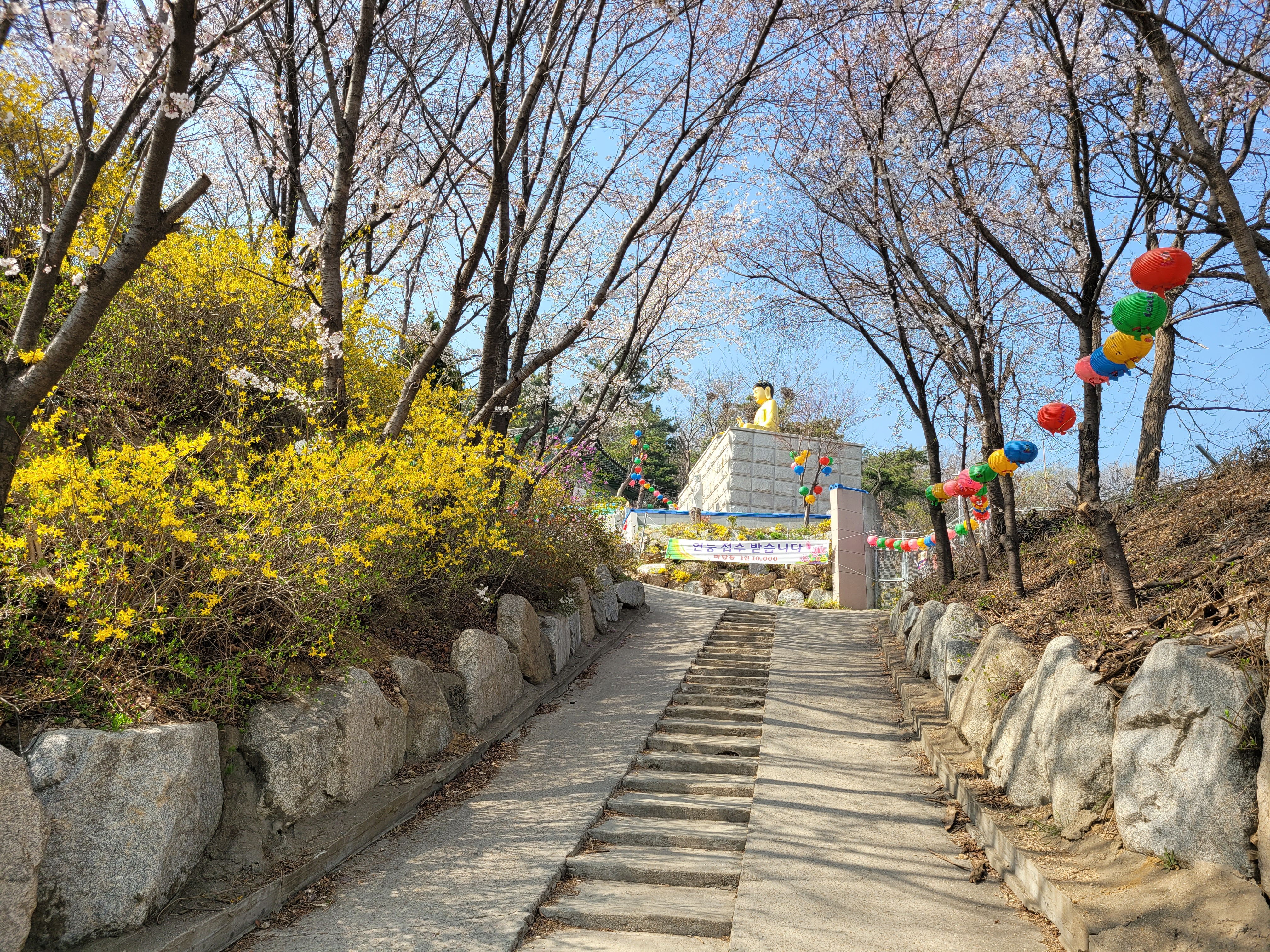 개나리 벚꽃이 아름답게 만개를 했고요.