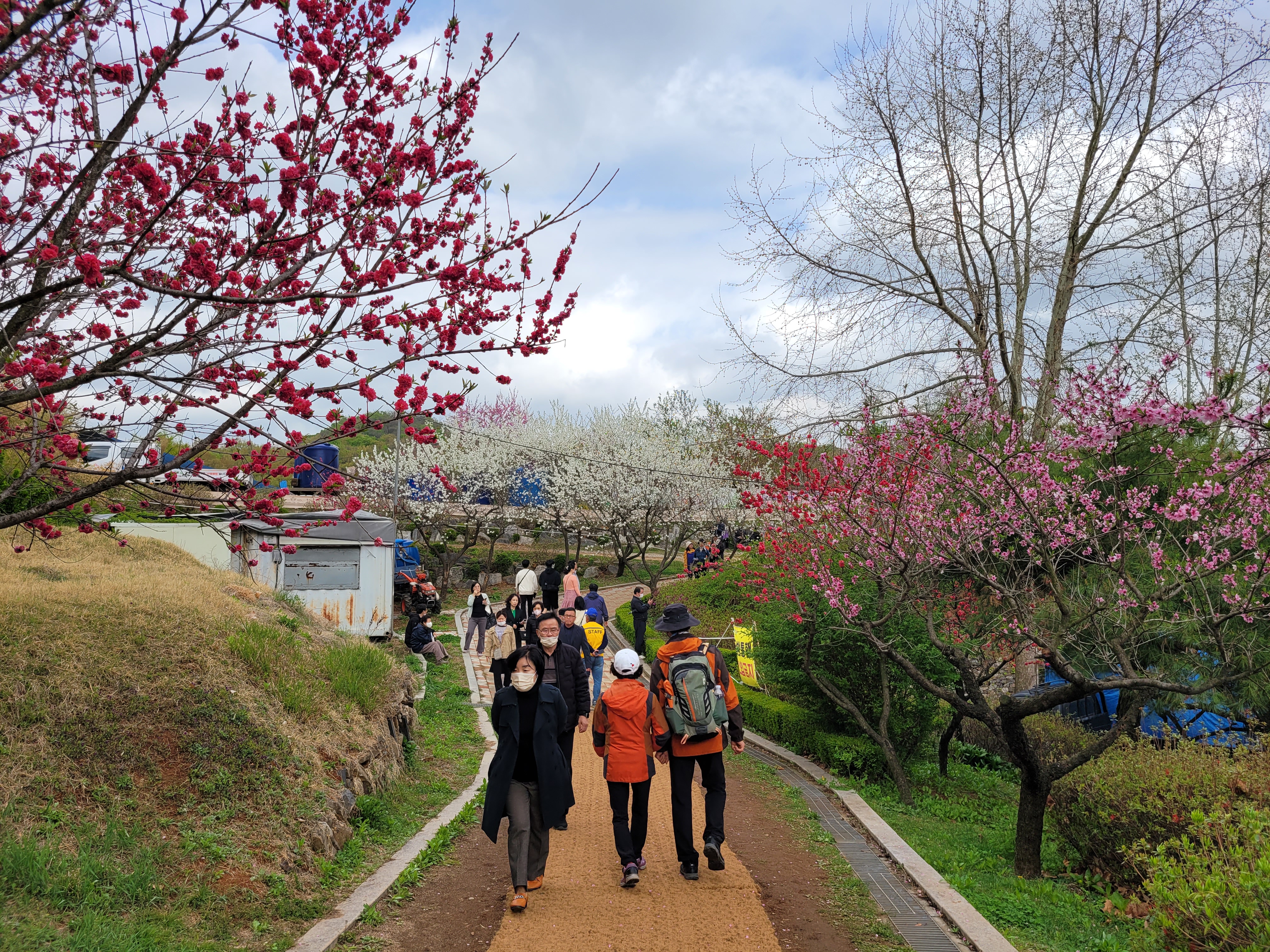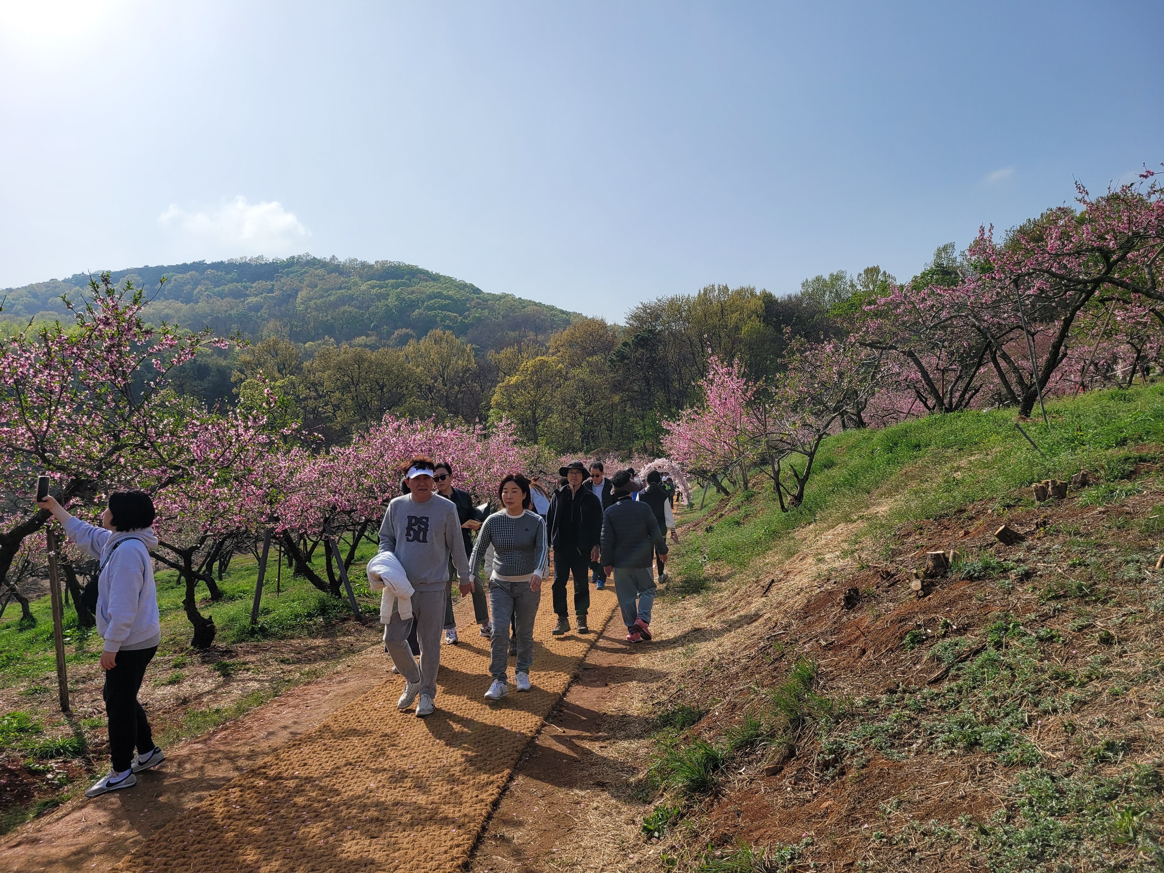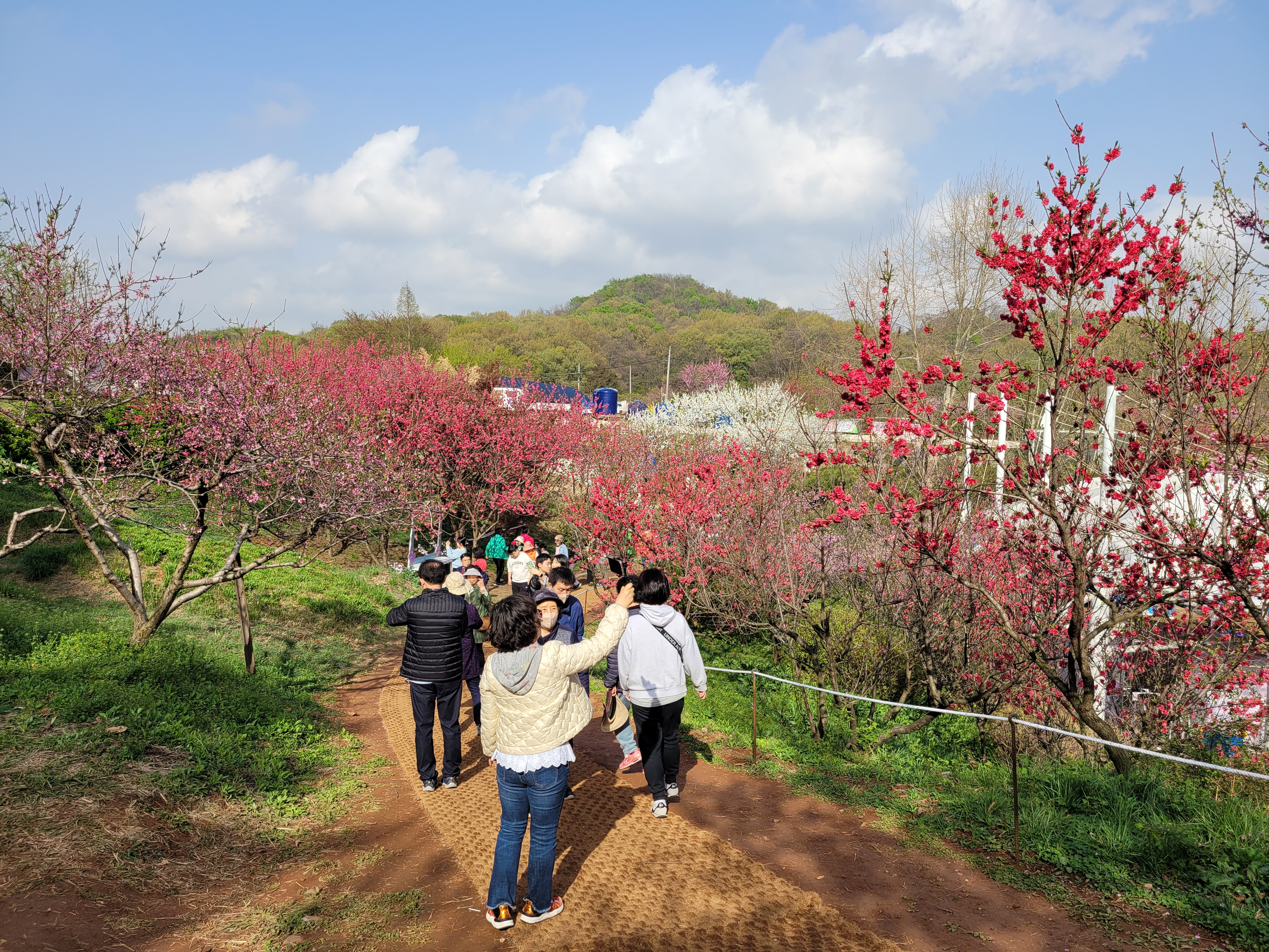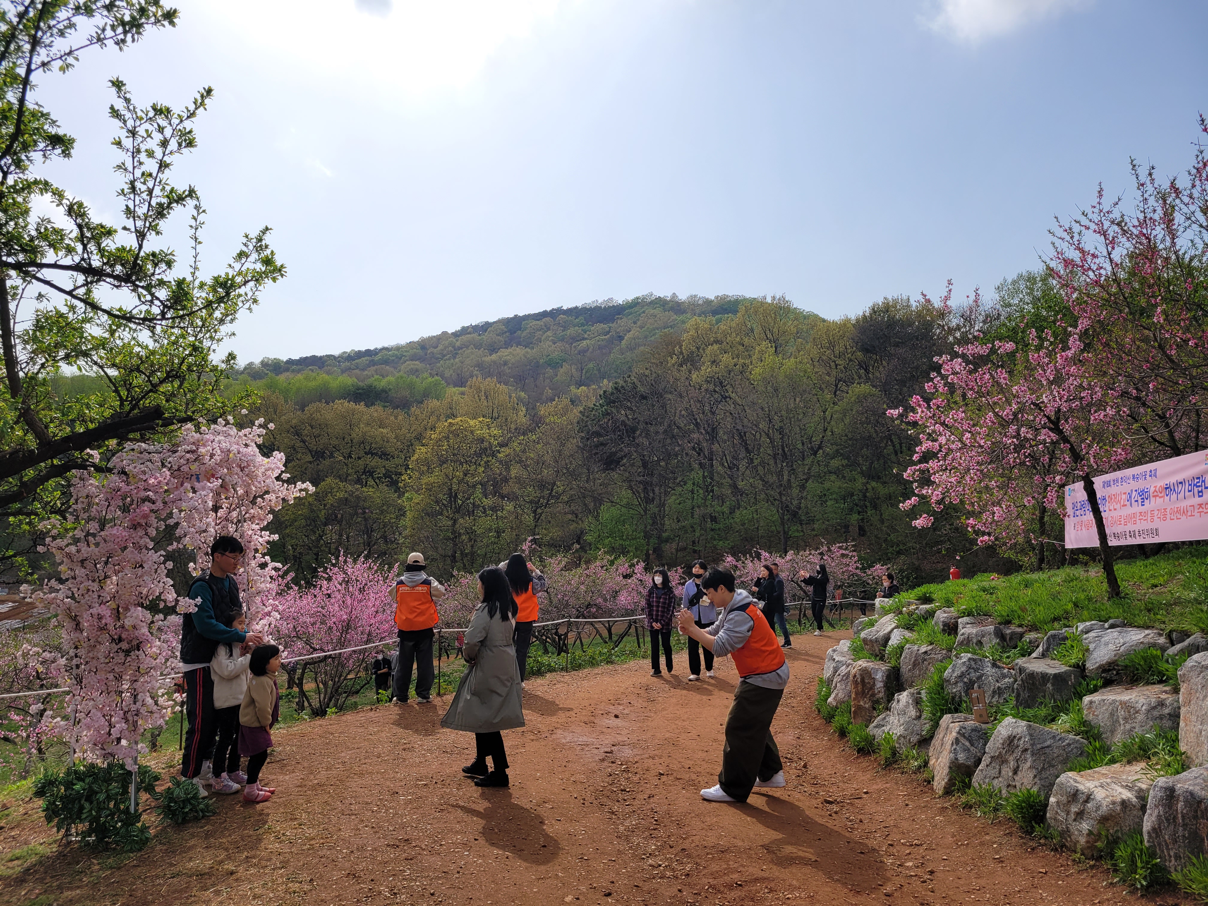 많은 사람들이 몰려왔네요. 춘덕산 복숭아꽃 축제 현장 곳곳을 둘러보며 복숭아동산에