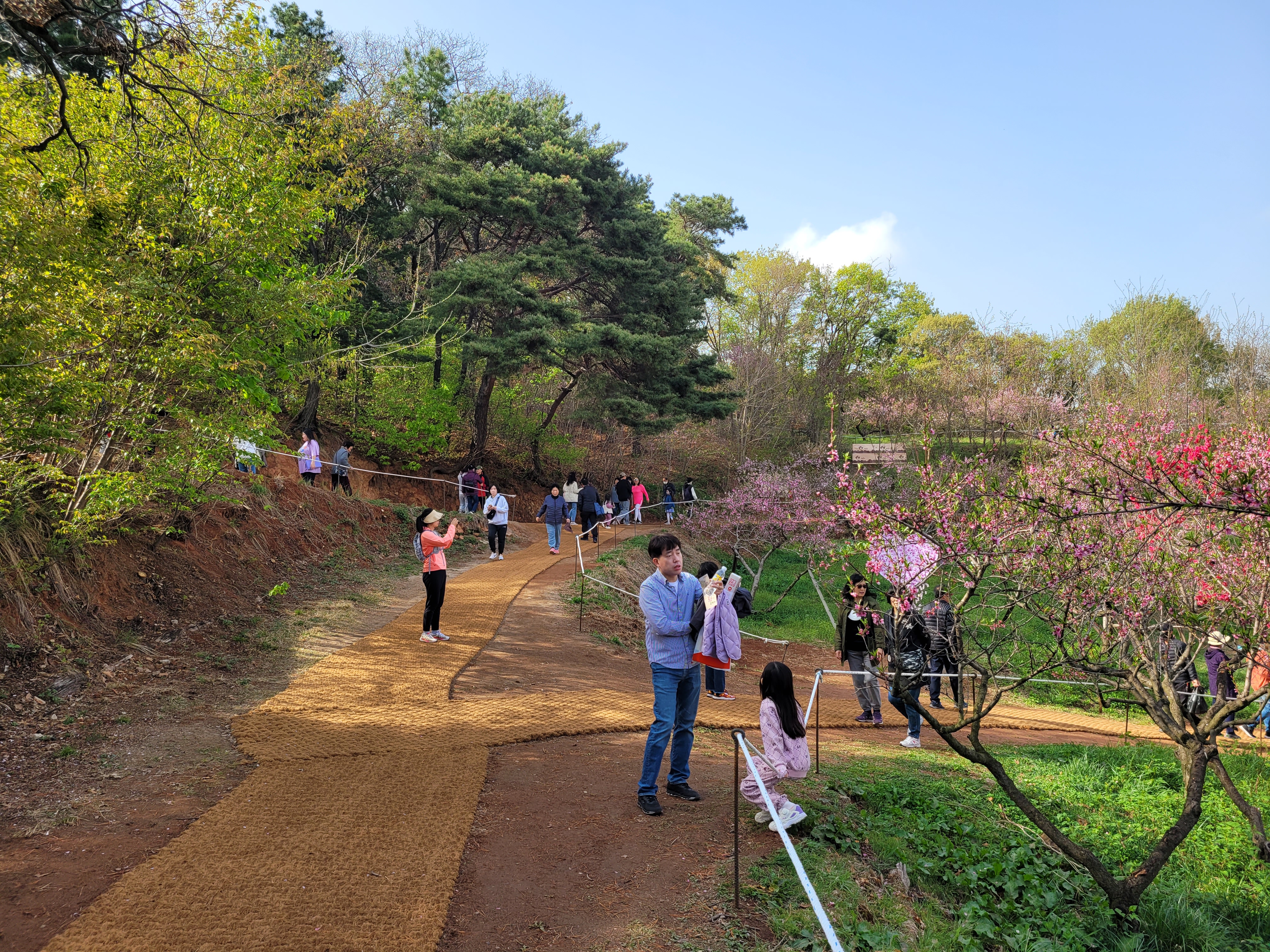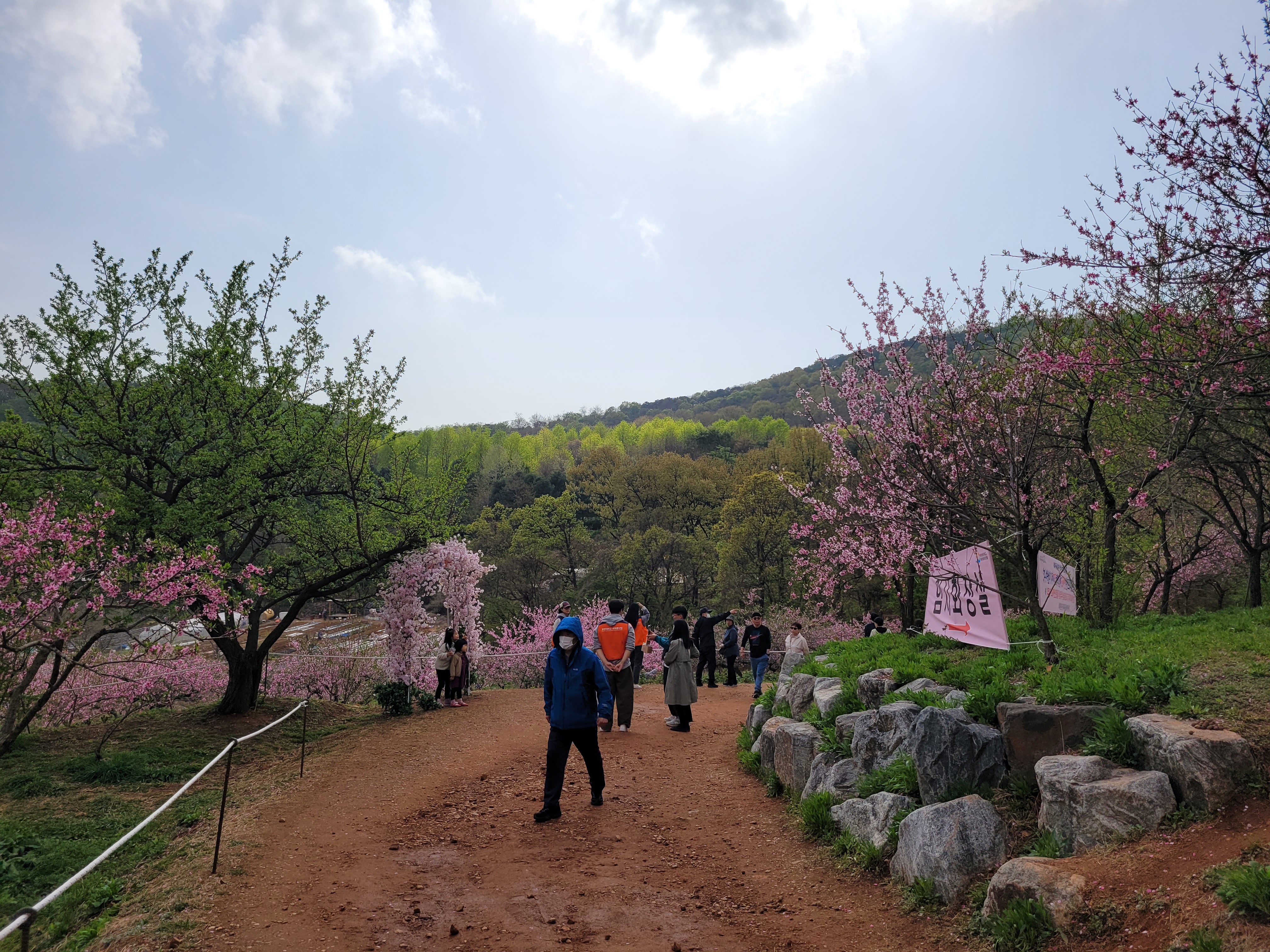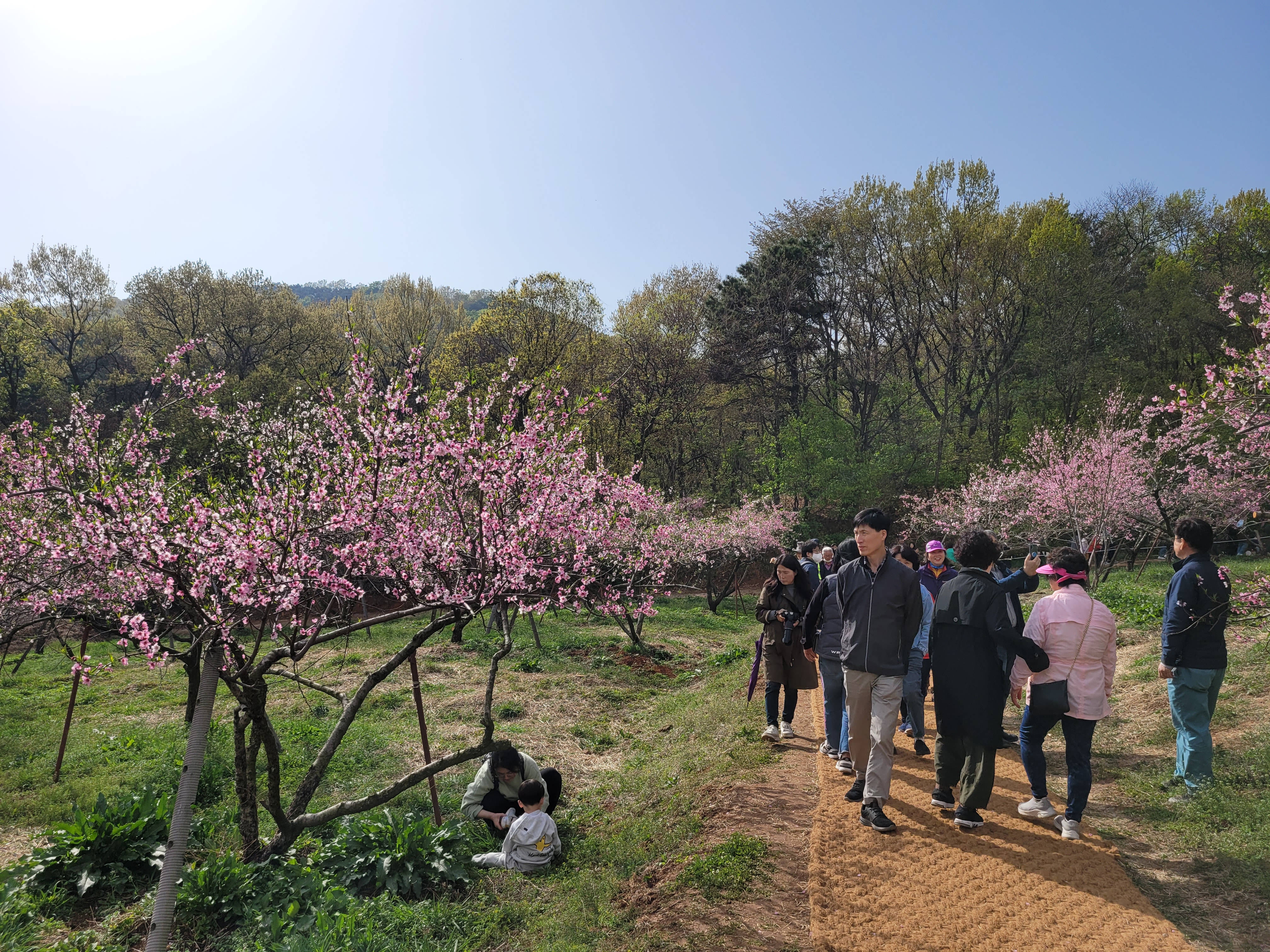 많은 사람들이 몰려왔네요. 춘덕산 복숭아꽃 축제 현장 곳곳을 둘러보며 복숭아동산에