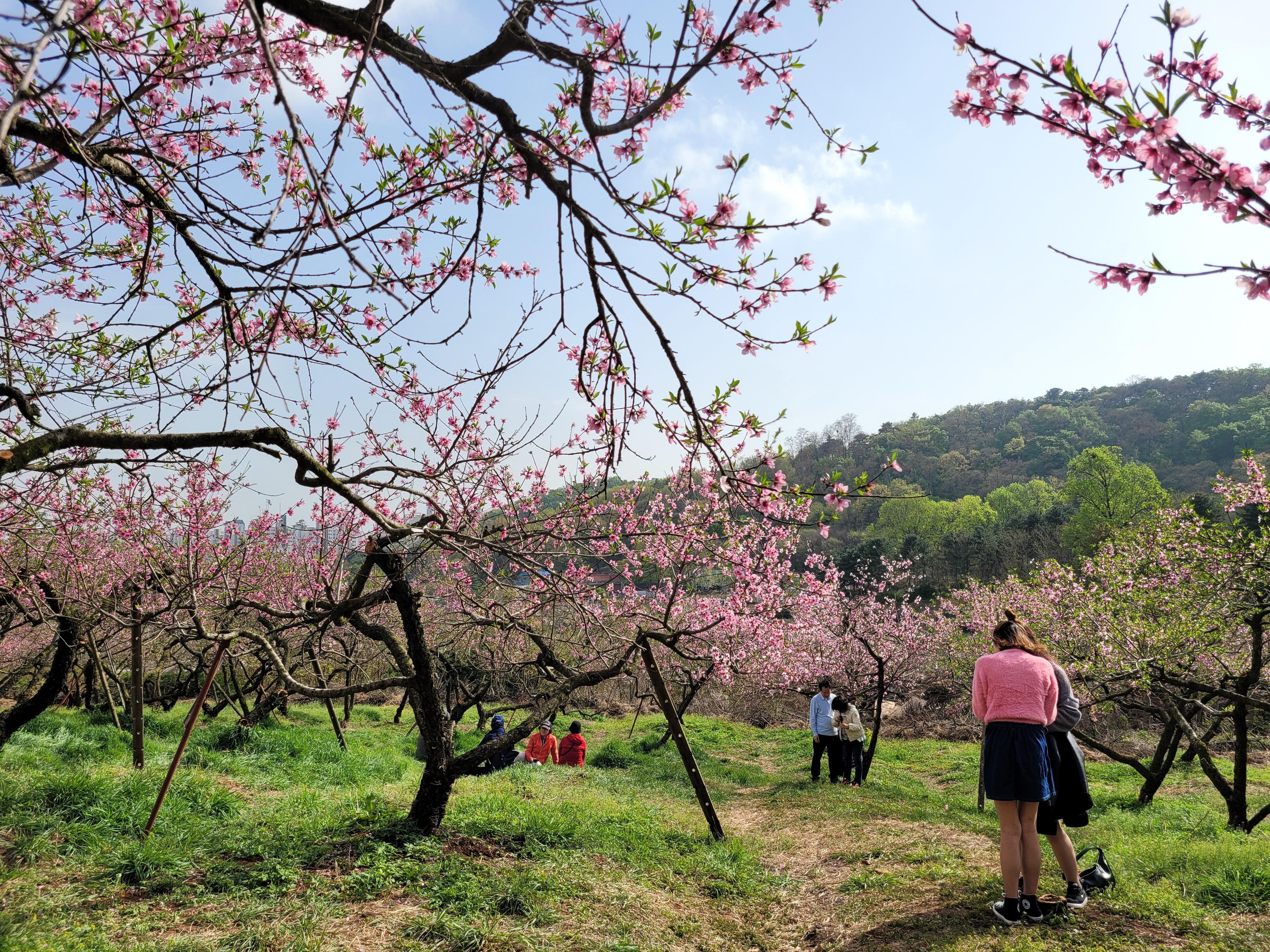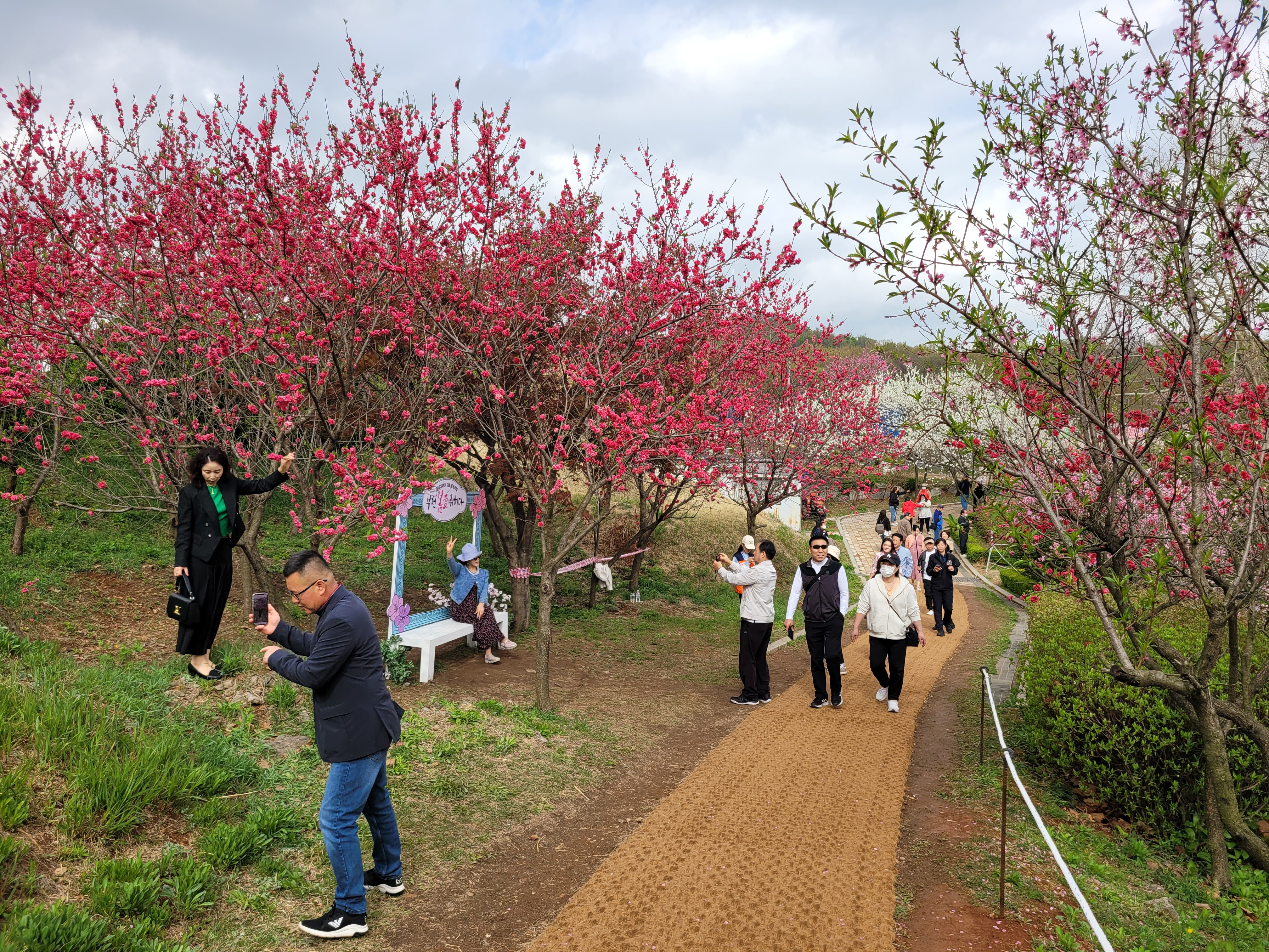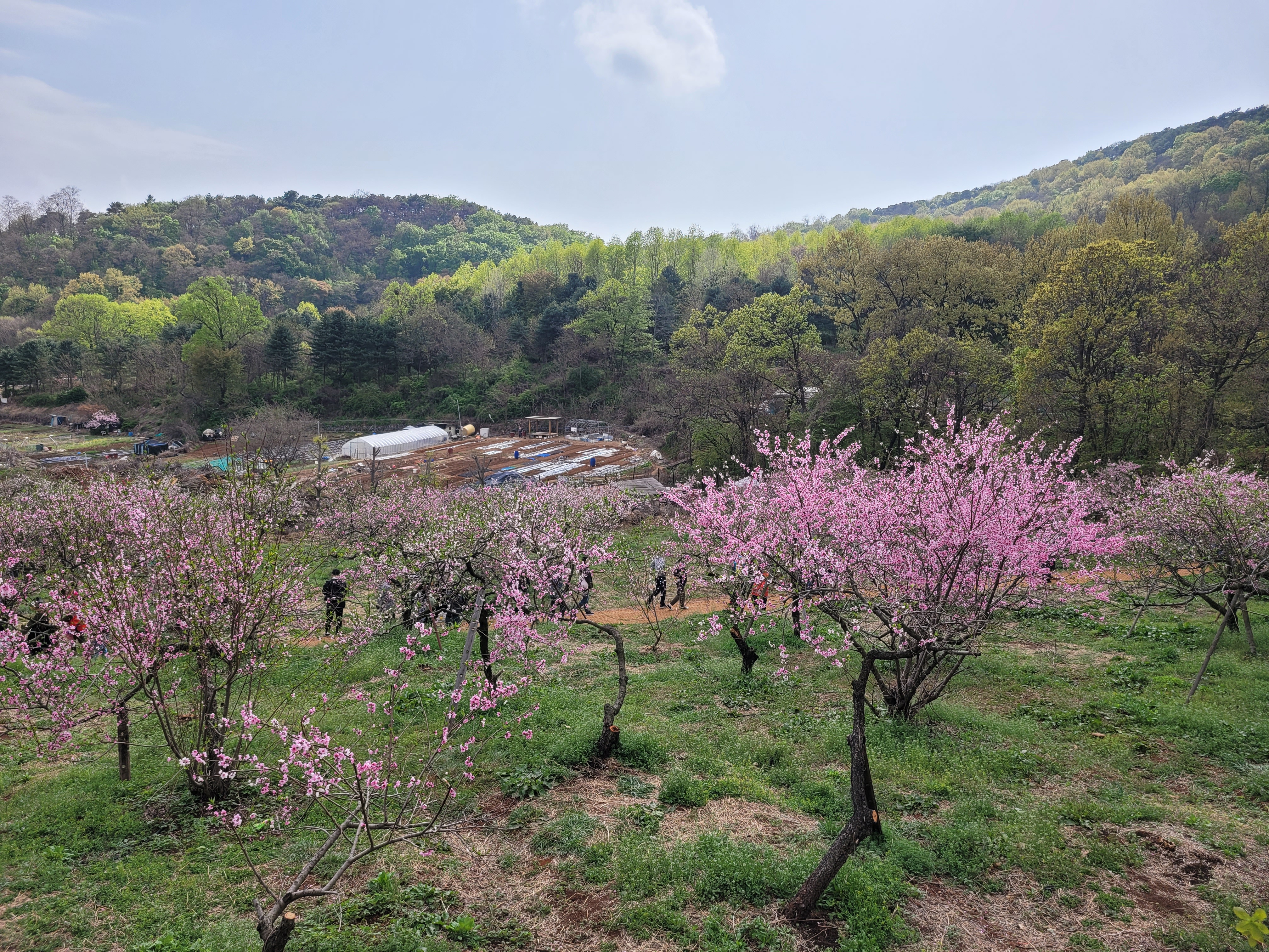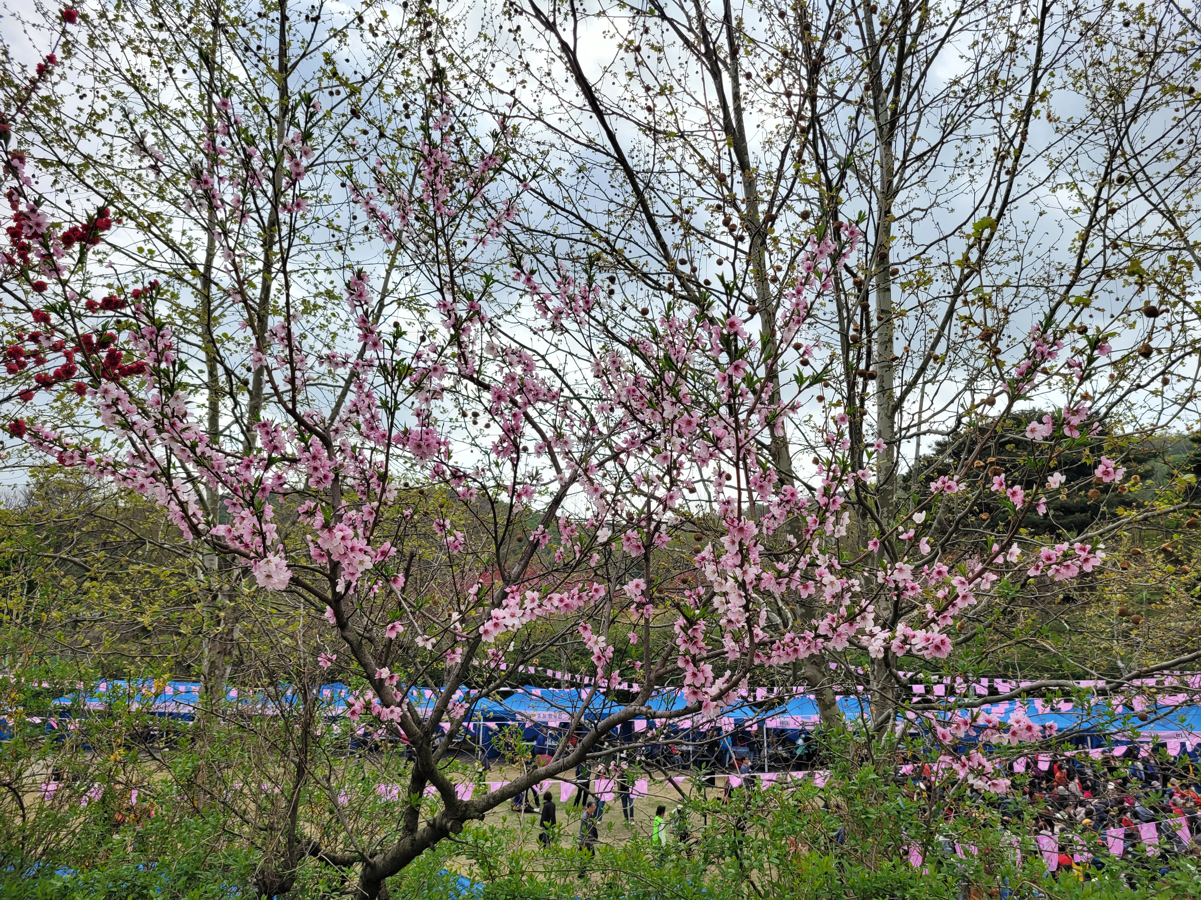 많은 사람들이 몰려왔네요. 춘덕산 복숭아꽃 축제 현장 곳곳을 둘러보며 복숭아동산에