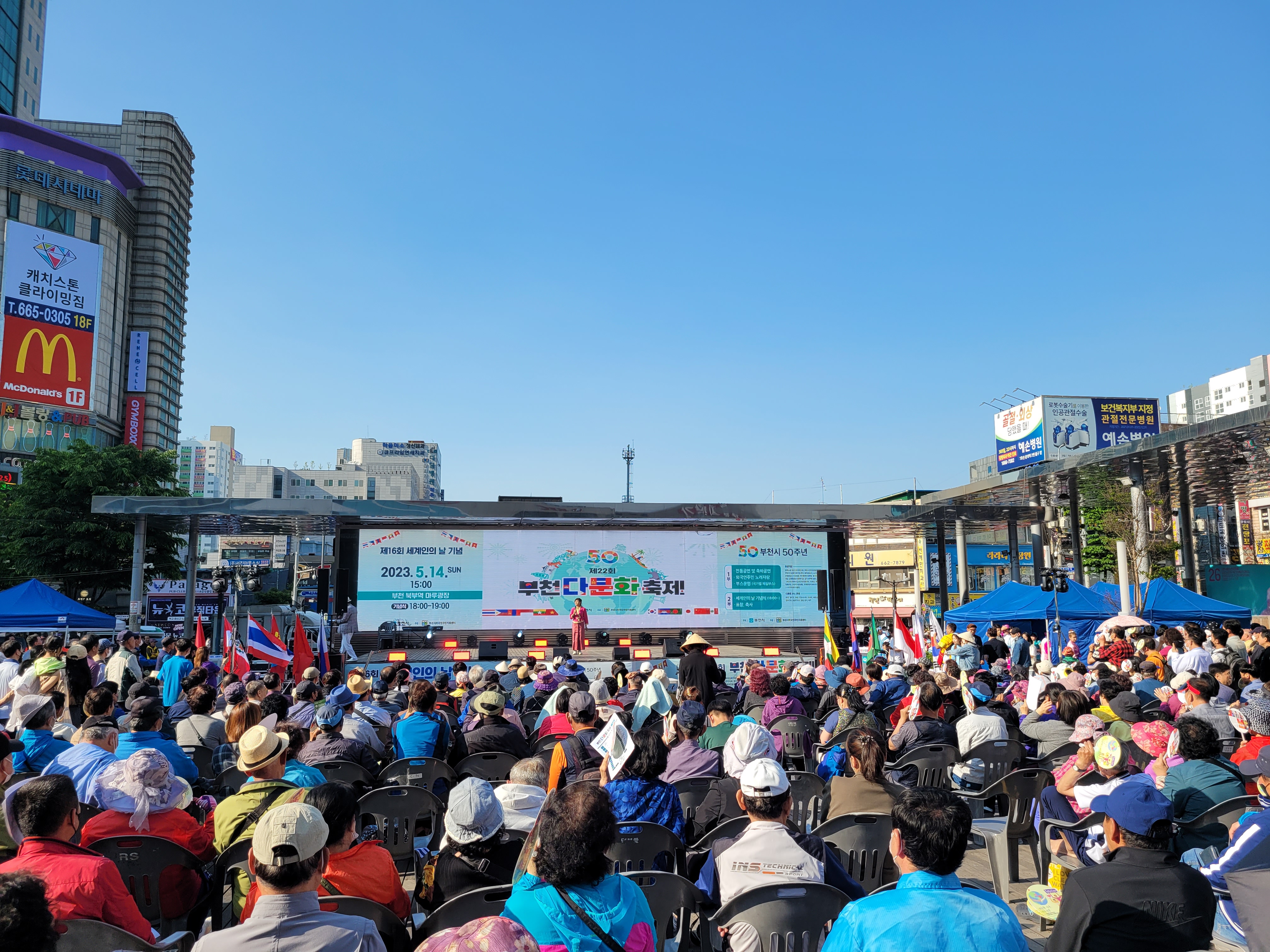 오늘 휴일에 부천 북부역 마루광장 일대에서 열린 제22회 부천 다문화 축제 풍경입니다.