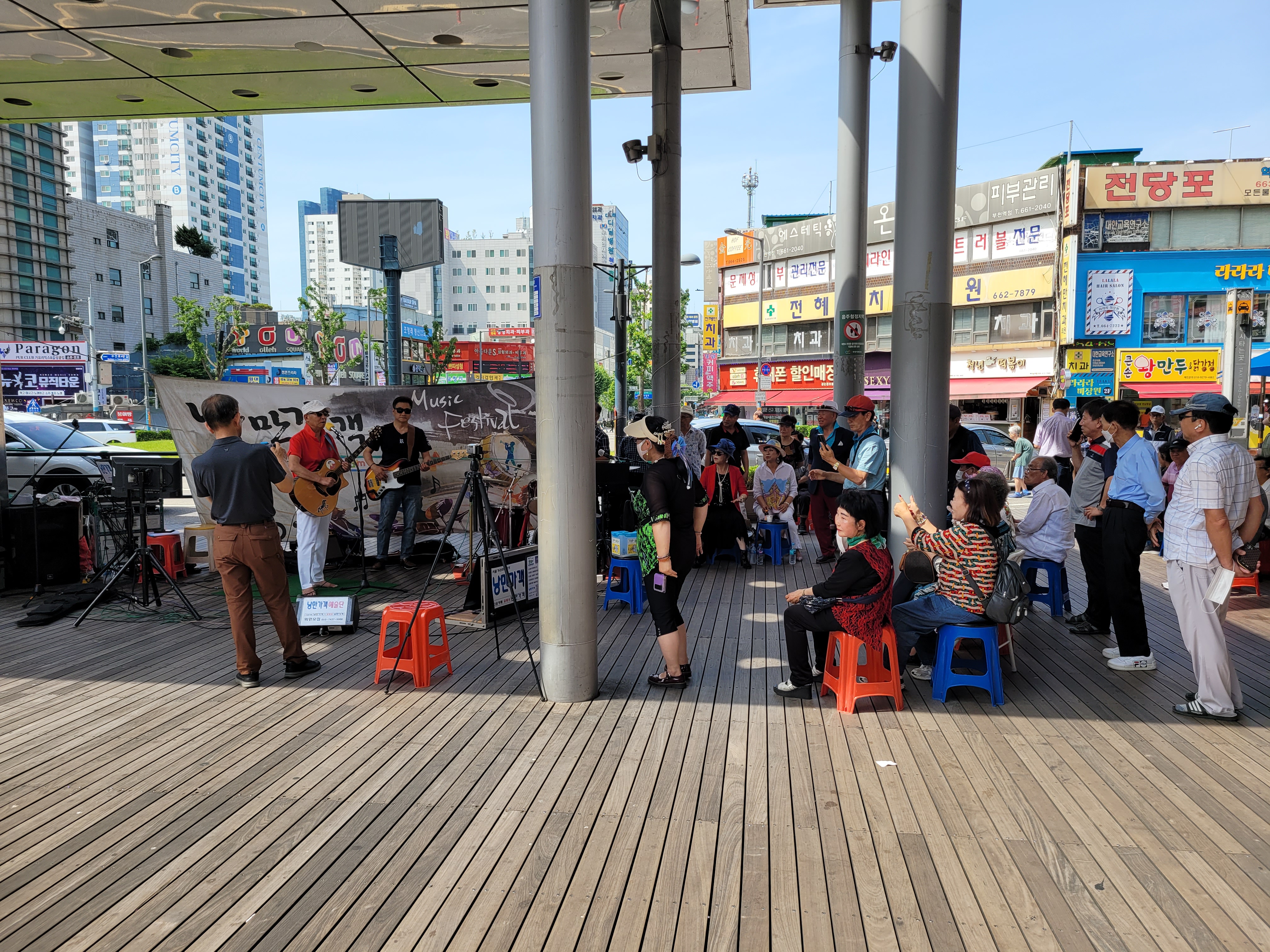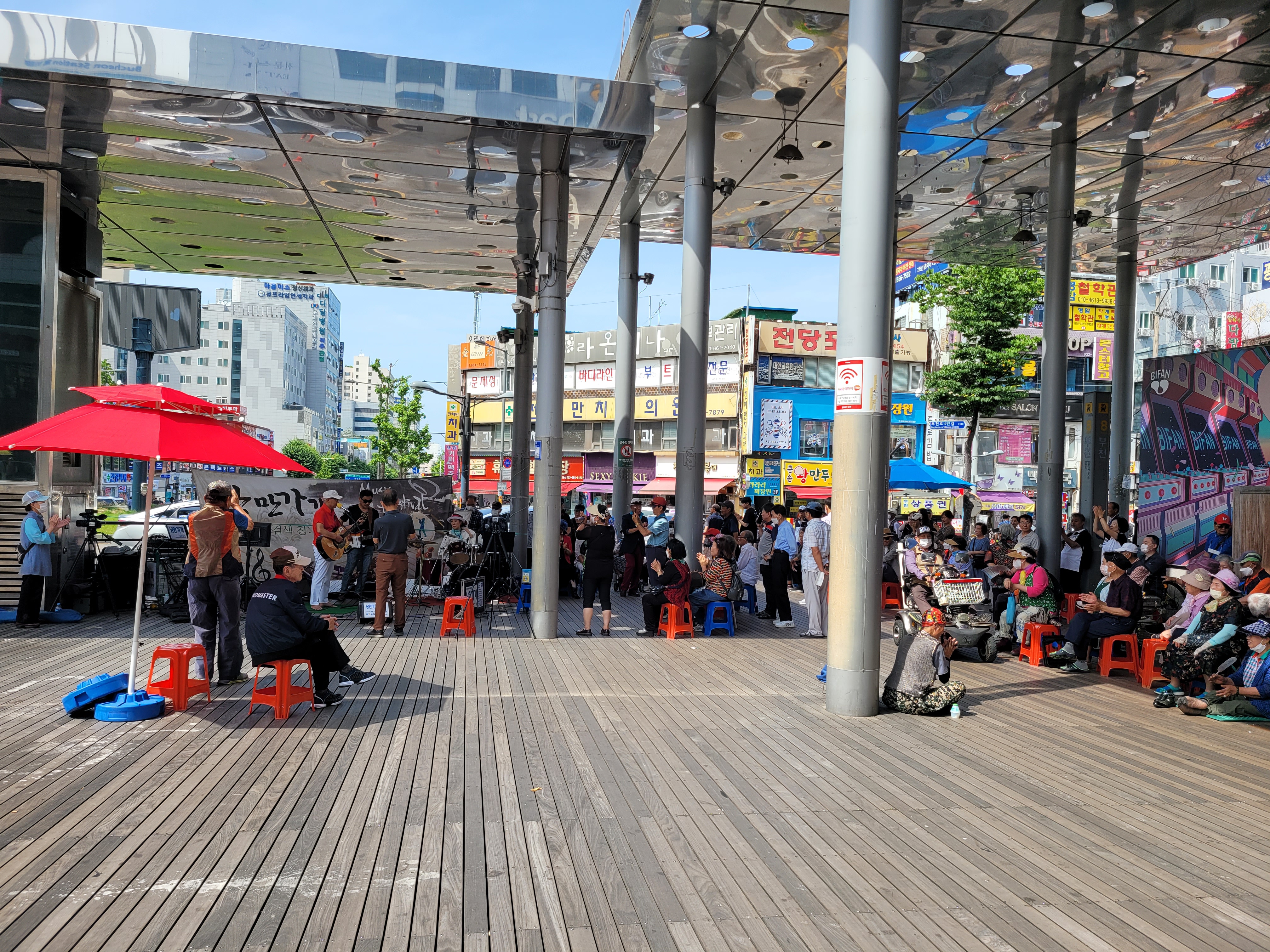 오늘 주말에 점심식사하러 다녀오는 길에 부천 북부역 마루광장에서 열리는 작은공연을 잠시 구경했습니다.