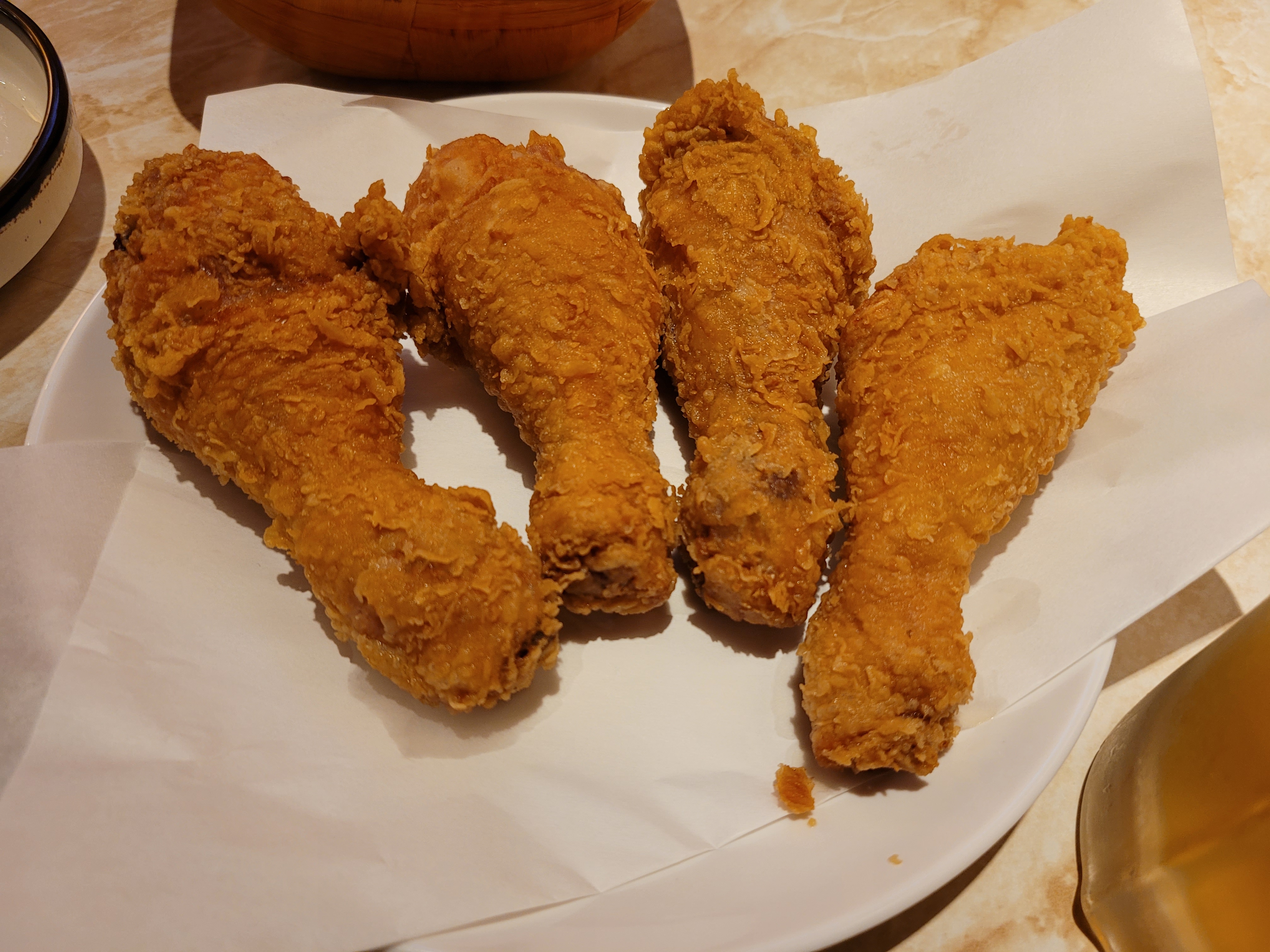 닭다리 4조각과 생맥주 한잔을 했습니다. 이곳 오부장치킨 심곡본동점은