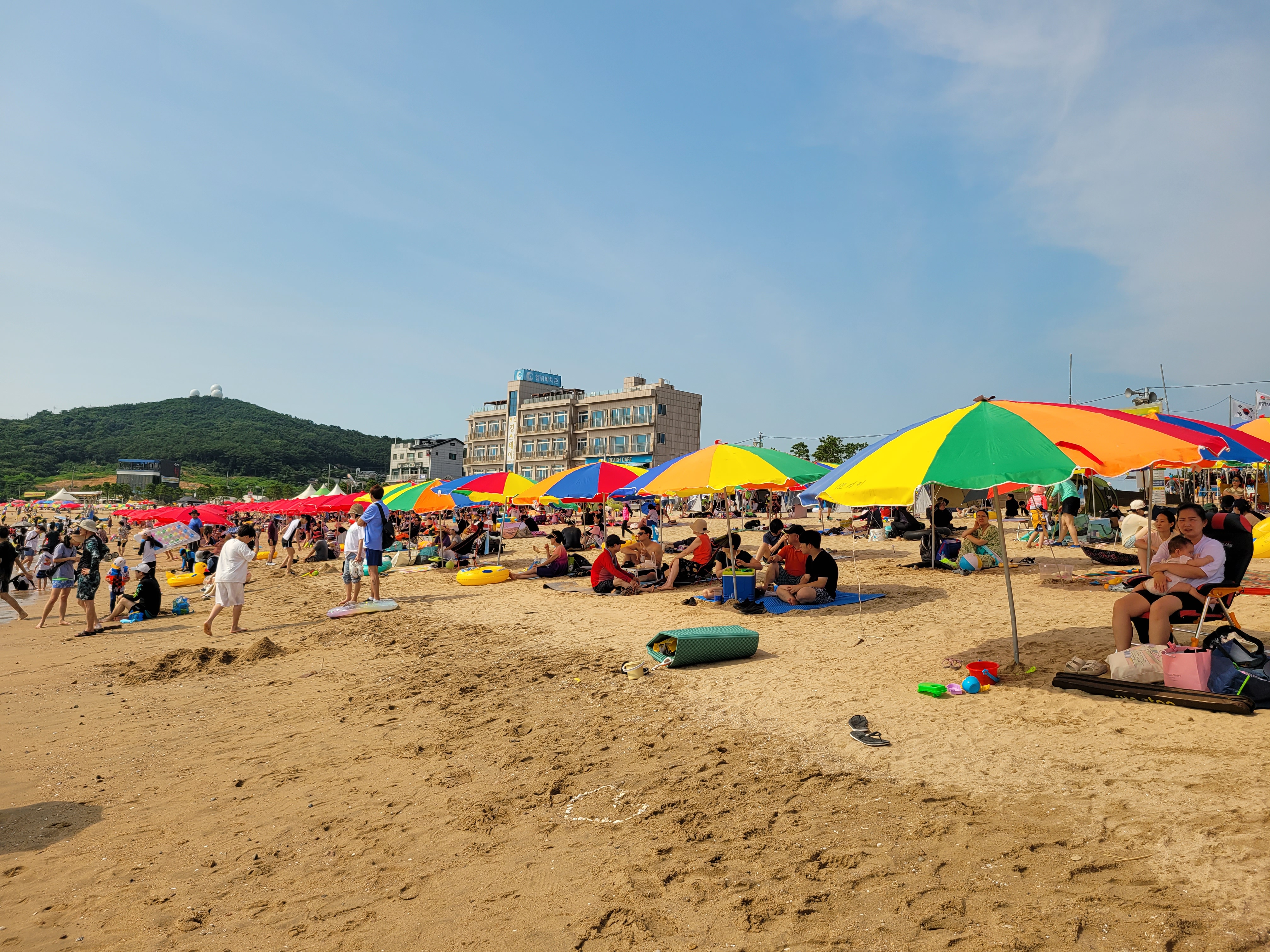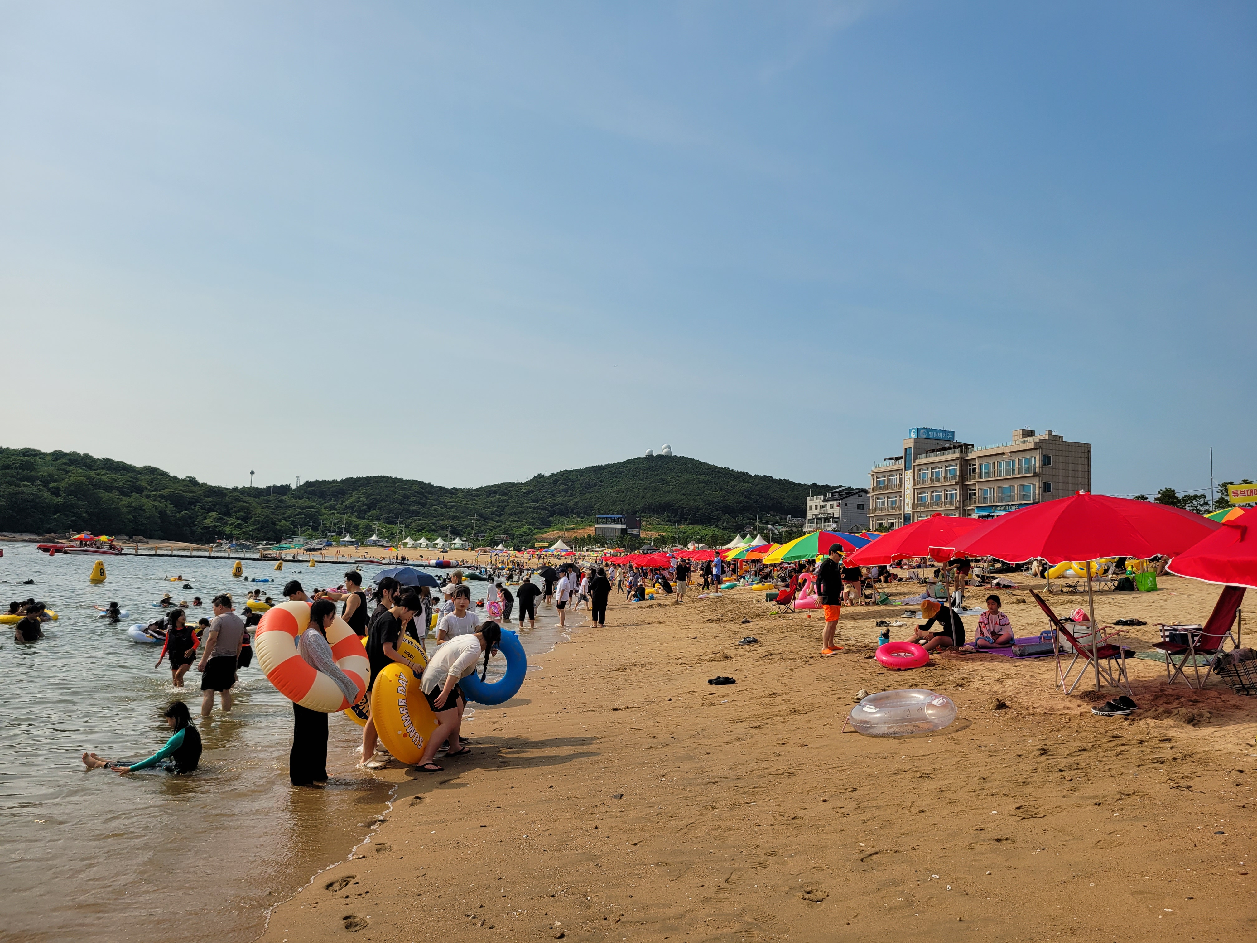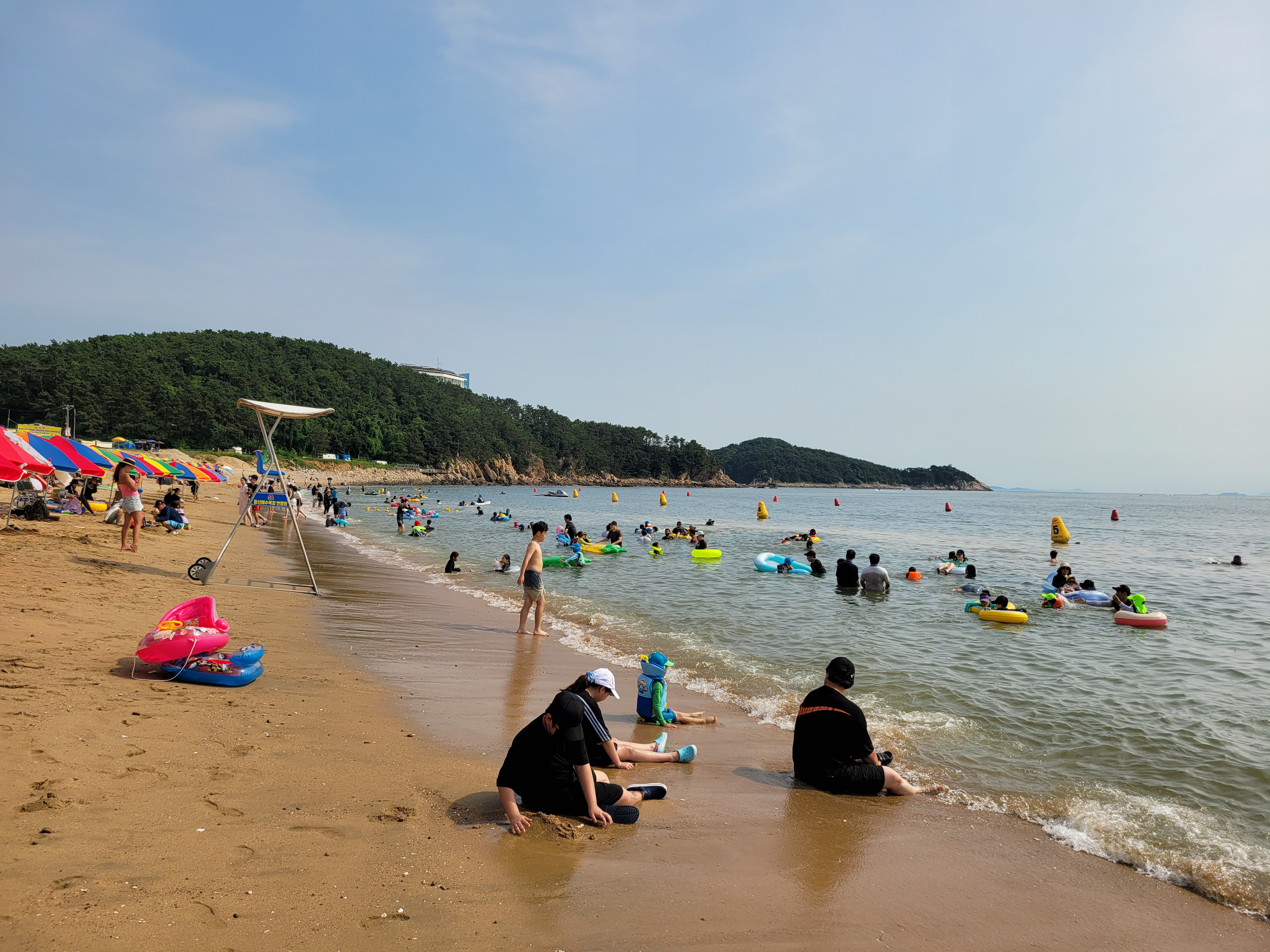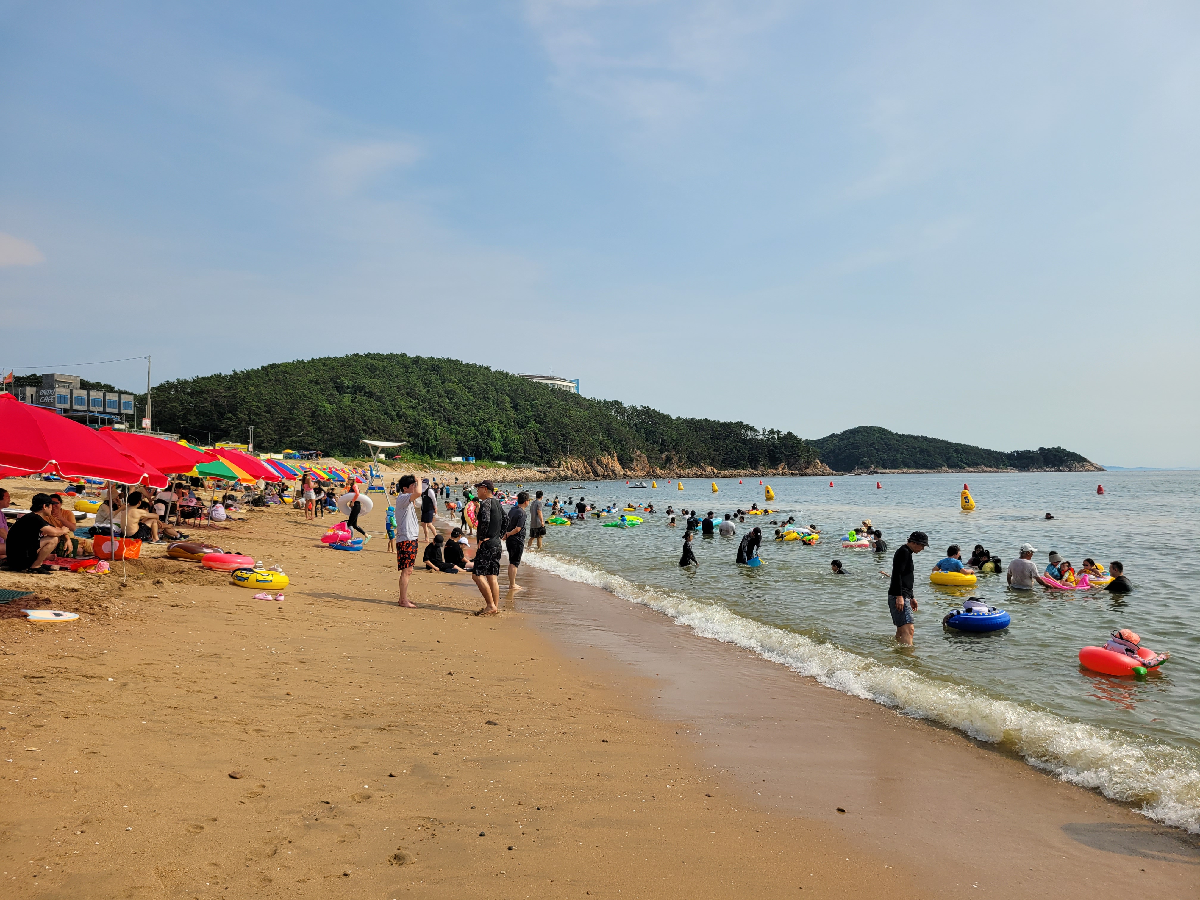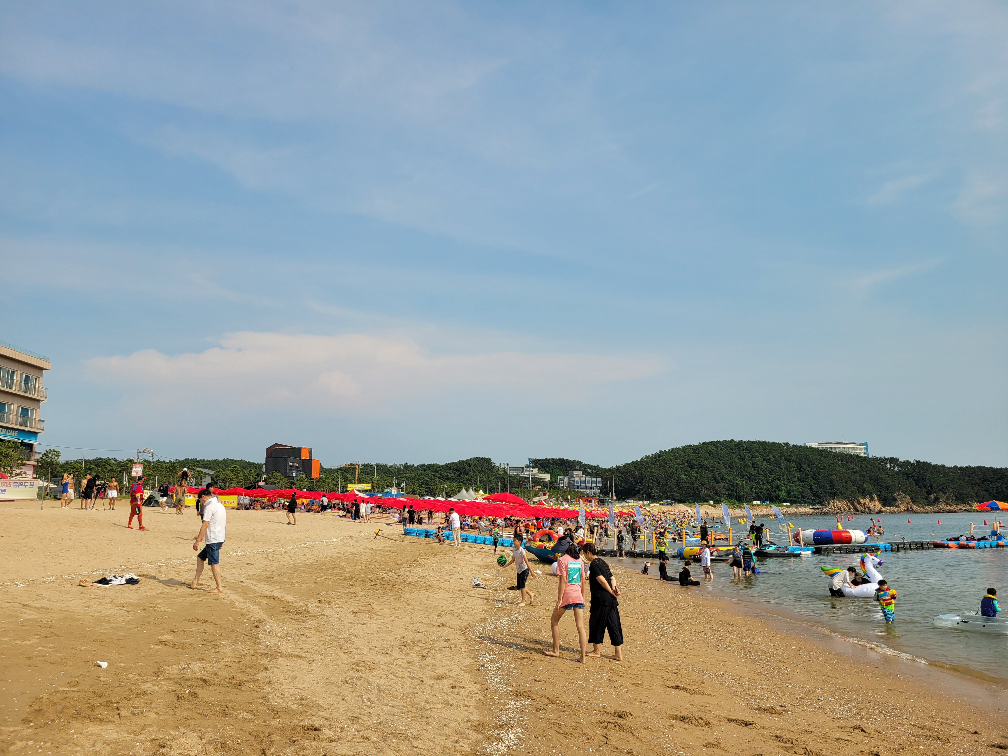 왕산해수욕장 와보니까 역시나 많은 사람들이 찾아와서 물놀이도 즐기고 카페에서