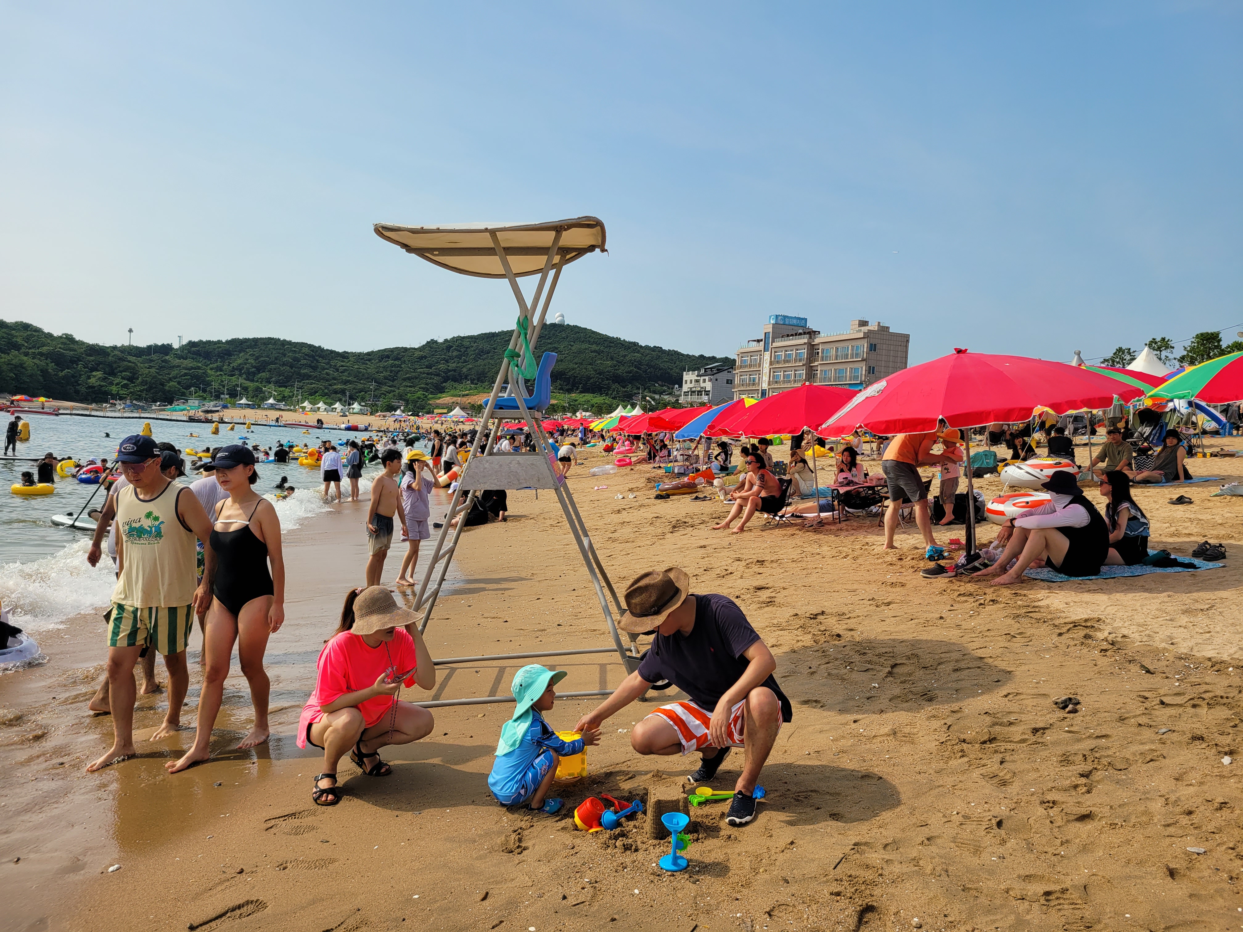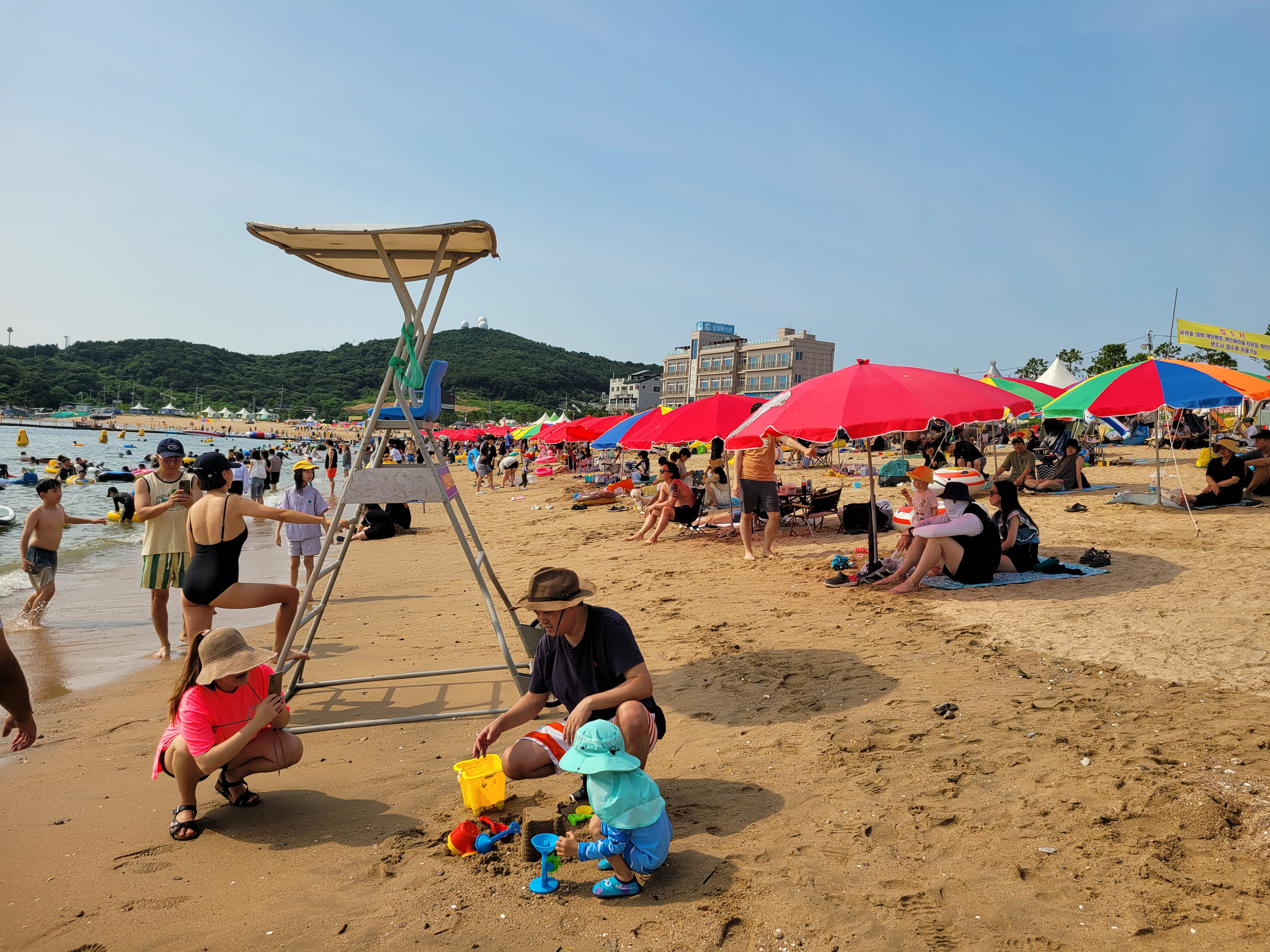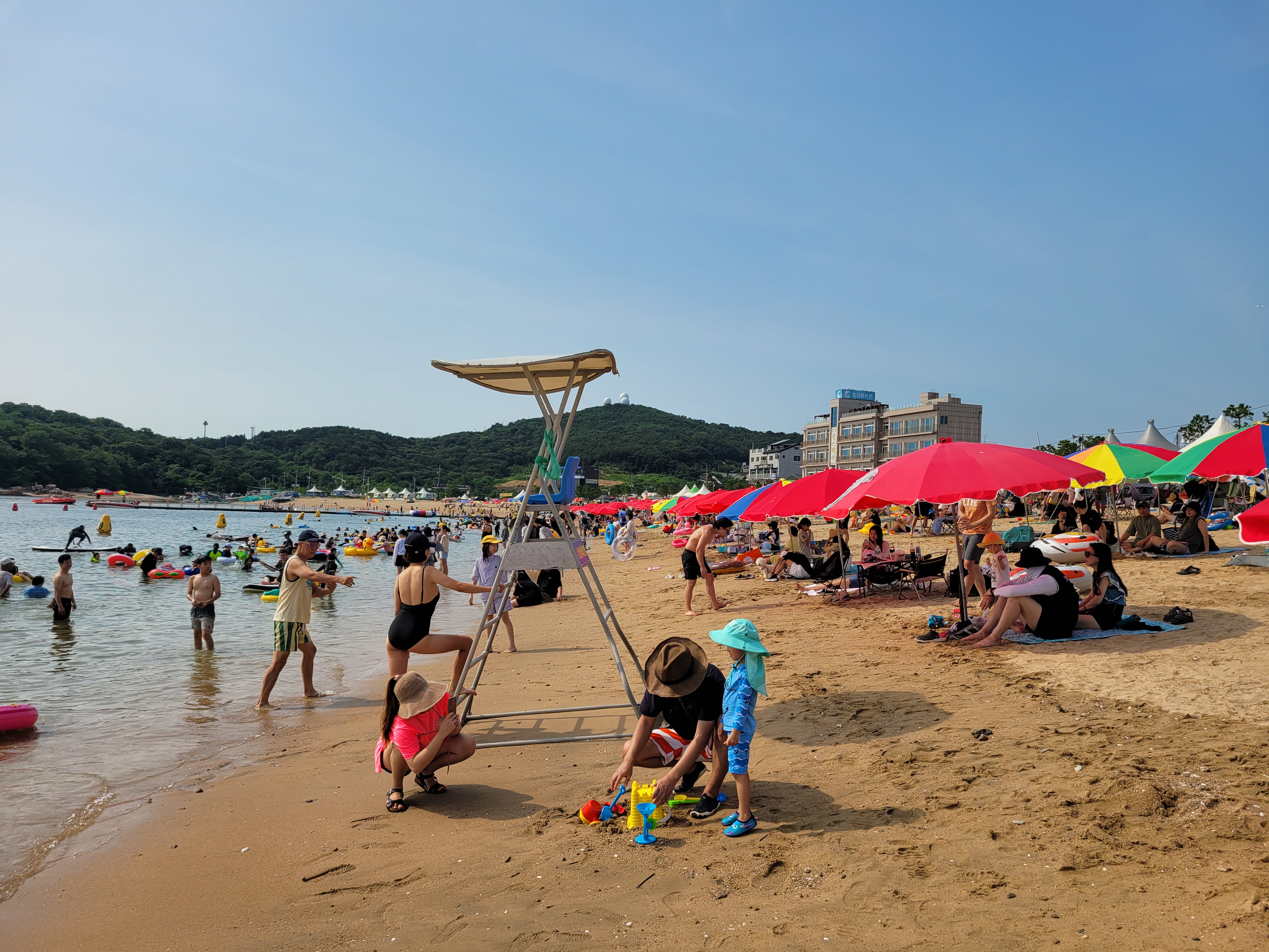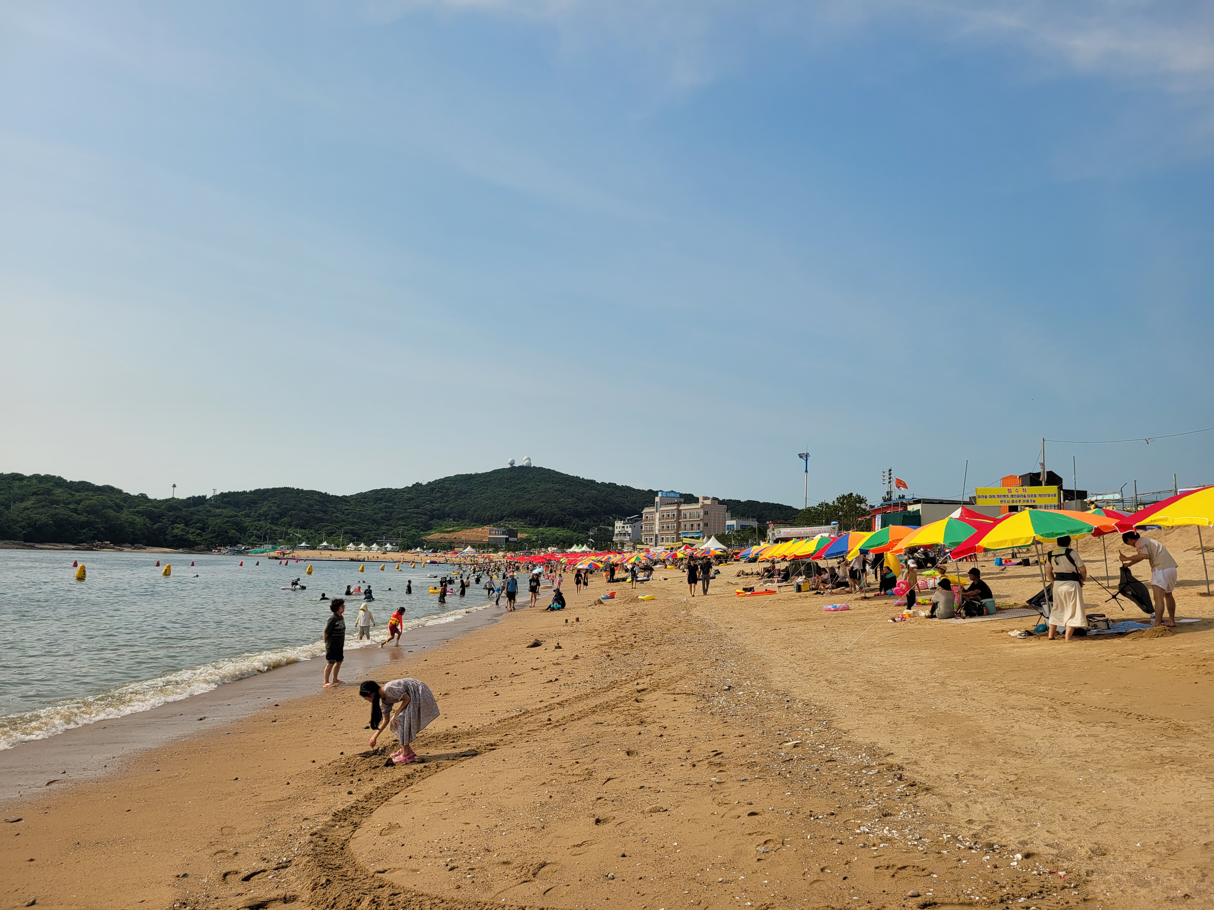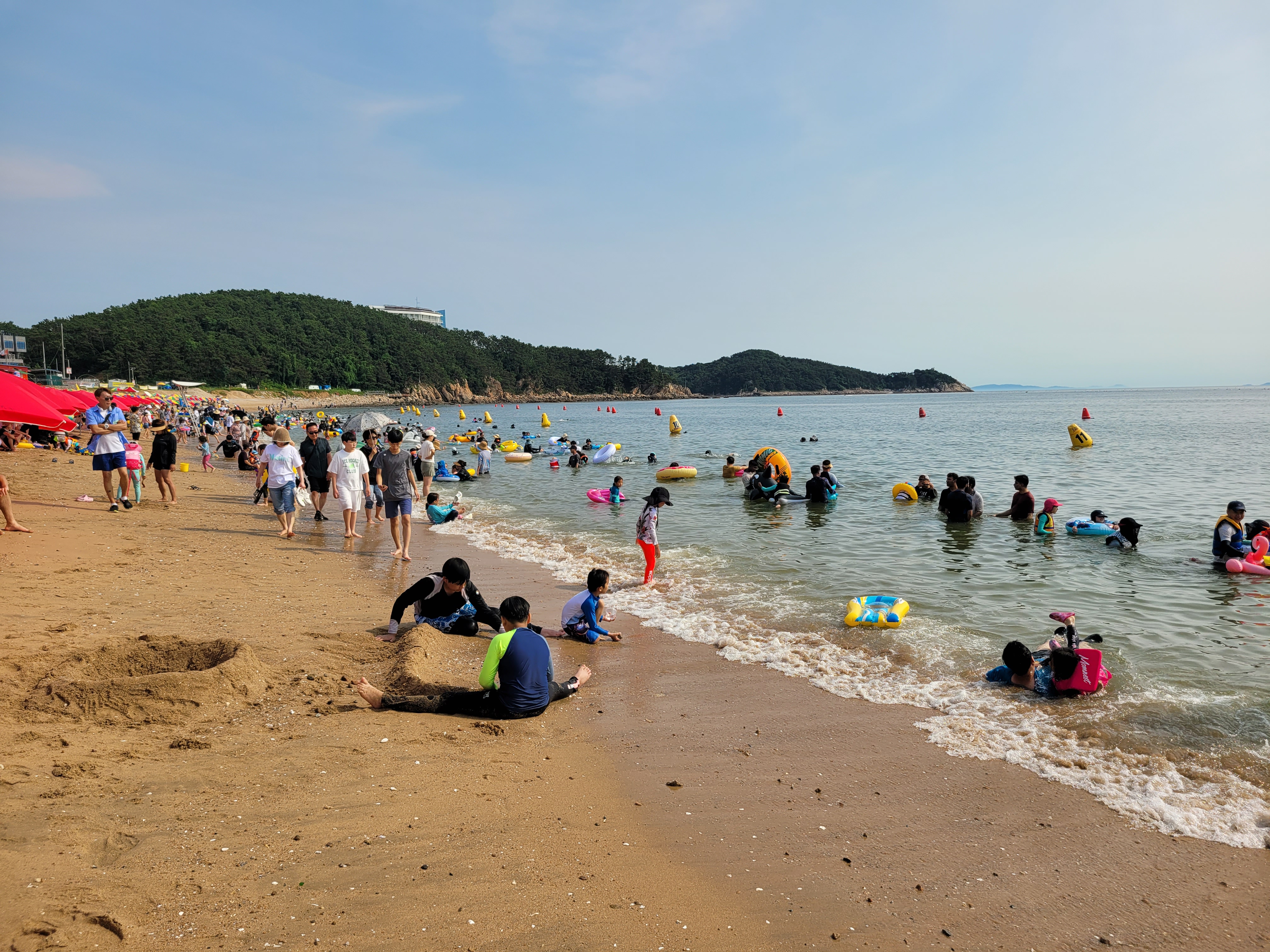 왕산해수욕장 와보니까 역시나 많은 사람들이 찾아와서 물놀이도 즐기고 카페에서