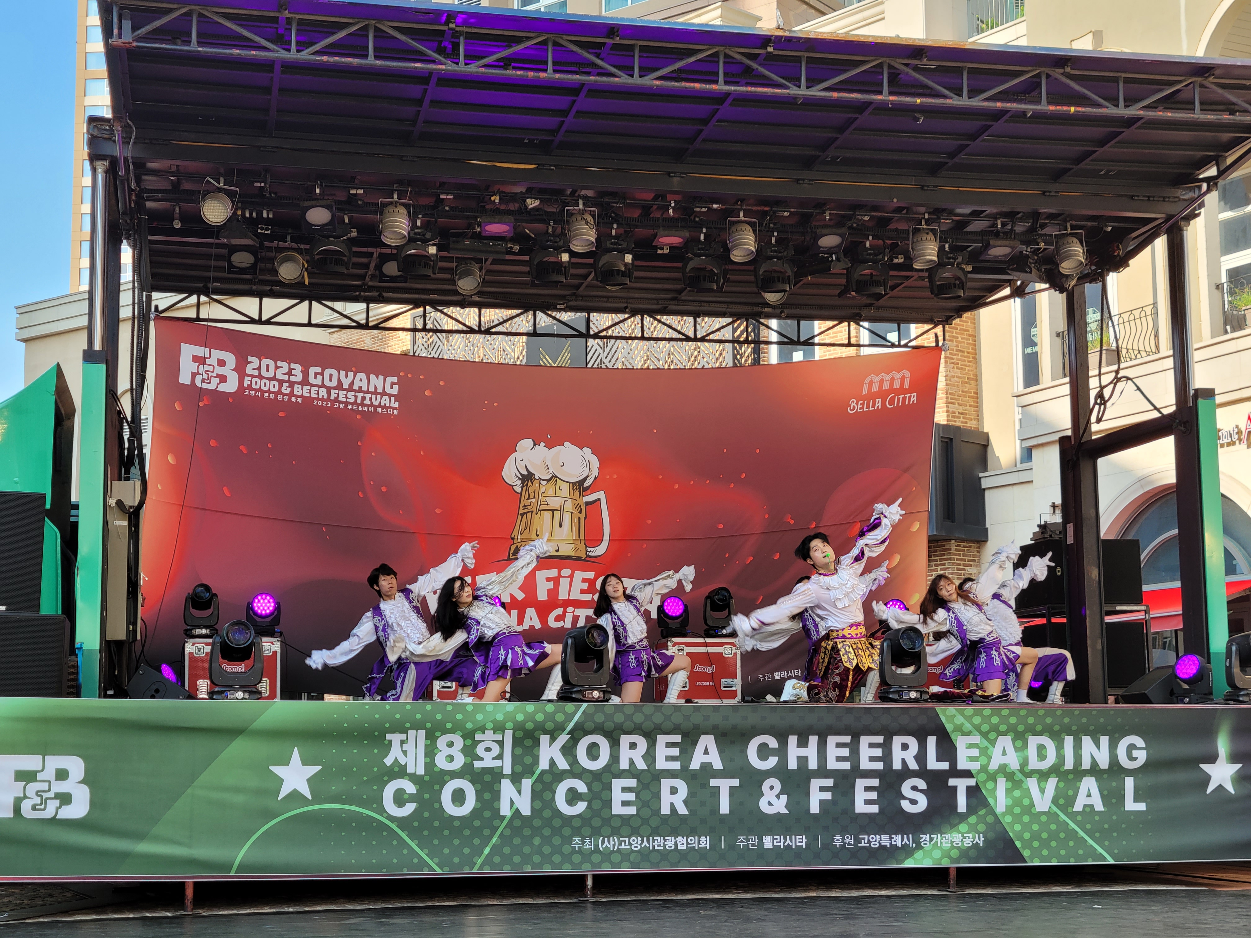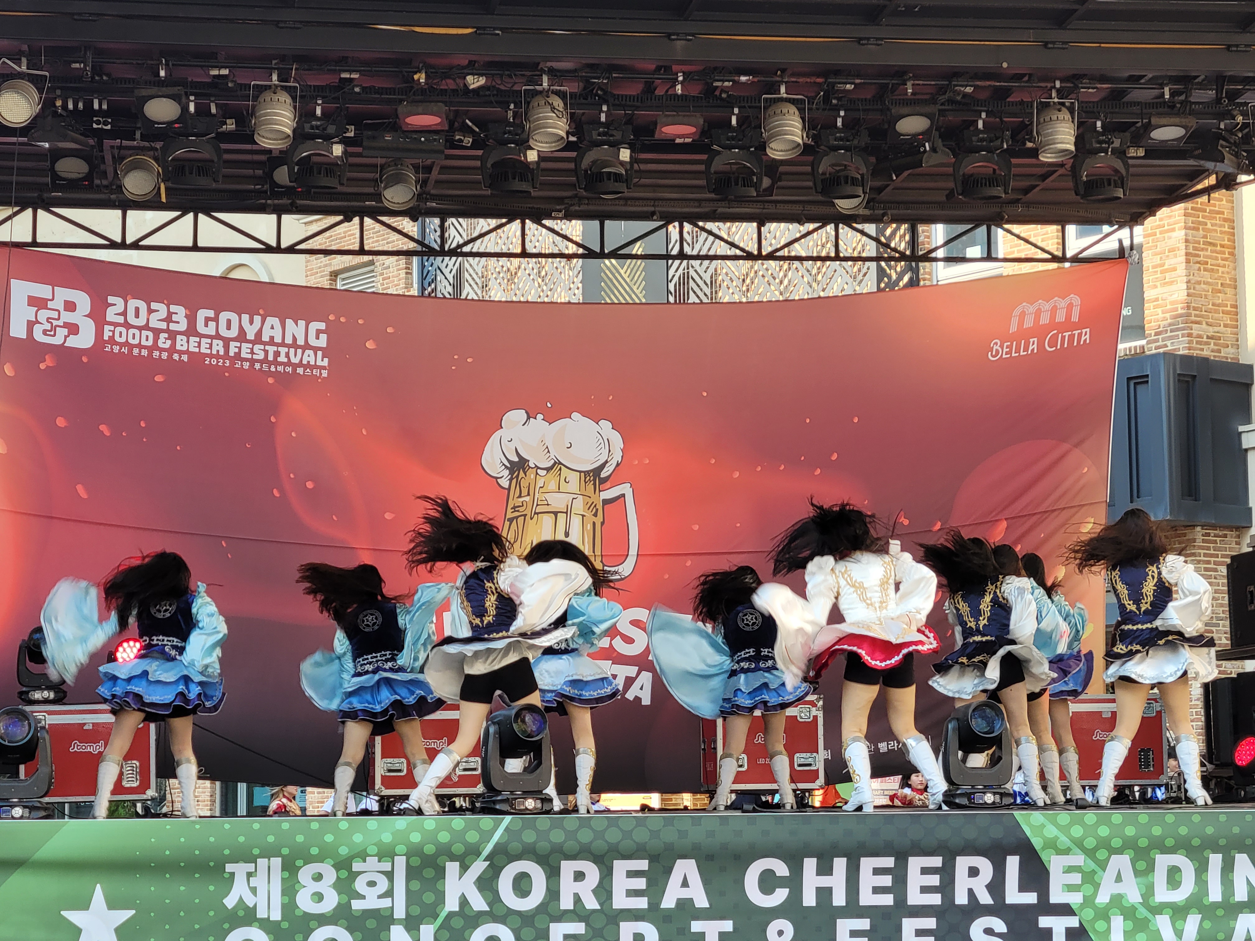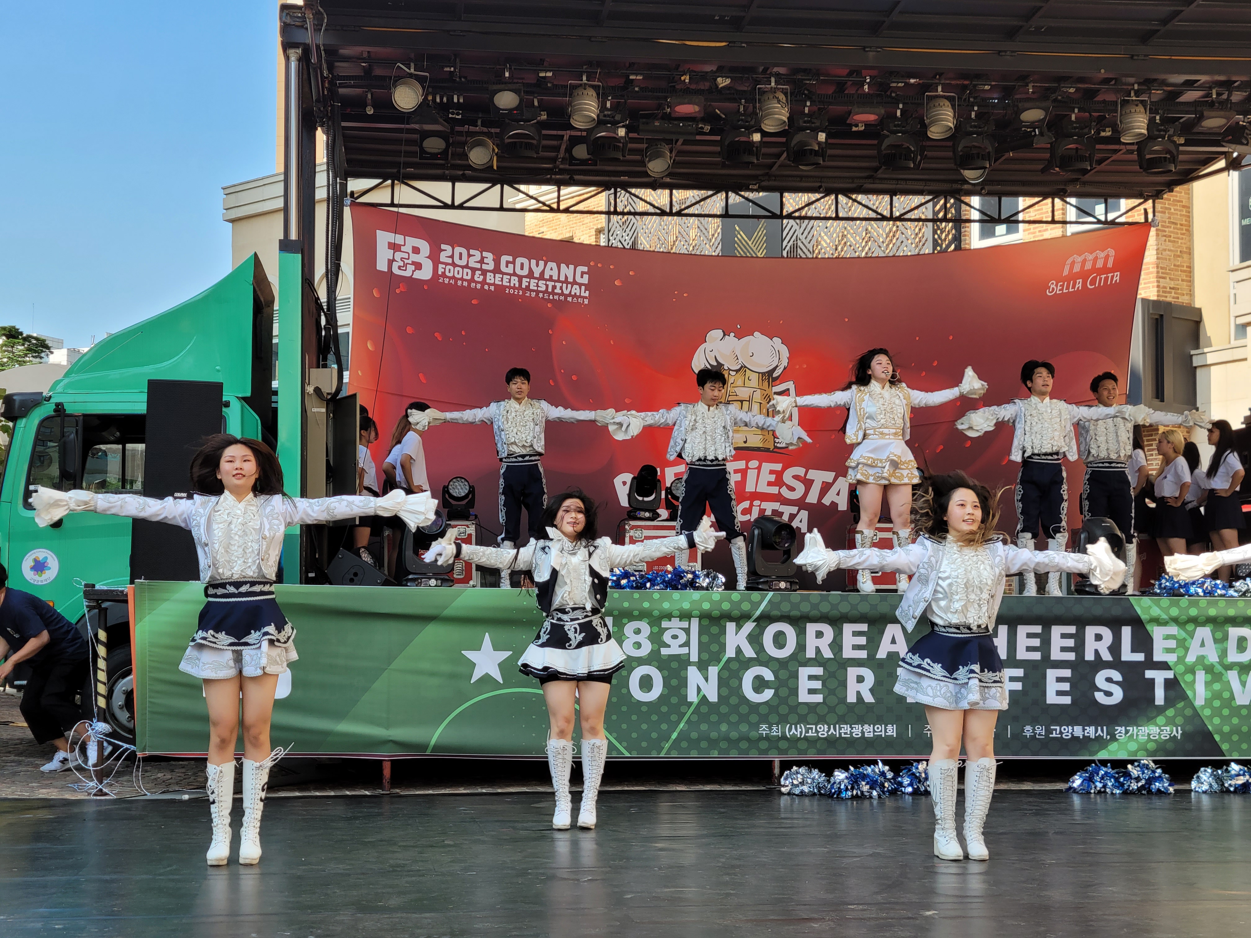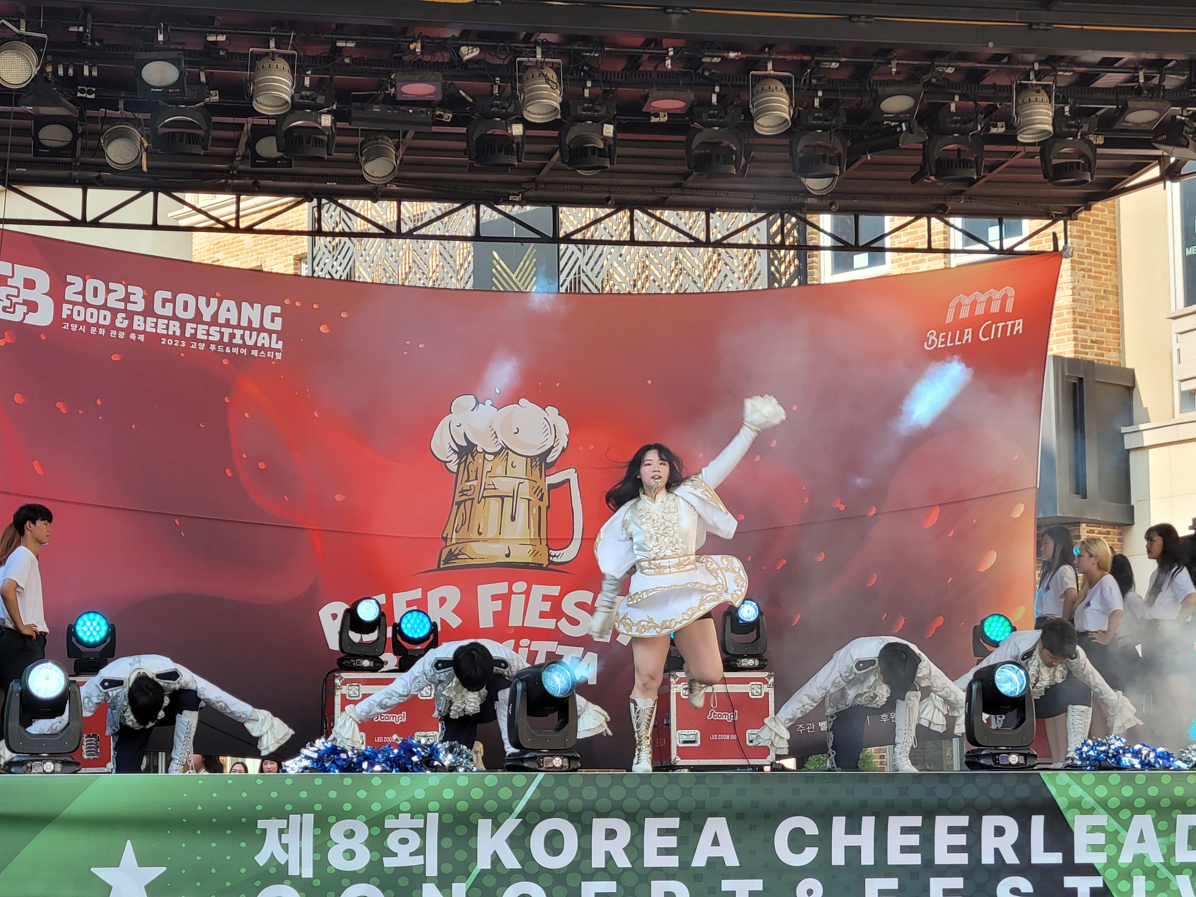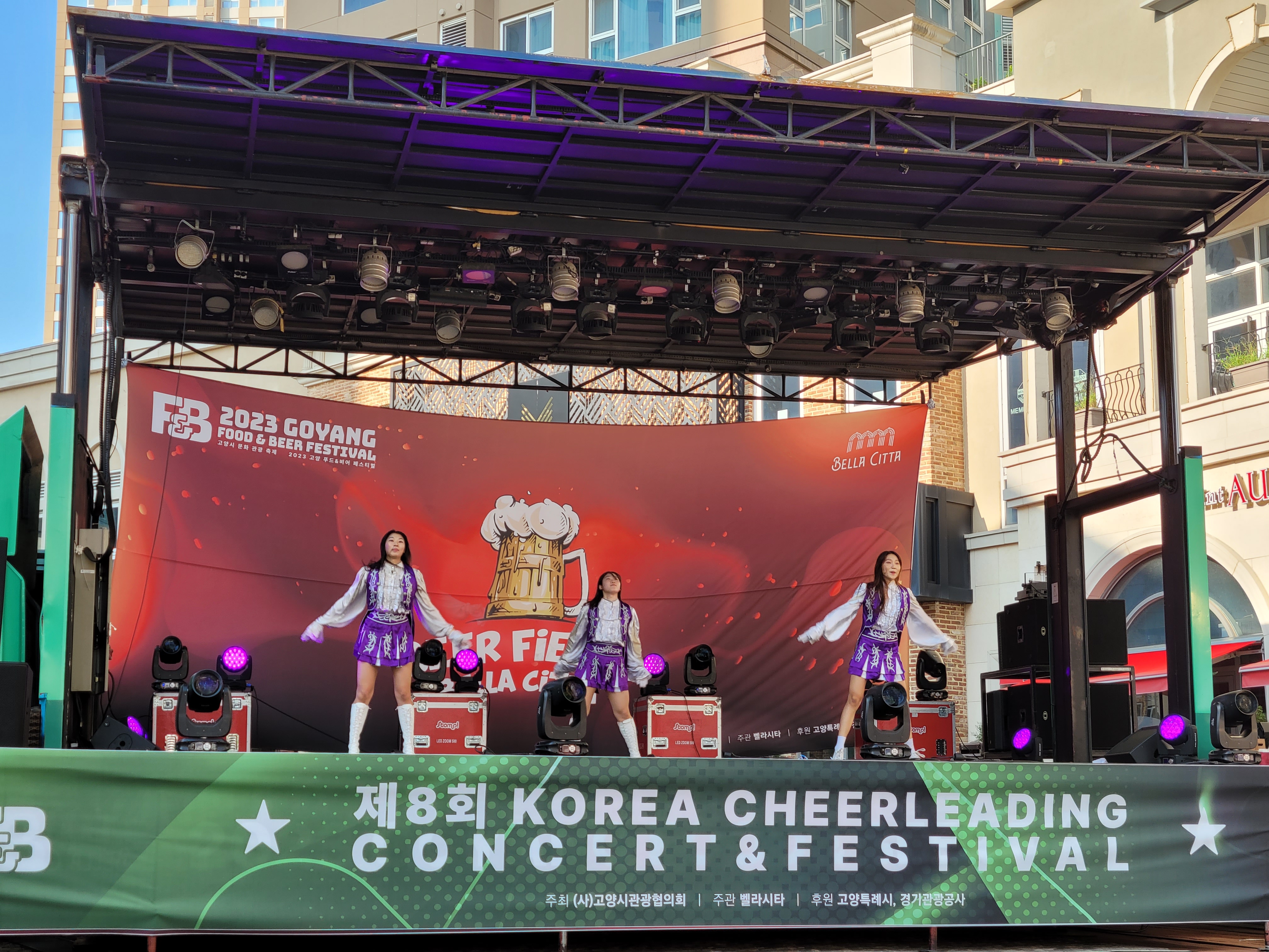 무대에서 열리는 각 대학의 치어리더들의 멋진 치어리딩 공연으로 정말