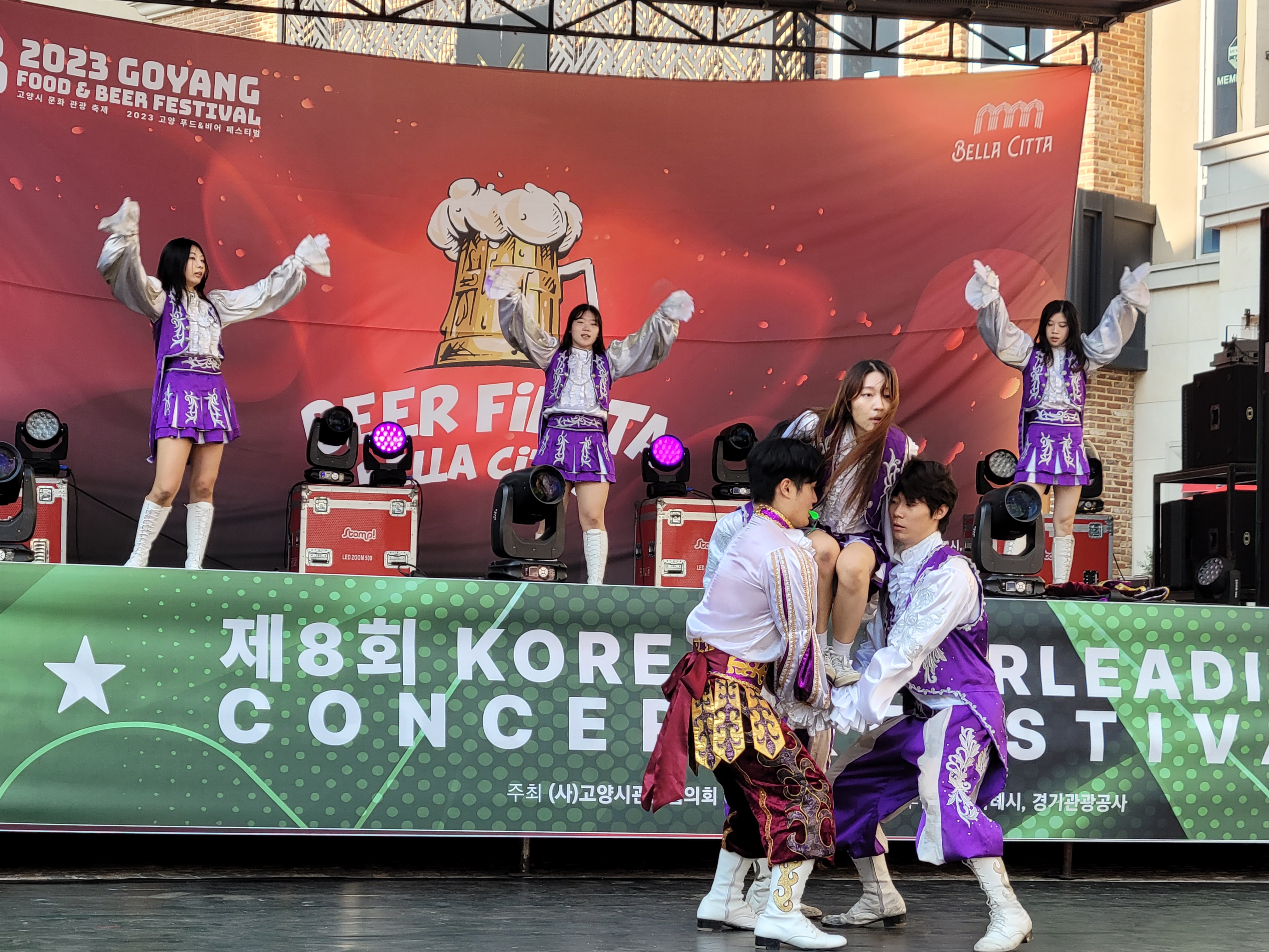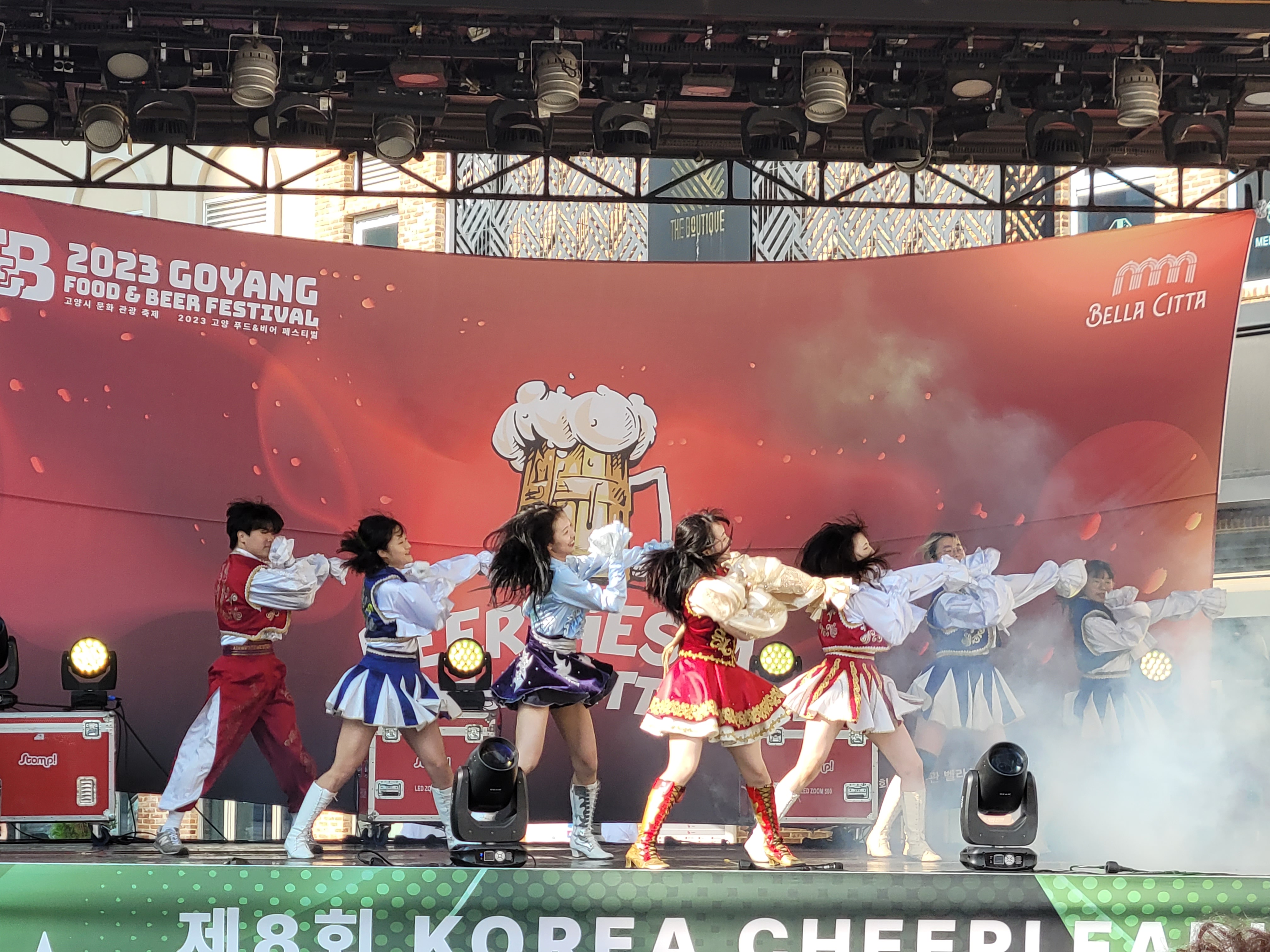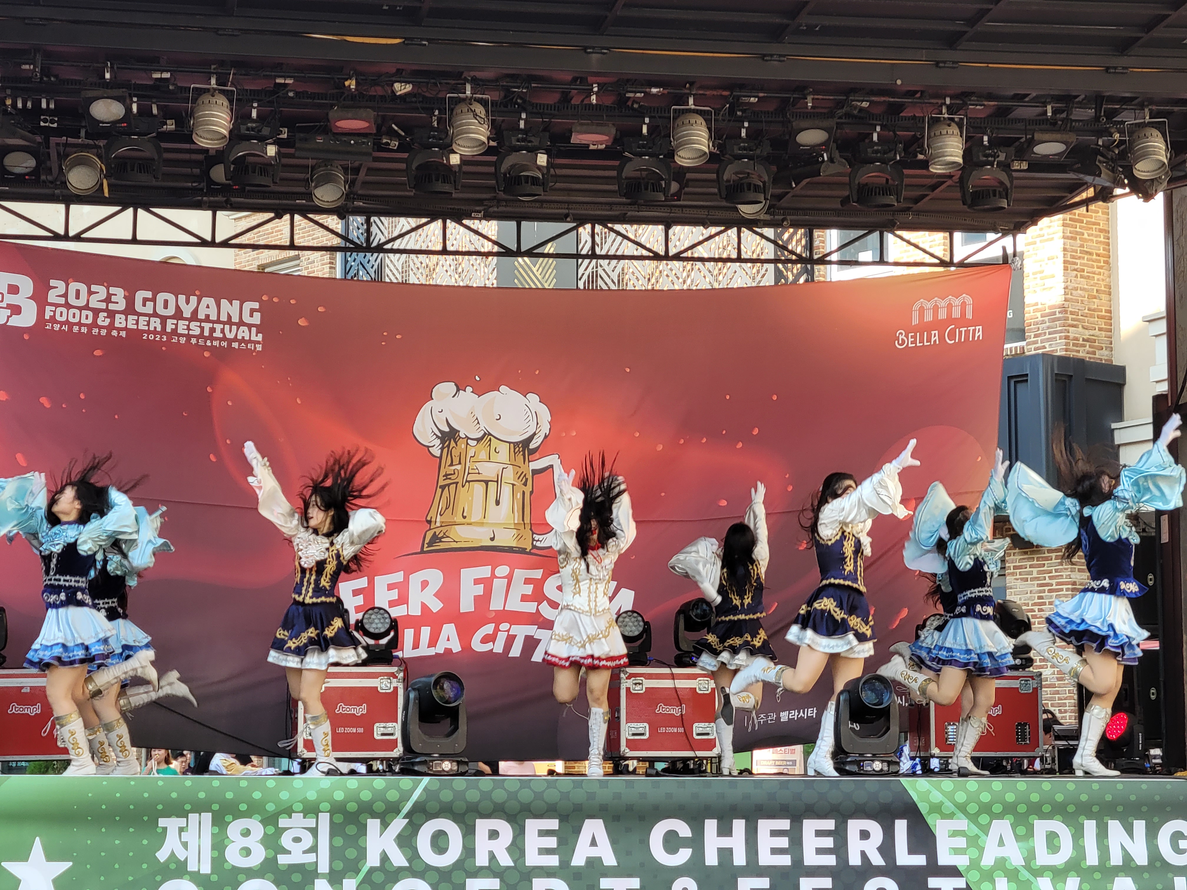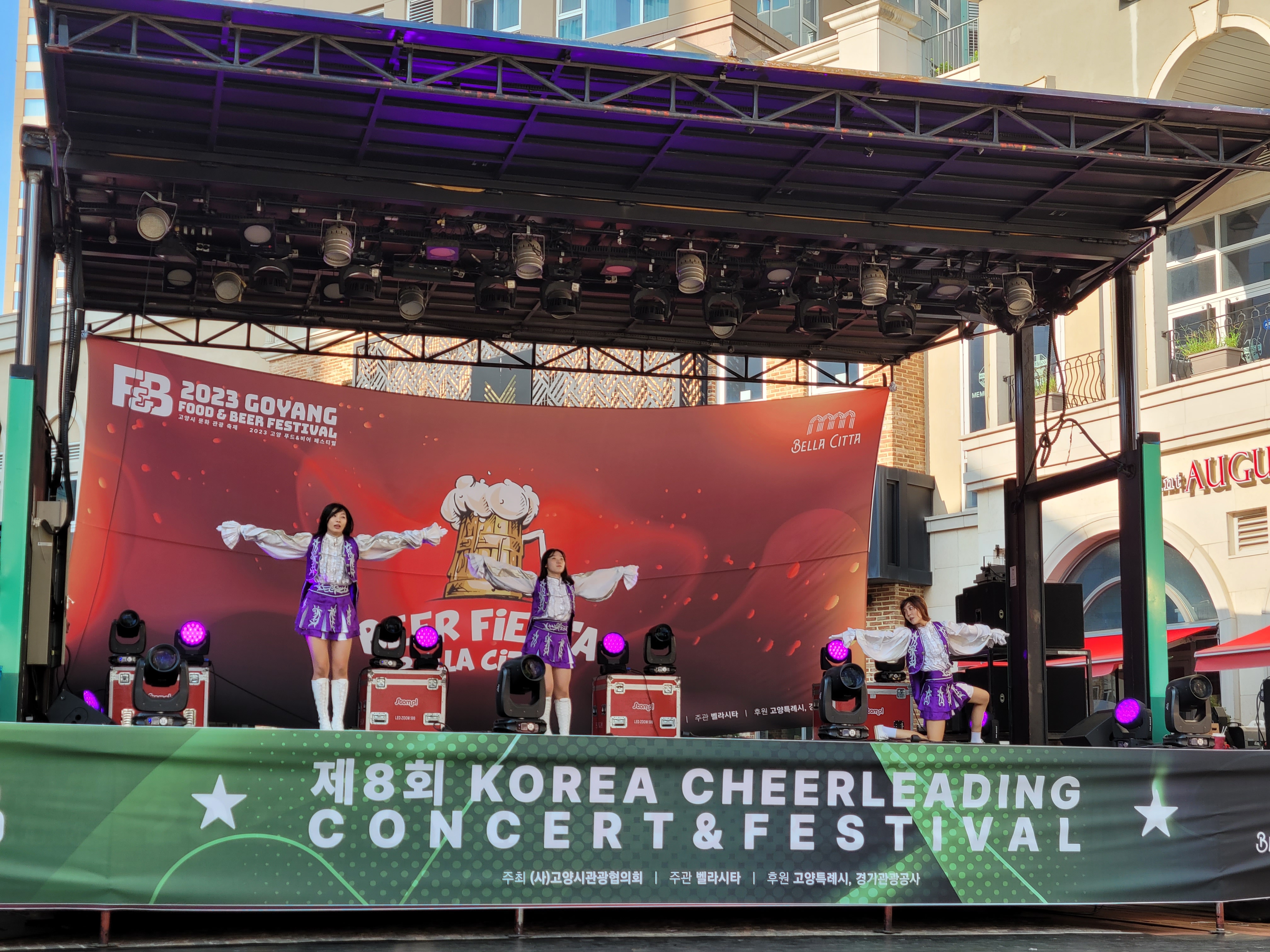 무대에서 열리는 각 대학의 치어리더들의 멋진 치어리딩 공연으로 정말