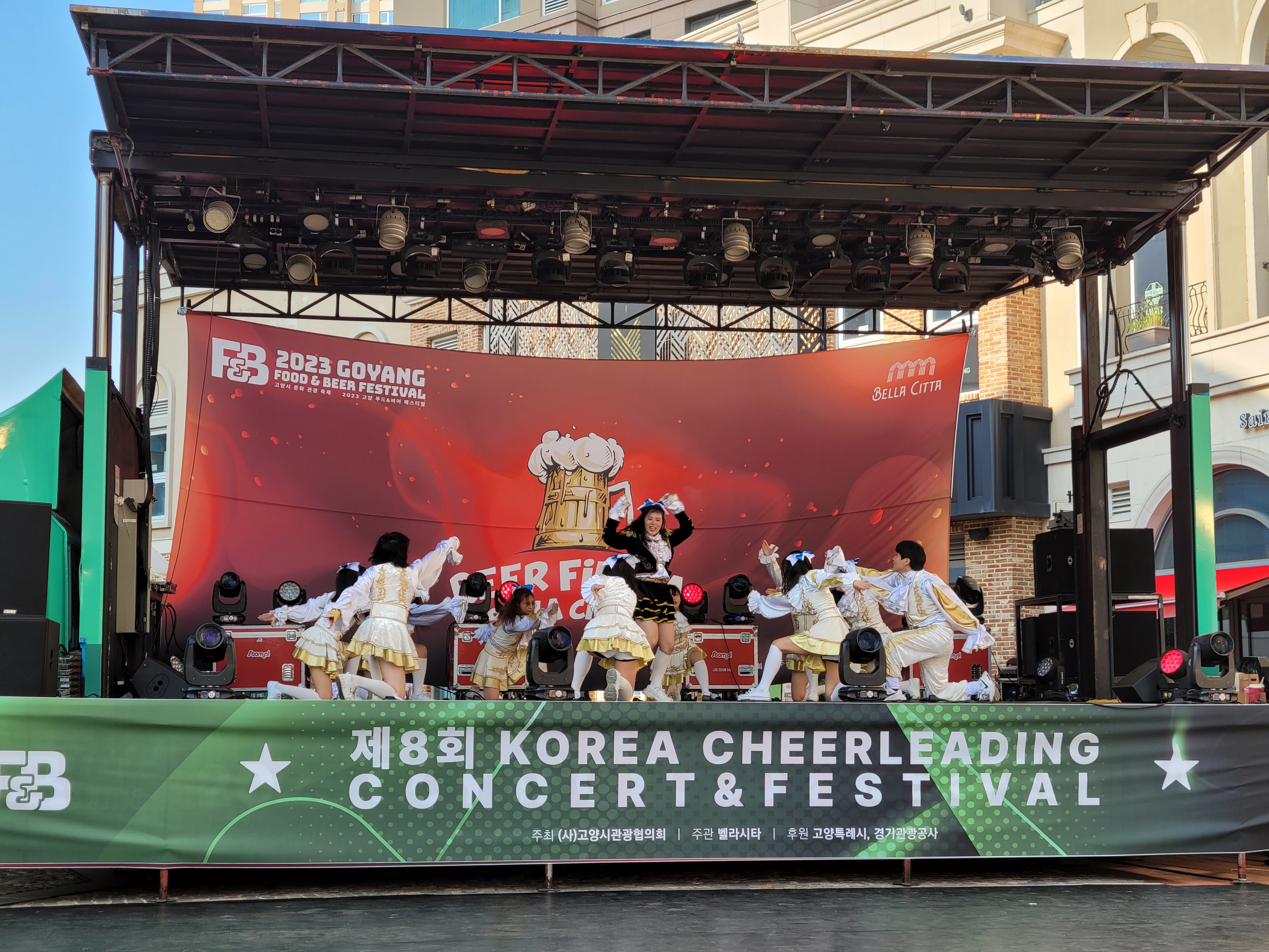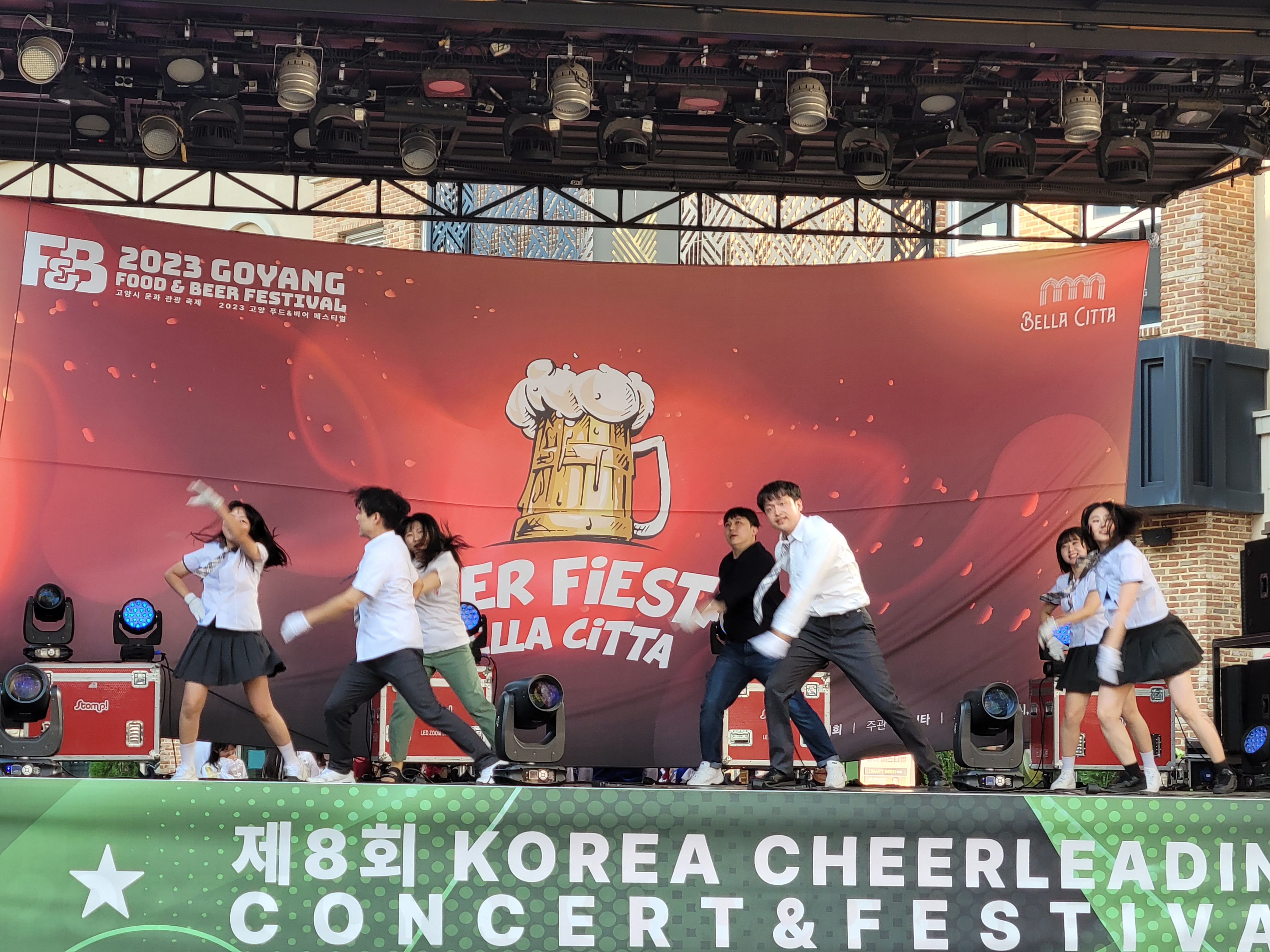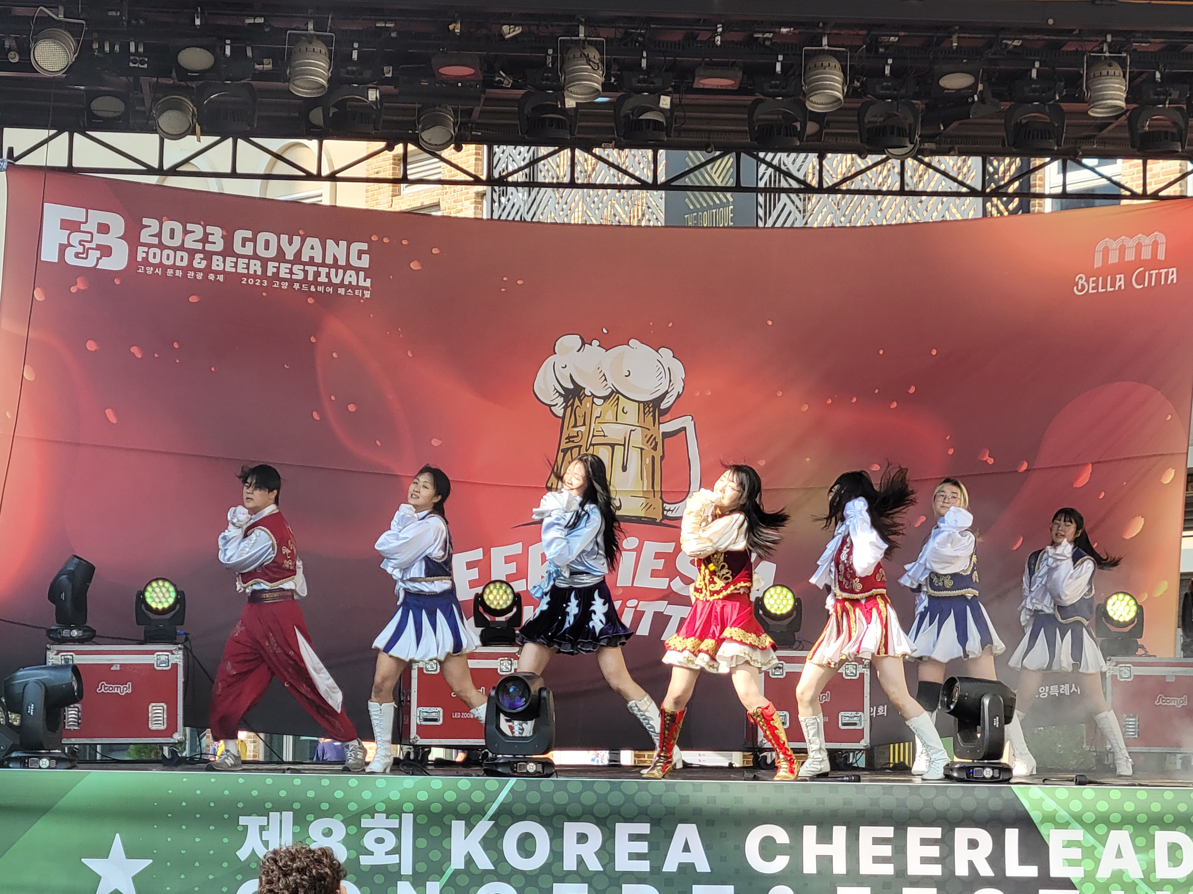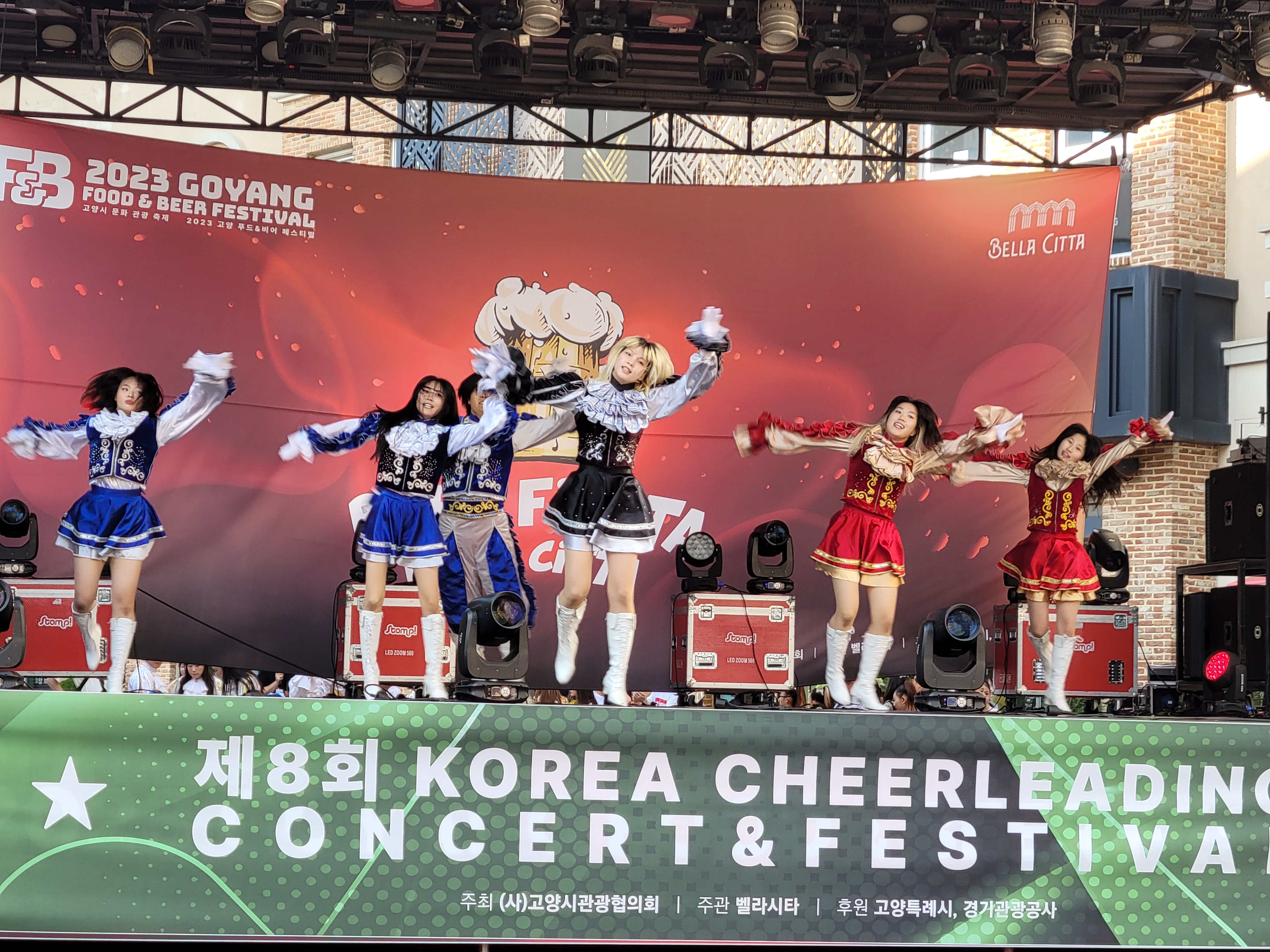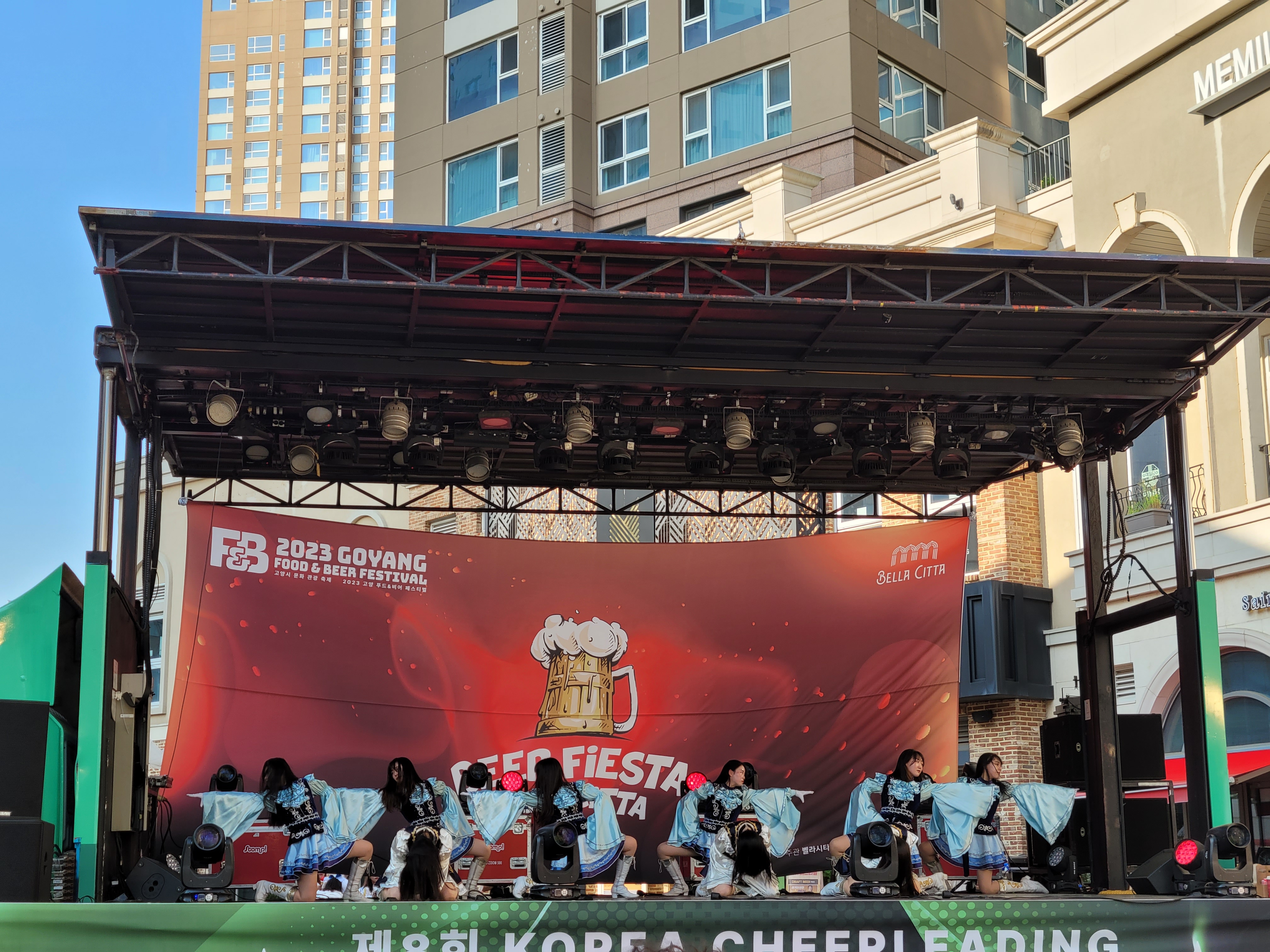 무대에서 열리는 각 대학의 치어리더들의 멋진 치어리딩 공연으로 정말