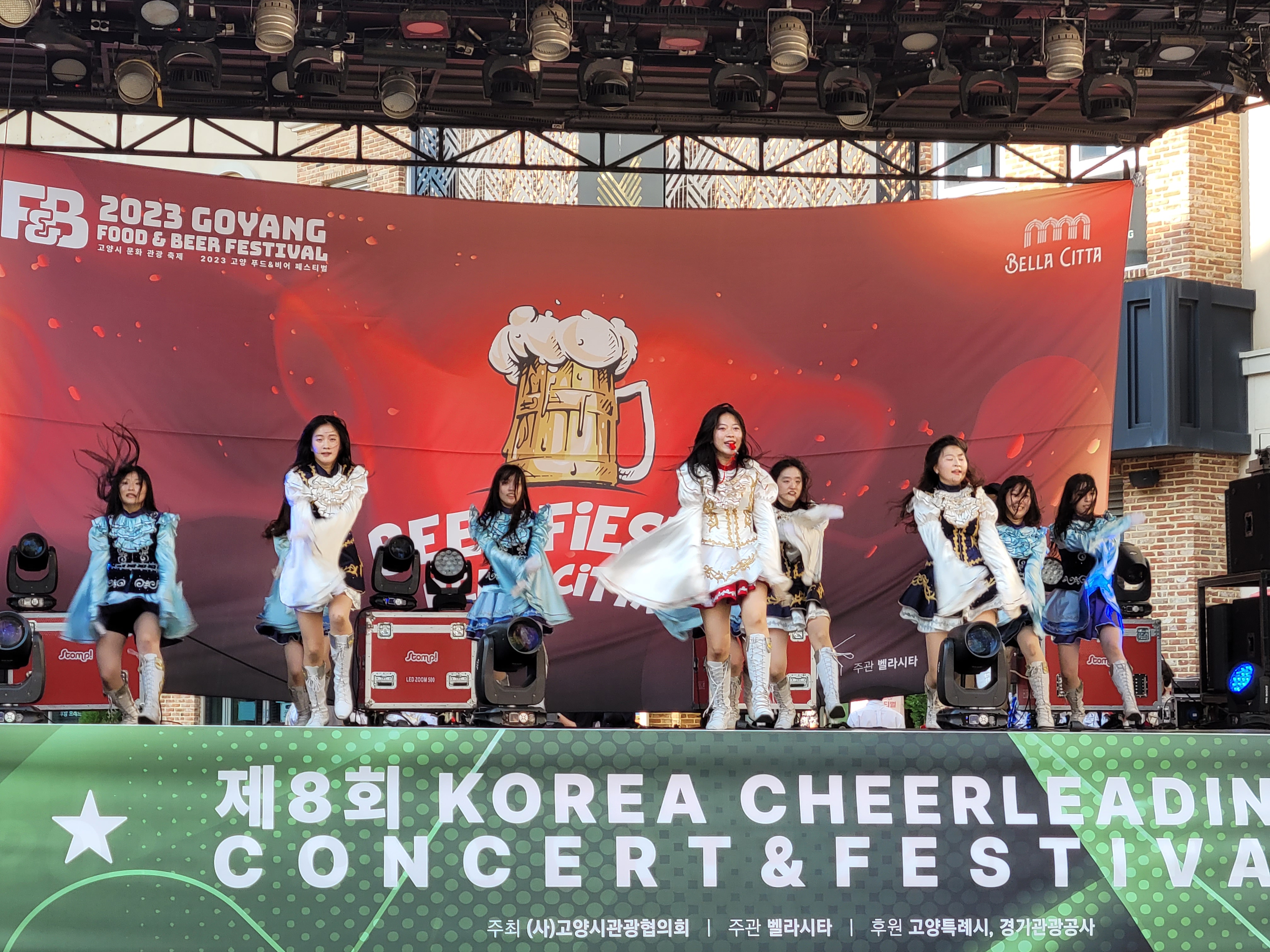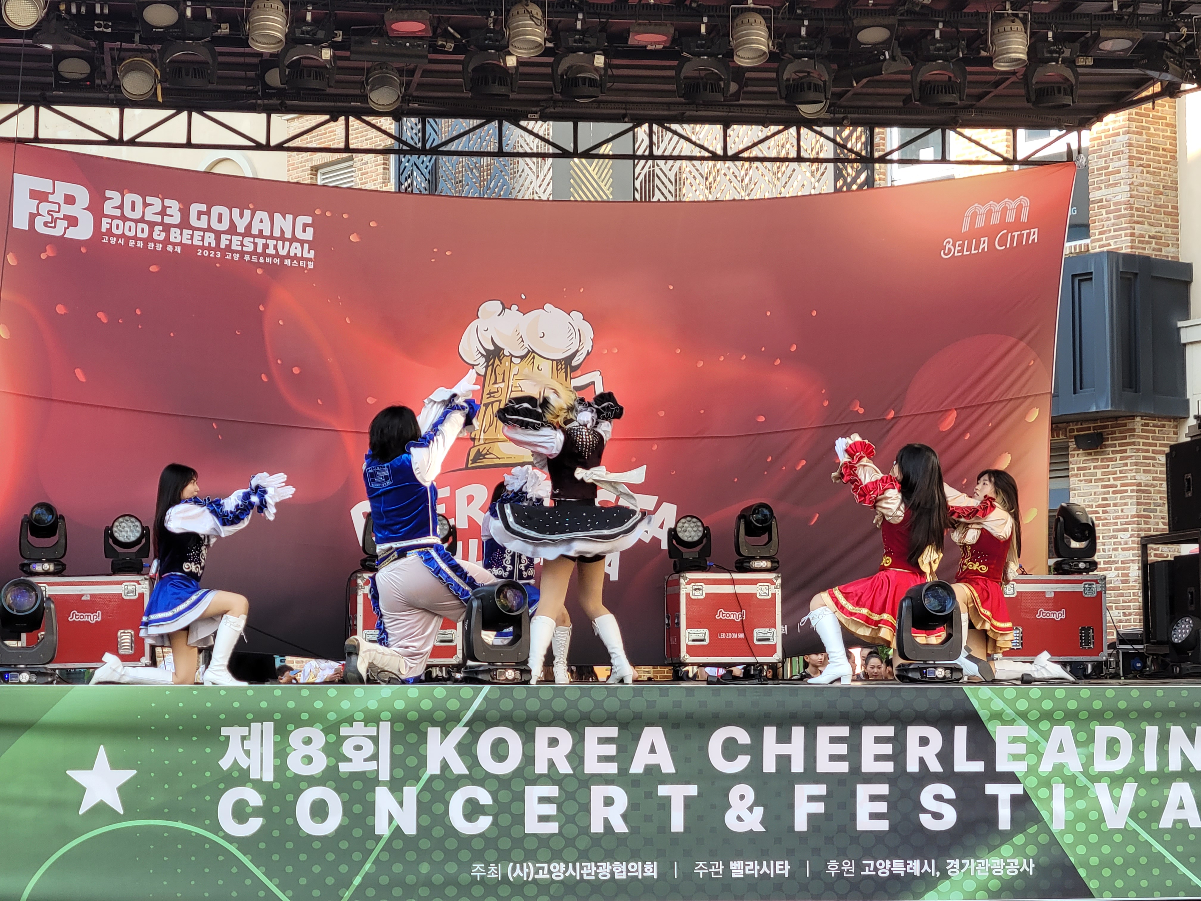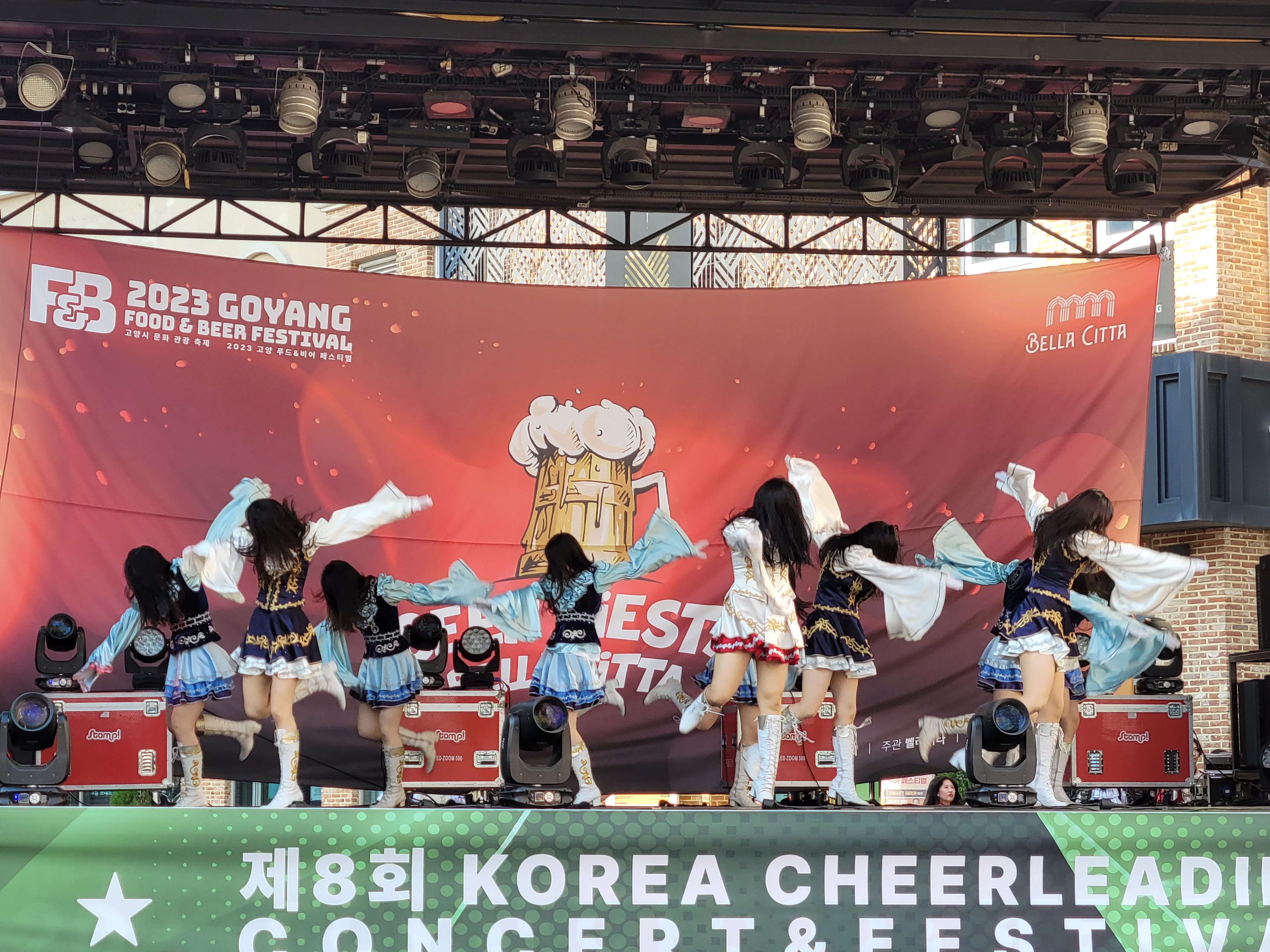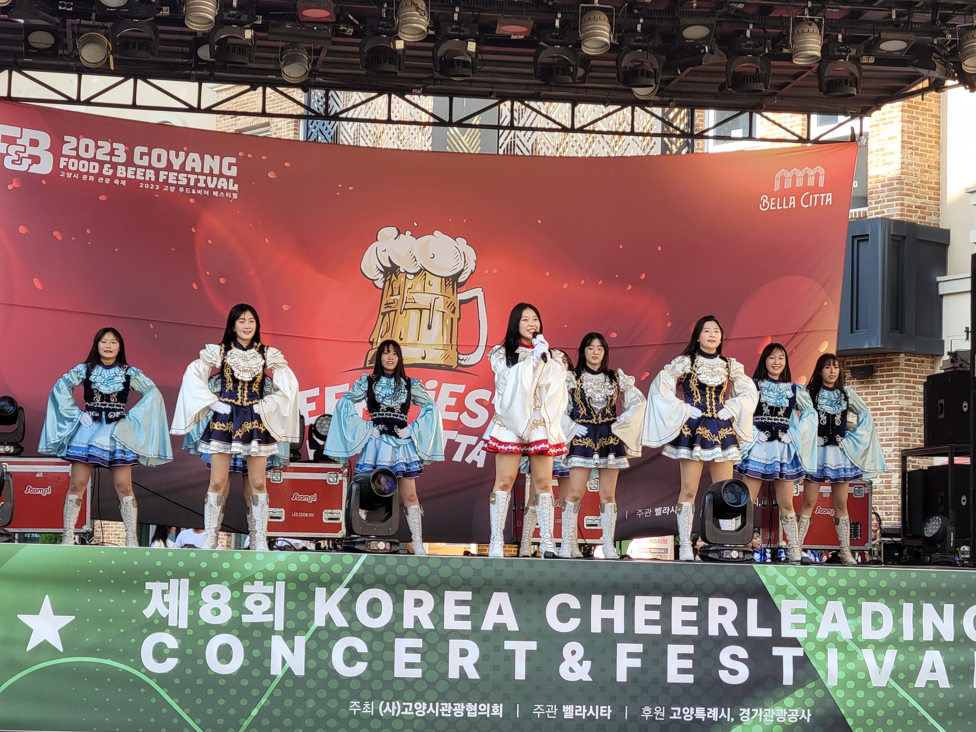 무대에서 열리는 각 대학의 치어리더들의 멋진 치어리딩 공연으로 정말