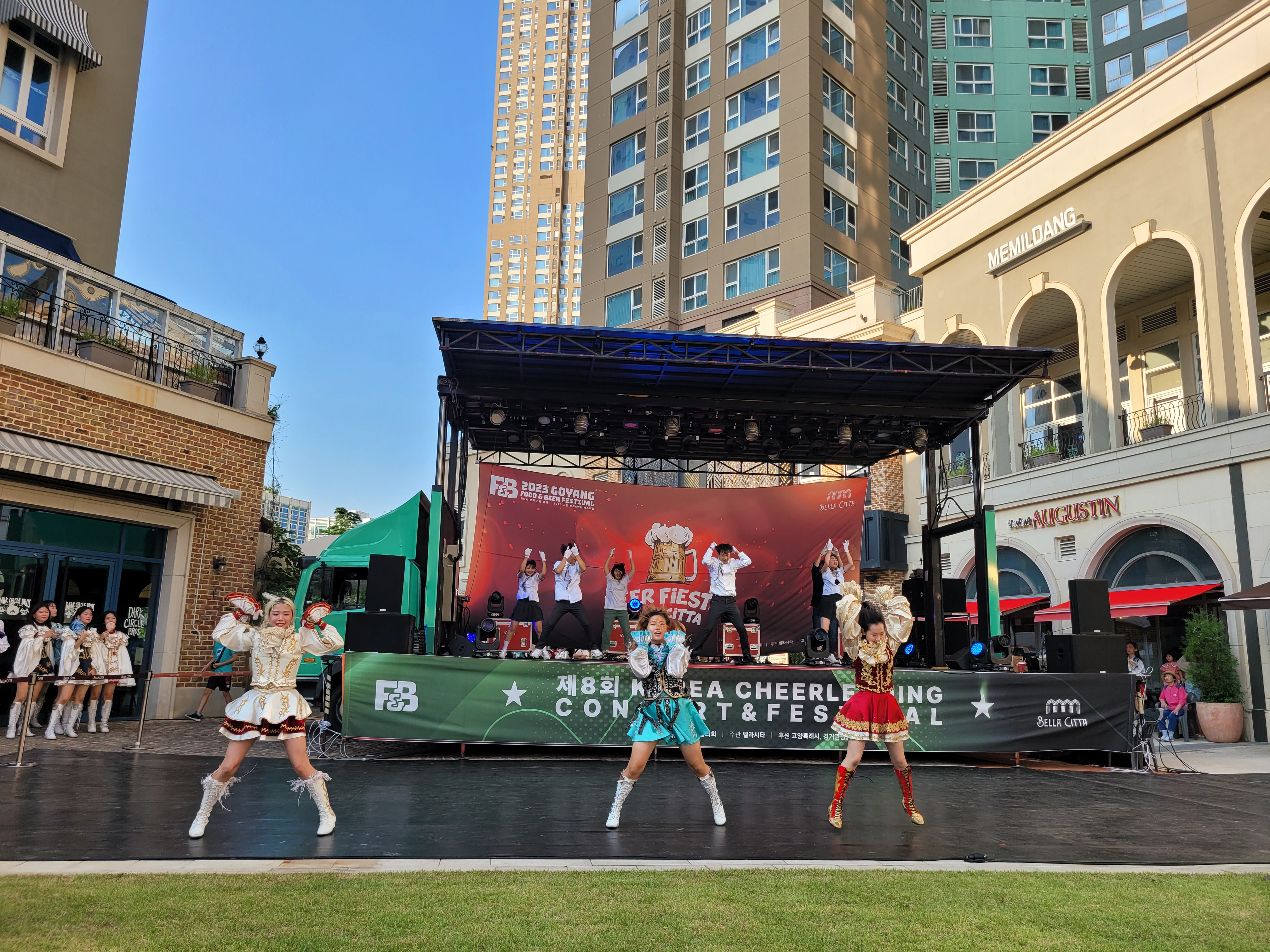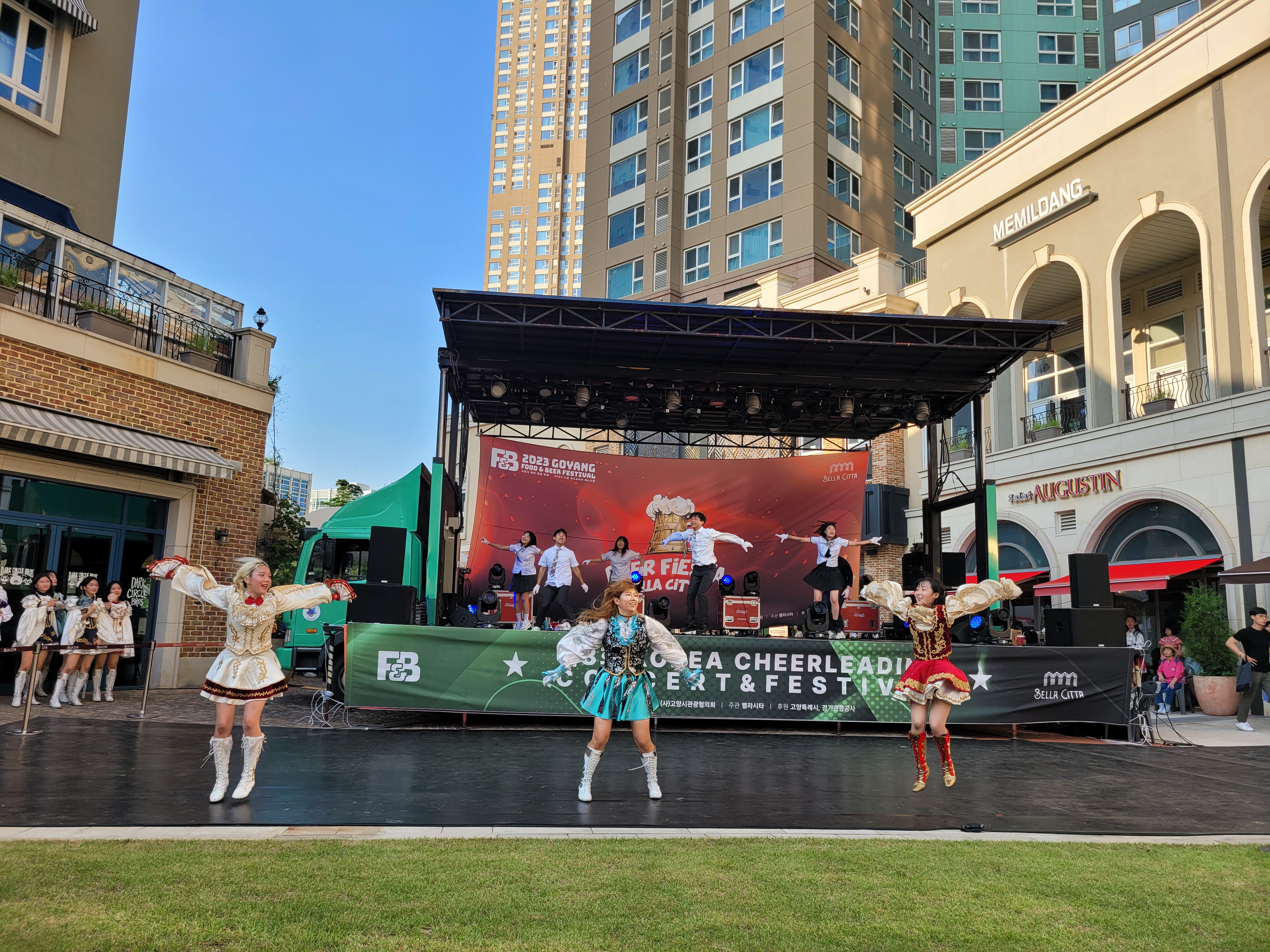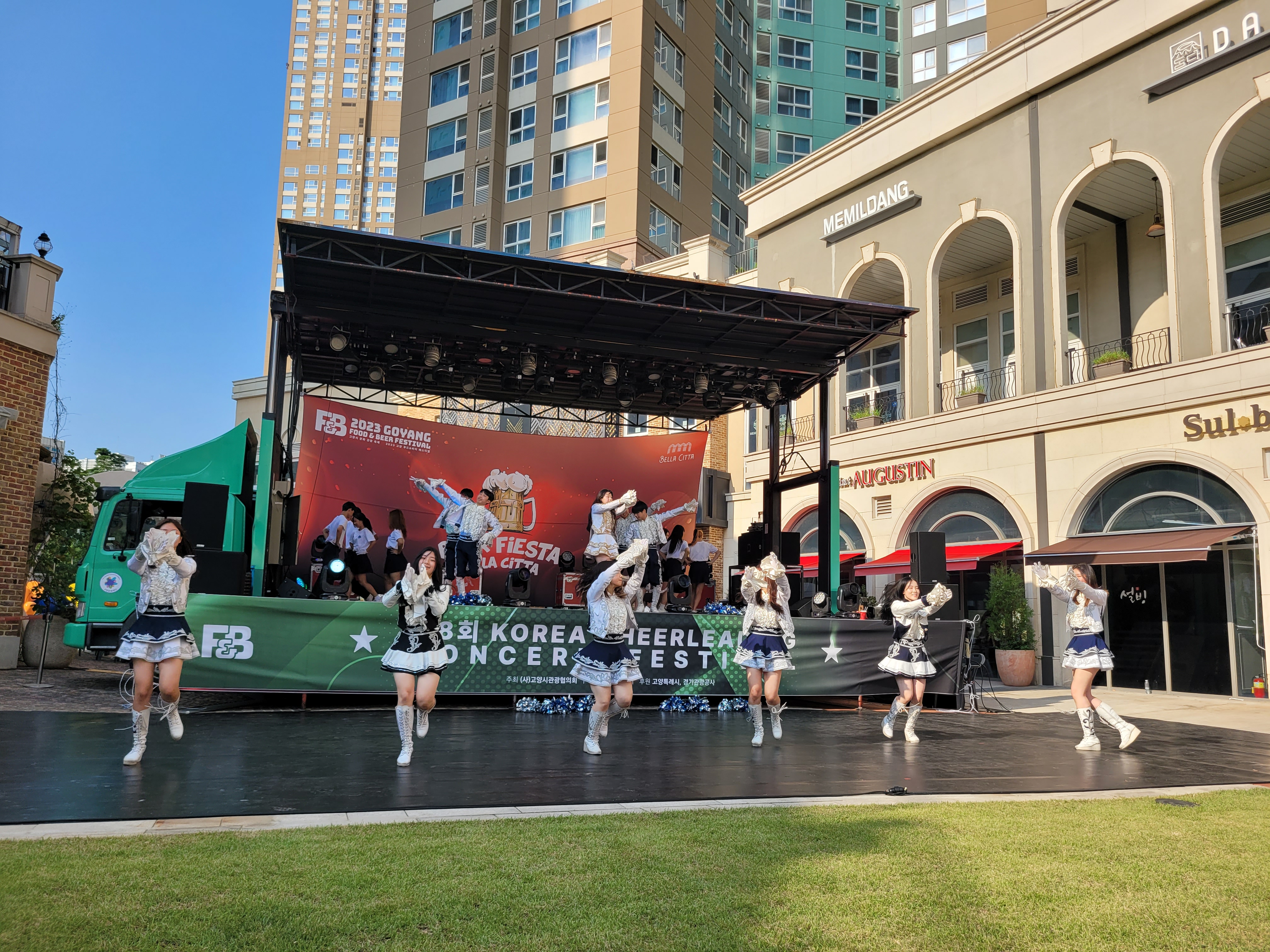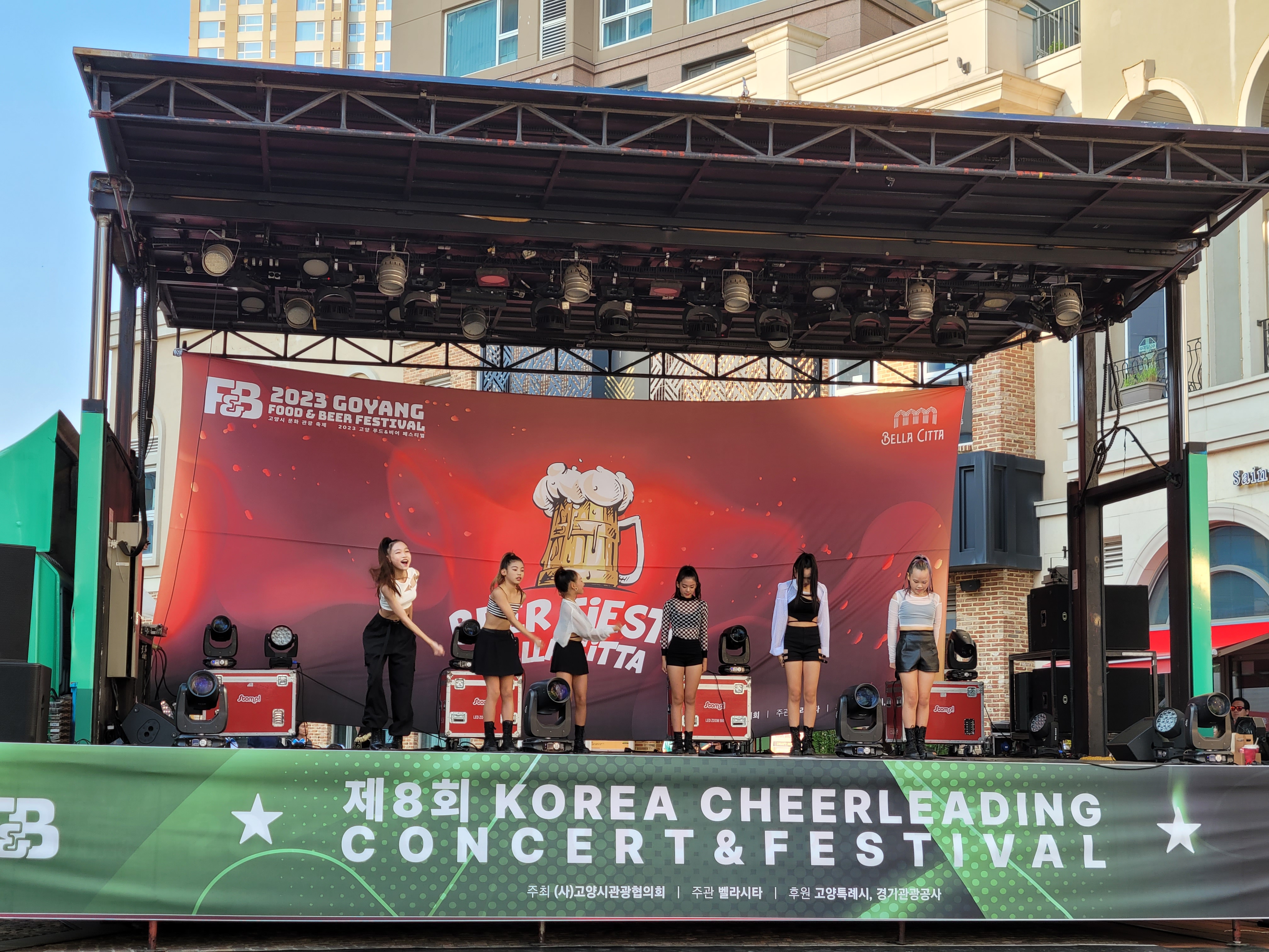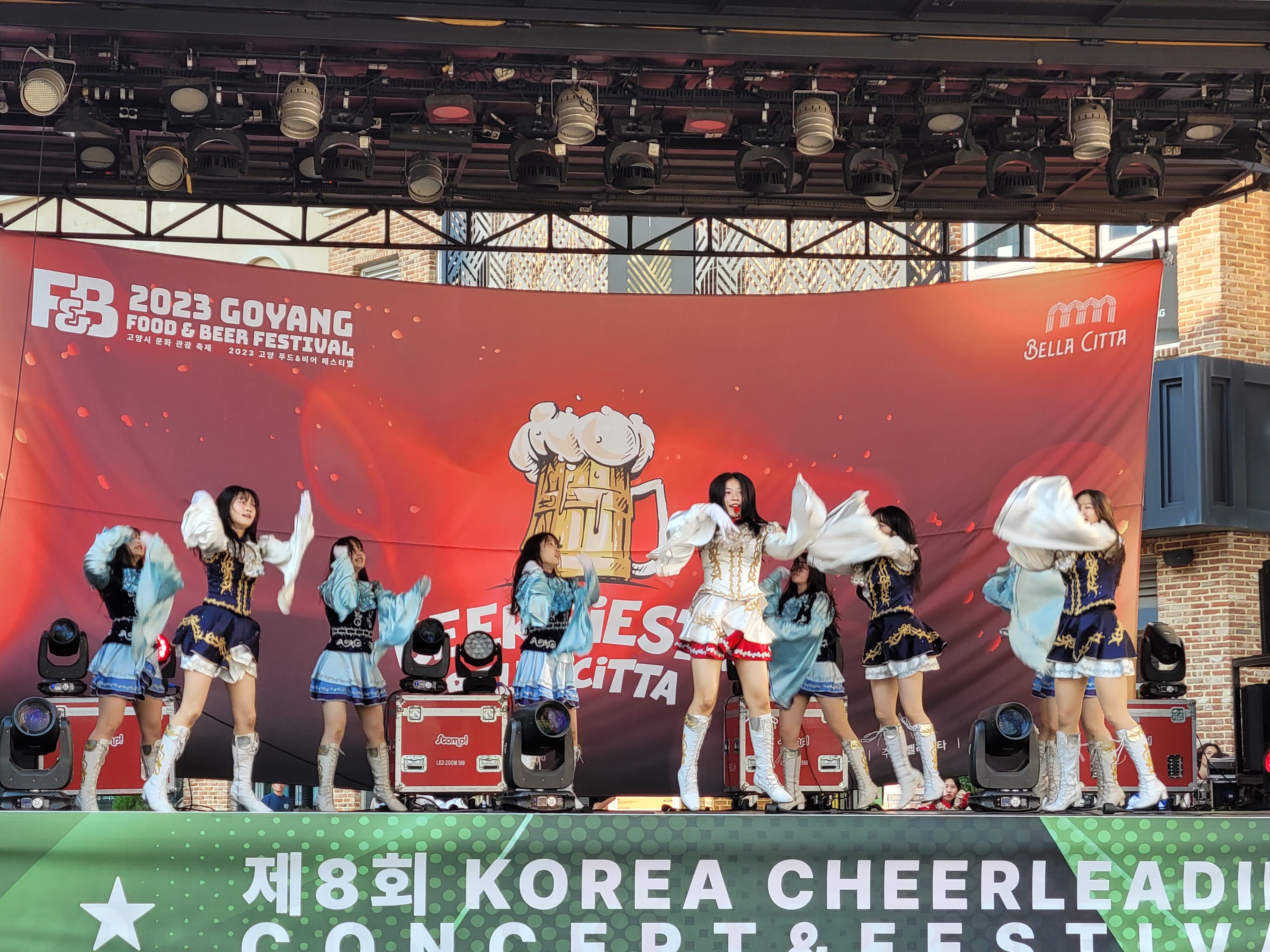 무대에서 열리는 각 대학의 치어리더들의 멋진 치어리딩 공연으로 정말
