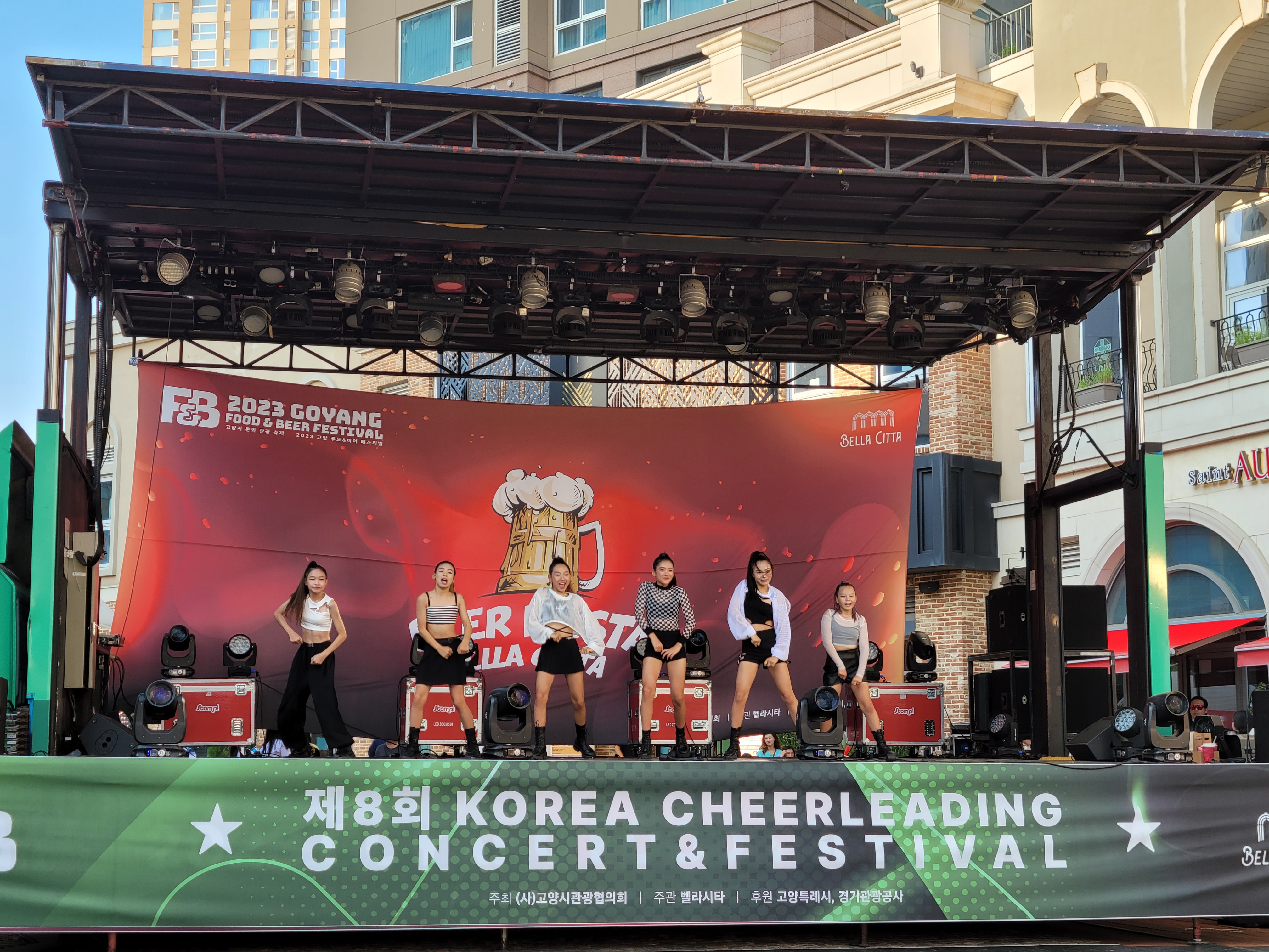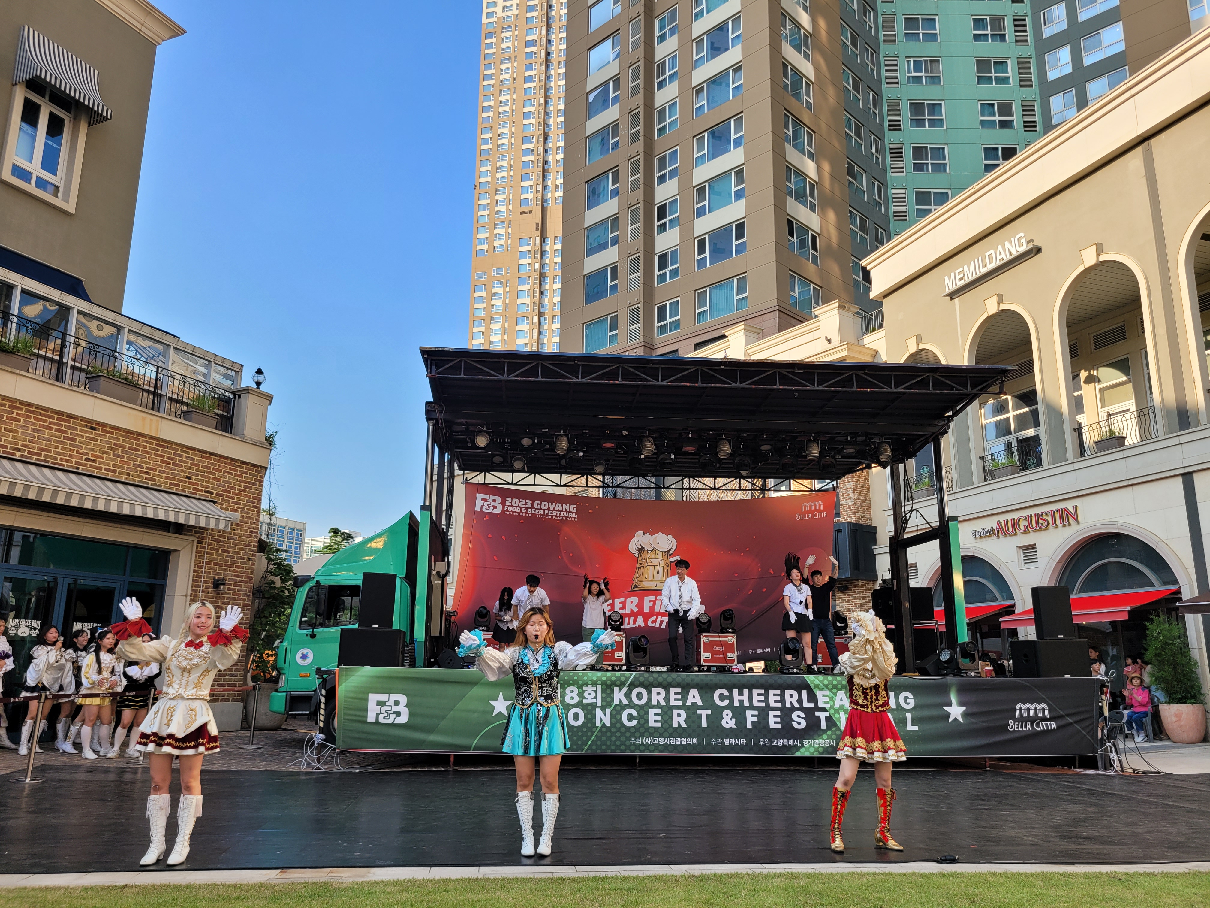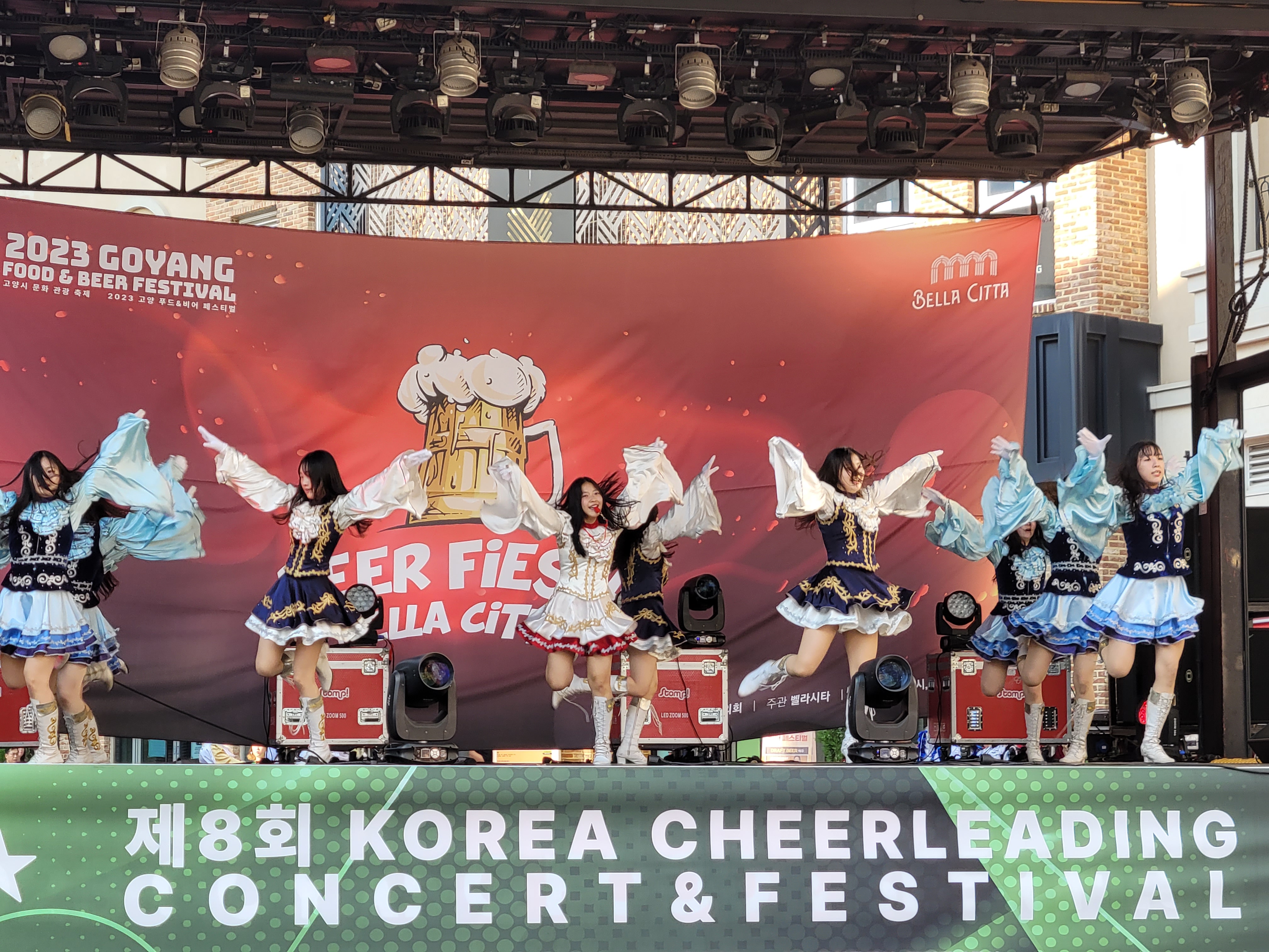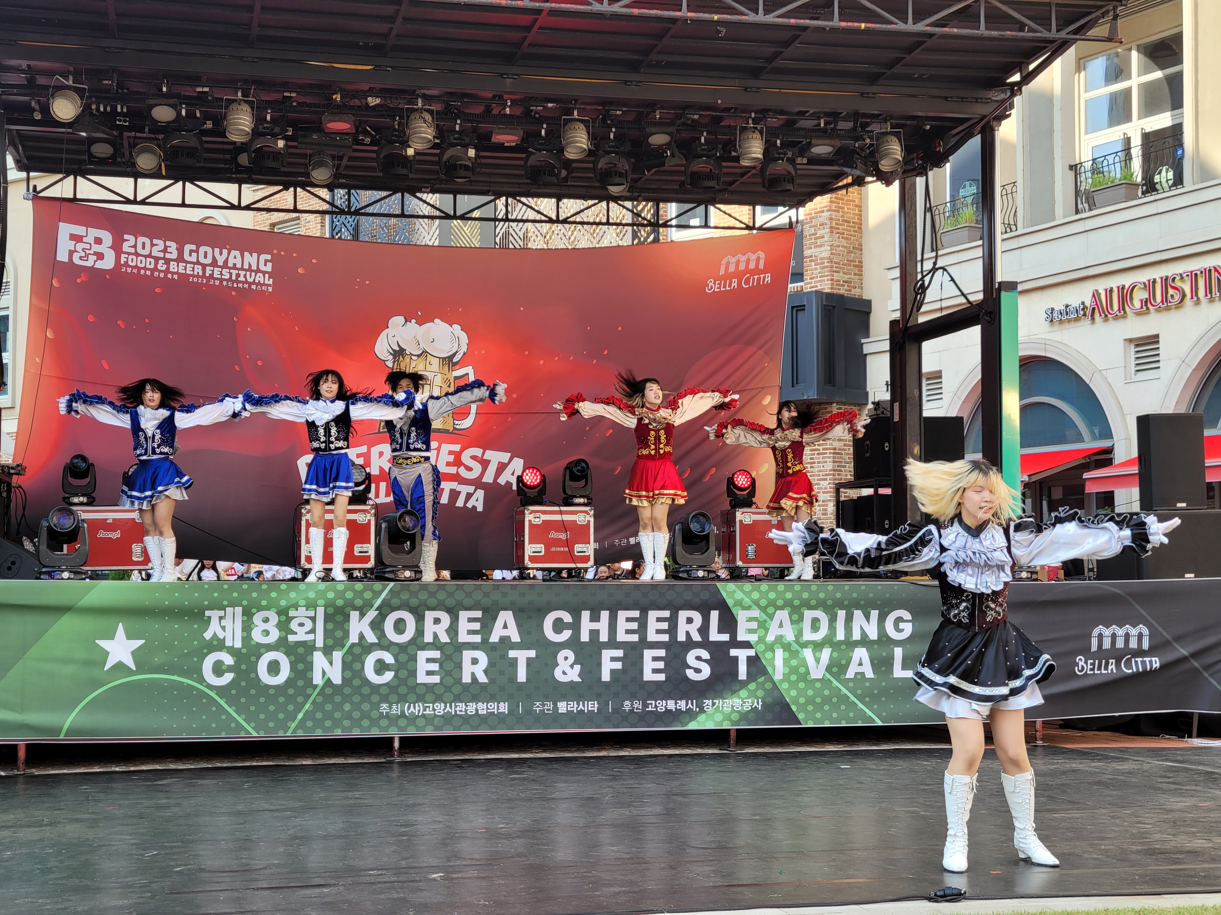 무대에서 열리는 각 대학의 치어리더들의 멋진 치어리딩 공연으로 정말