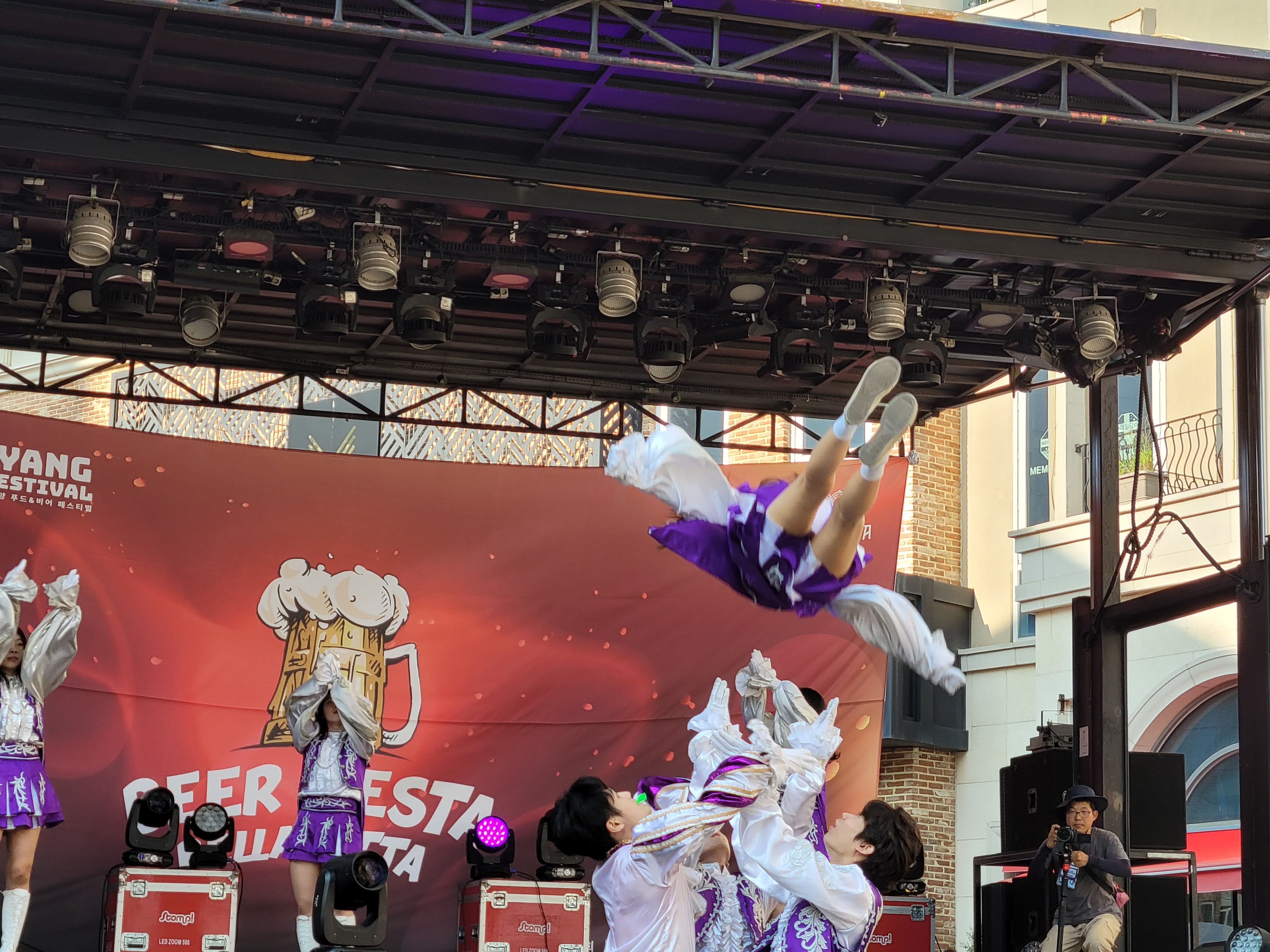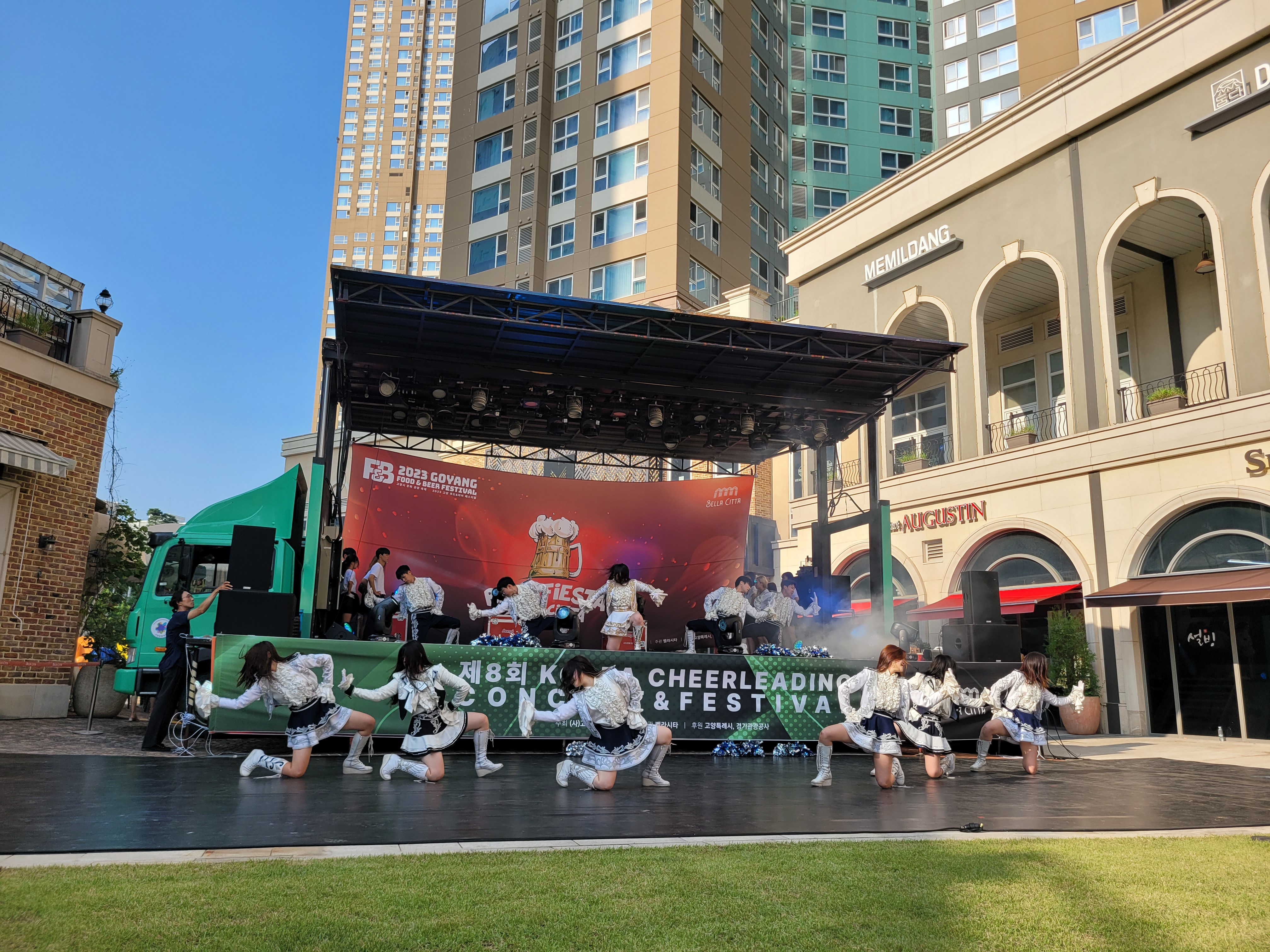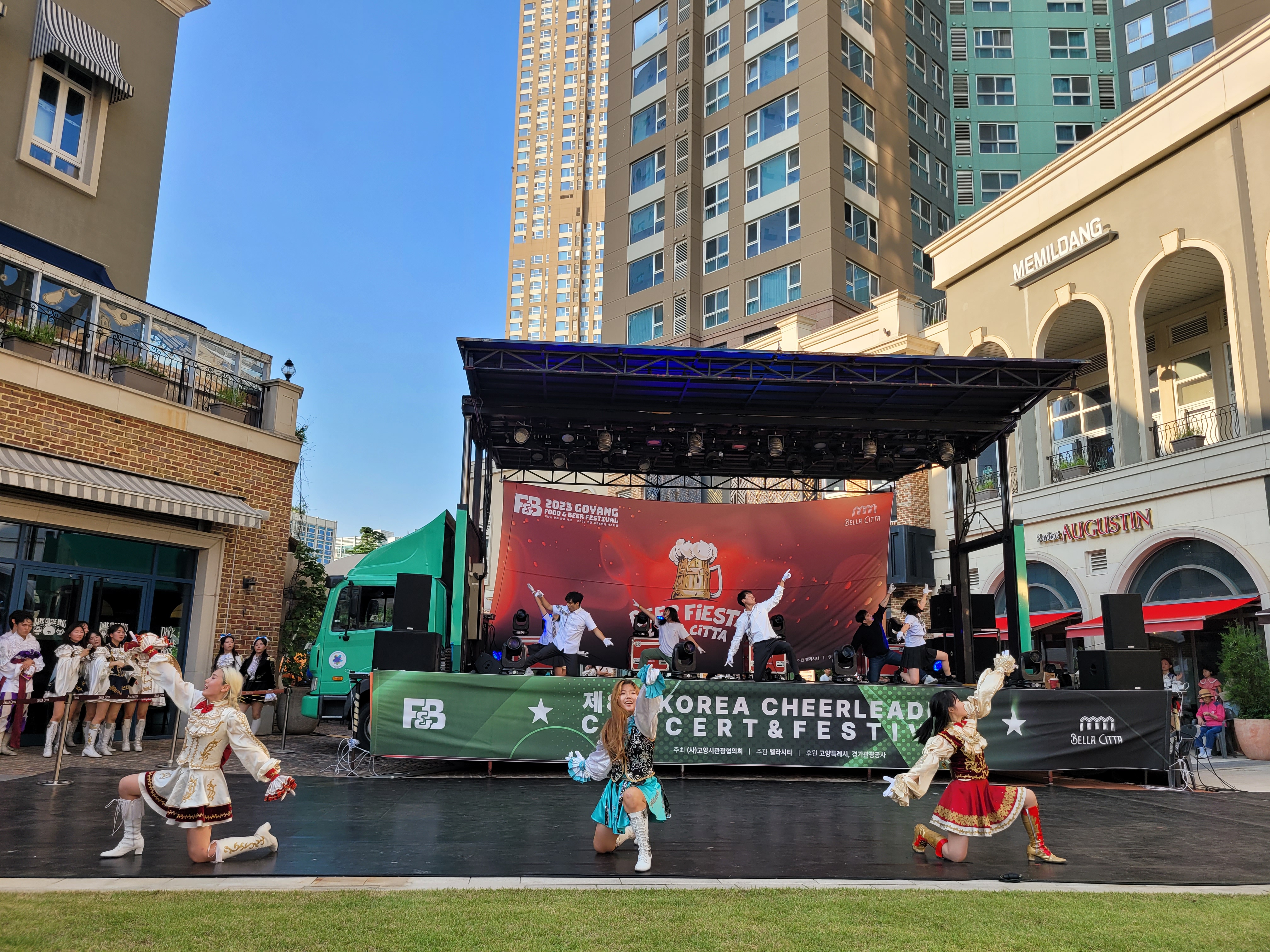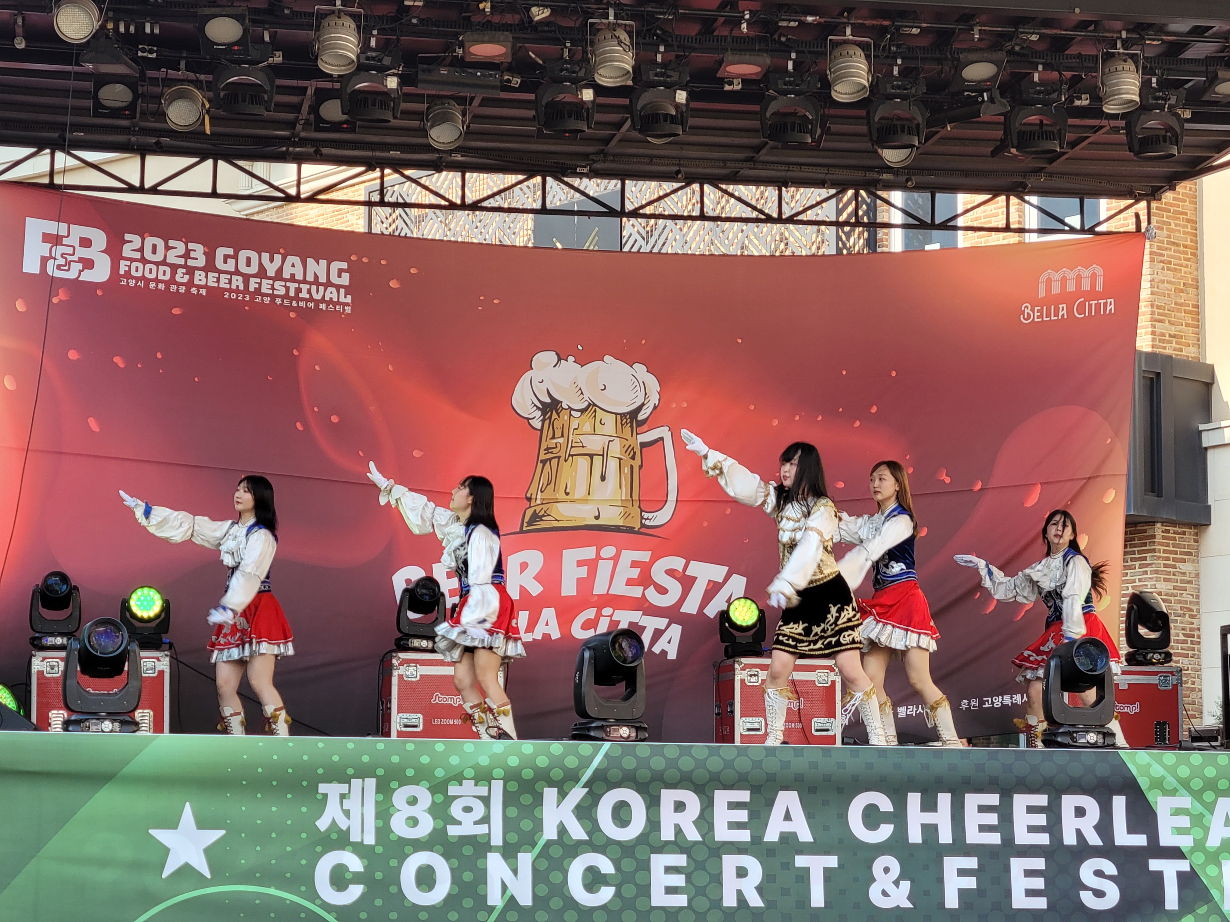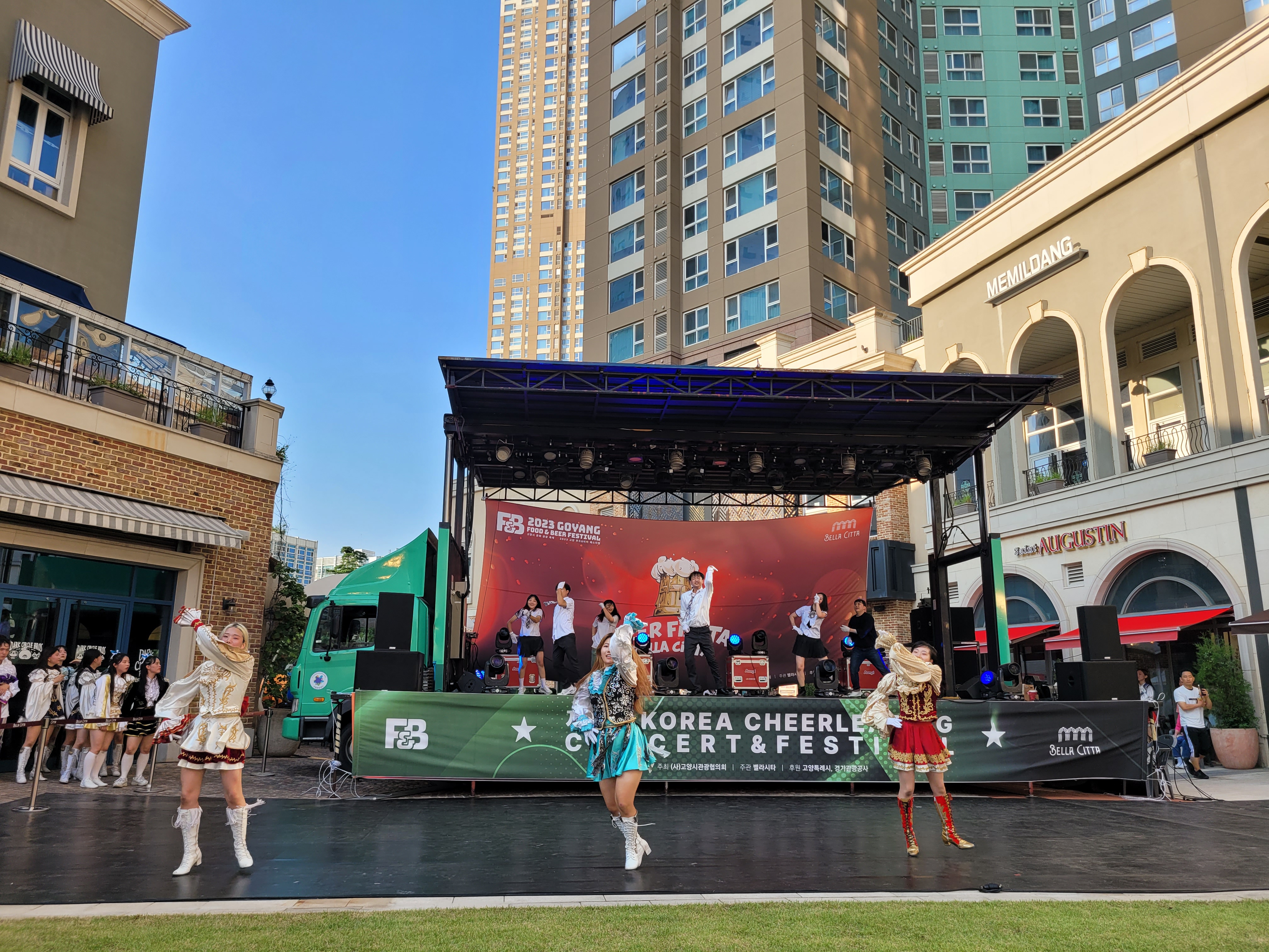 무대에서 열리는 각 대학의 치어리더들의 멋진 치어리딩 공연으로 정말