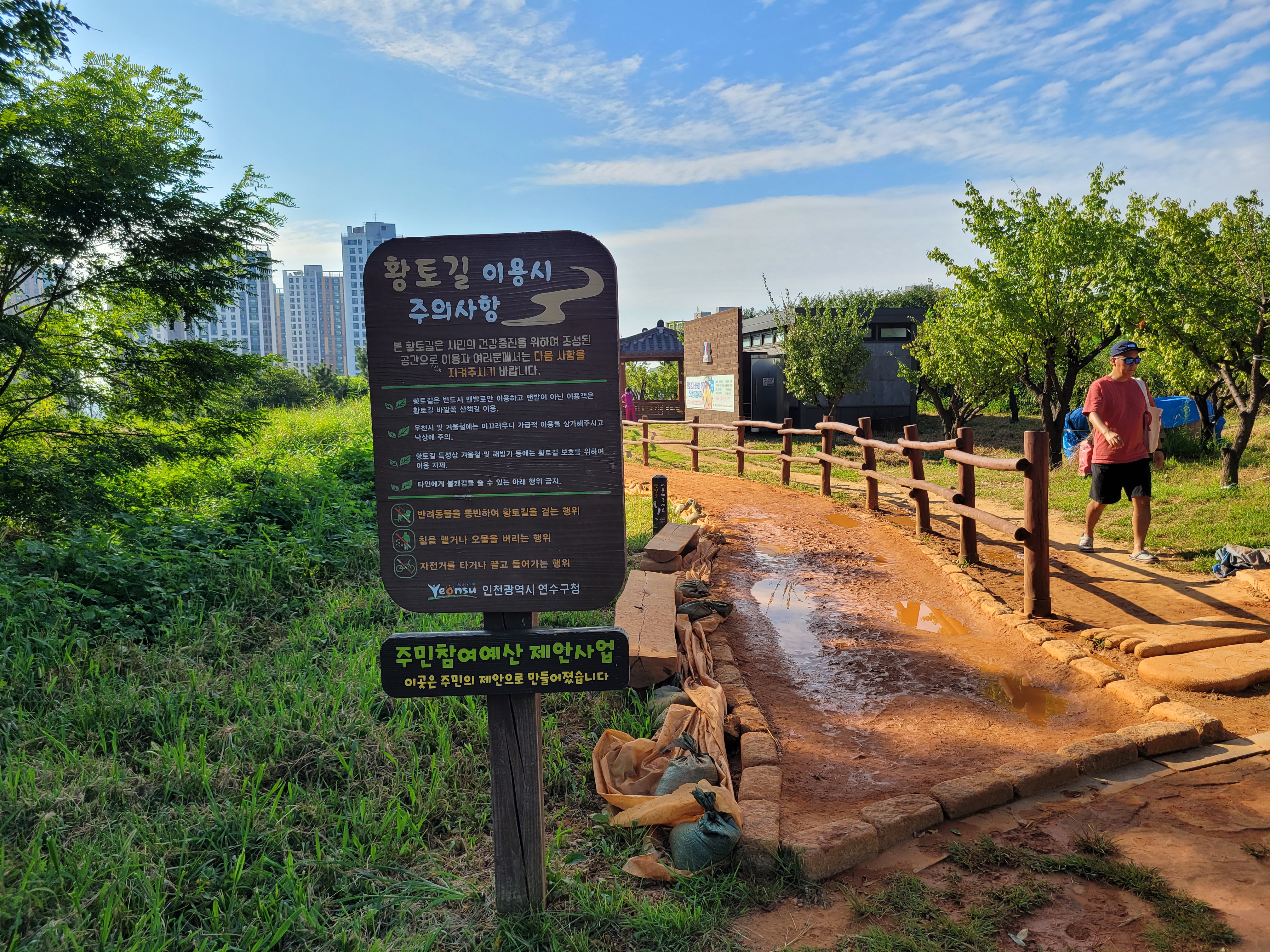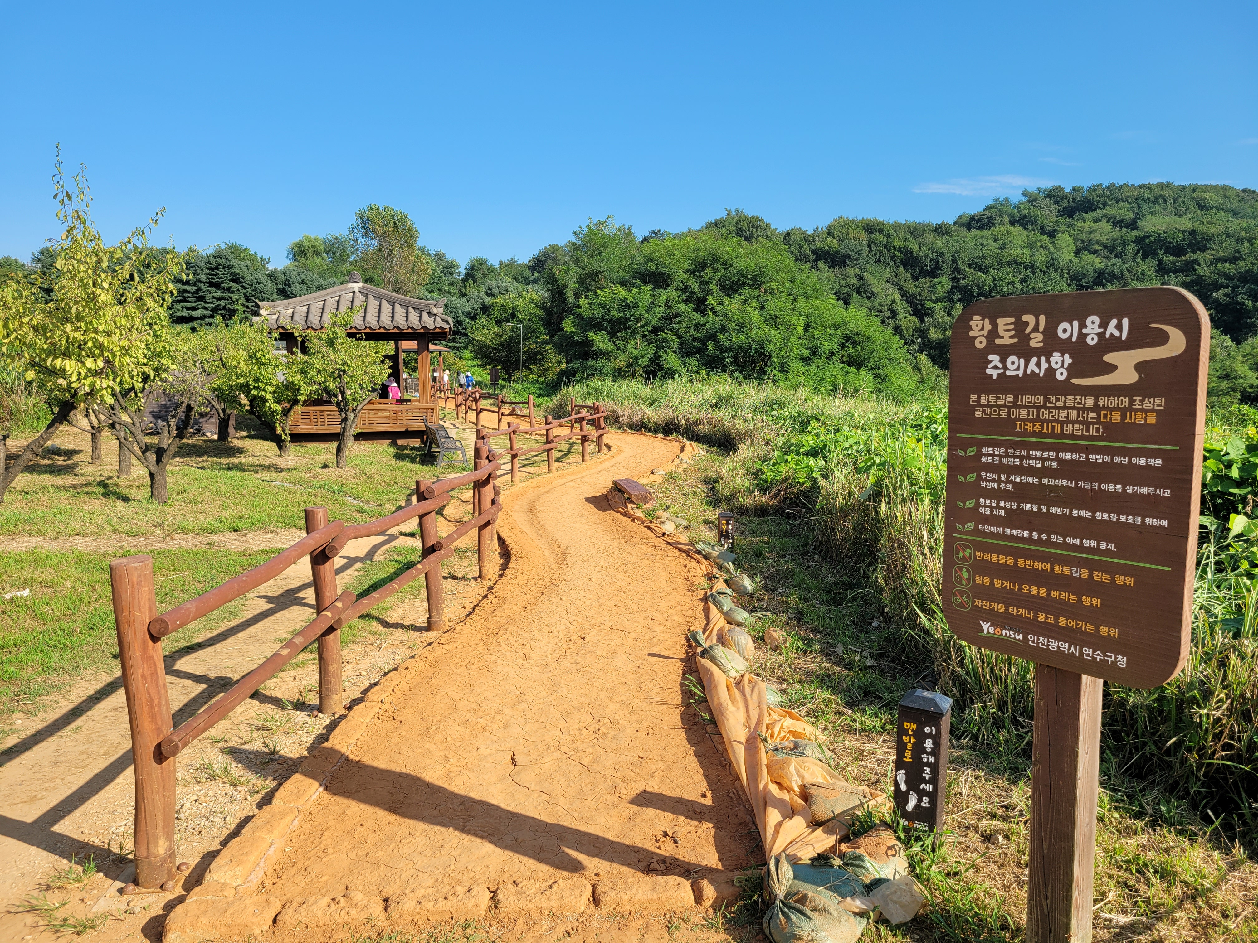 걷기를 할 수 있는 황토길 등이 조성되어 있어서 많은 사람들이 맨발로