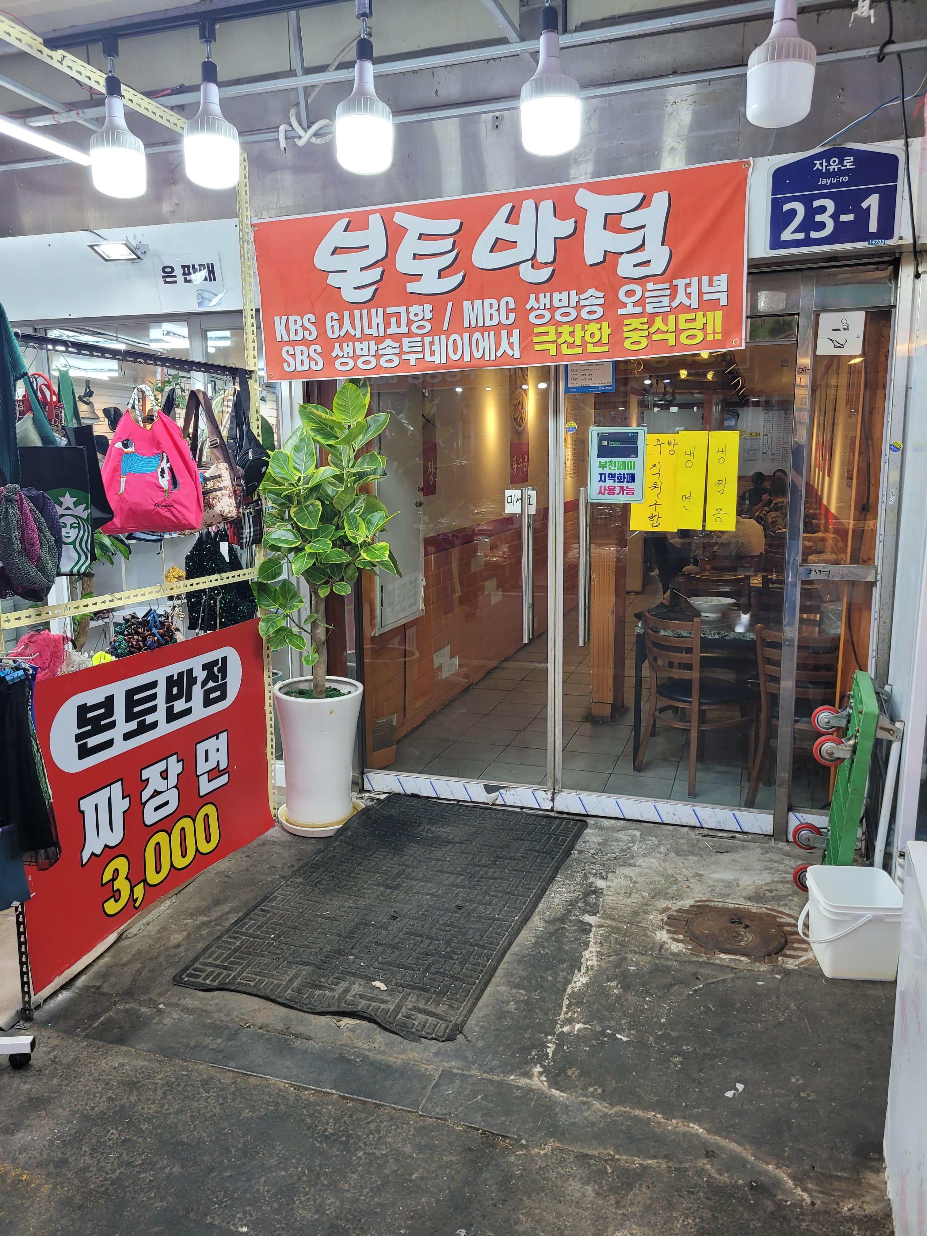 오늘 저녁에는 부천자유시장 안에 있는 본토반점 중국집에서