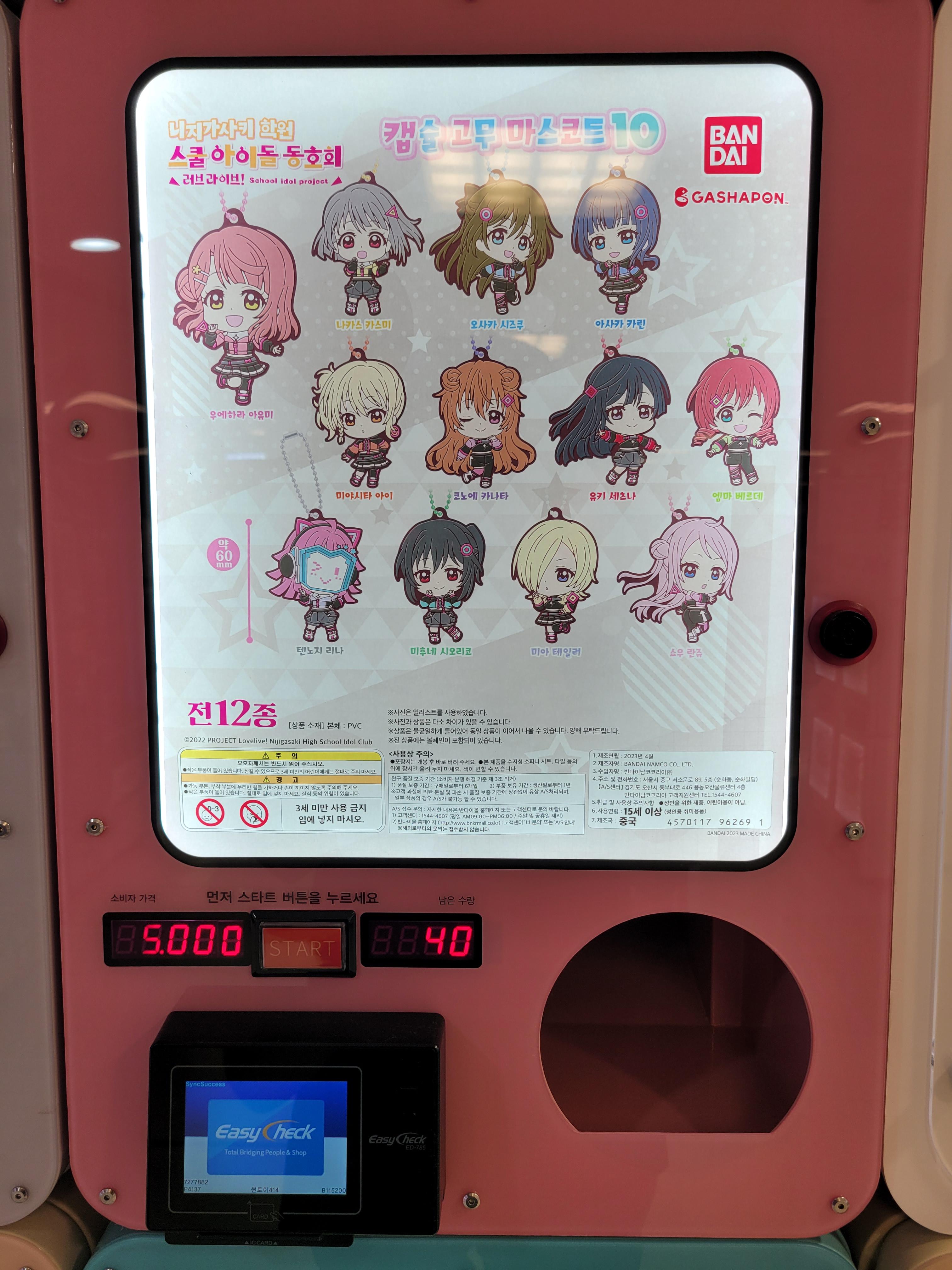 오늘은 이마트 부천역점 4층에 자리잡은 일본애니 굿즈를 파는 소형자판기 사진들 올리겠습니다.
