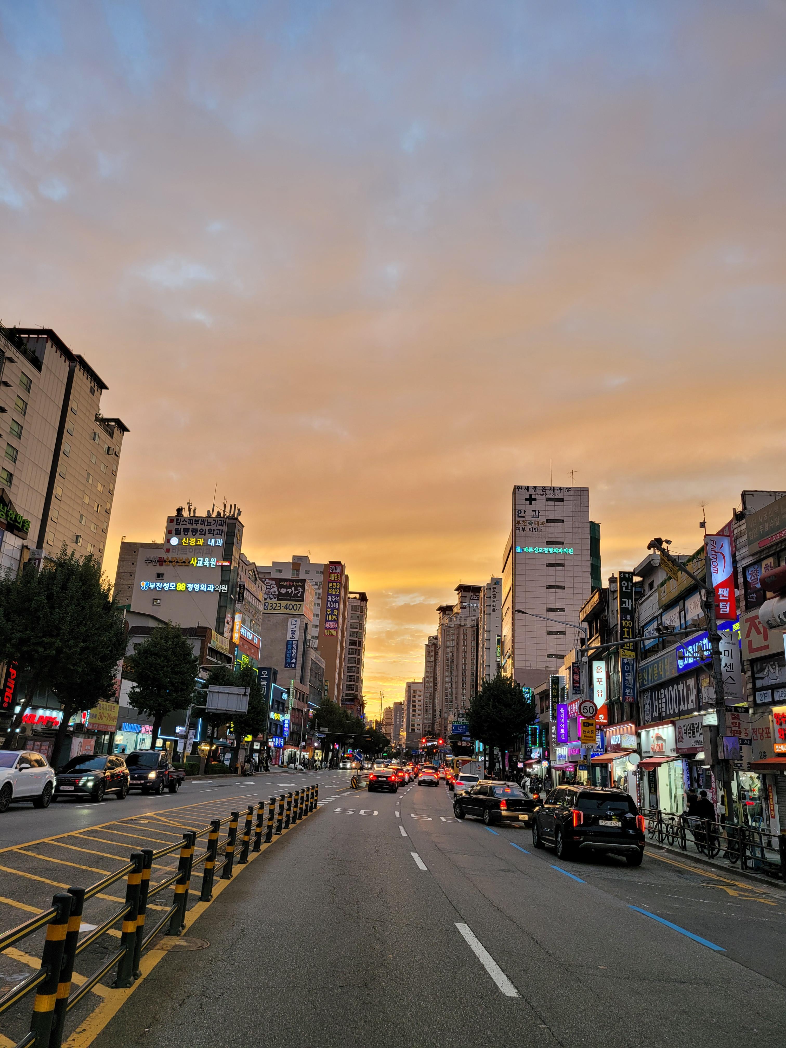 이마트 부천역점 자판기 구경을 마치고 밖에 나와보니 저녁놀이 아름답게 졌네요.