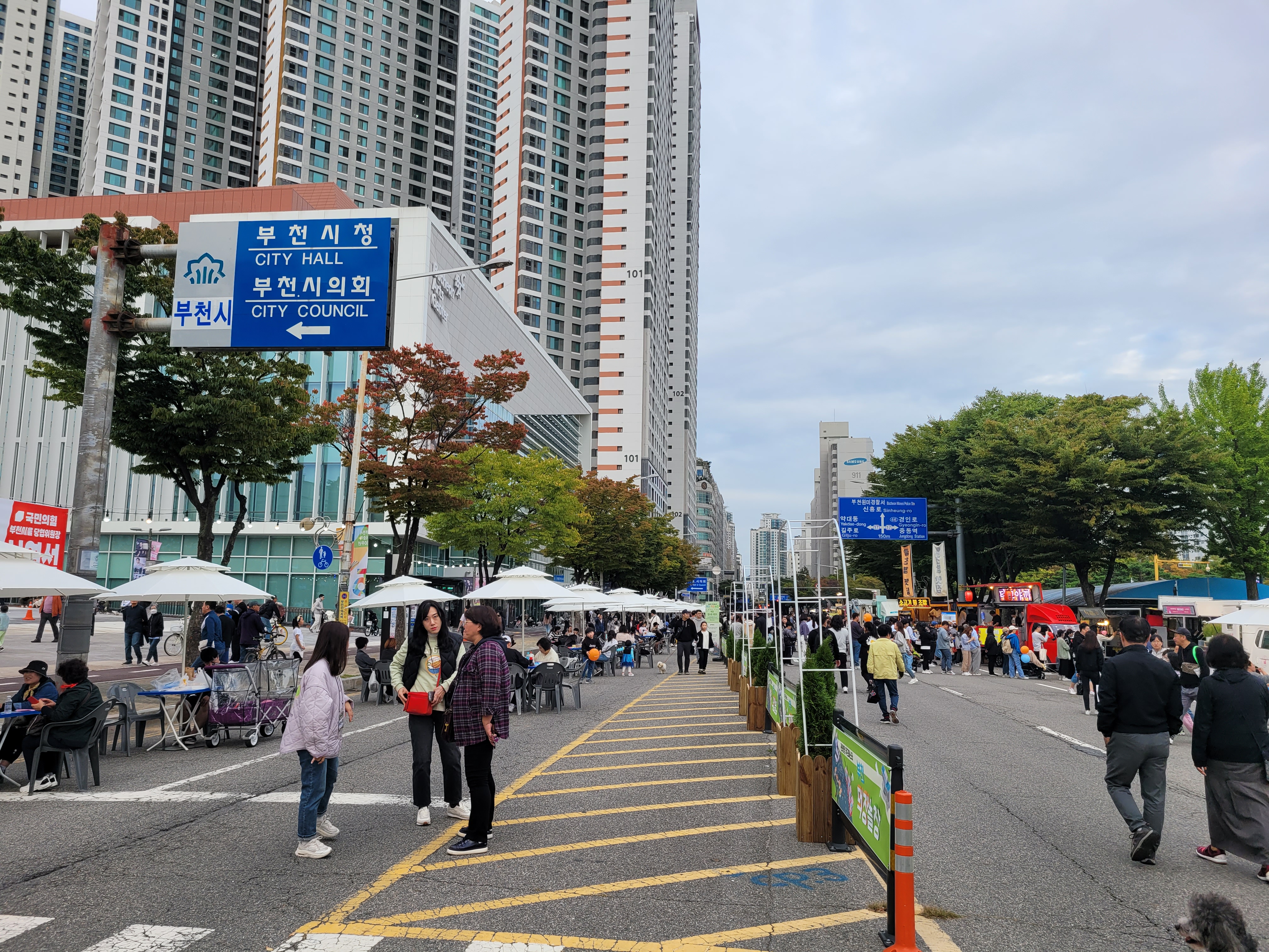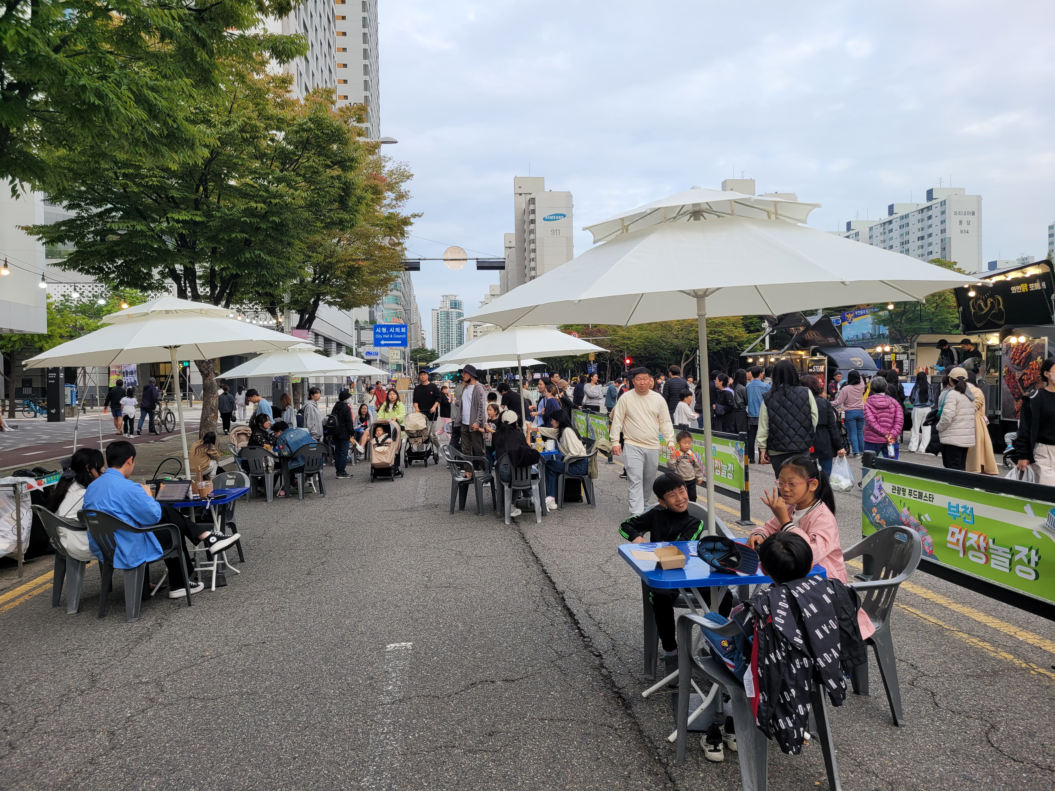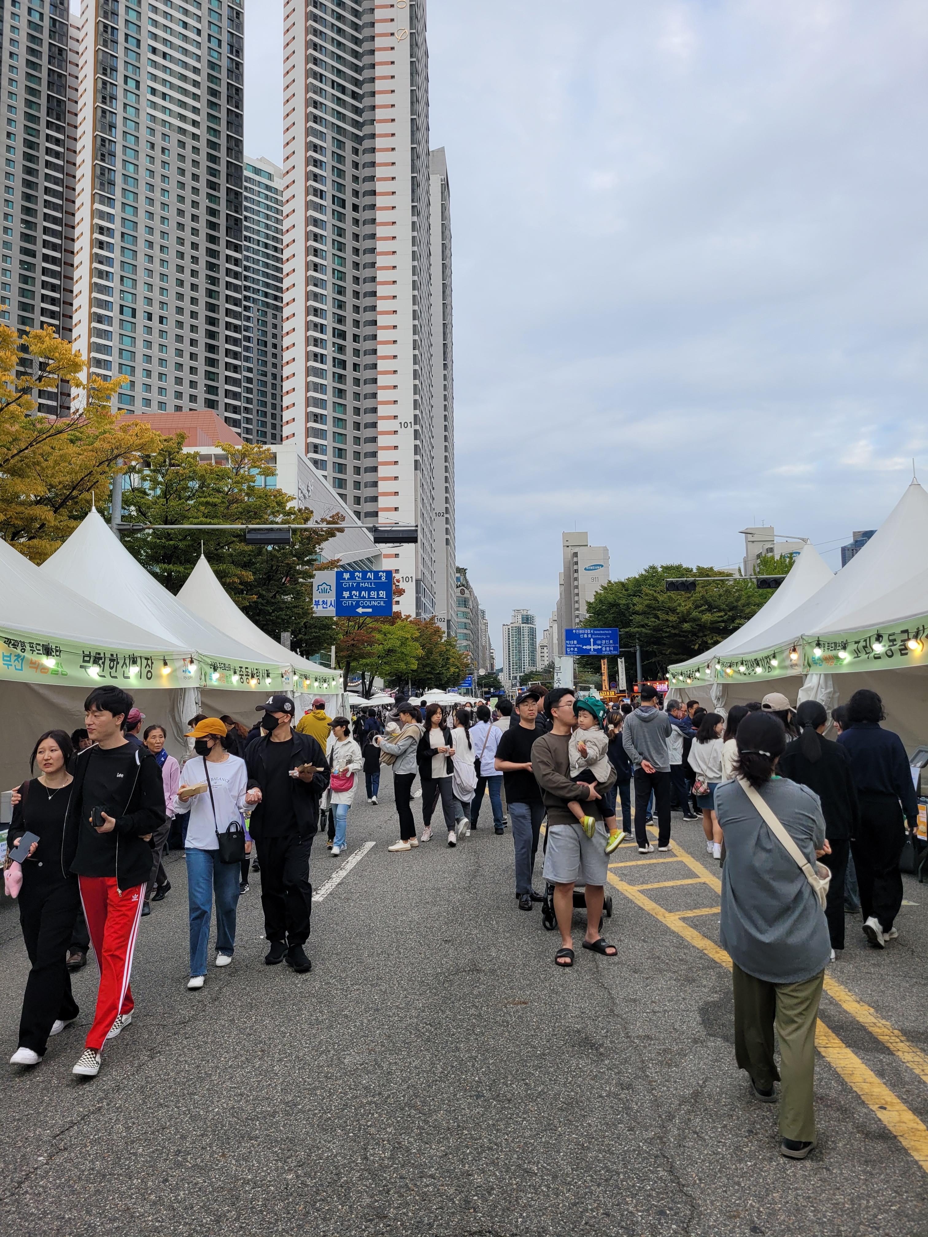 부천시청 광장 앞 도로에서도 각종 먹거리장터와 부천지역 전통시장들 부스와 체험거리들이