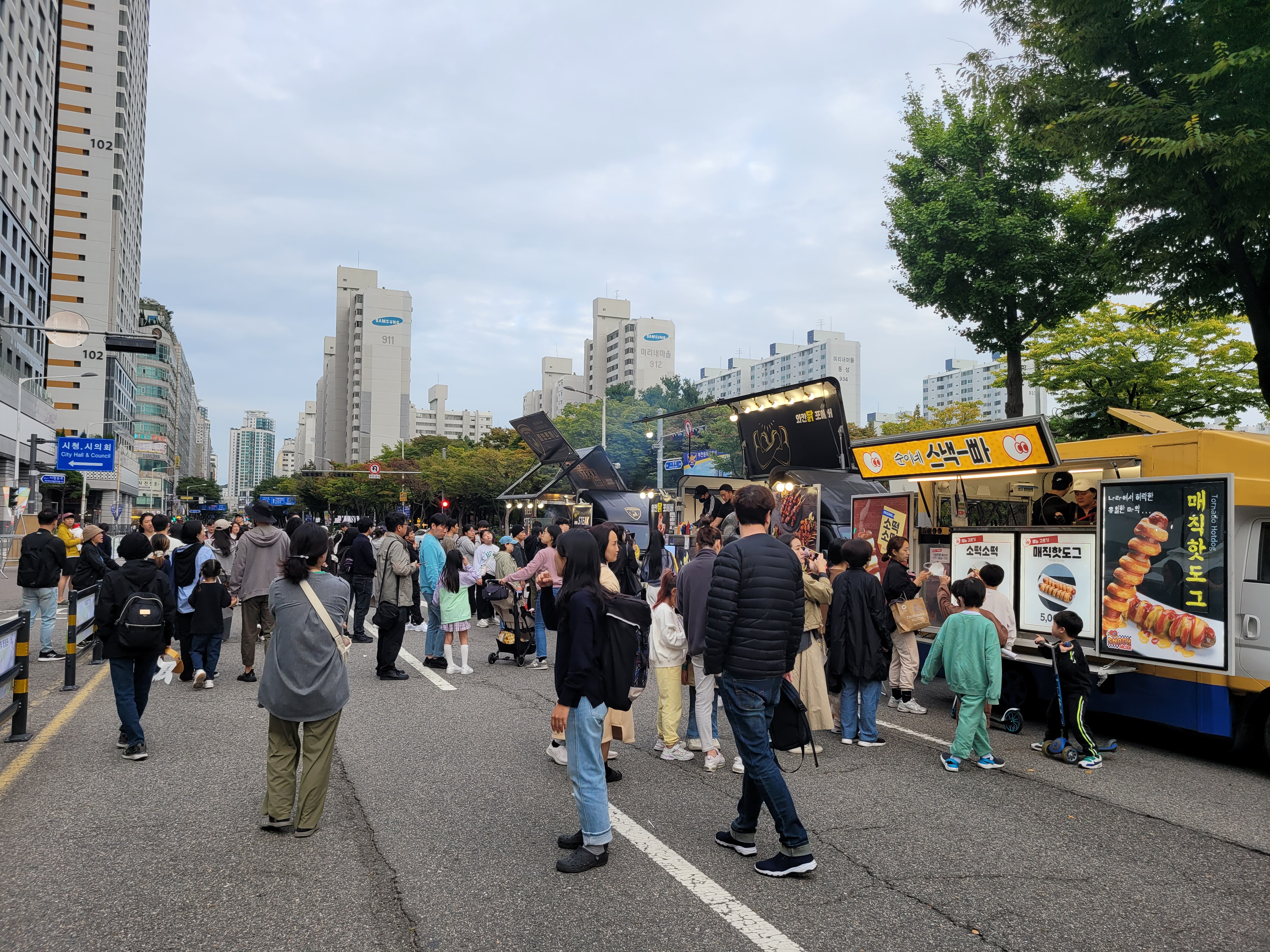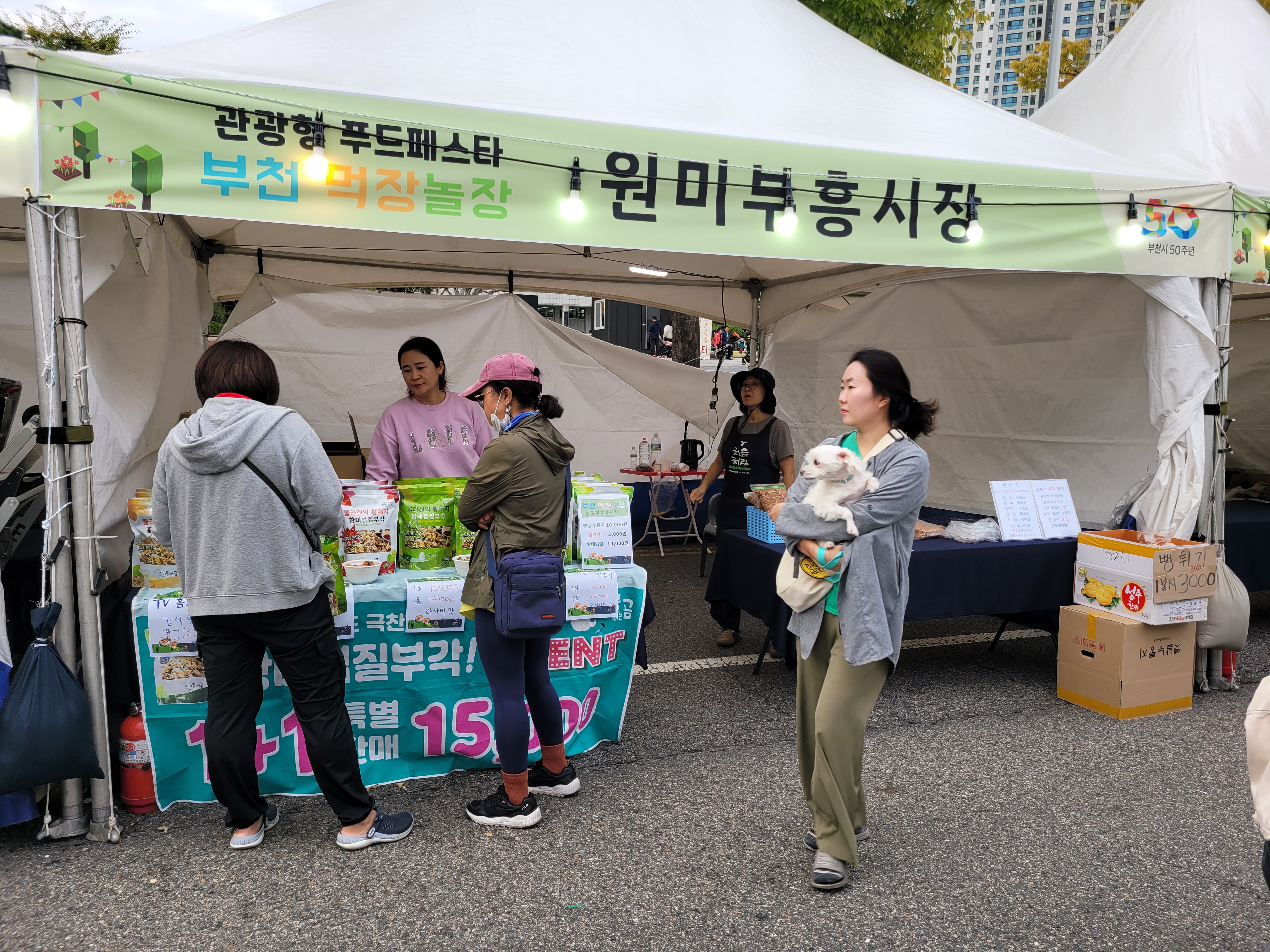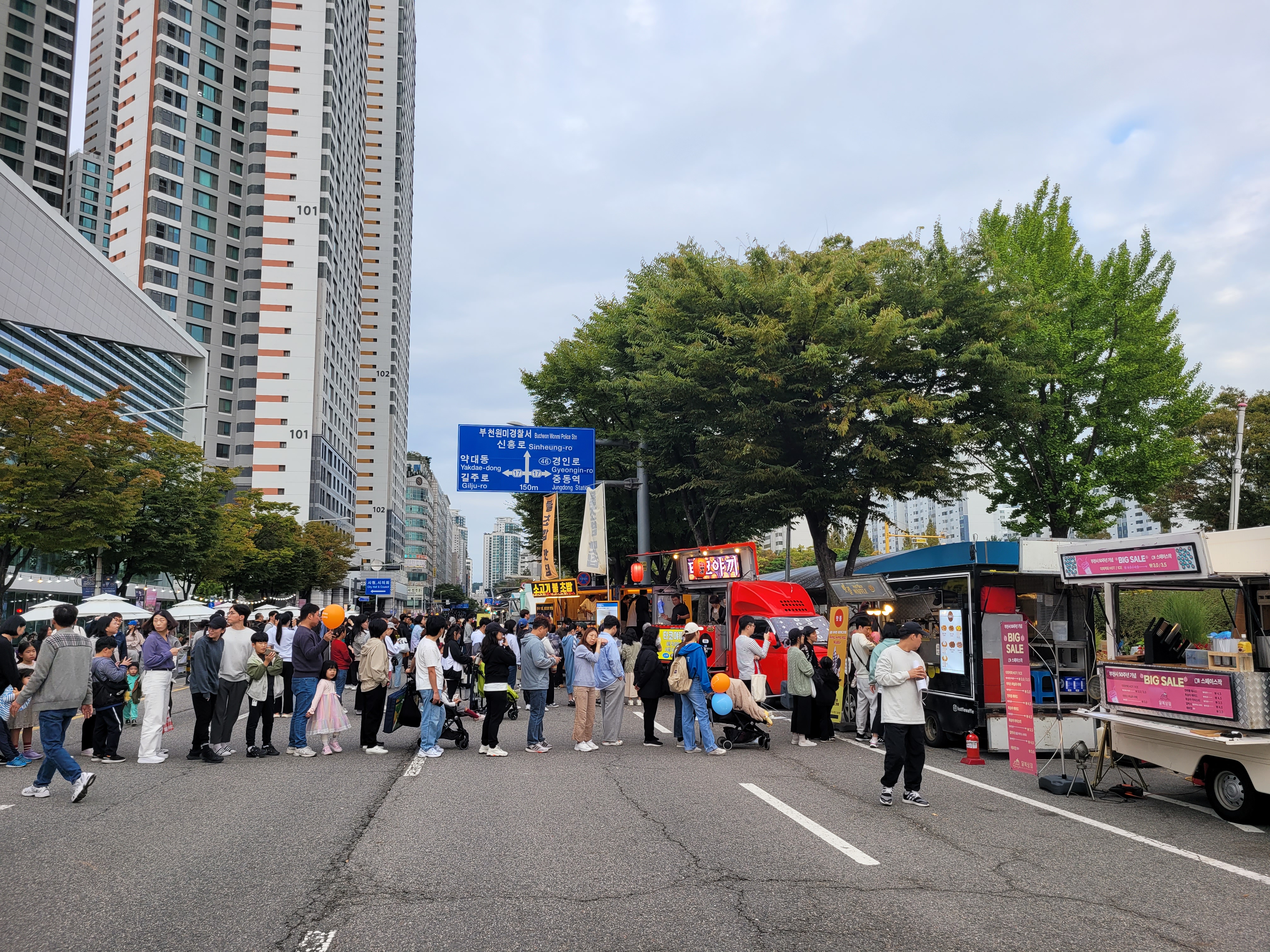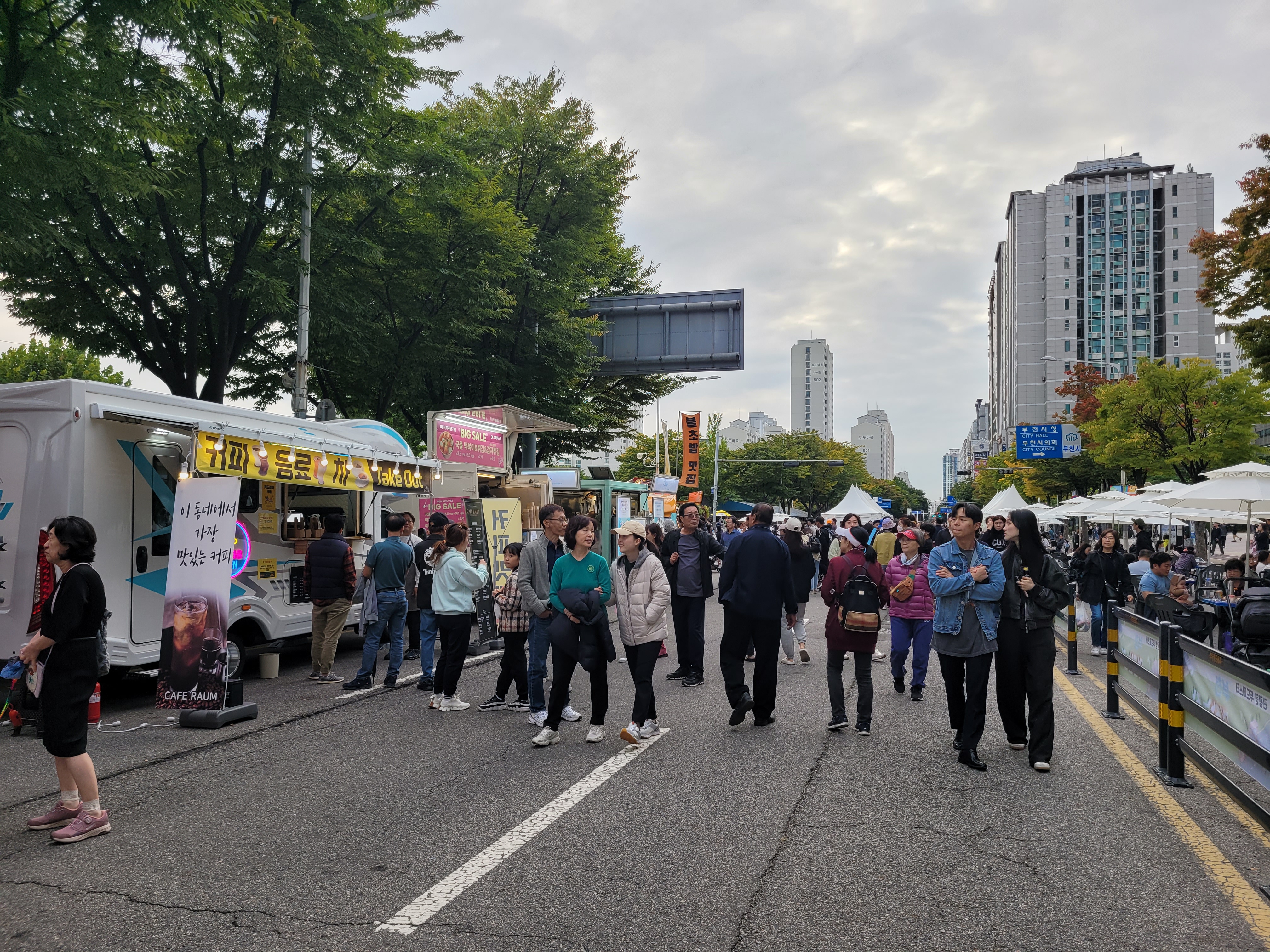 부천시청 광장 앞 도로에서도 각종 먹거리장터와 부천지역 전통시장들 부스와 체험거리들이