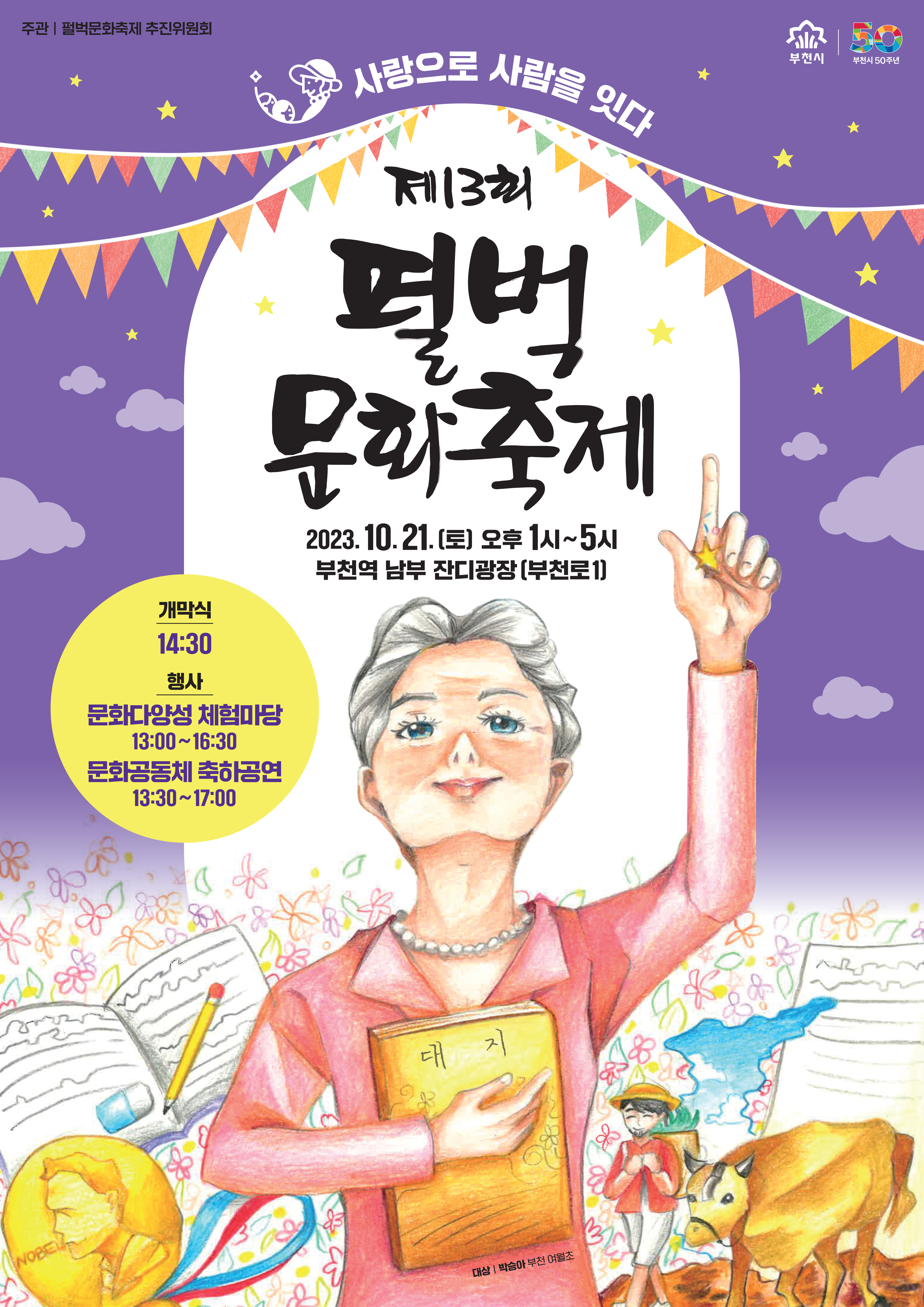 첫번째로는 부천 남부역 잔디광장에서 열릴 제13회 펄벅문화축제입니다.