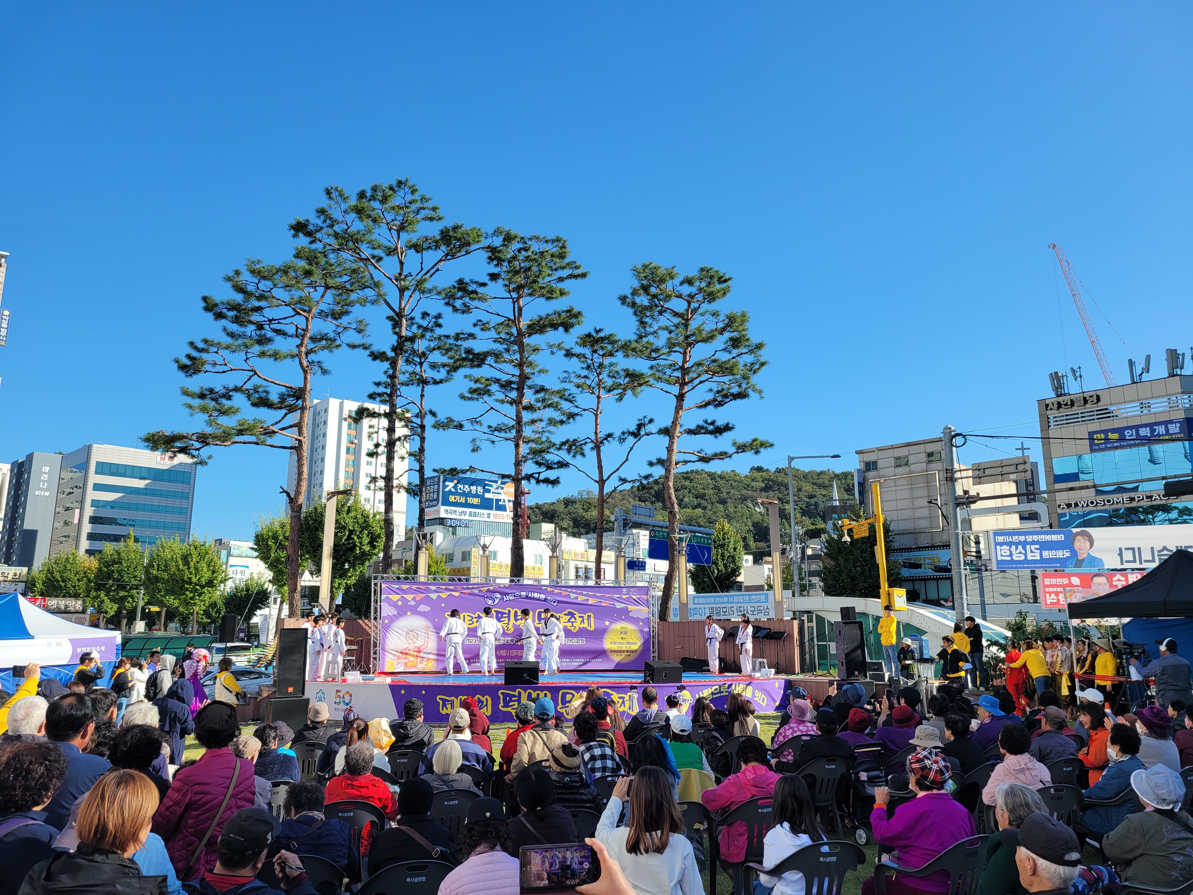 각 체험 부스들마다 체험하는 사람들도 구경하고 무대에서의 공연 구경도 하는등