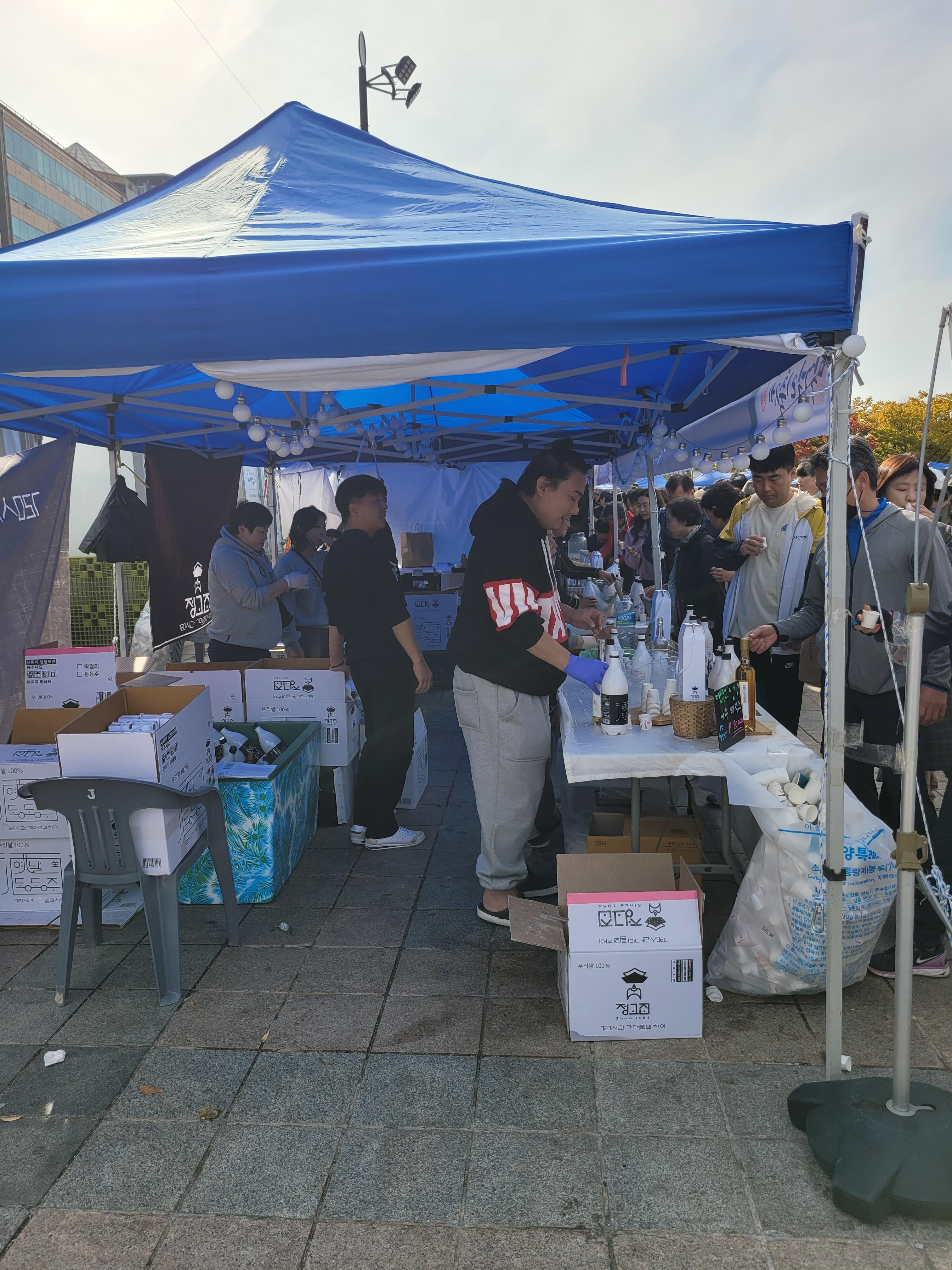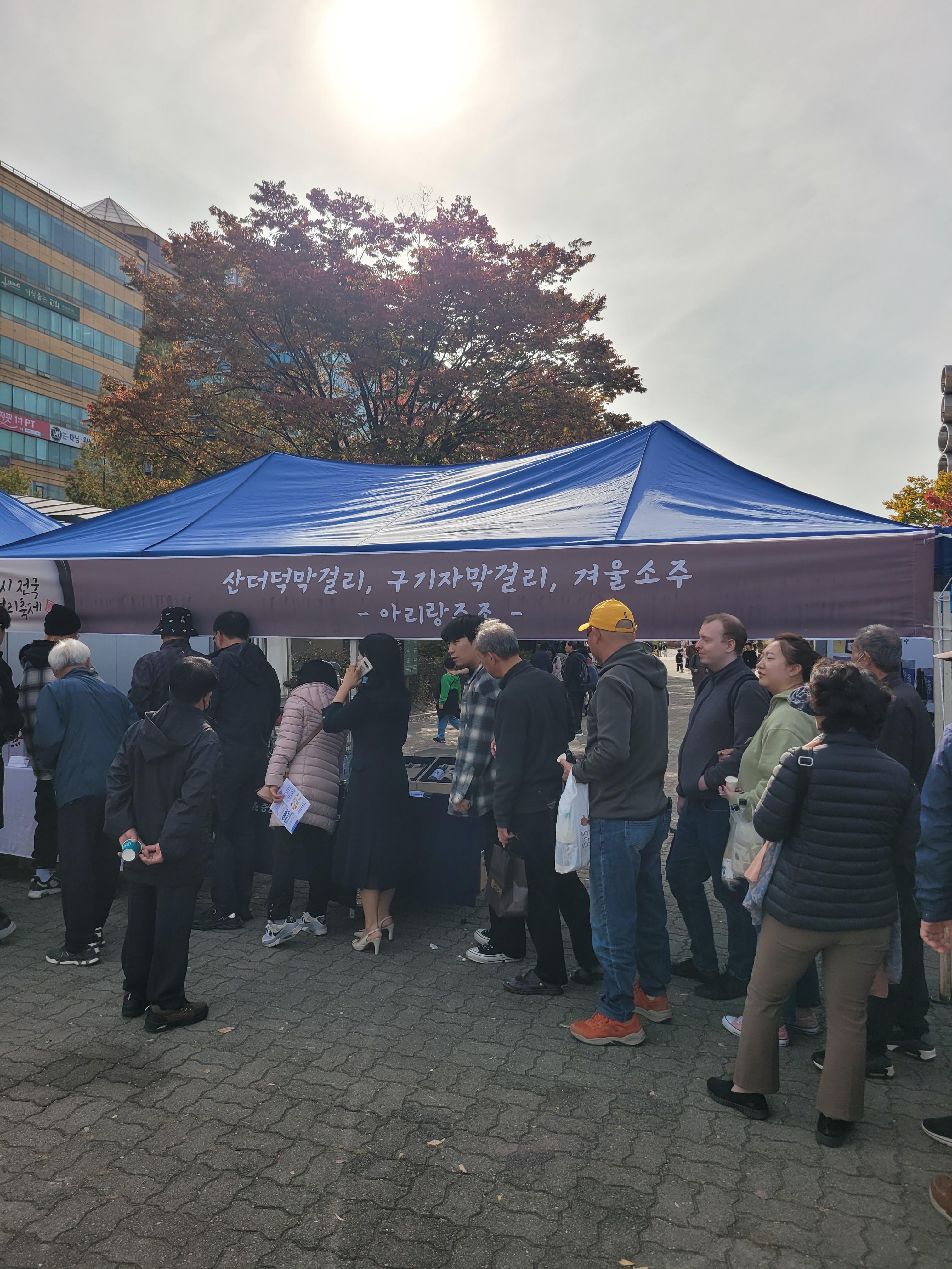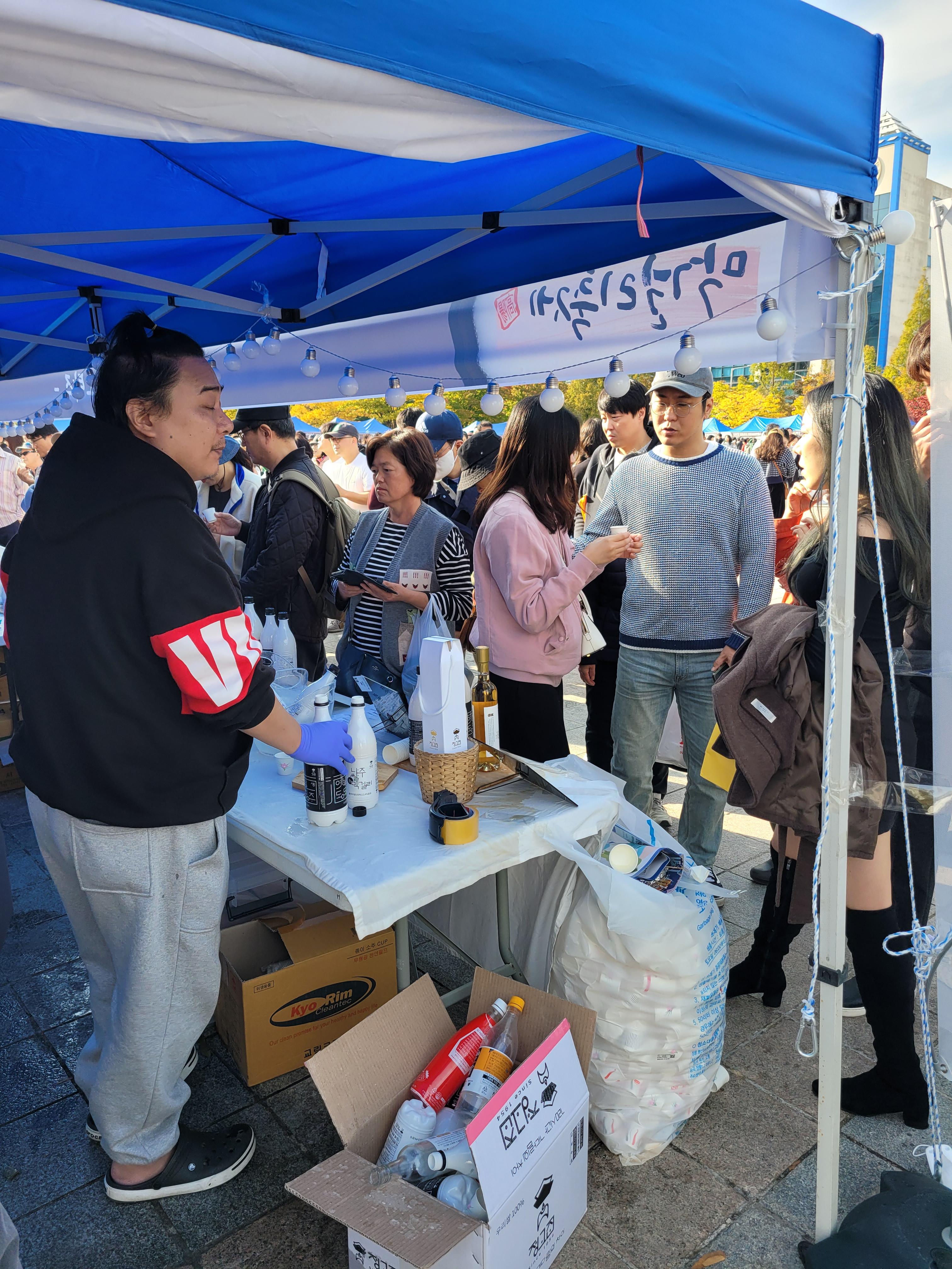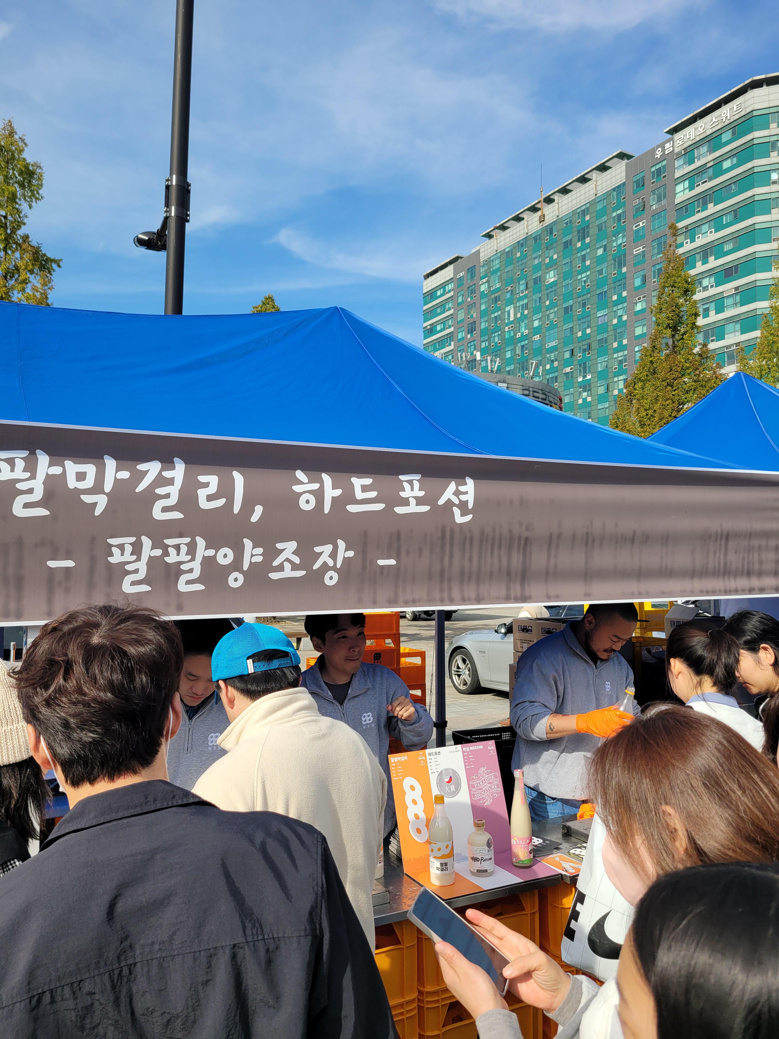 사람들로 인산인해를 이루었네요. 아쉬웠던 점은 막걸리에 어울리는 음식을 파는