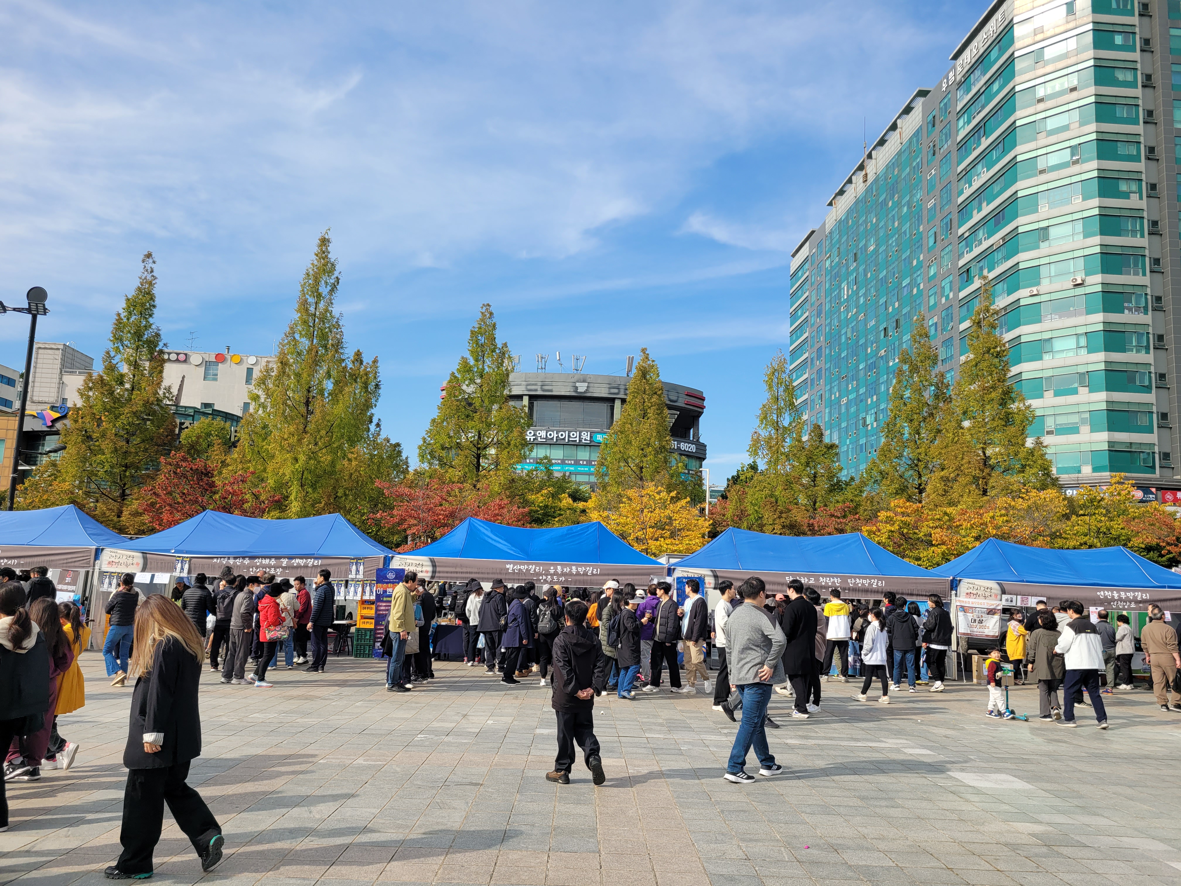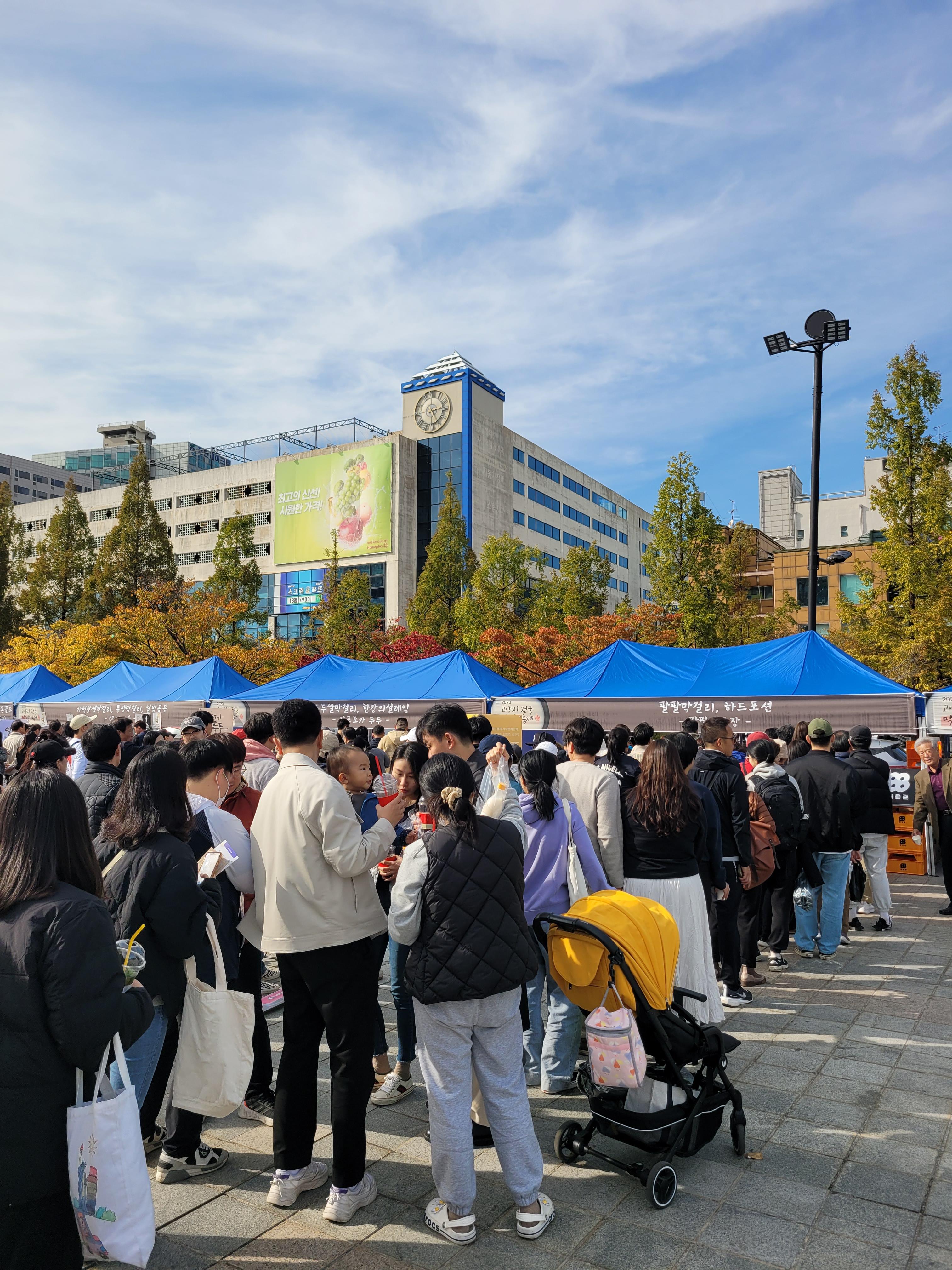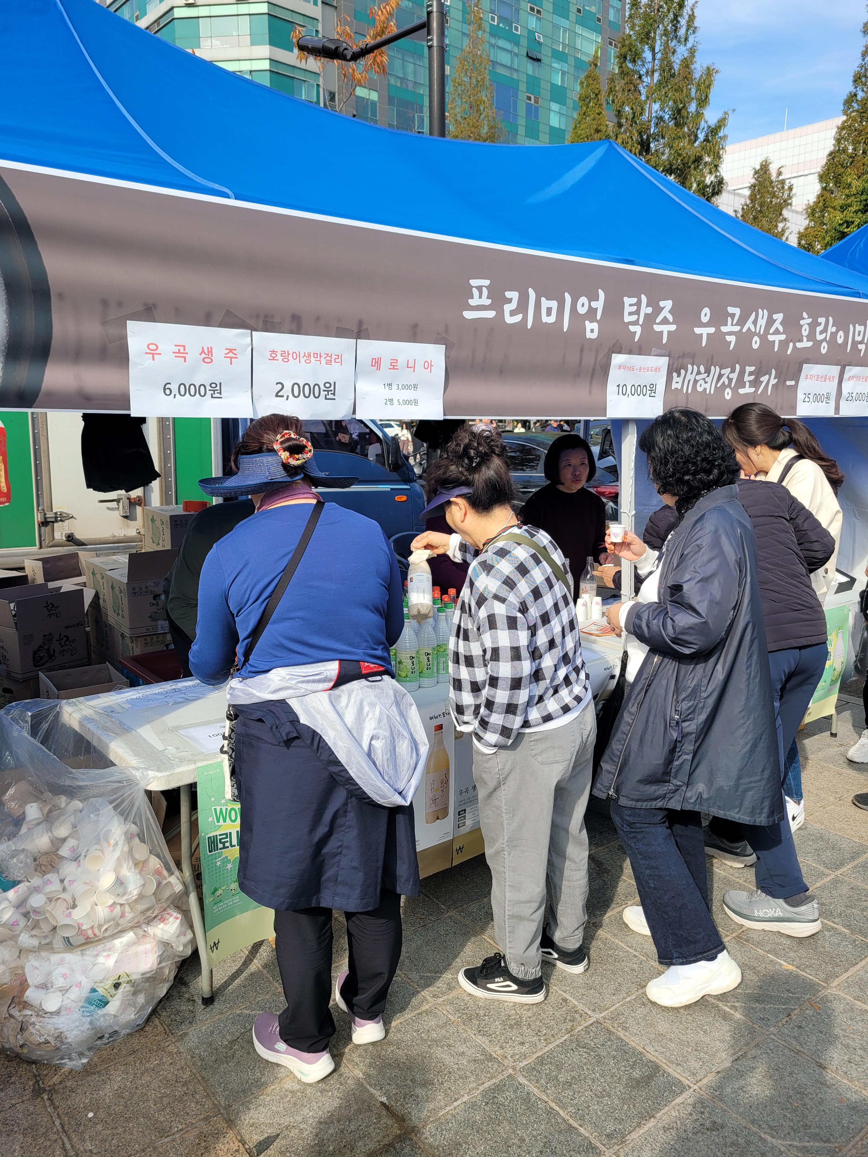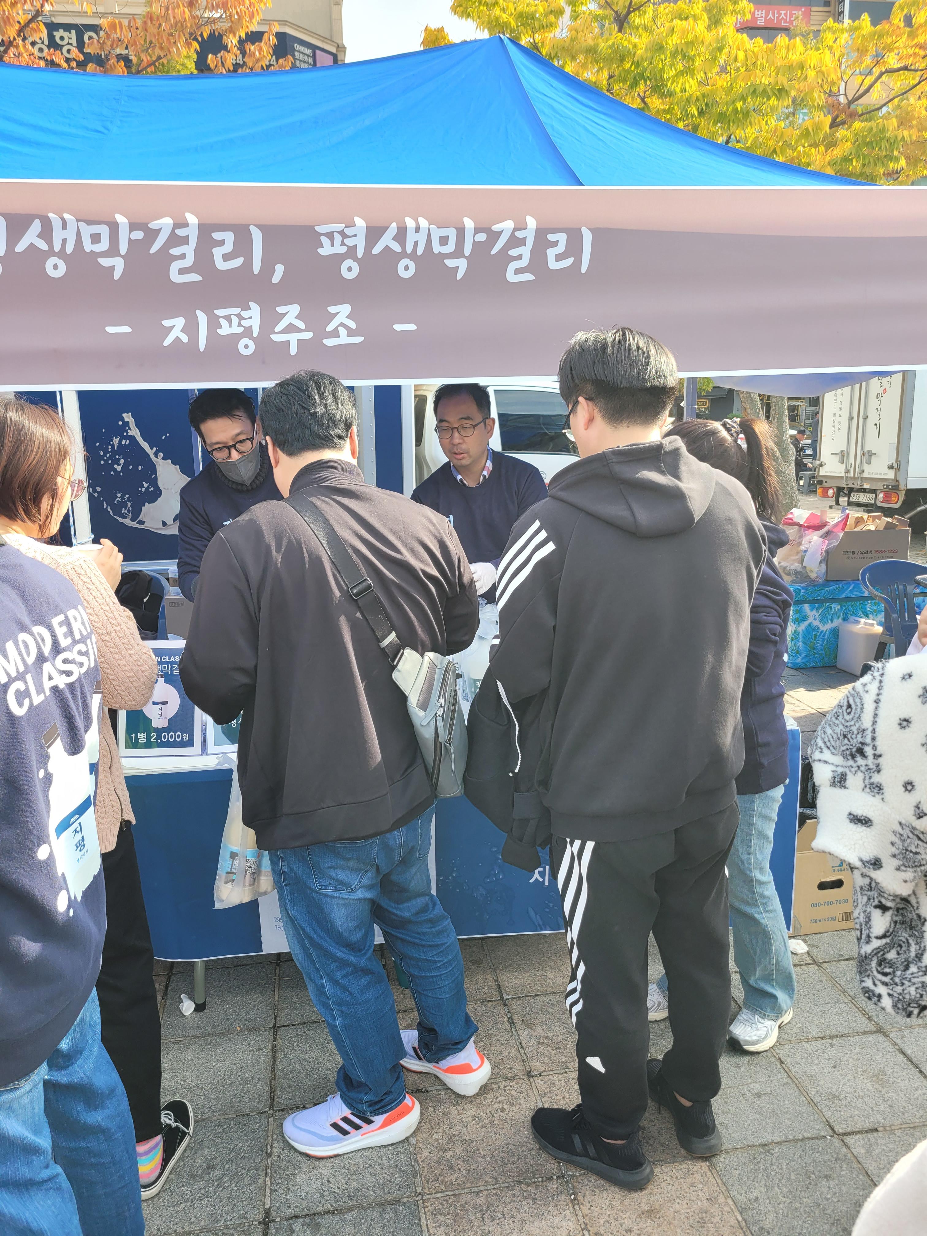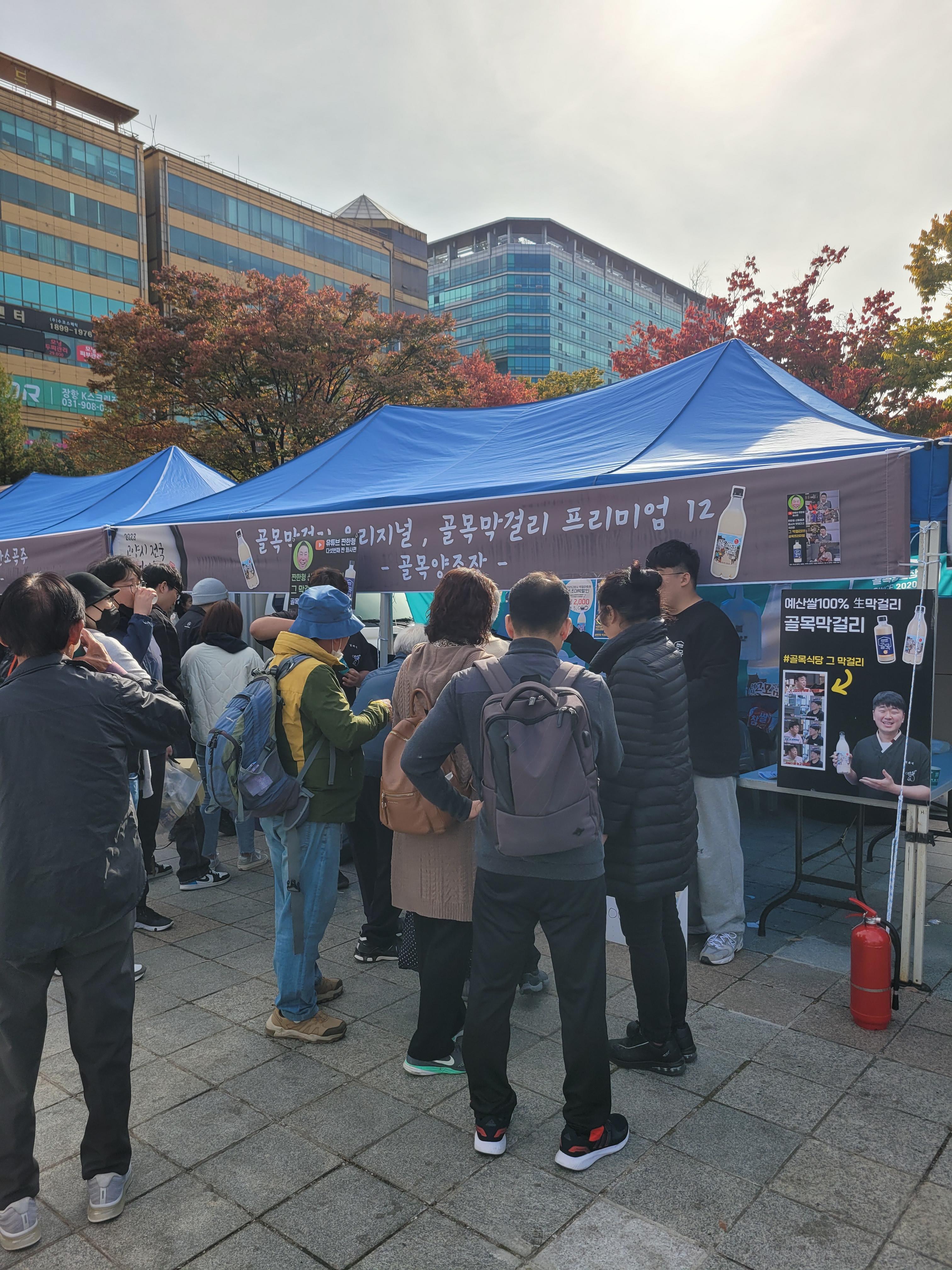사람들로 인산인해를 이루었네요. 아쉬웠던 점은 막걸리에 어울리는 음식을 파는